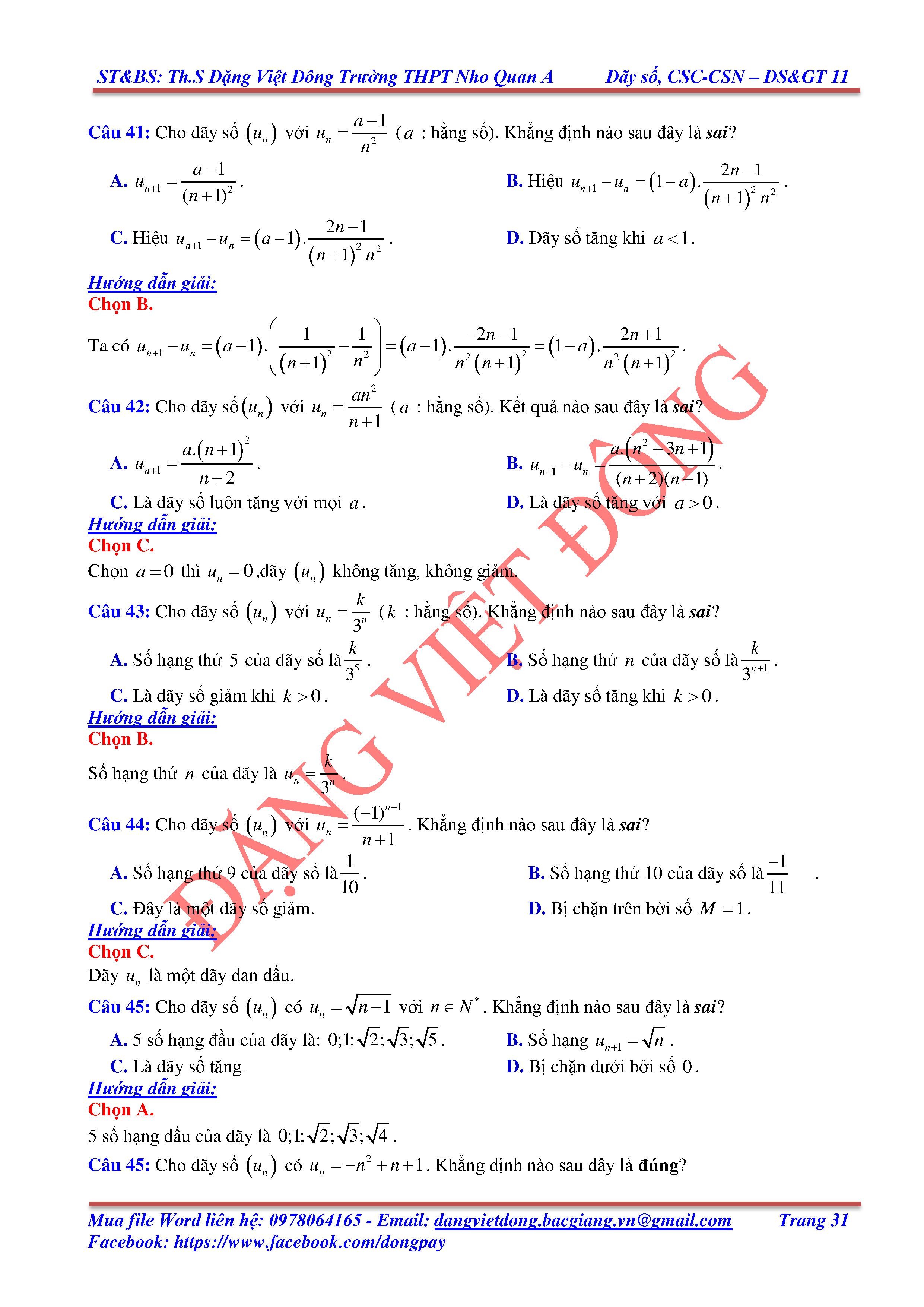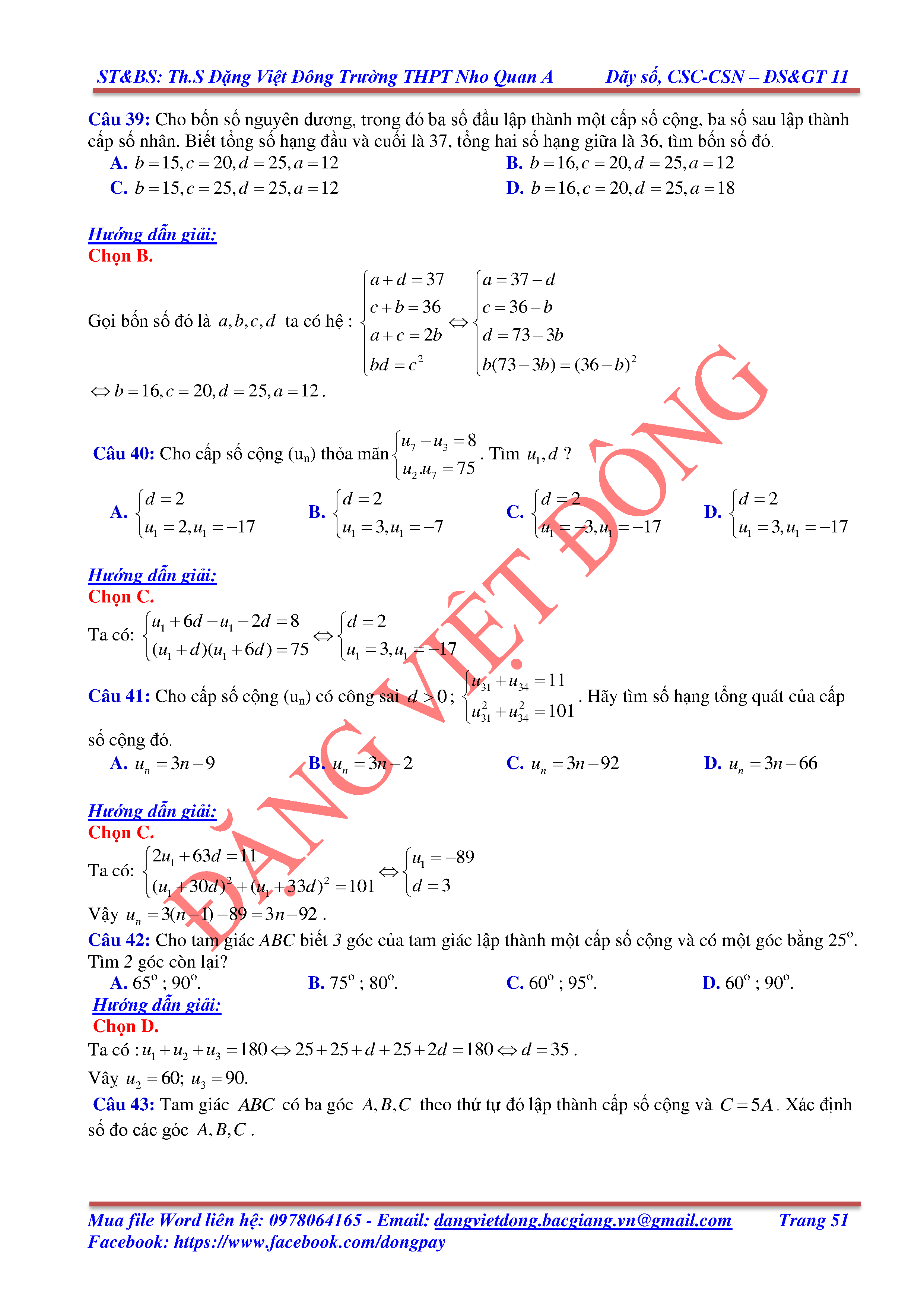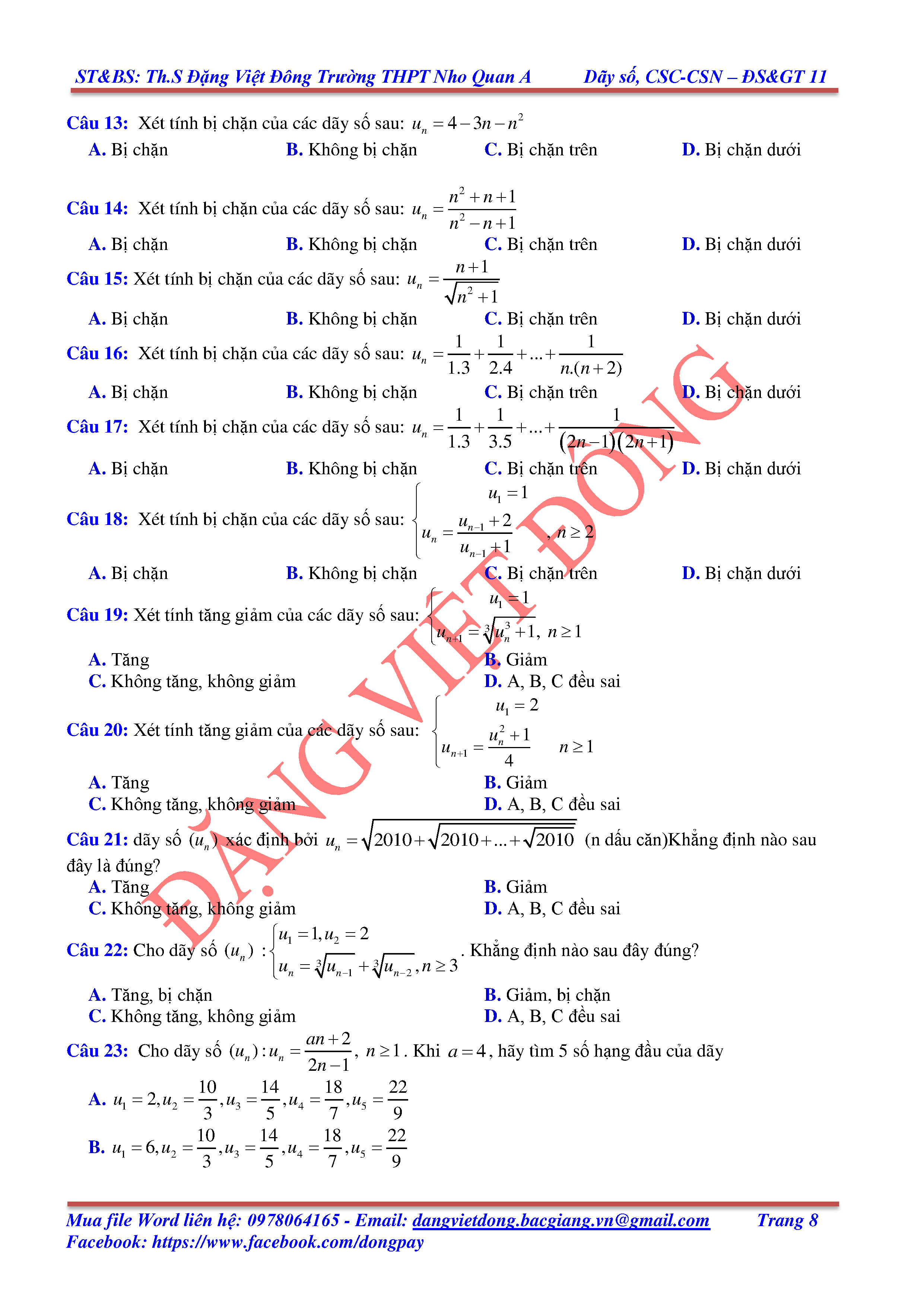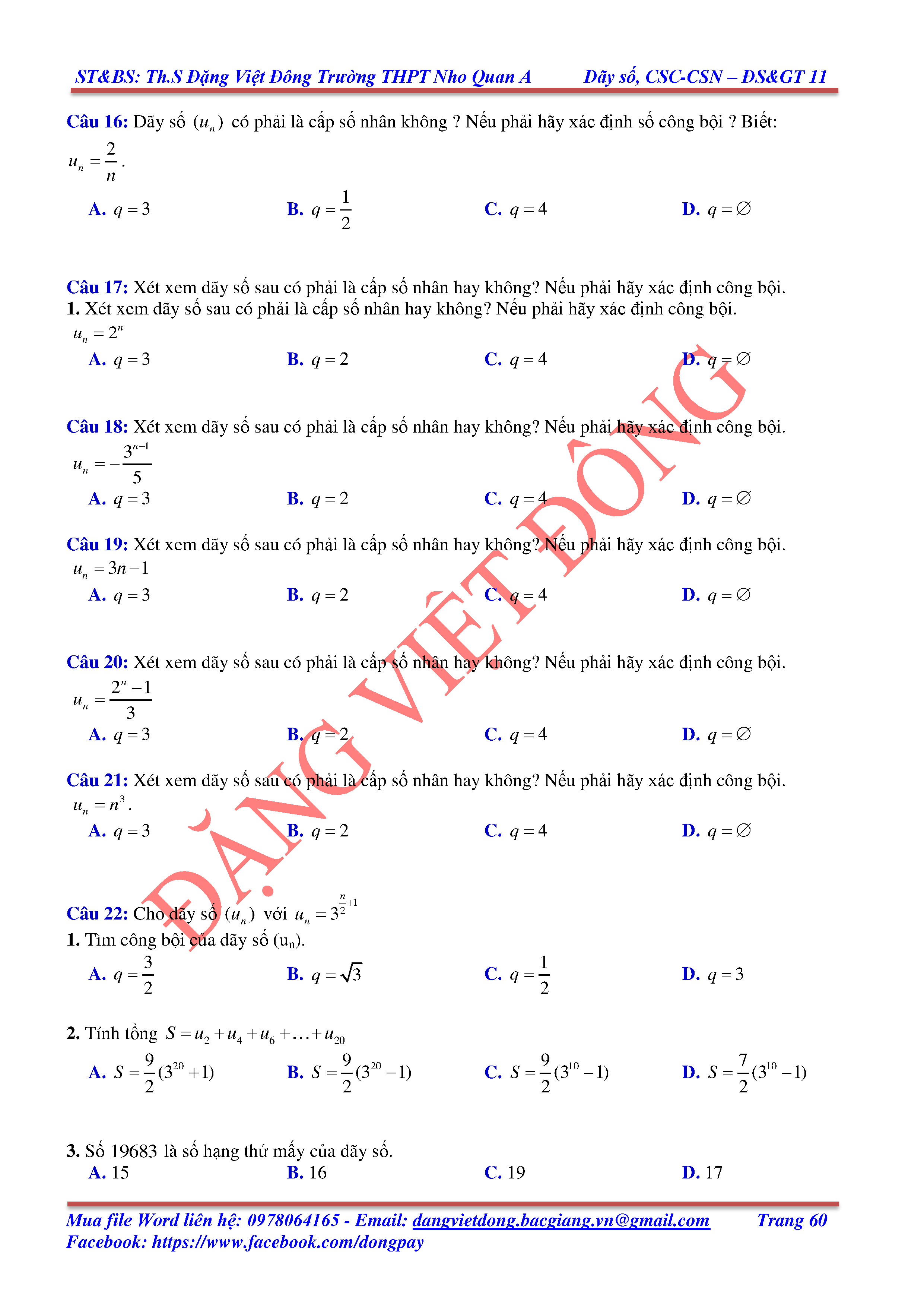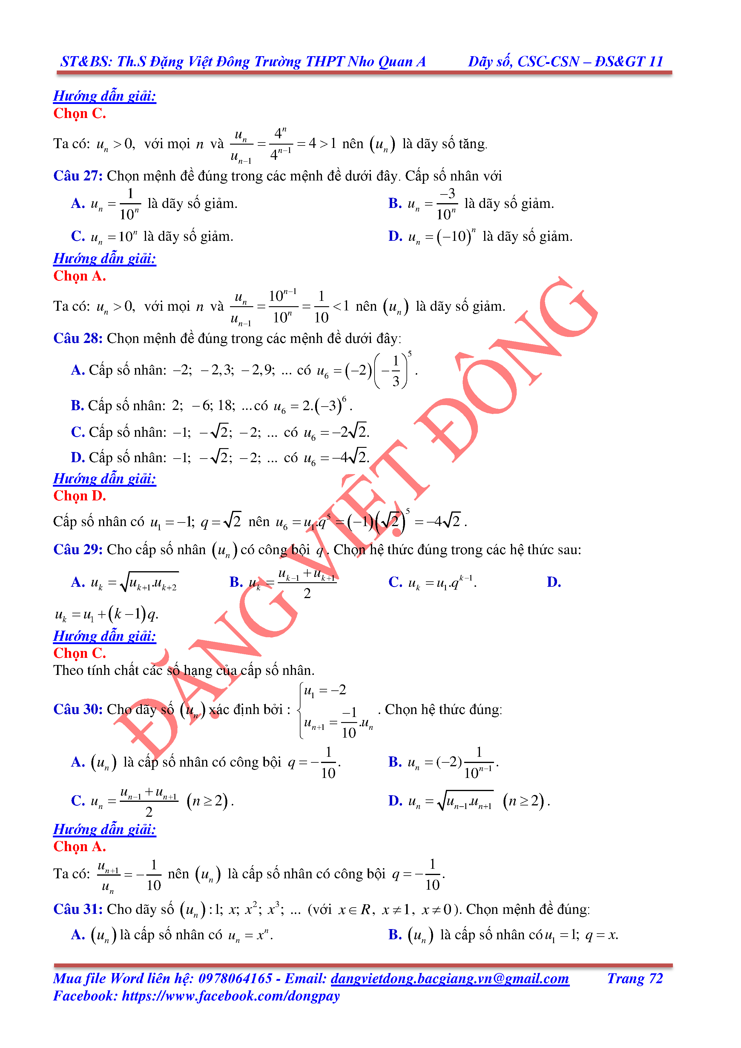 DÃY SỐ, CẤP SỐ CỘNG, CẤP SỐ NHÂN - ĐẠI SỐ, GIẢI TÍCH 11