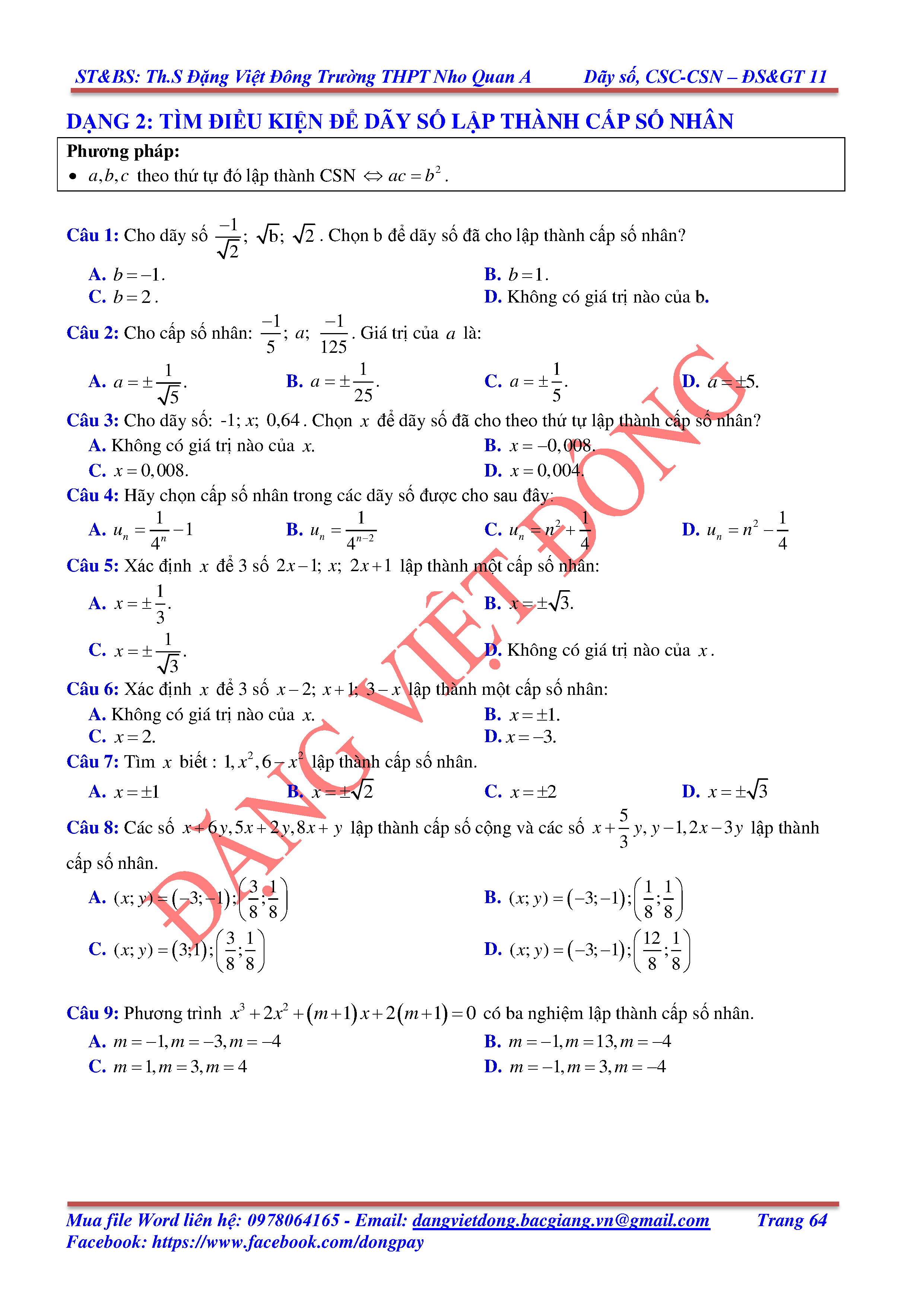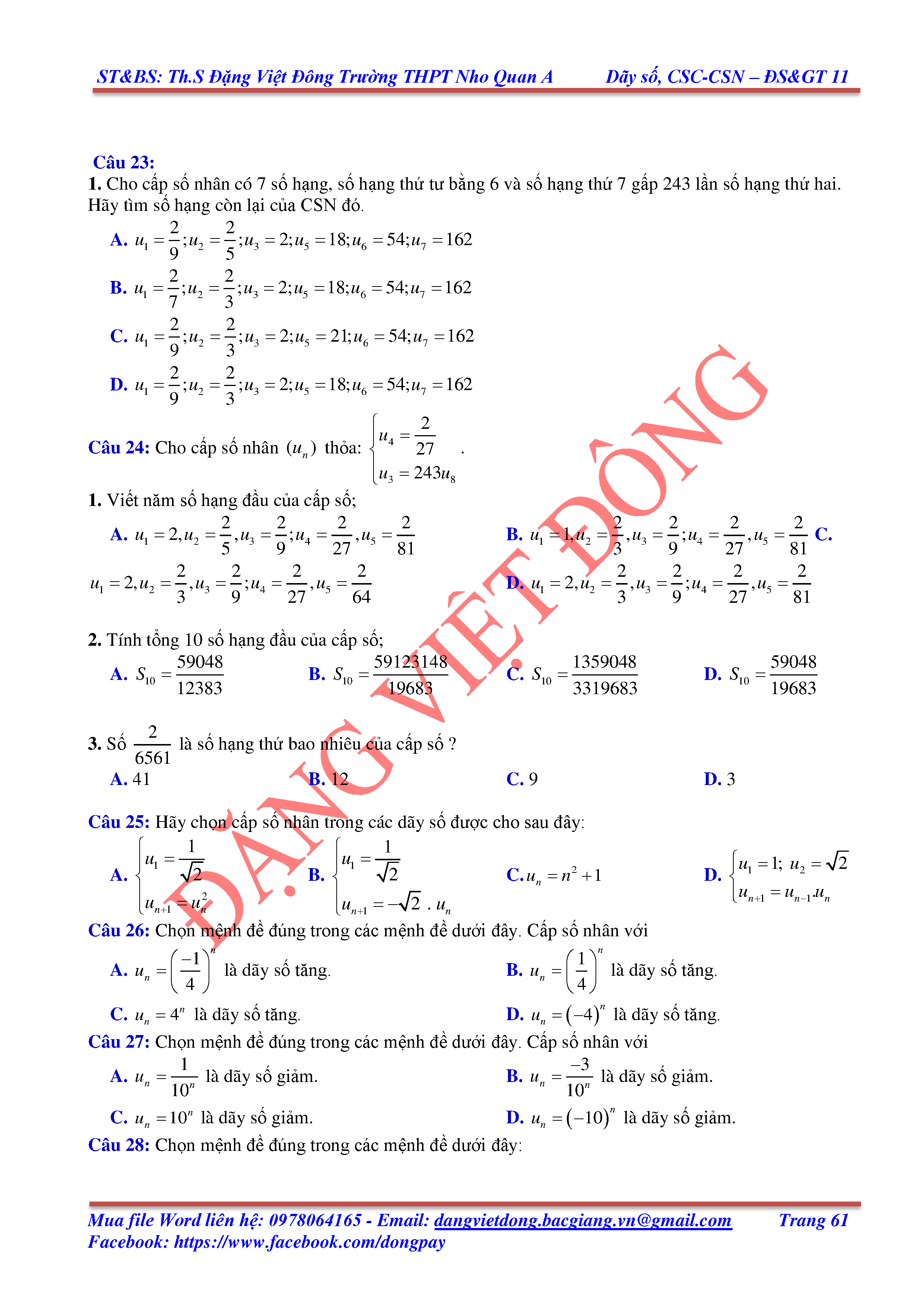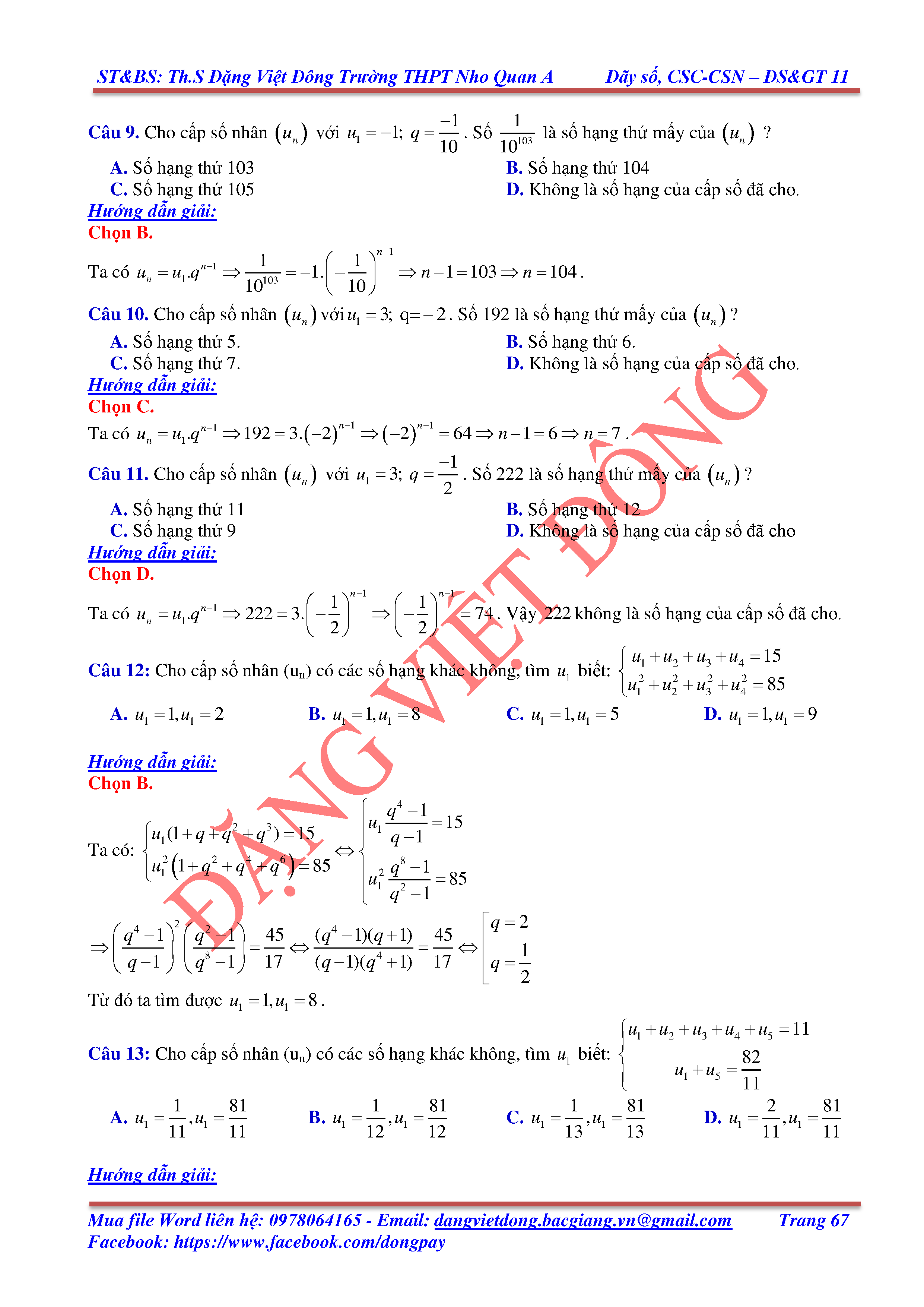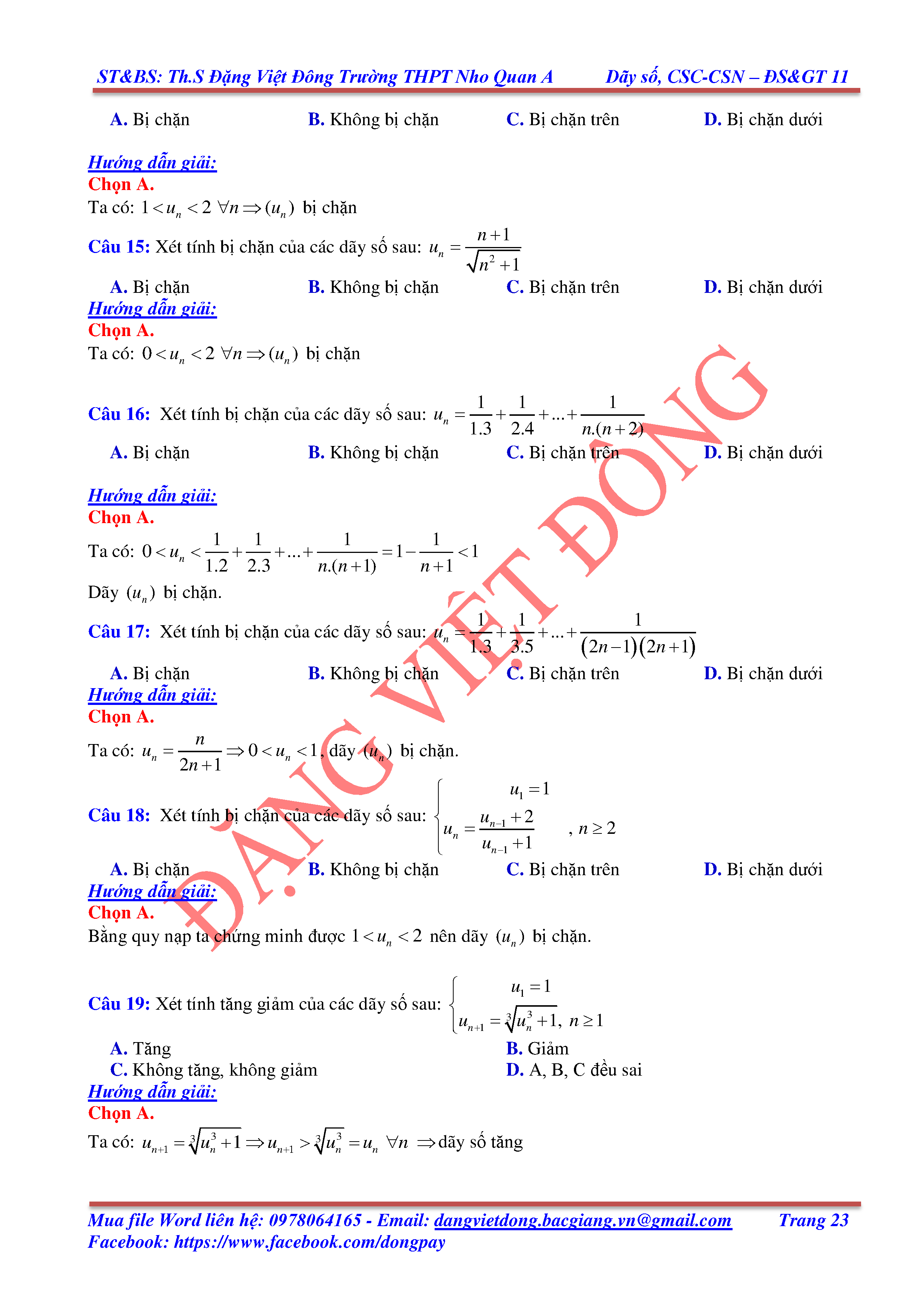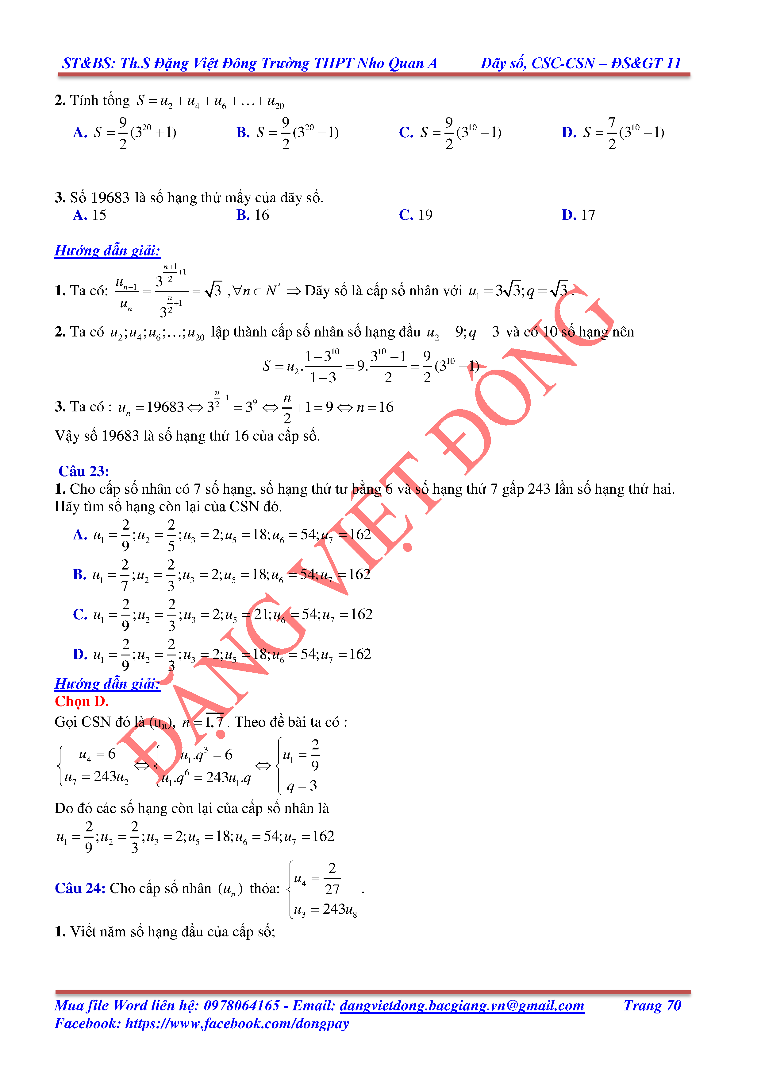 DÃY SỐ, CẤP SỐ CỘNG, CẤP SỐ NHÂN - ĐẠI SỐ, GIẢI TÍCH 11