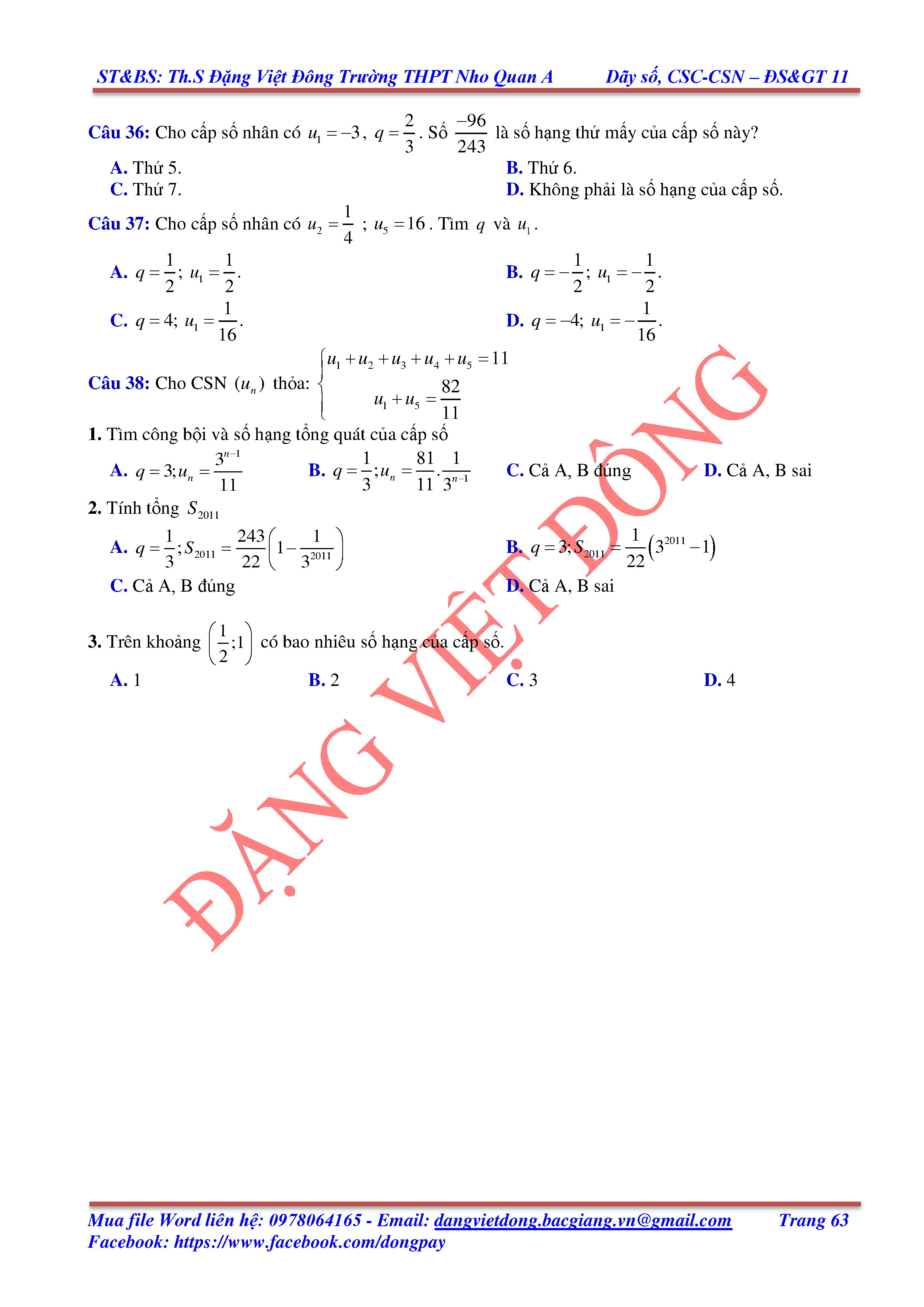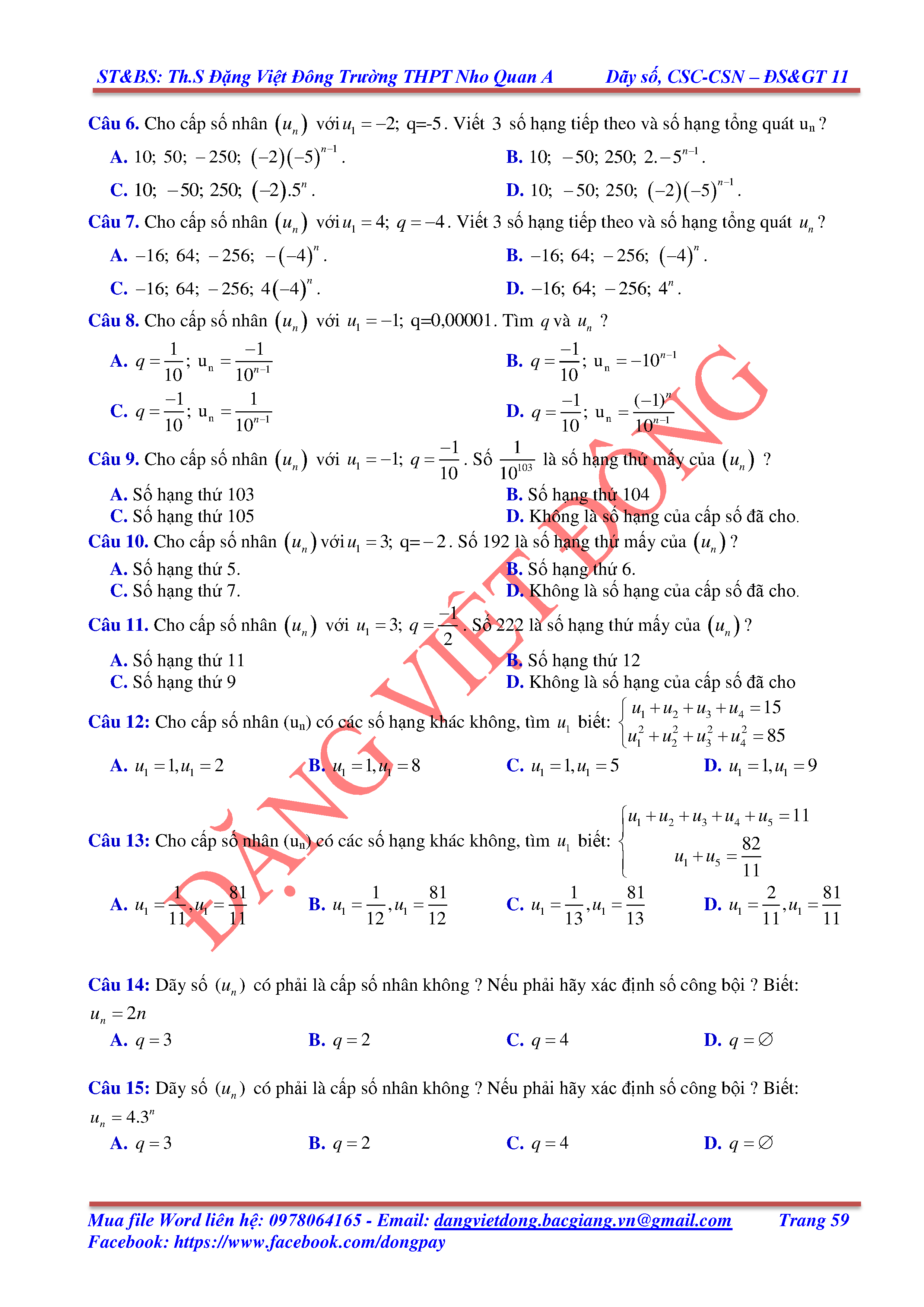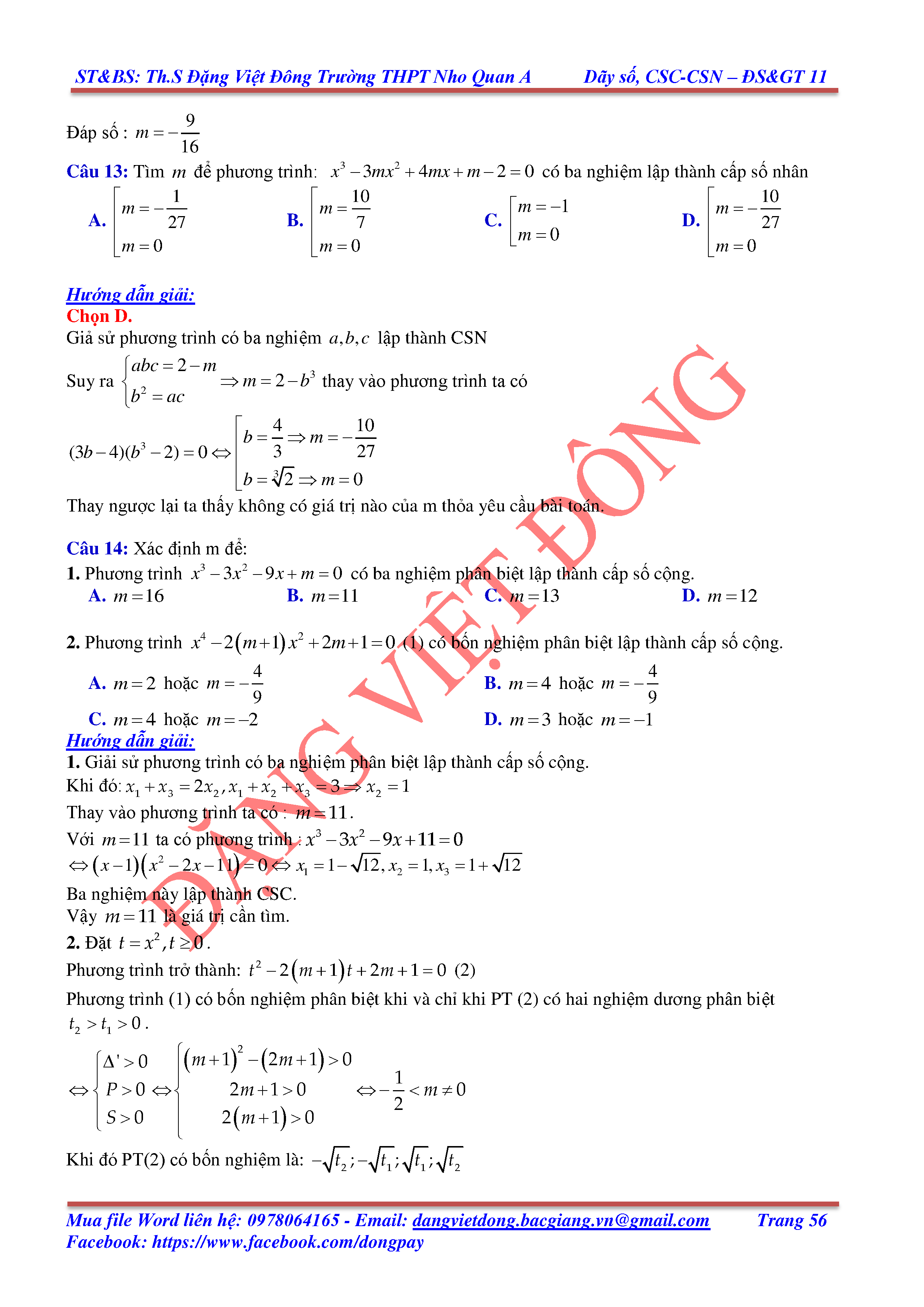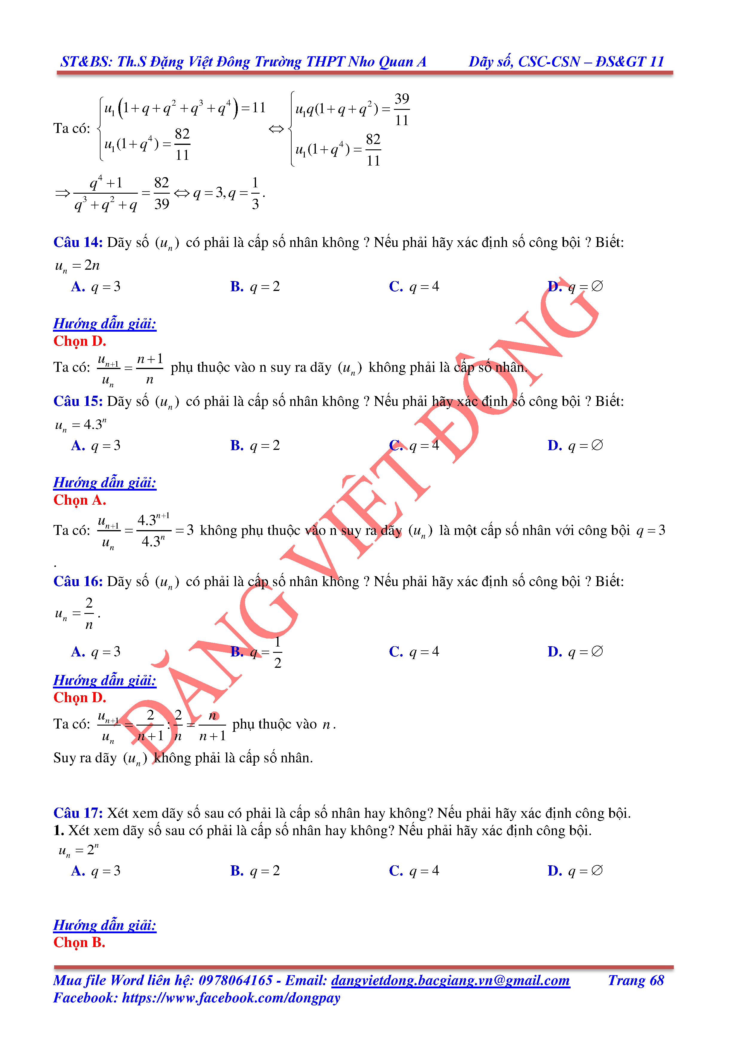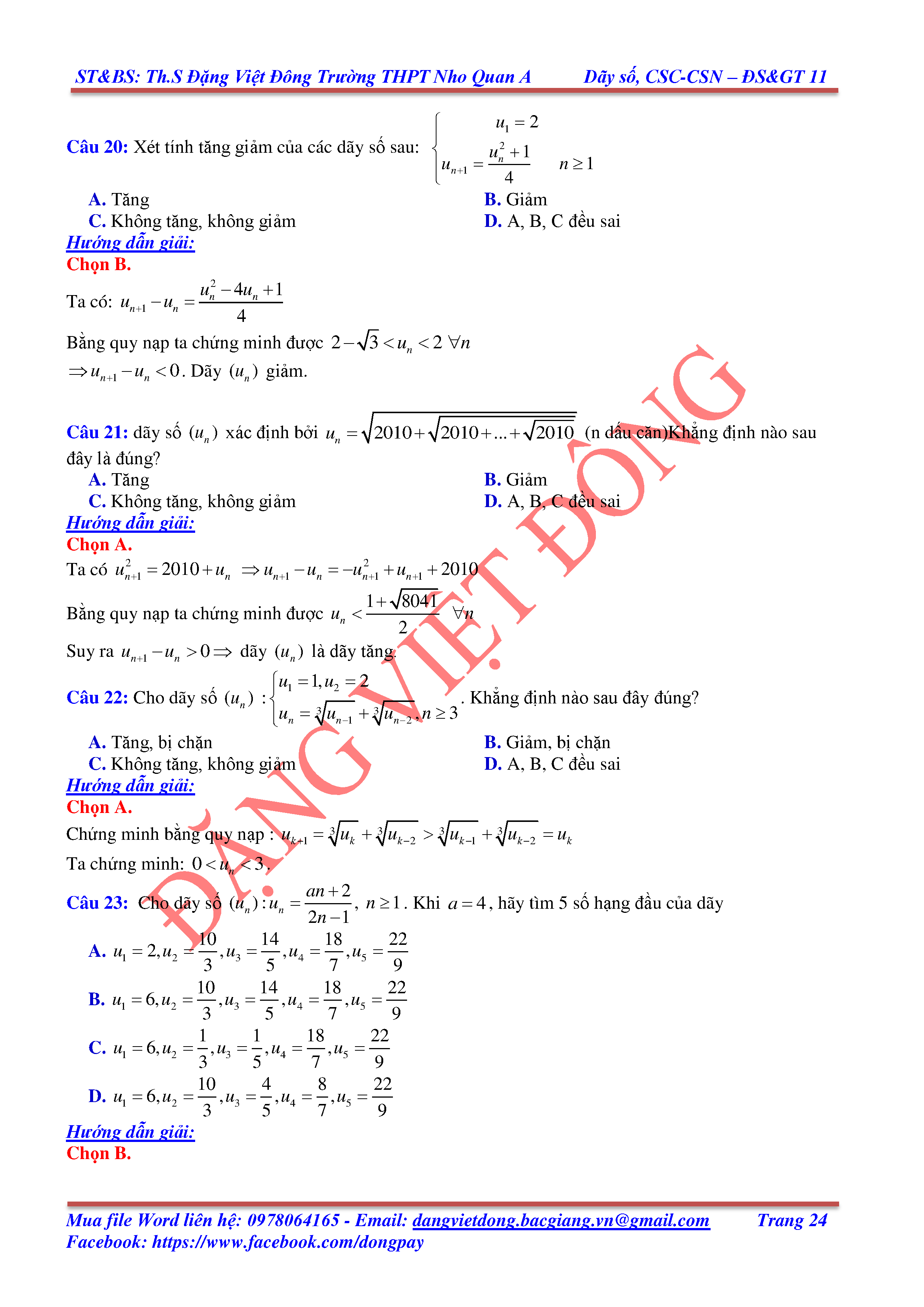 DÃY SỐ, CẤP SỐ CỘNG, CẤP SỐ NHÂN - ĐẠI SỐ, GIẢI TÍCH 11