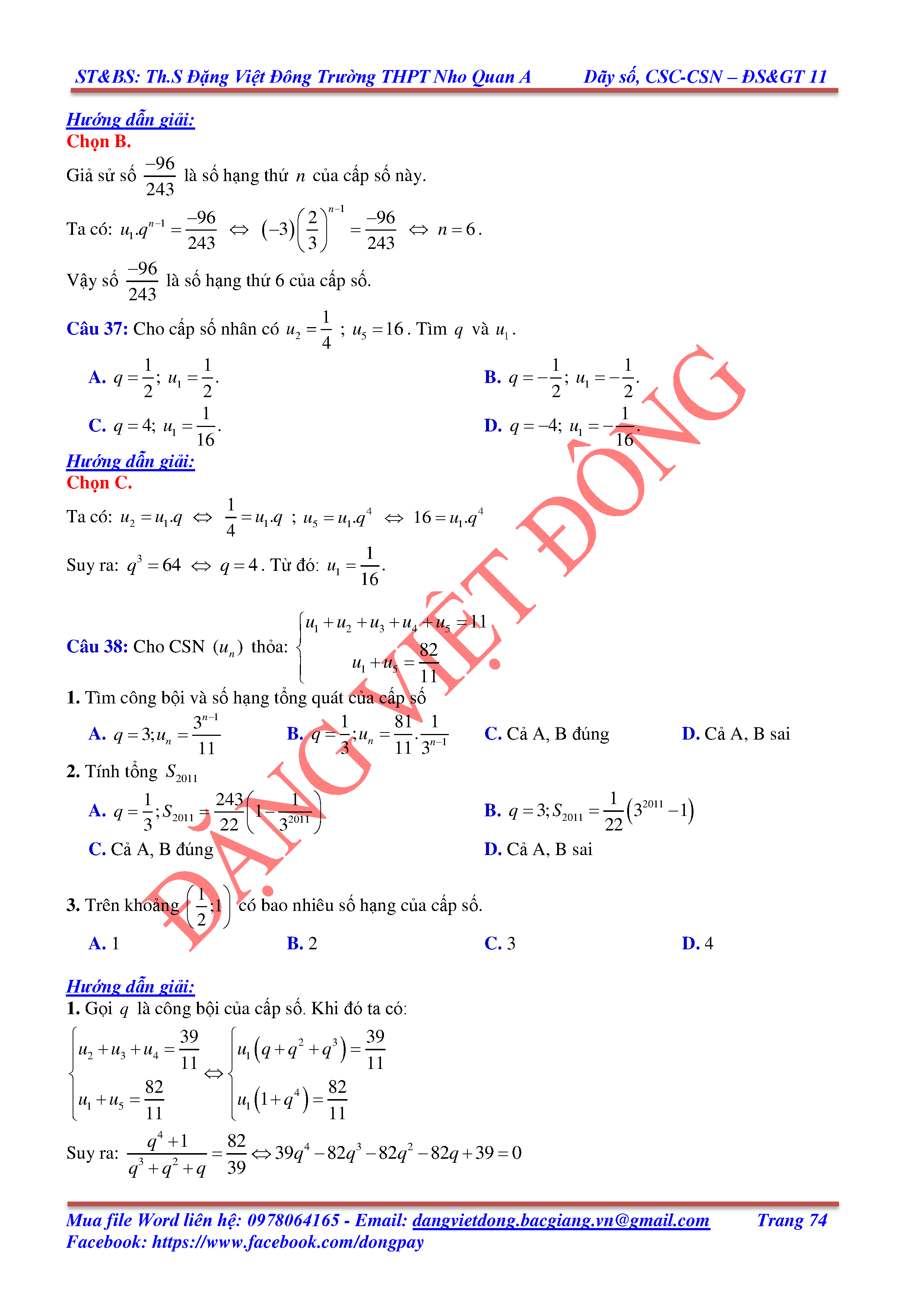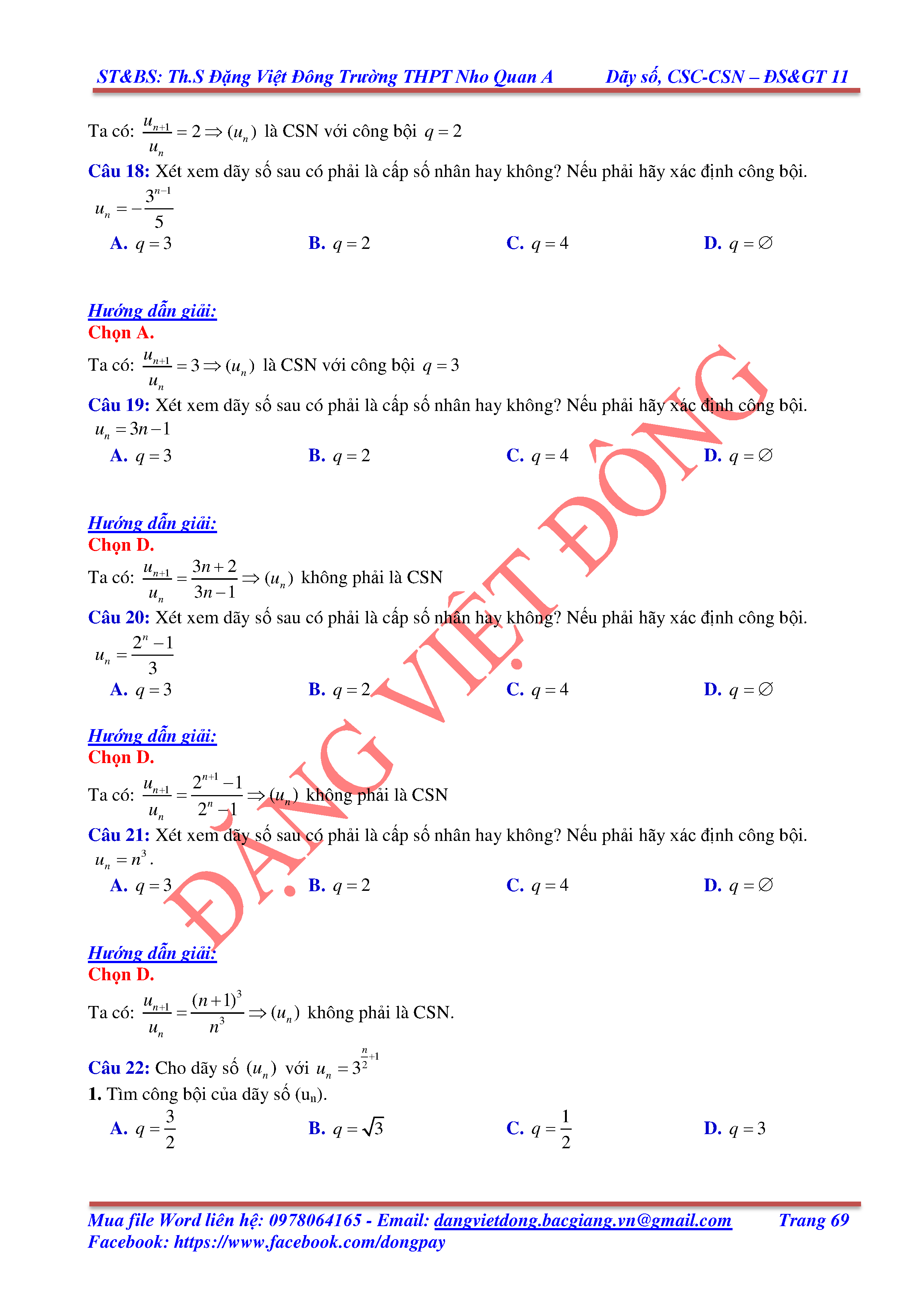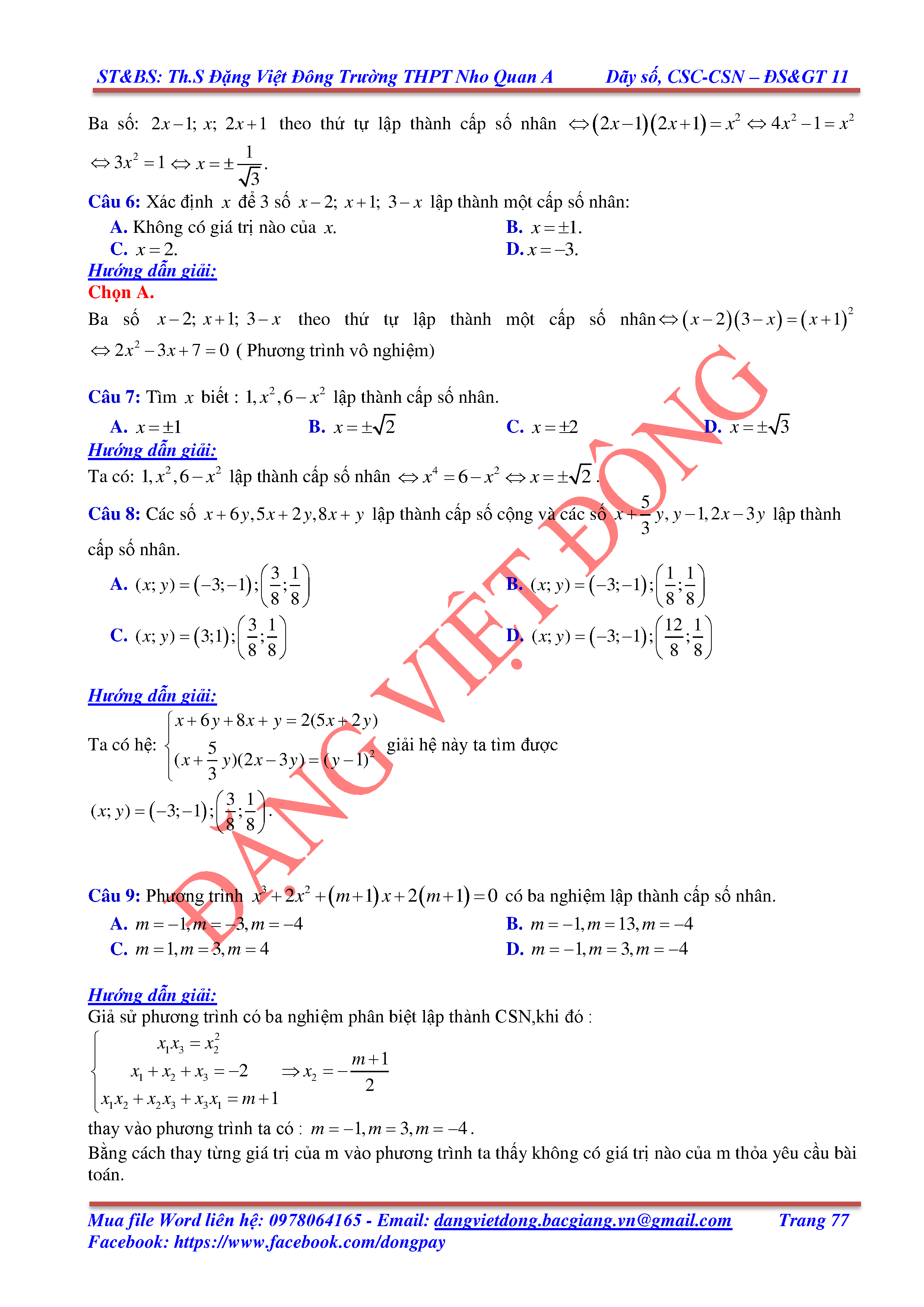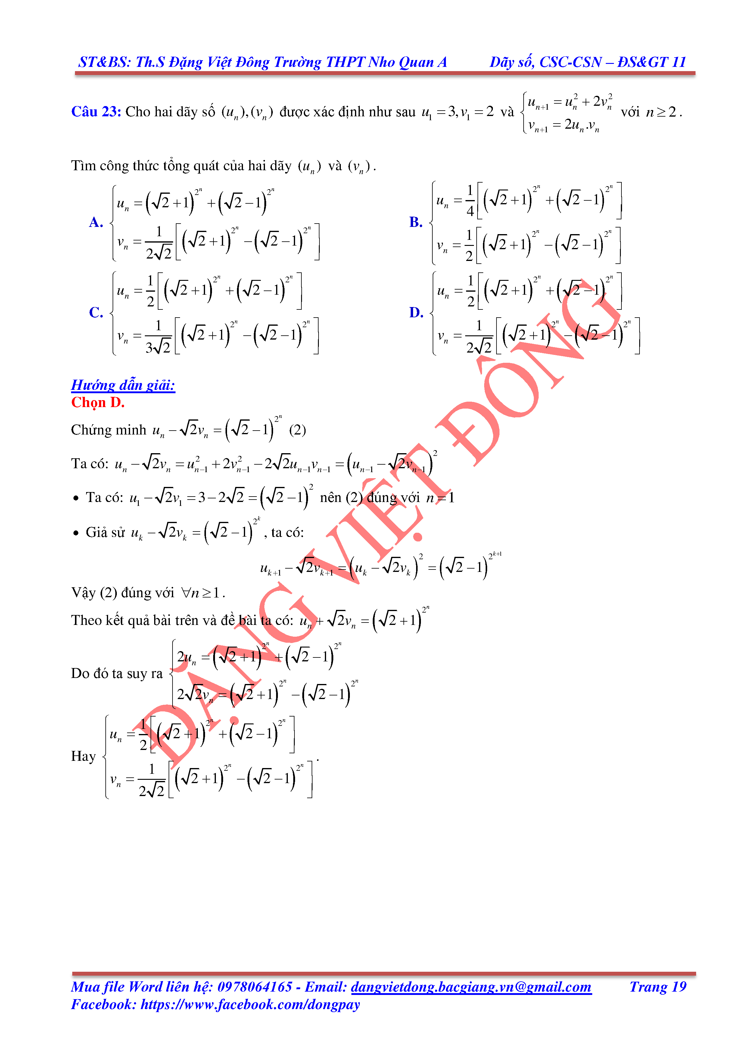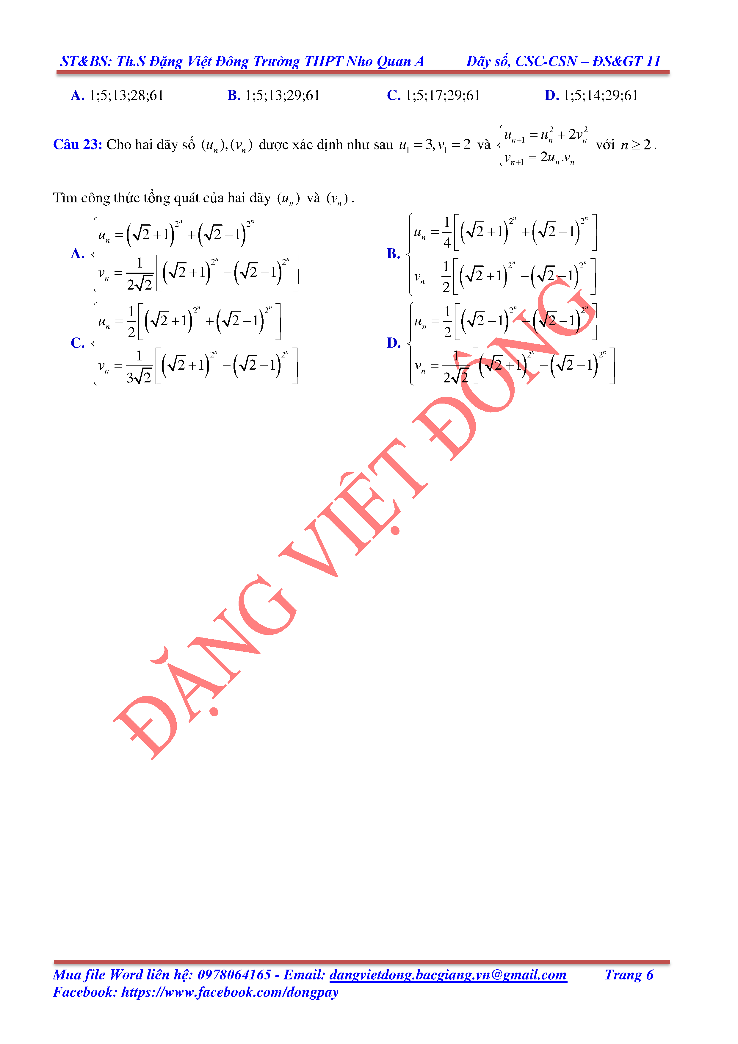DÃY SỐ, CẤP SỐ CỘNG, CẤP SỐ NHÂN - ĐẠI SỐ, GIẢI TÍCH 11