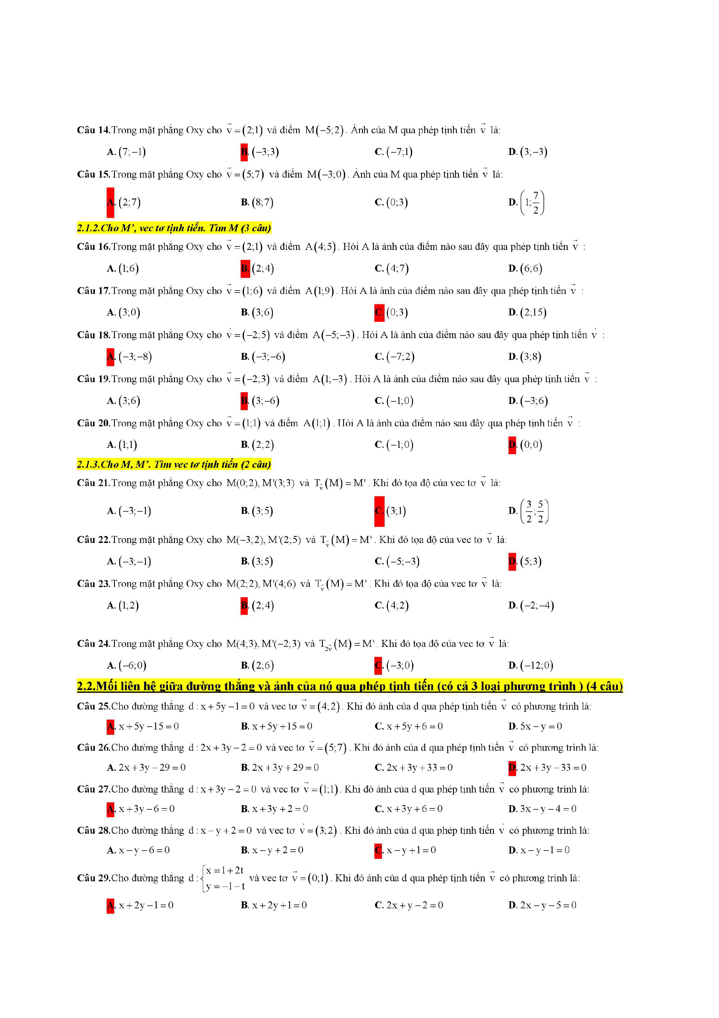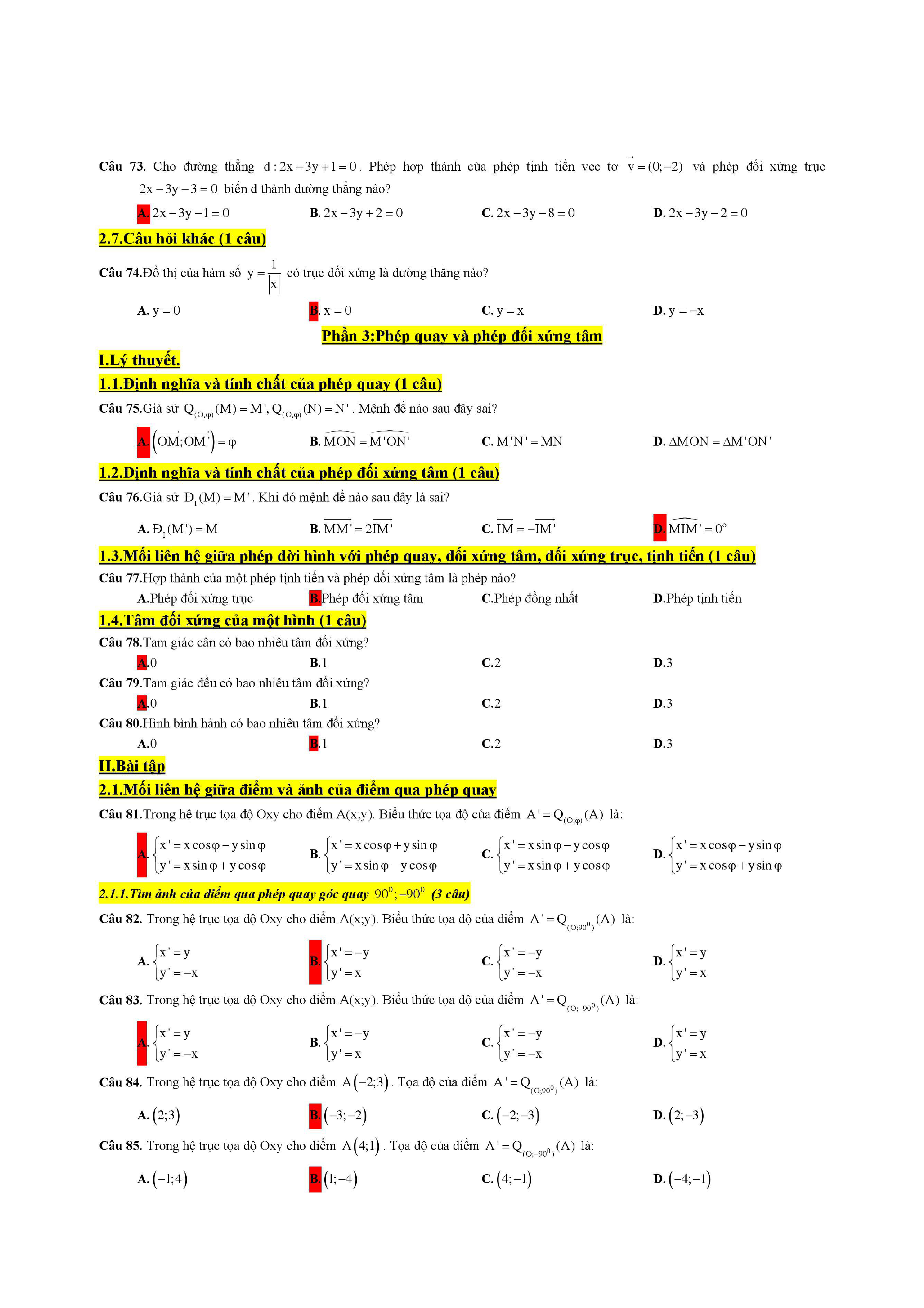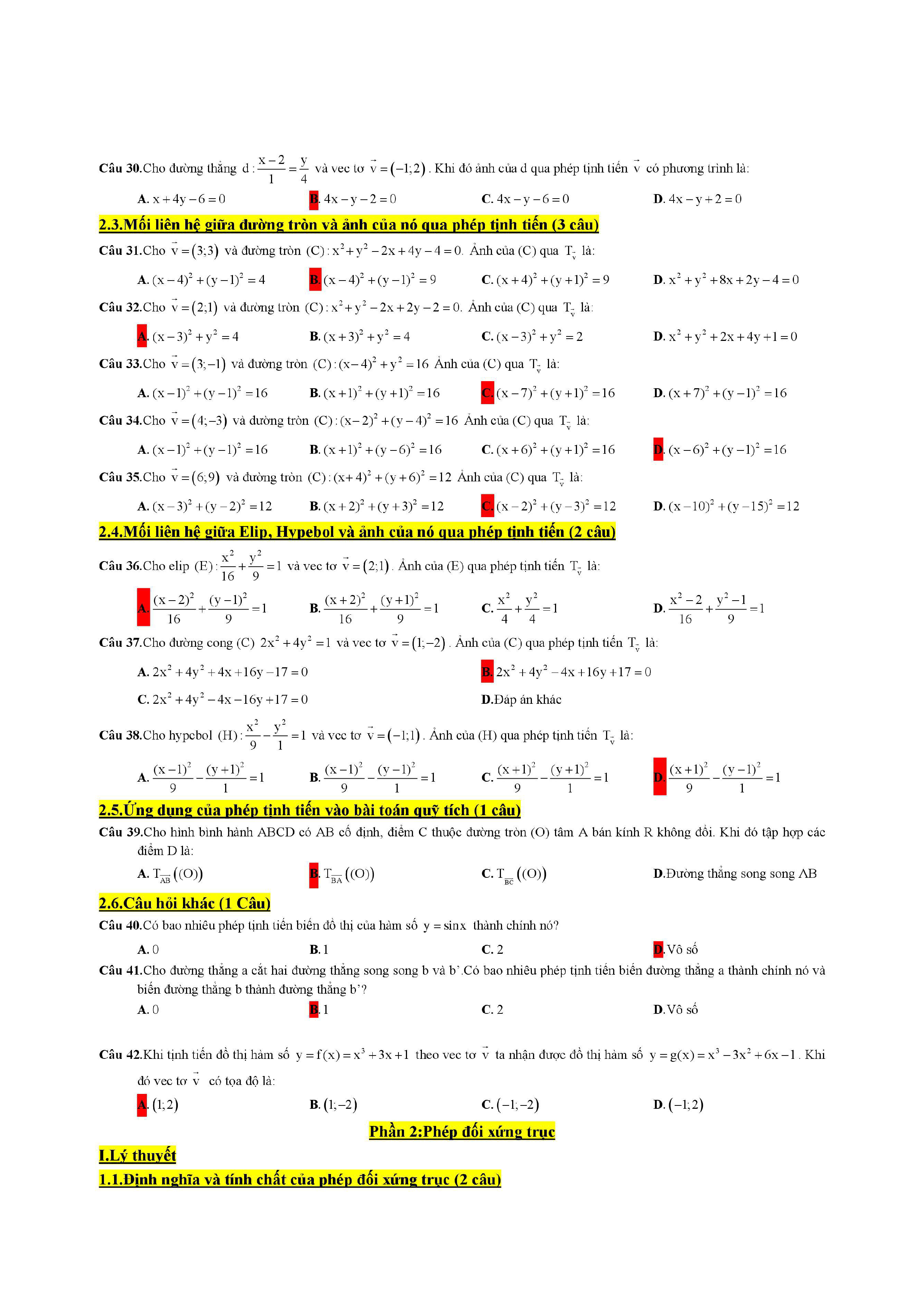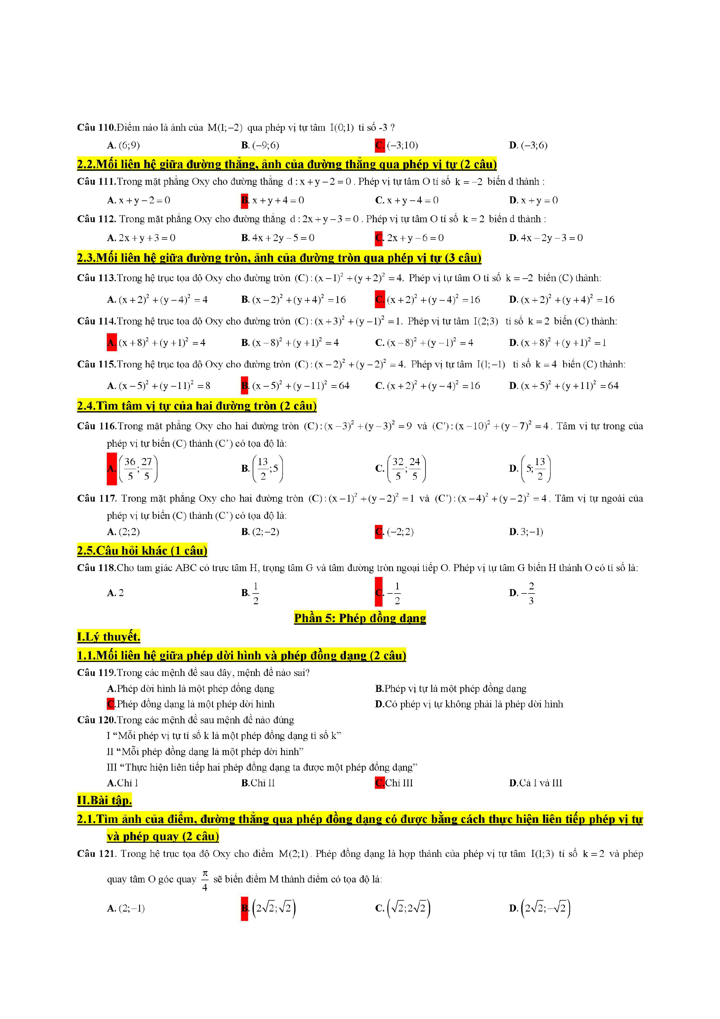 Trắc nghiệm phép dời hình và phép đồng dạng trong mặt phẳng lớp 11