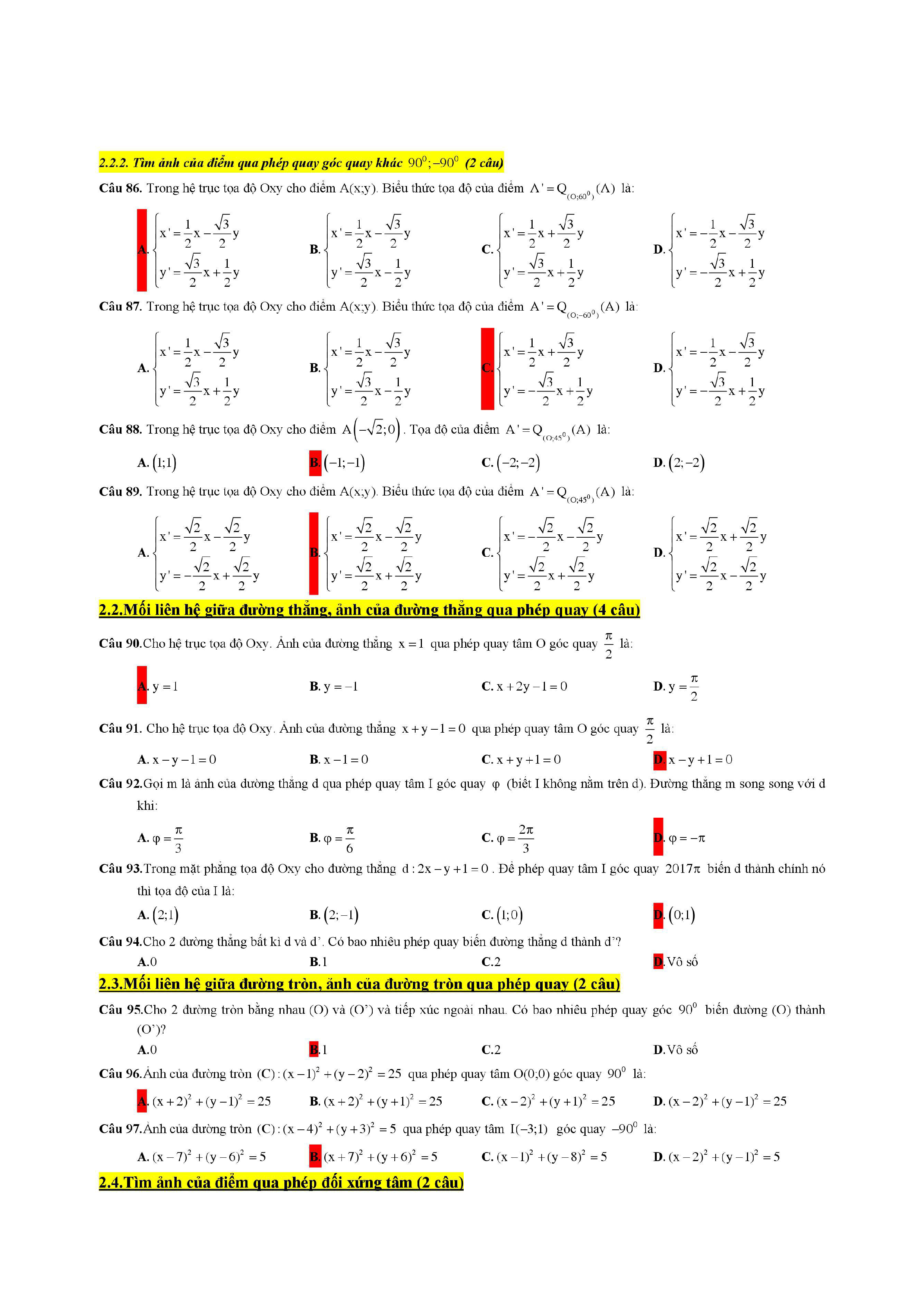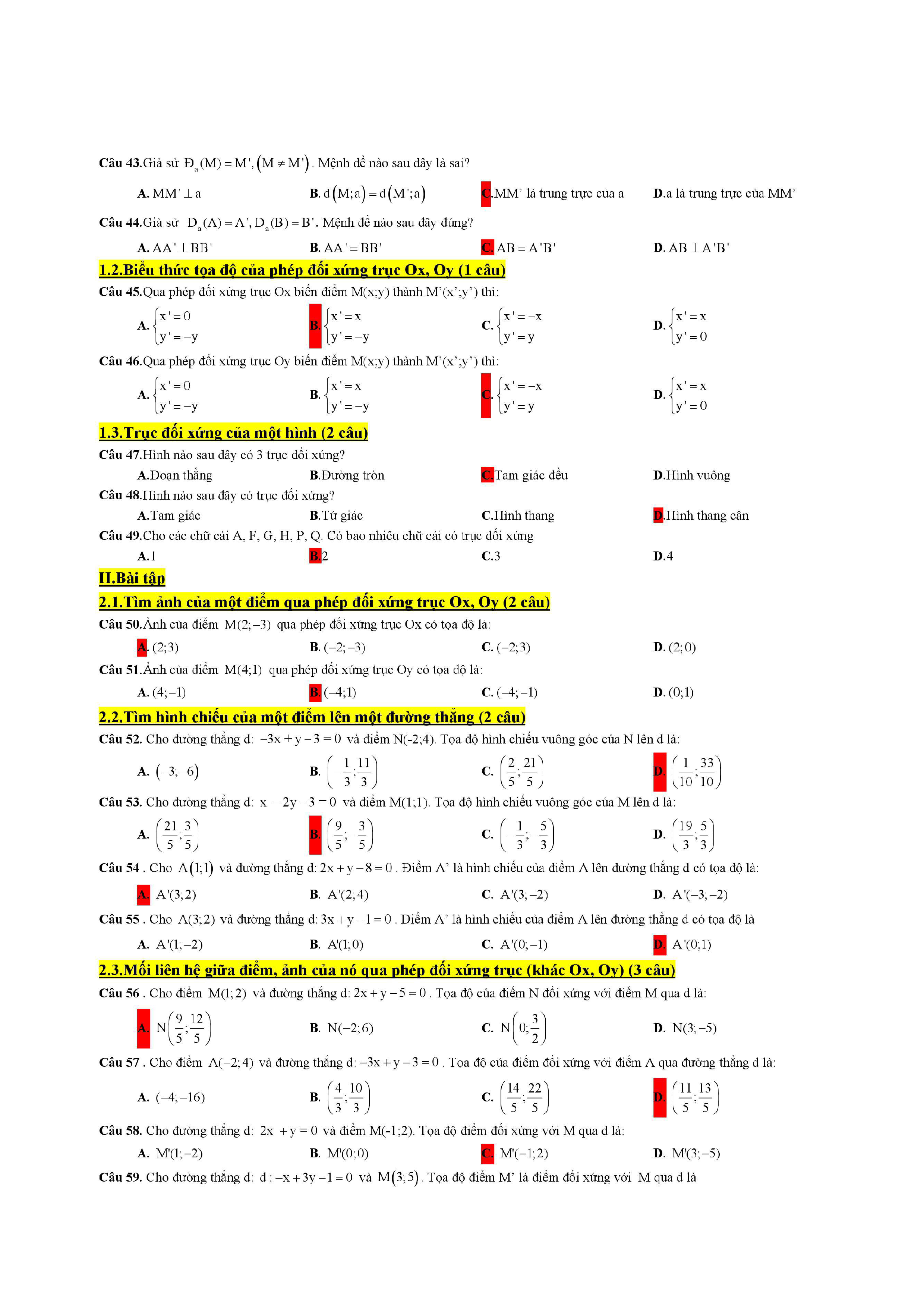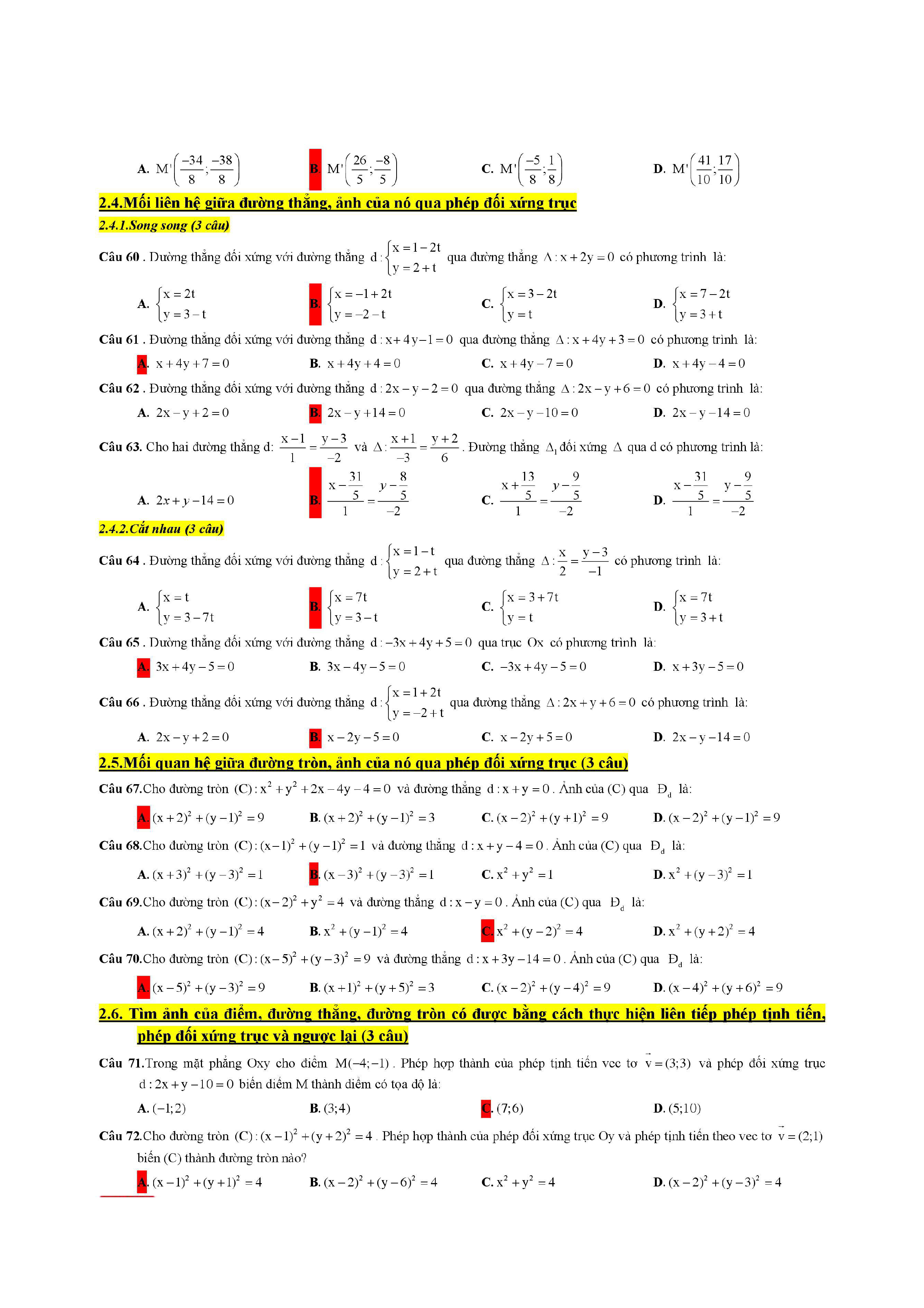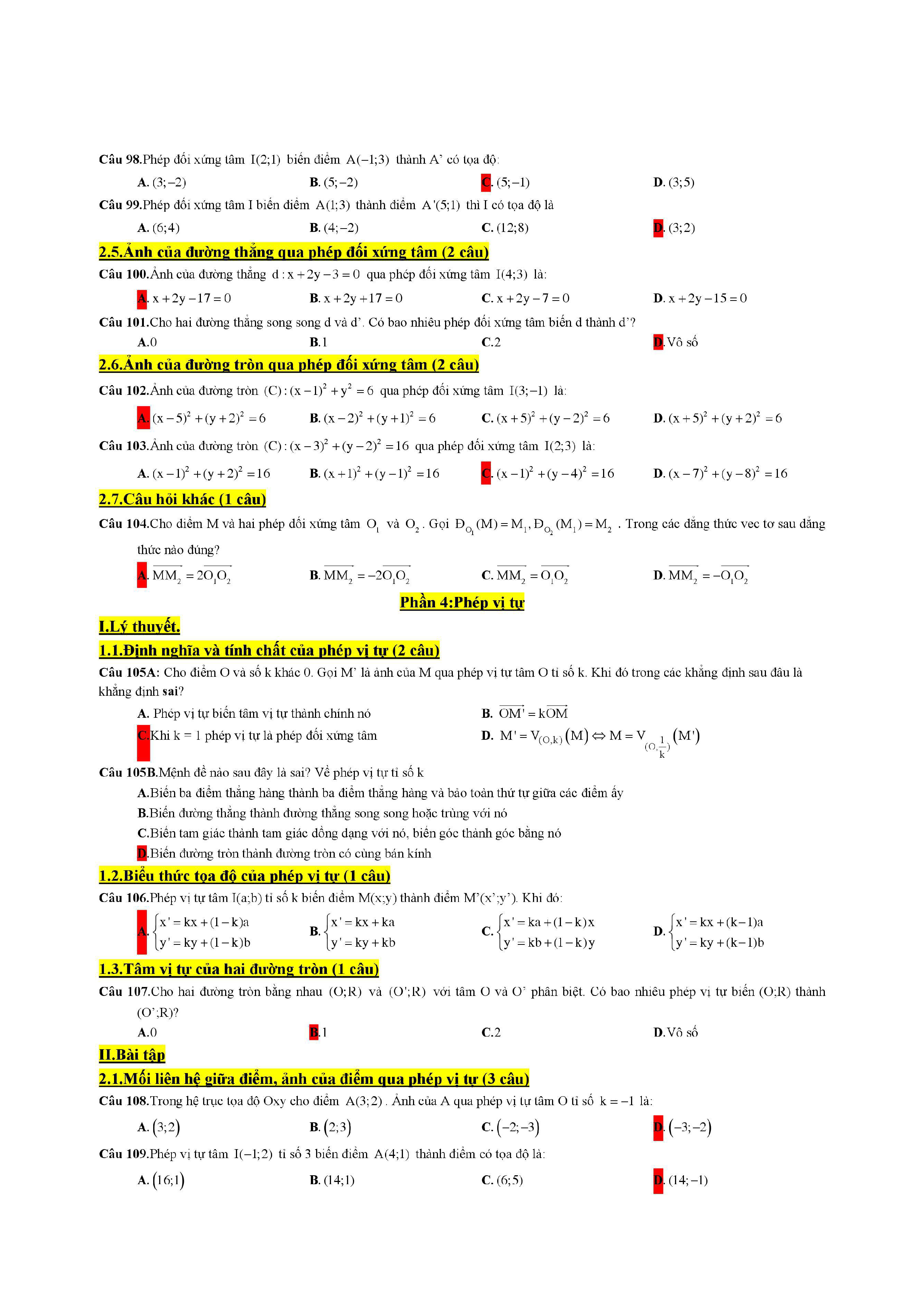 Trắc nghiệm phép dời hình và phép đồng dạng trong mặt phẳng lớp 11