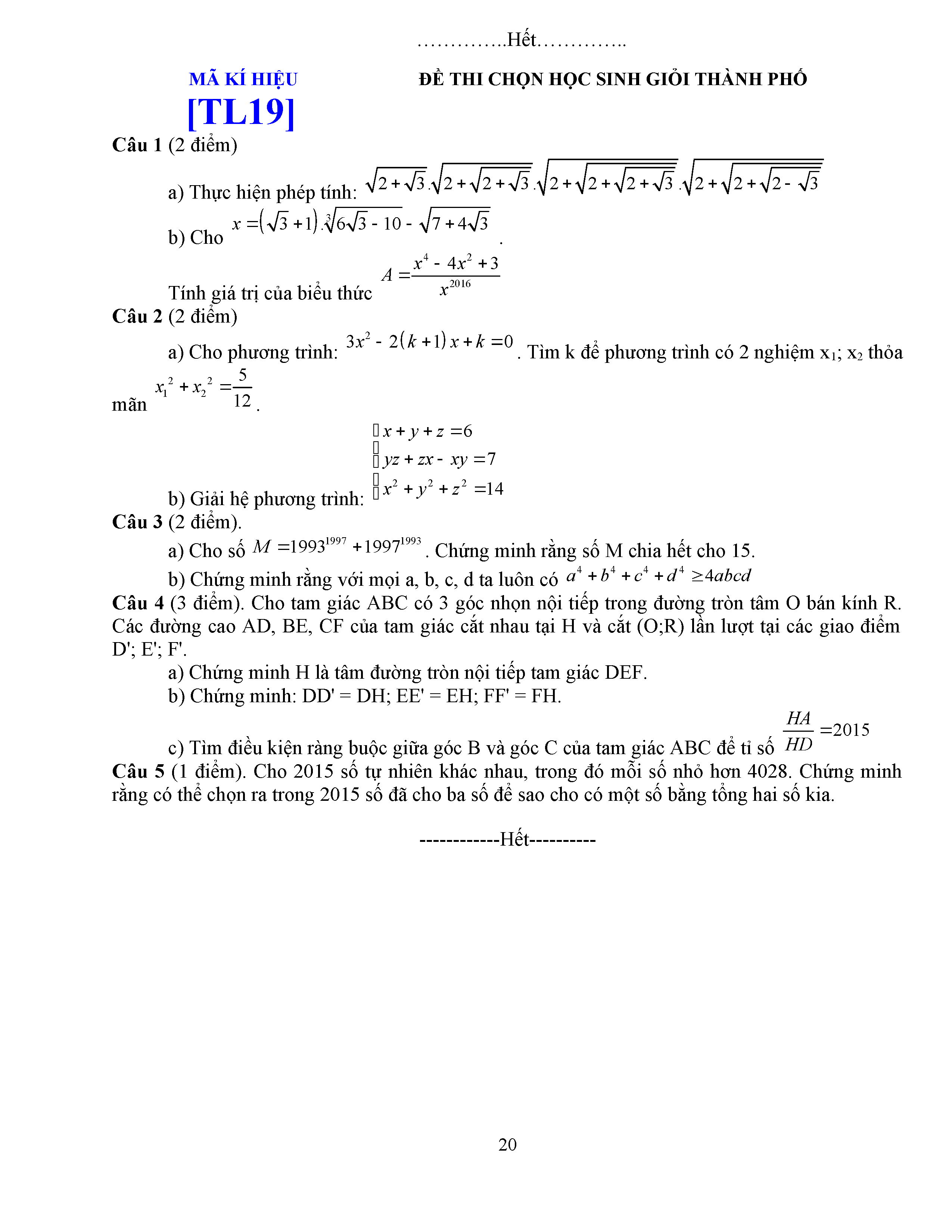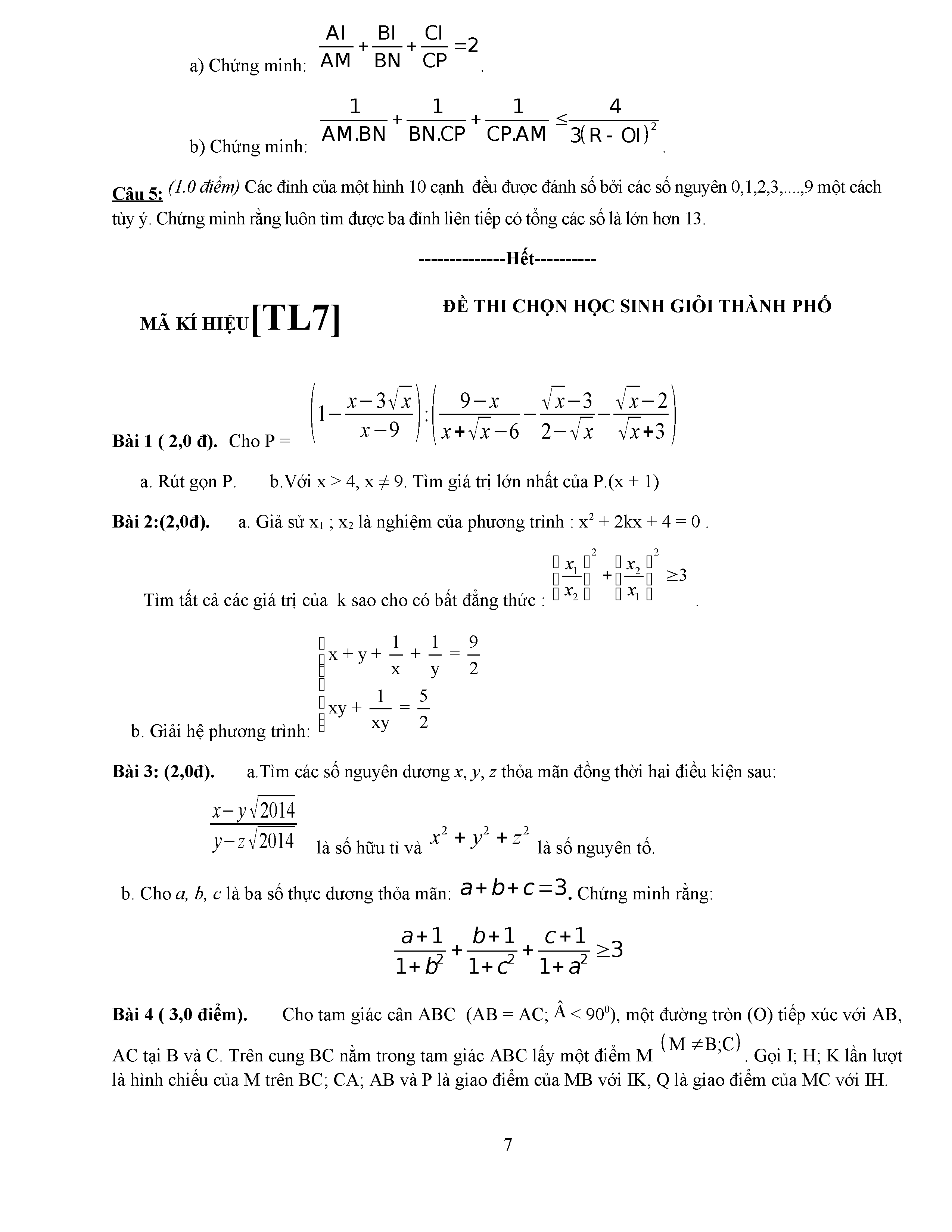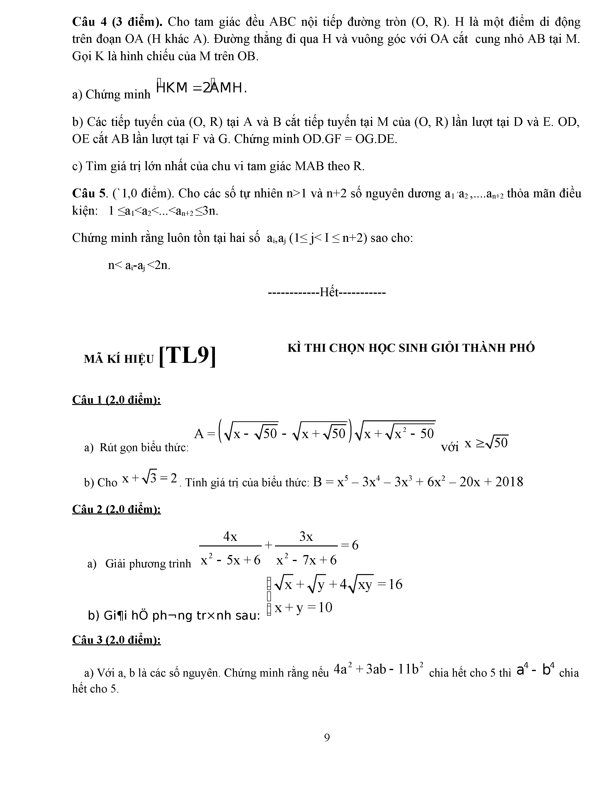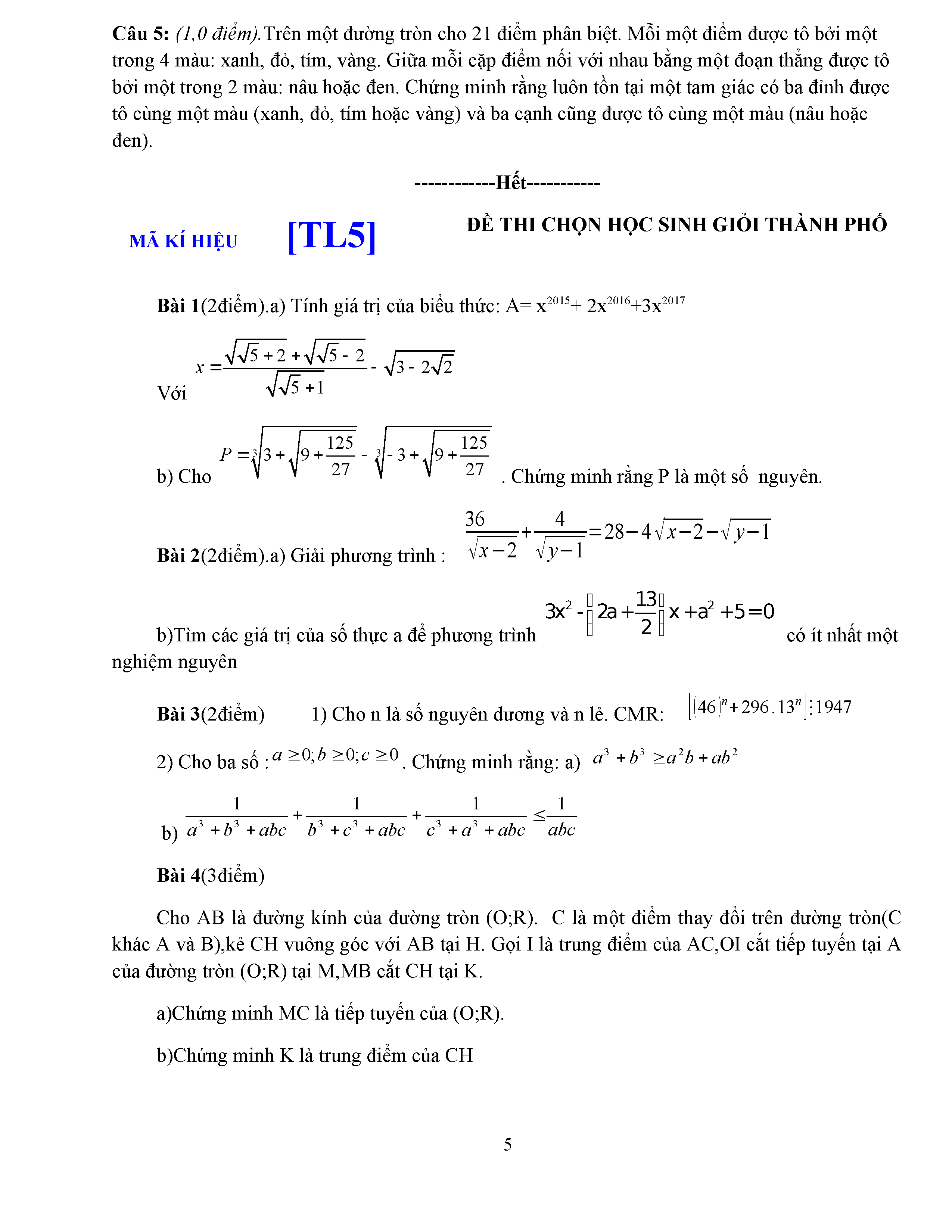 ĐỀ THI HSG LỚP 9 - MÔN TOÁN - ĐỀ 5