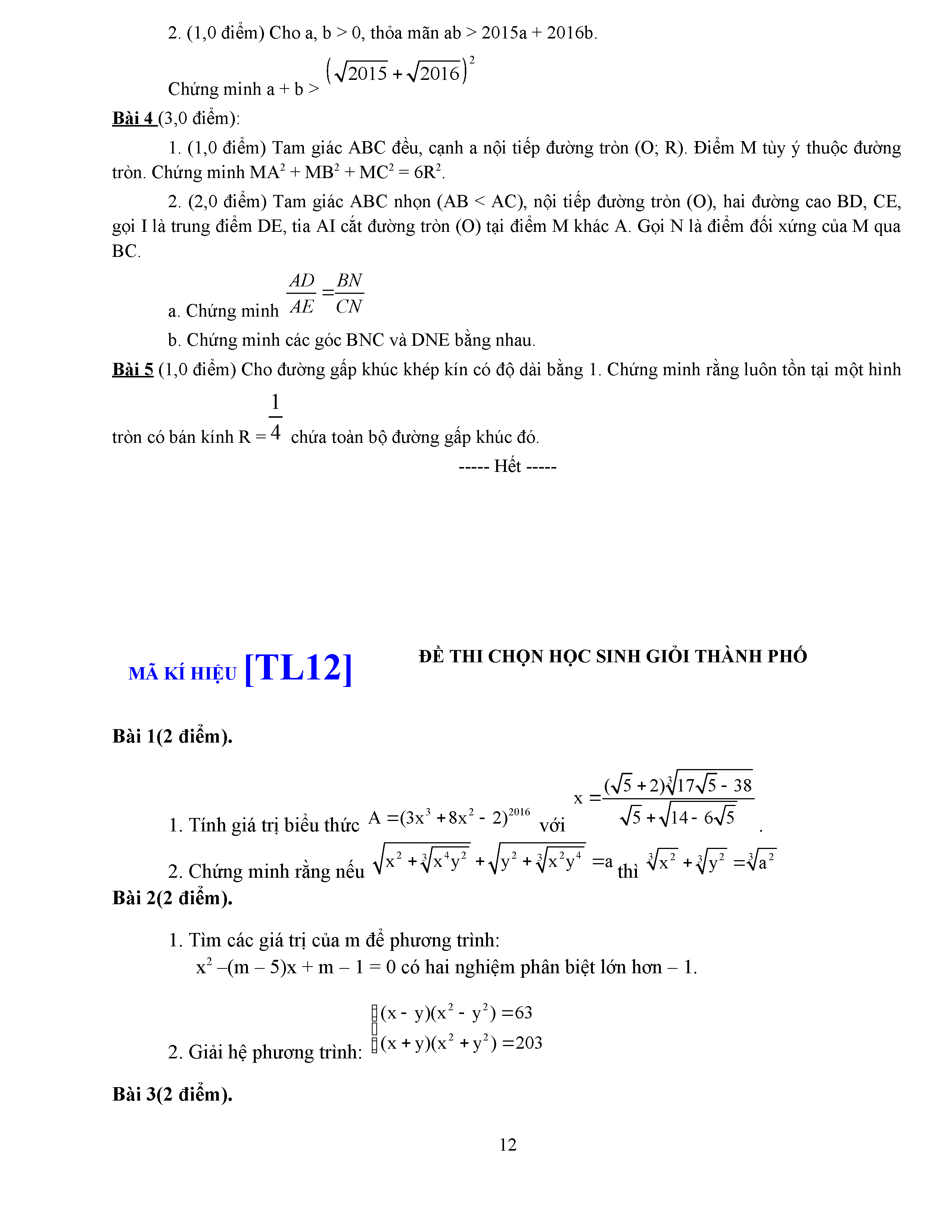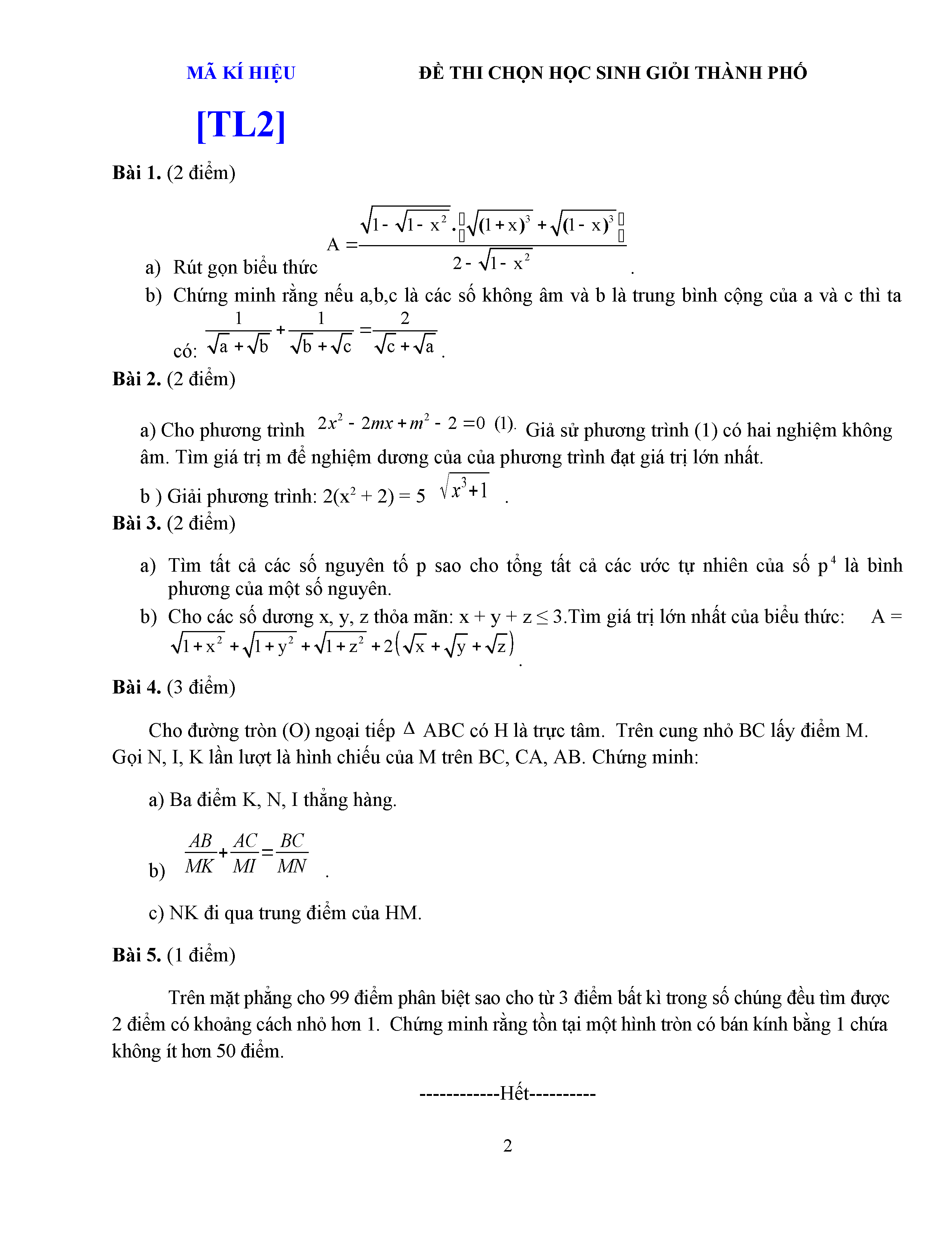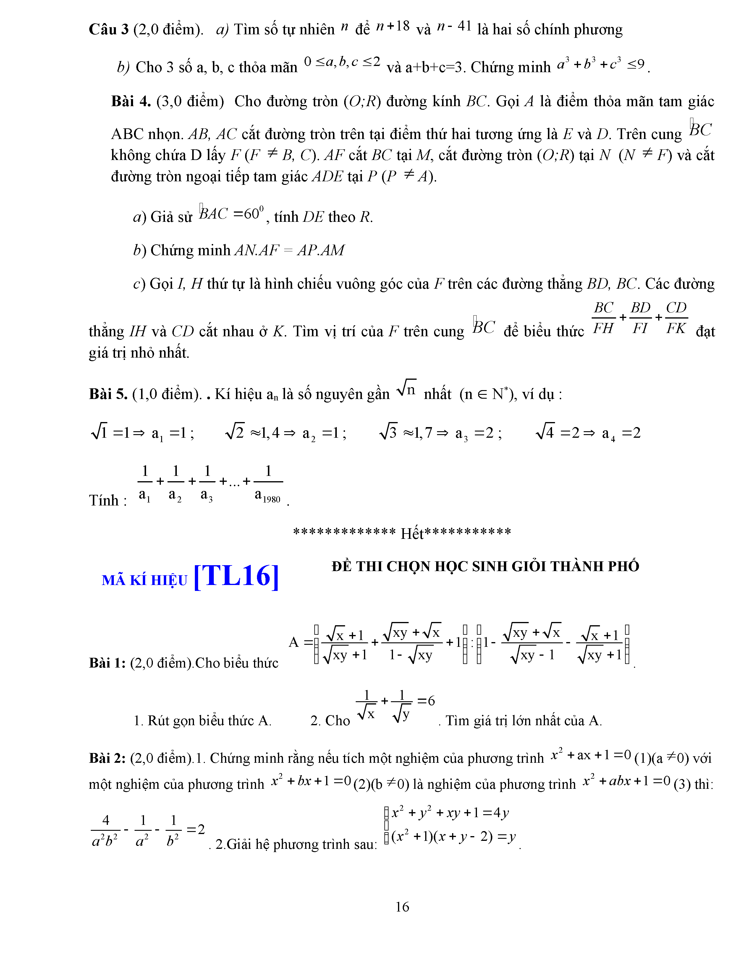 ĐỀ THI HSG LỚP 9 - MÔN TOÁN - ĐỀ 5