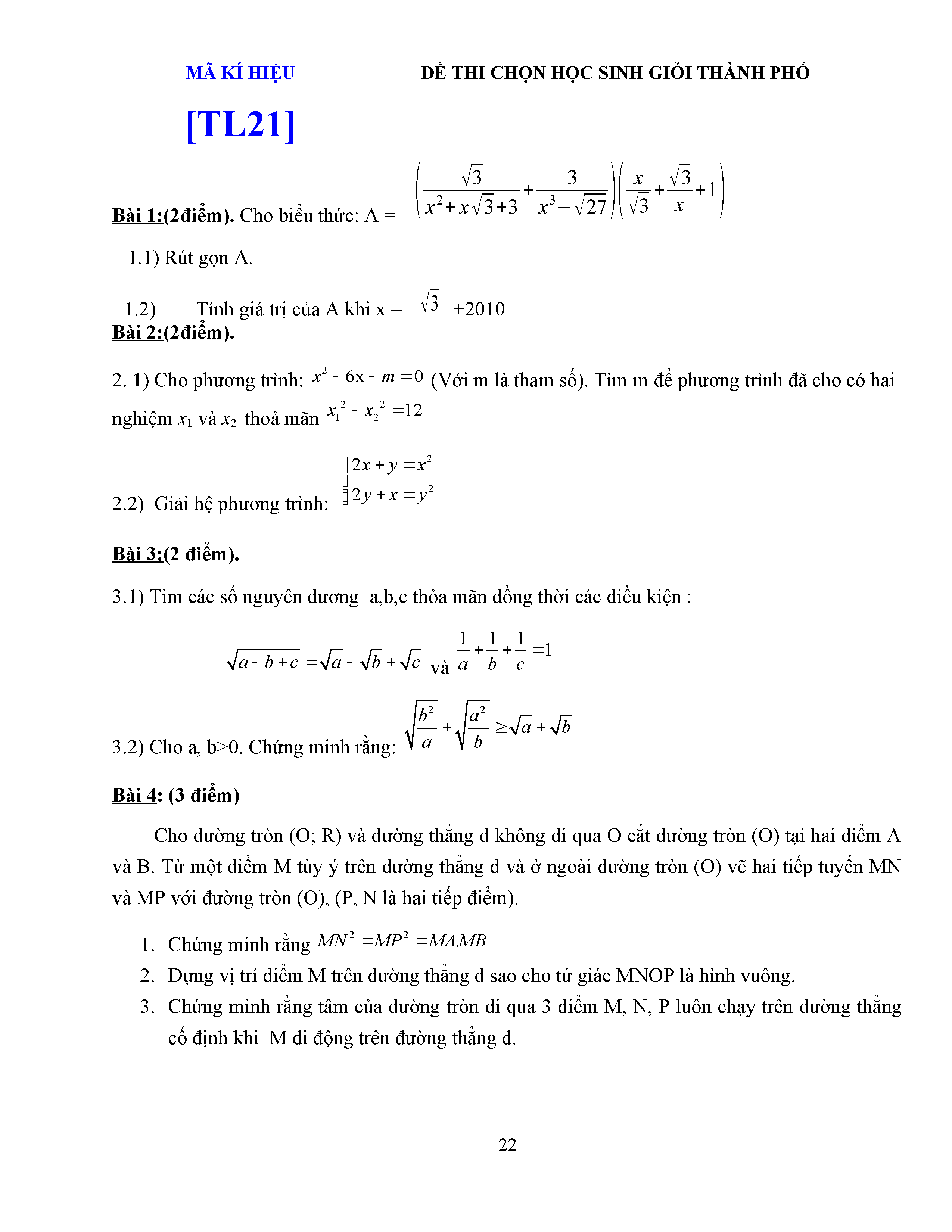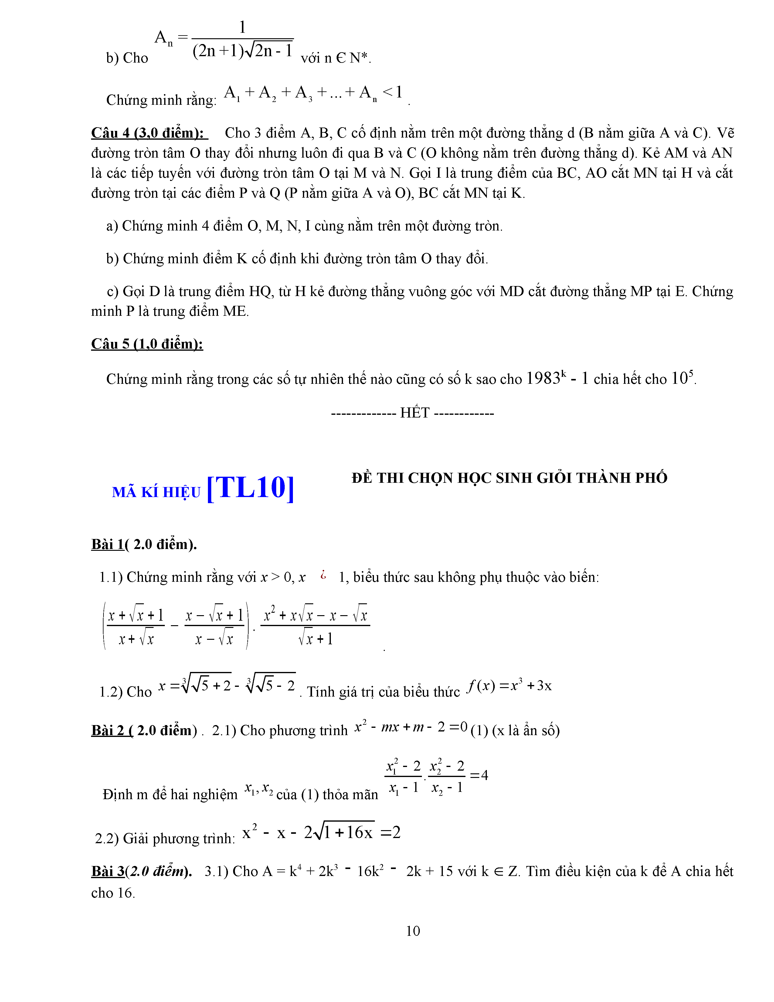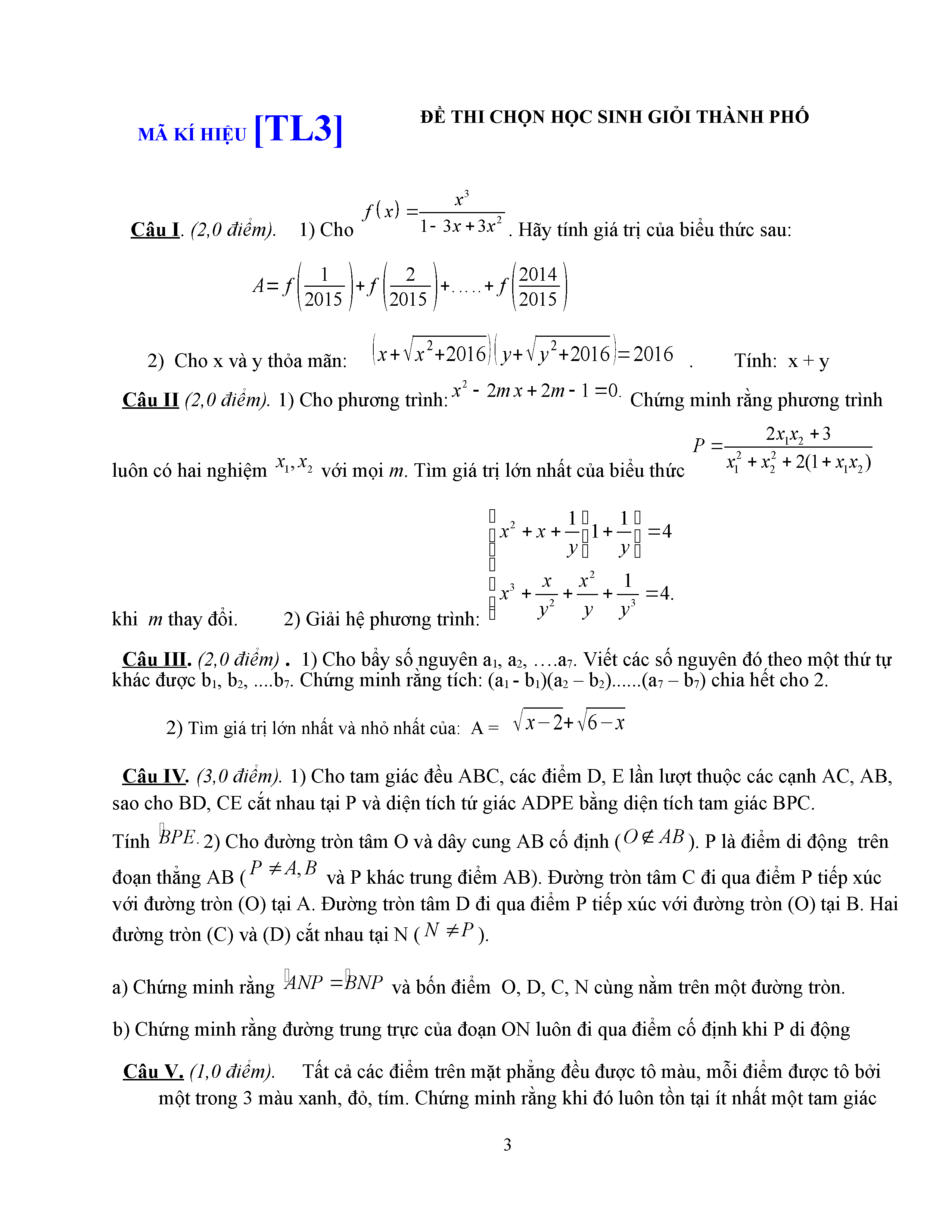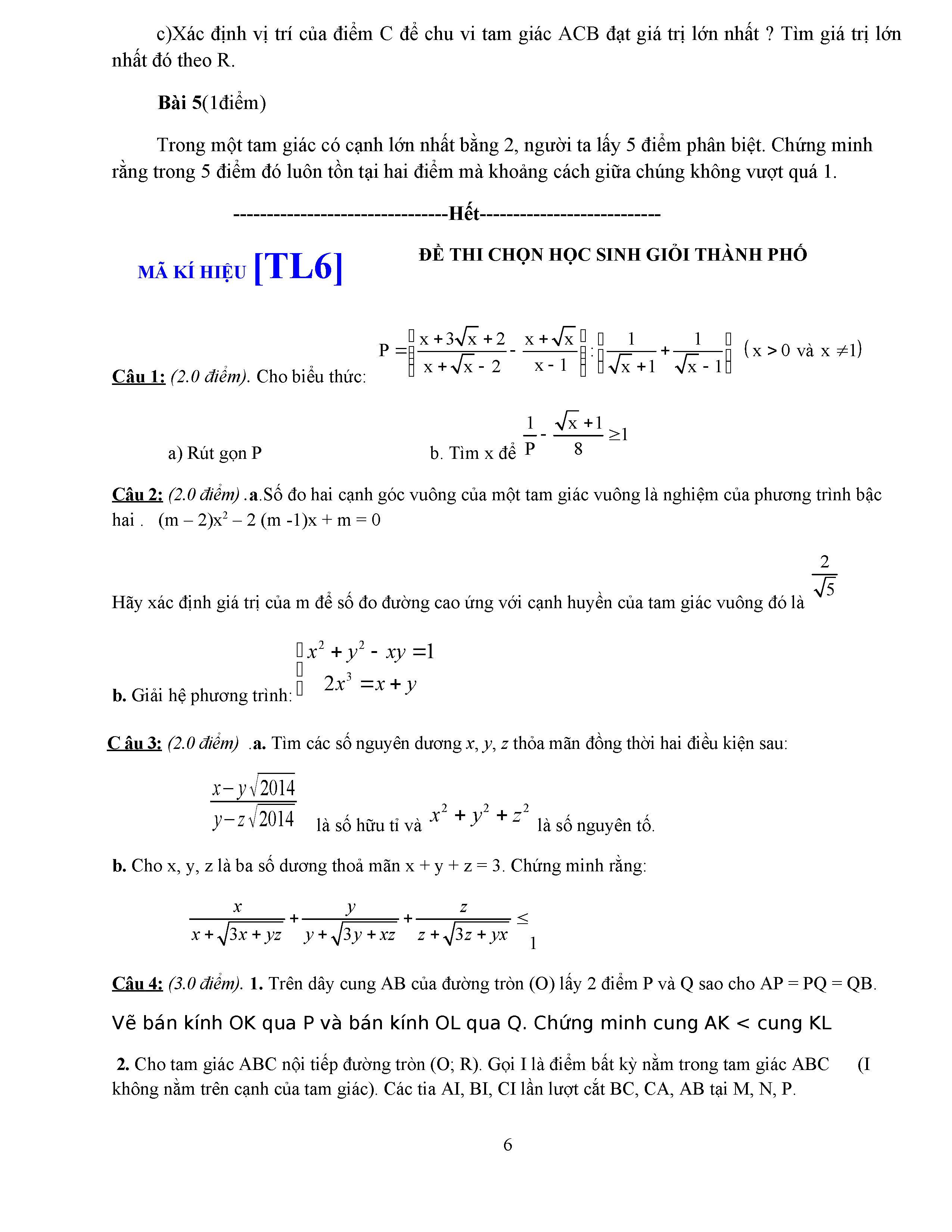 ĐỀ THI HSG LỚP 9 - MÔN TOÁN - ĐỀ 5