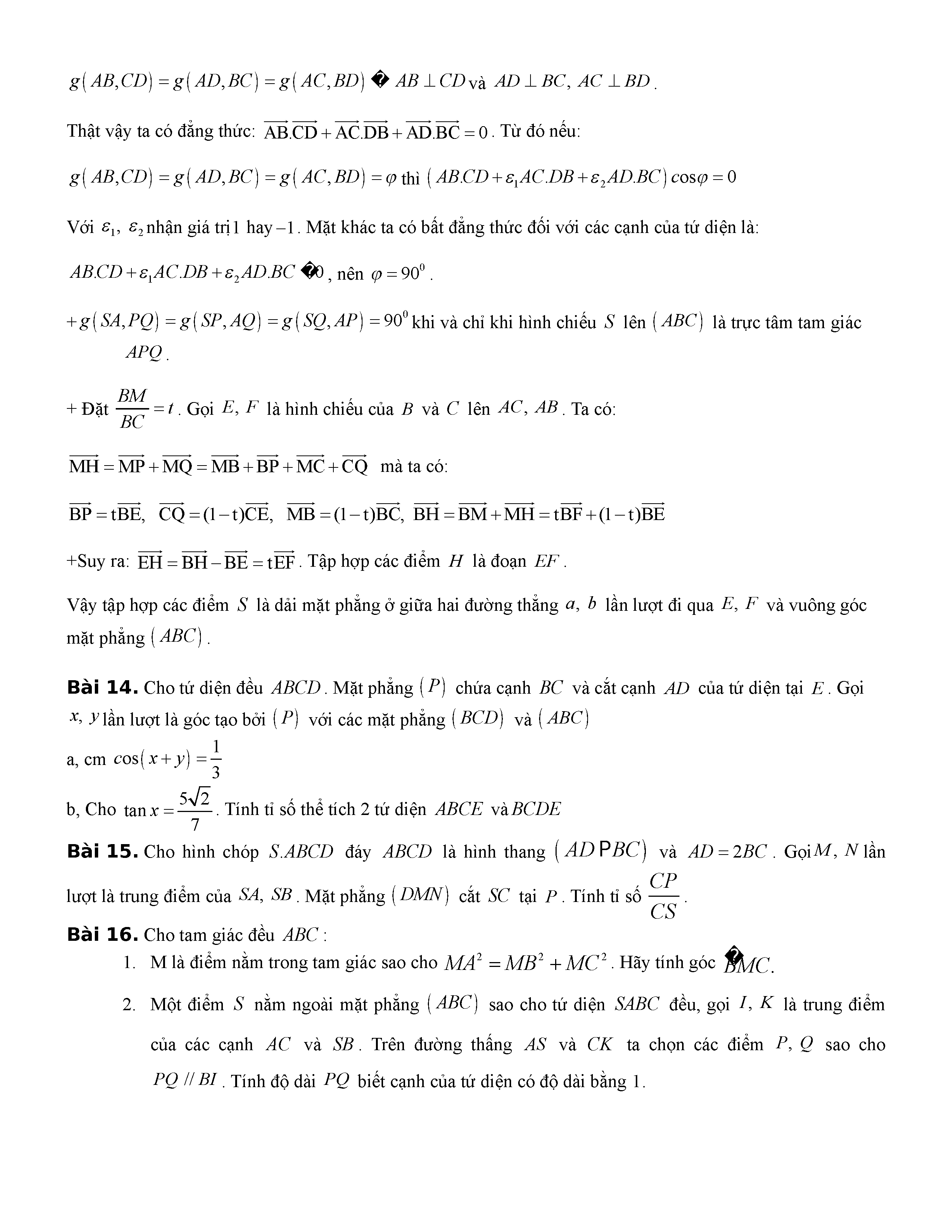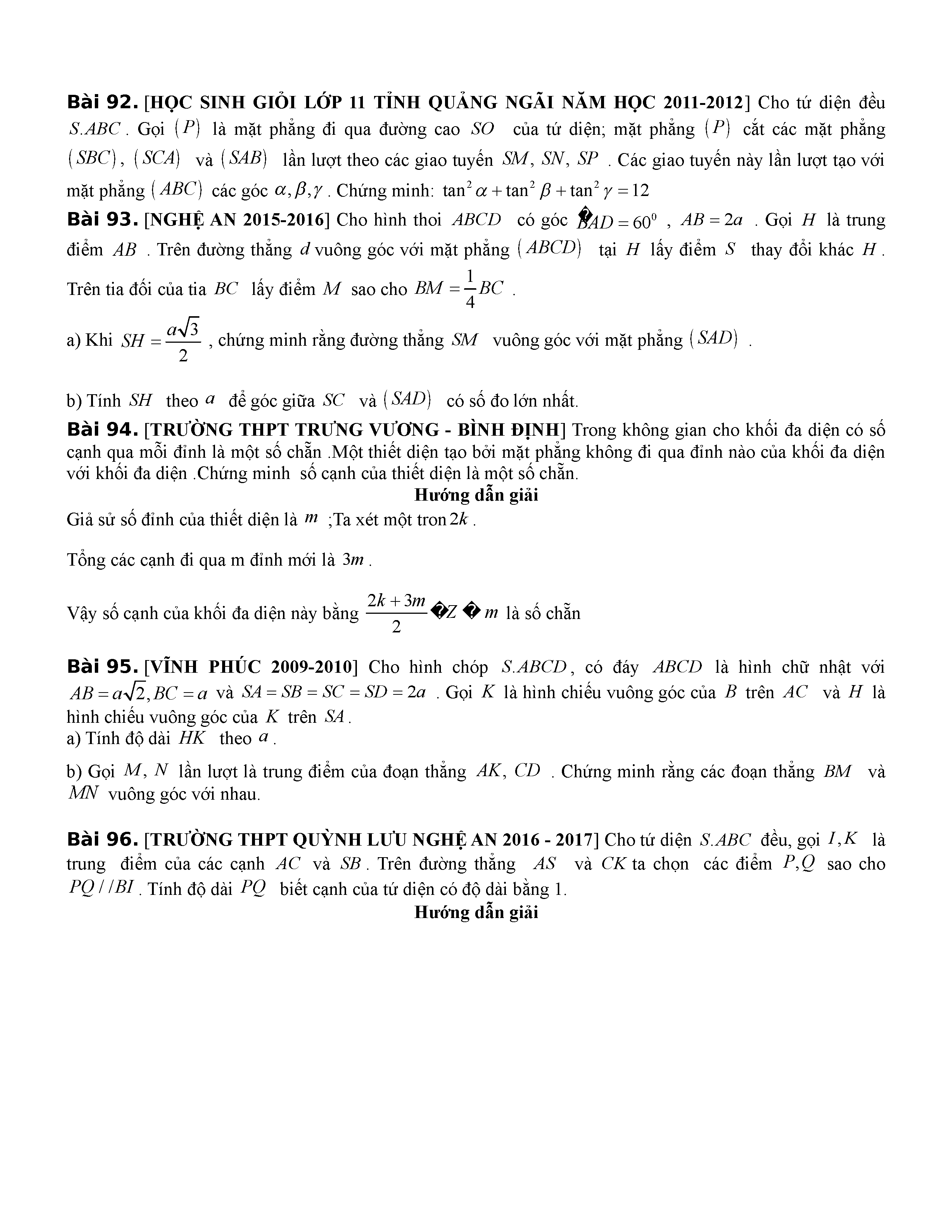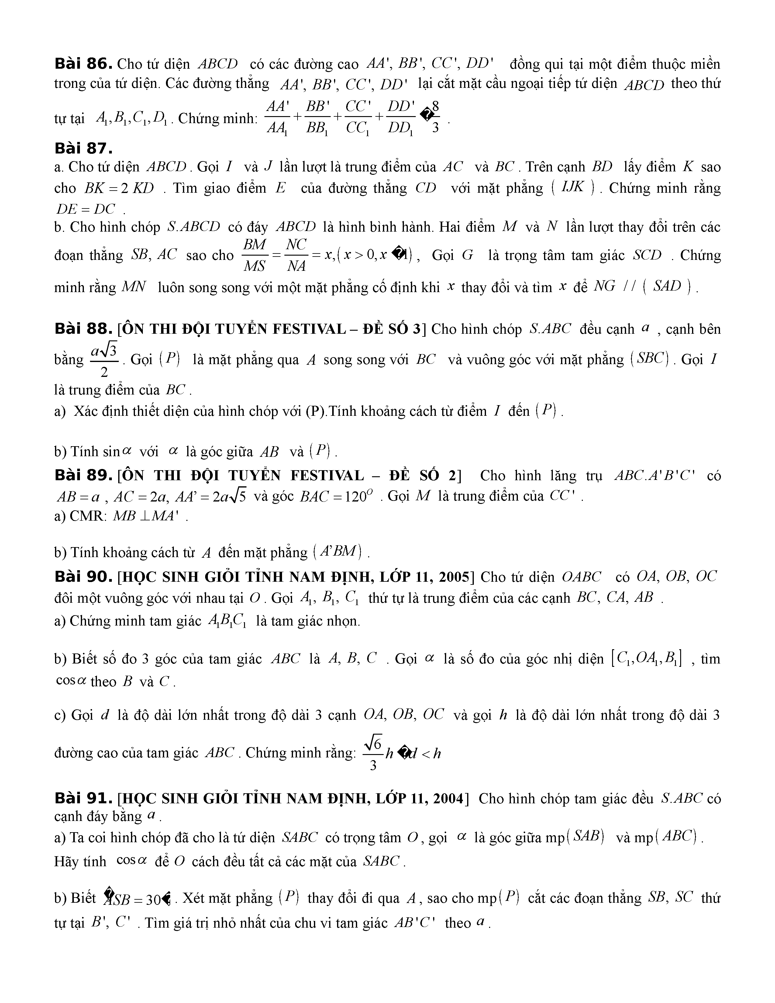Chuyên đề hình học không gian - đề thi HSG toán lớp 11