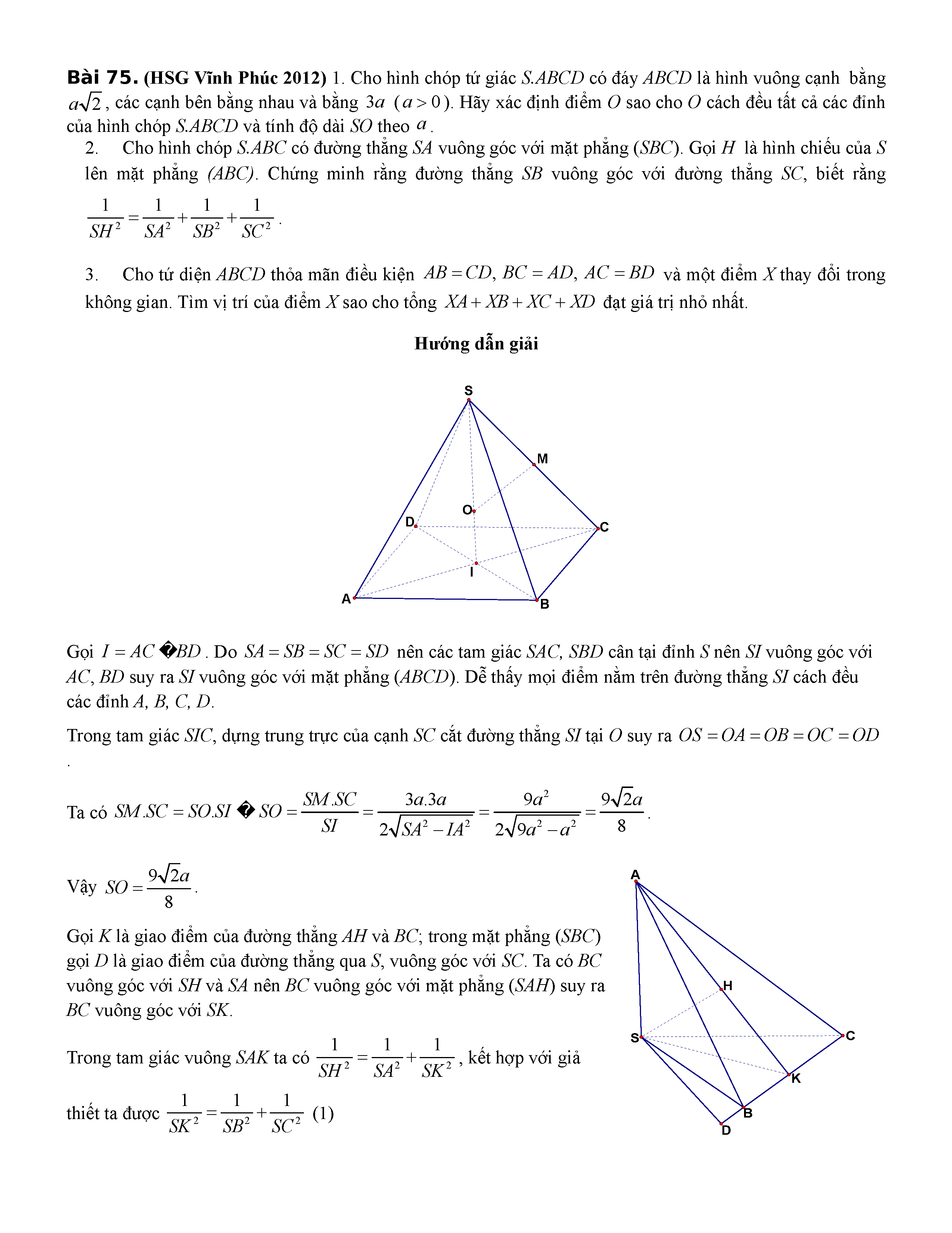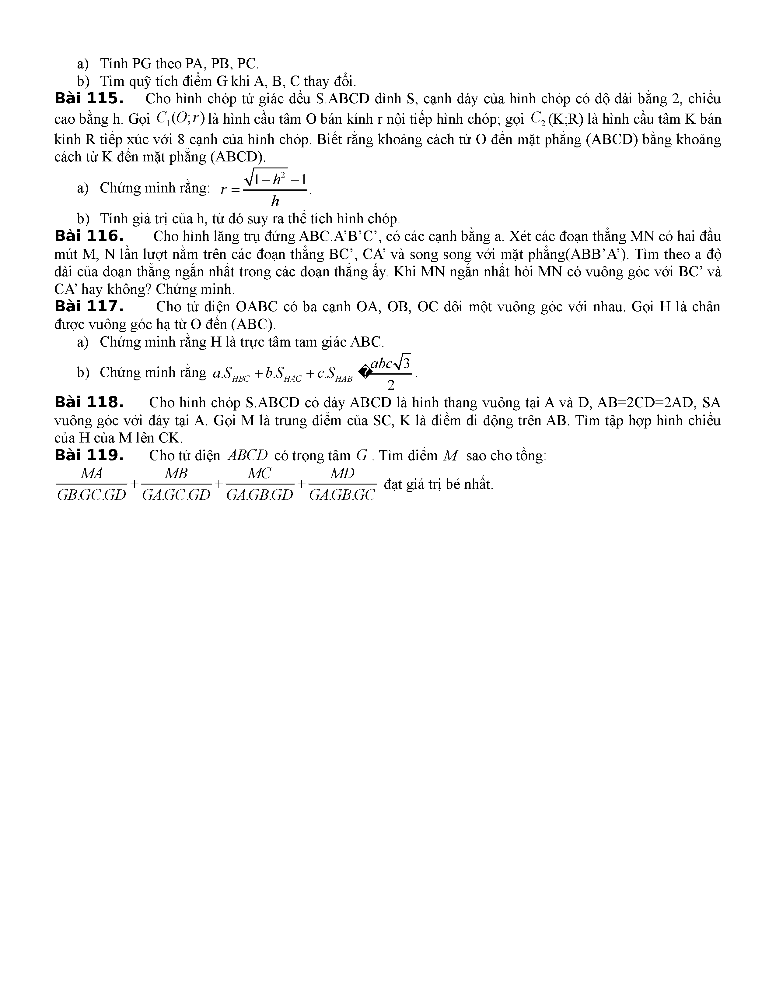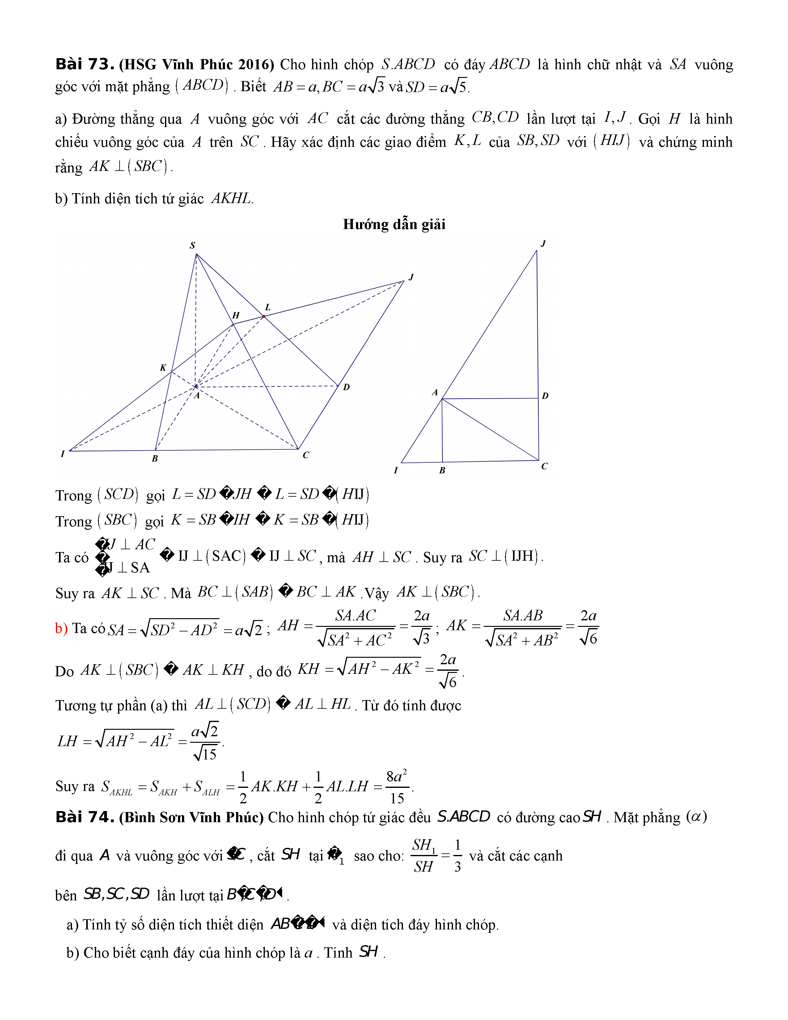 Chuyên đề hình học không gian - đề thi HSG toán lớp 11