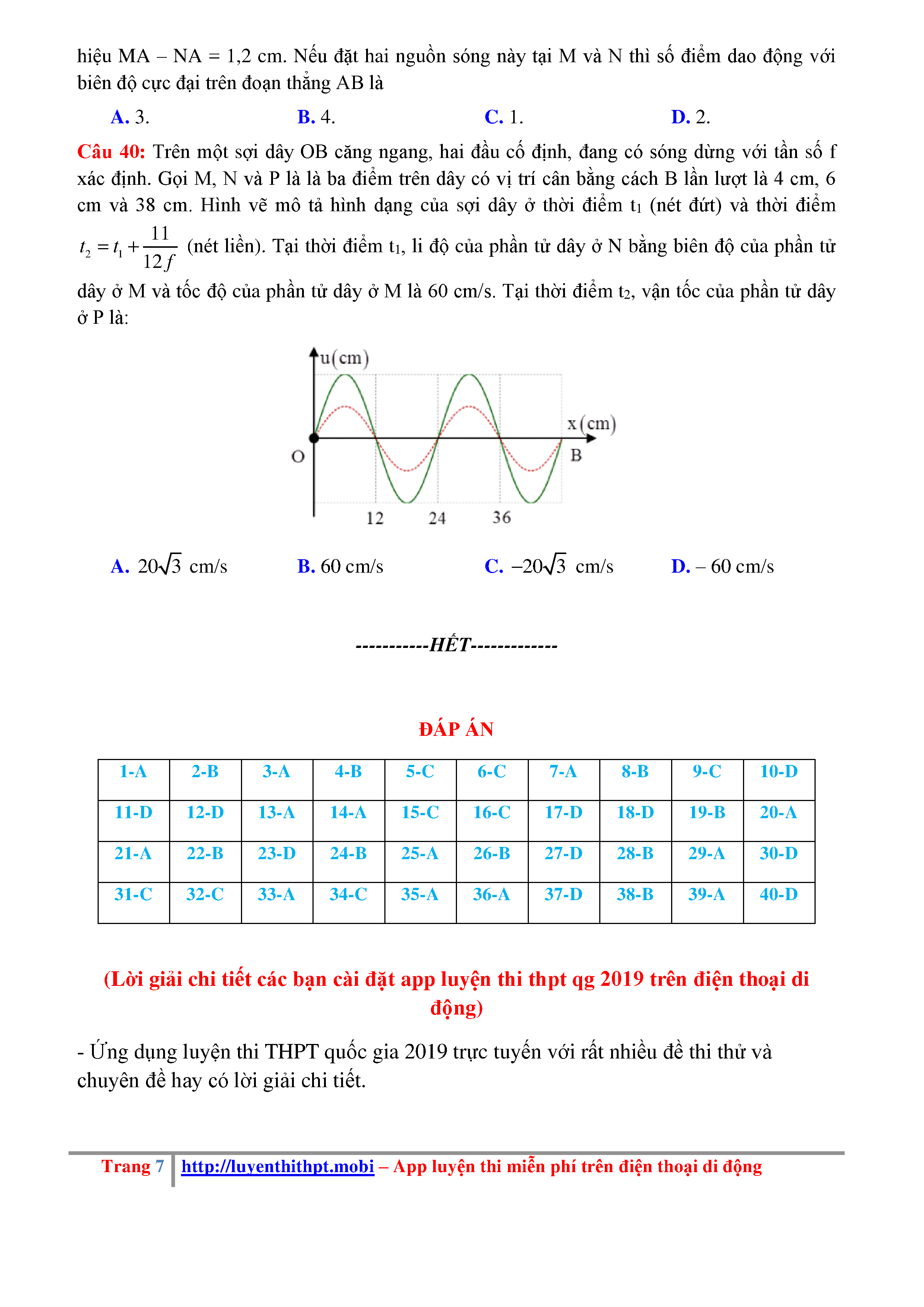 Đề thi thử THPTQG 2019 - Vật Lý - THPT Lý Thái Tổ - Bắc Ninh - Lần 1 - có lời giải