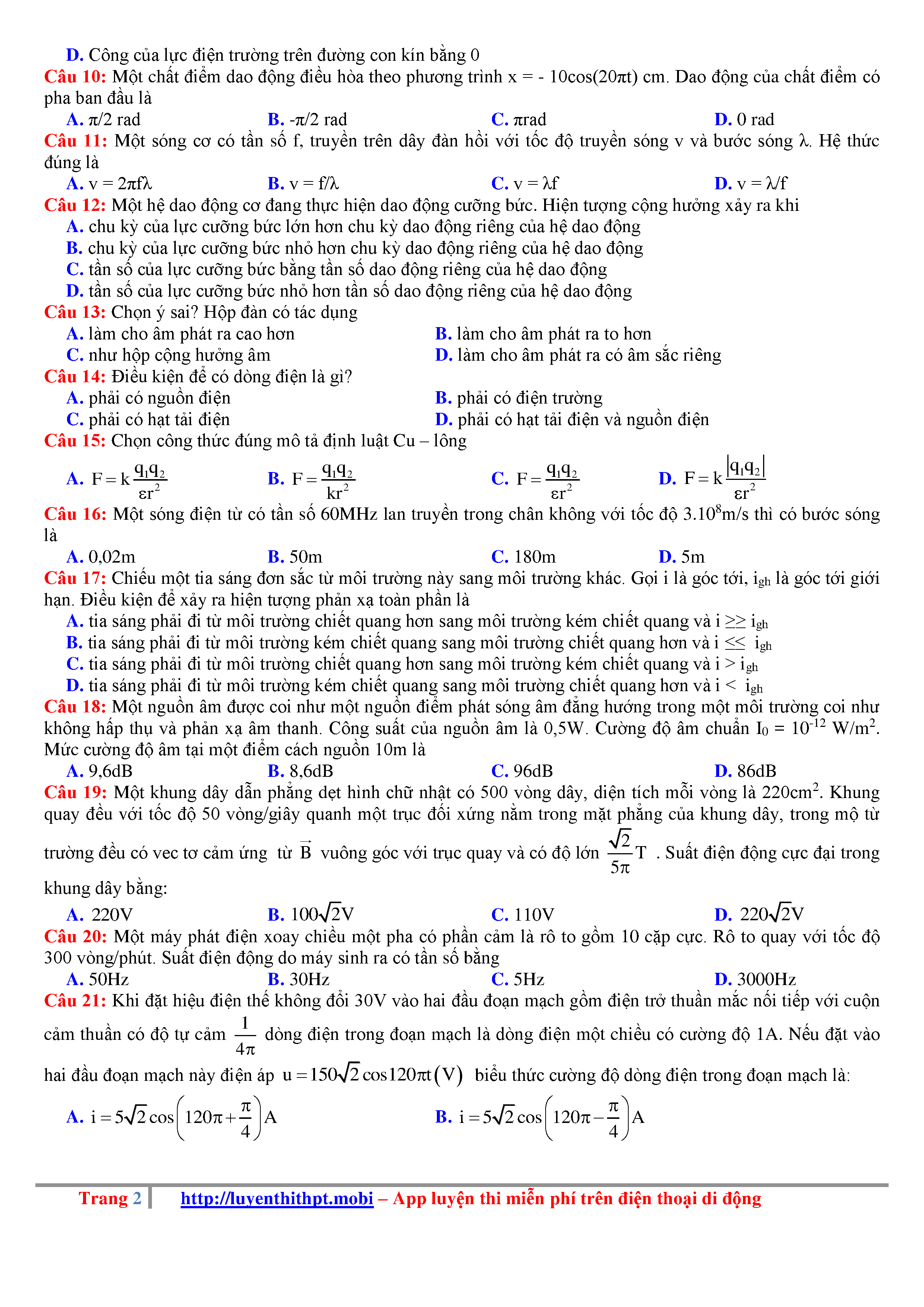Đề thi thử THPTQG 2019 - Vật Lý - THPT Chuyên Trần Phú - Hải Phòng - Lần 1 - có lời giải