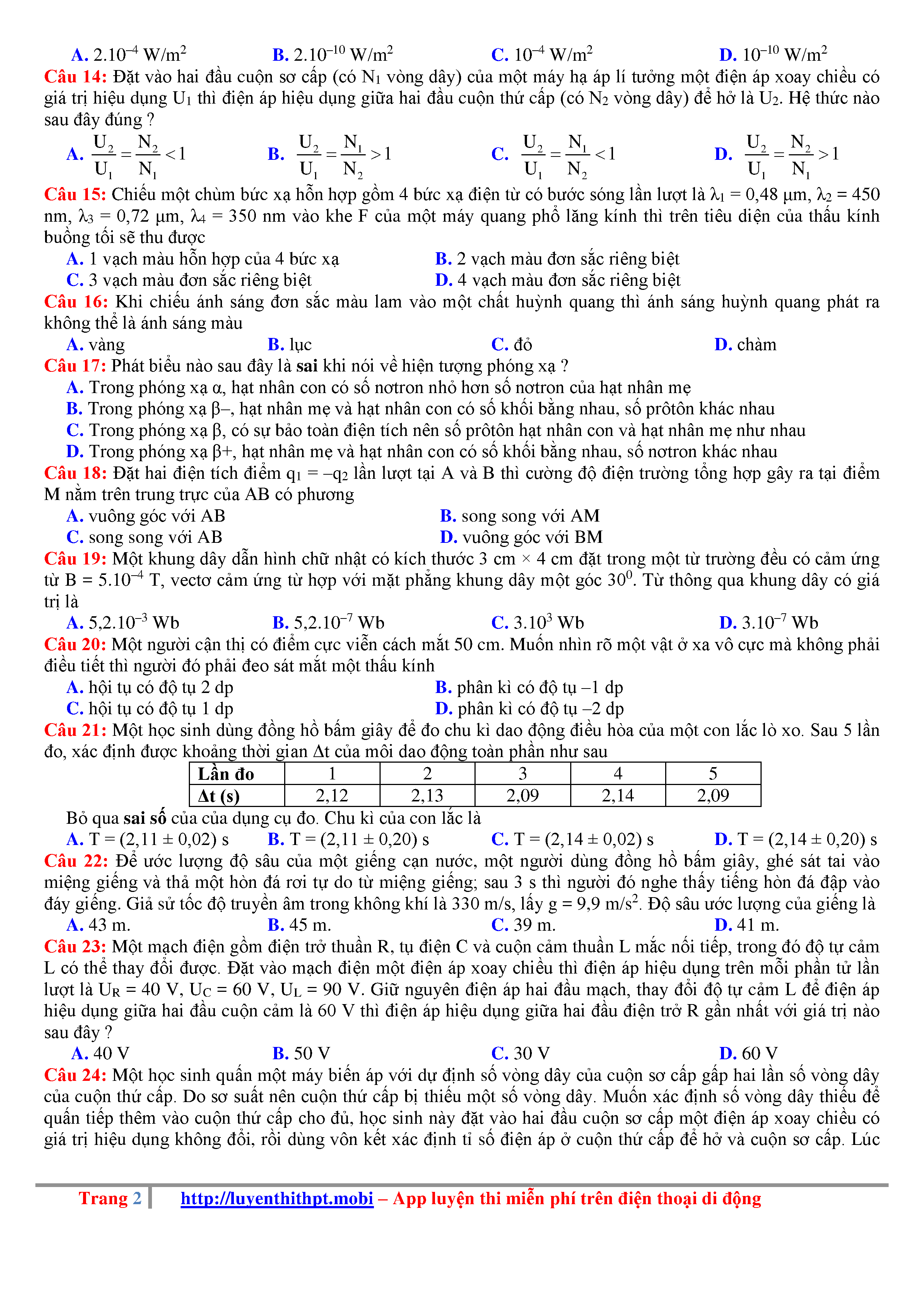 Đề thi thử THPTQG 2019 - Vật Lý - Sở GD_ĐT Bình Dương - Lần 1 - có lời giải