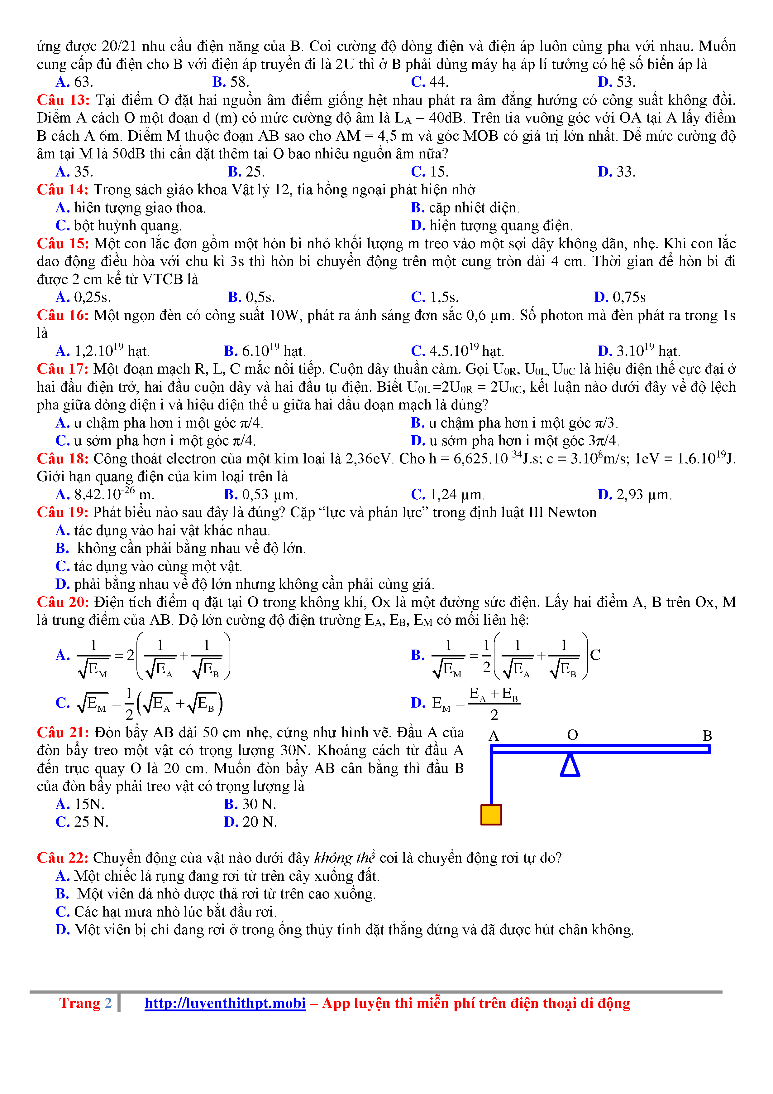 Đề thi thử THPTQG 2019 - Vật Lý - THPT Chuyên Bắc Ninh - Lần 3 - có lời giải