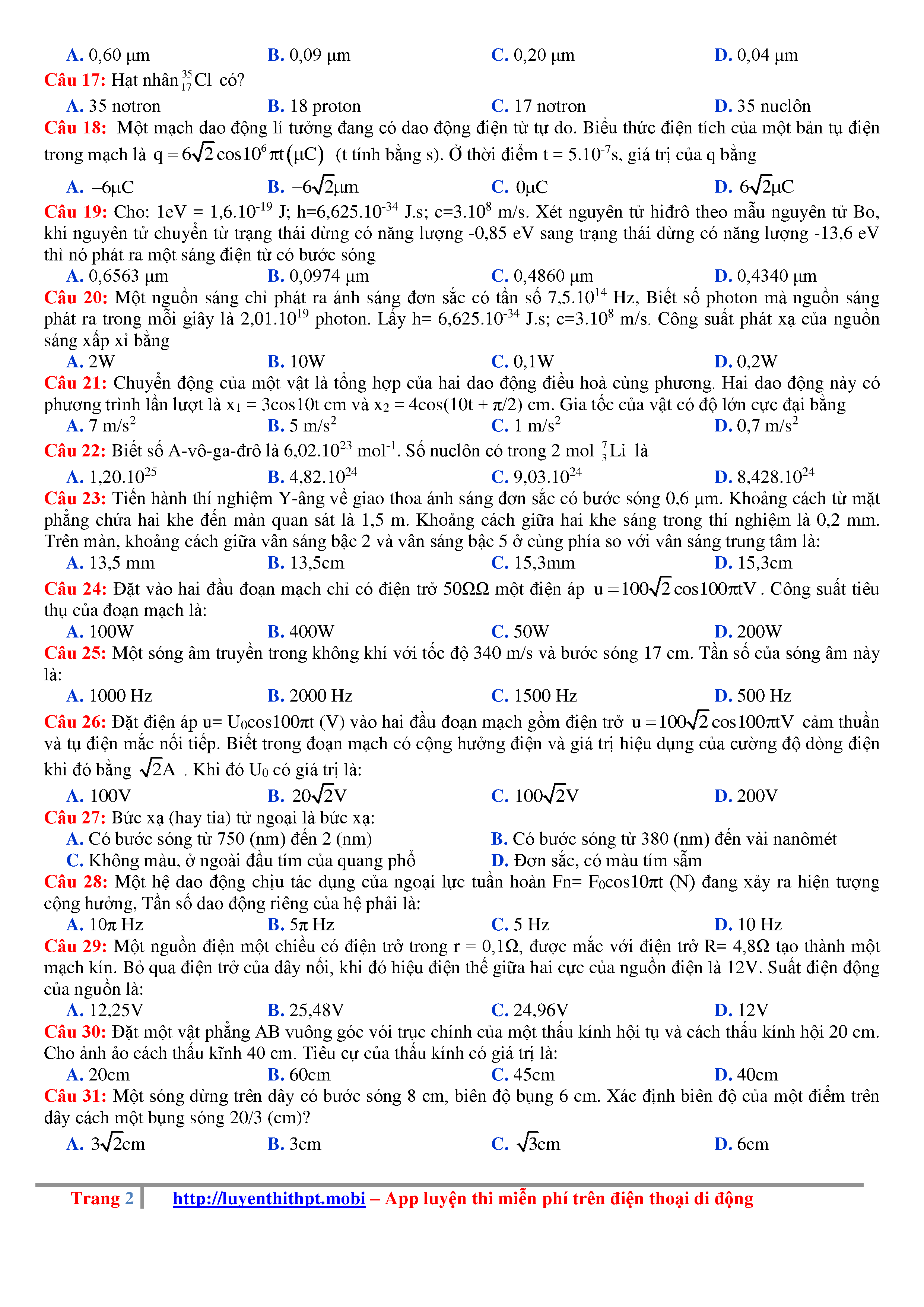 Đề thi thử THPTQG 2019 - Vật Lý - THPT Chuyên Hoàng Văn Thụ - Hòa Bình - Lần 1 - có lời giải