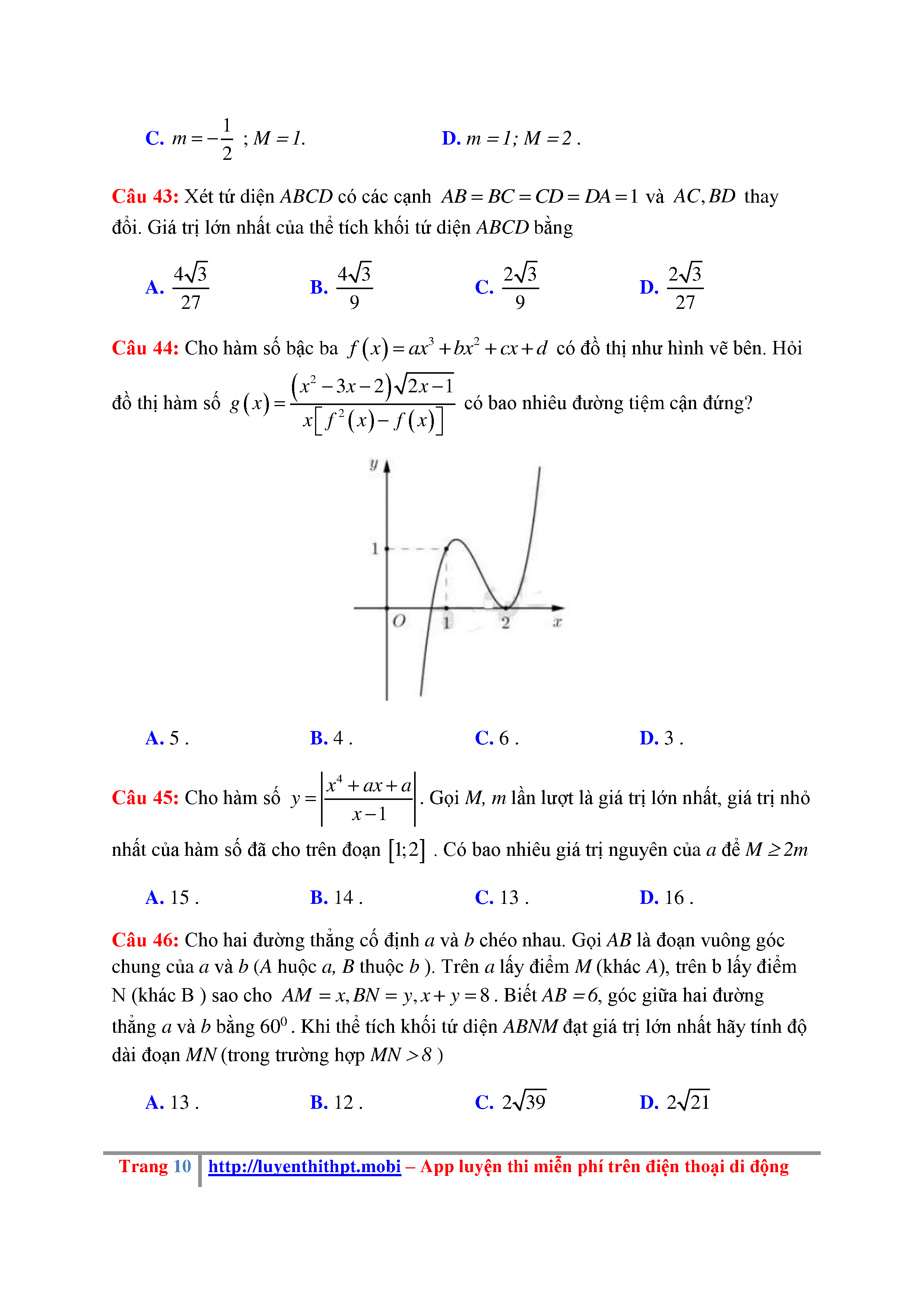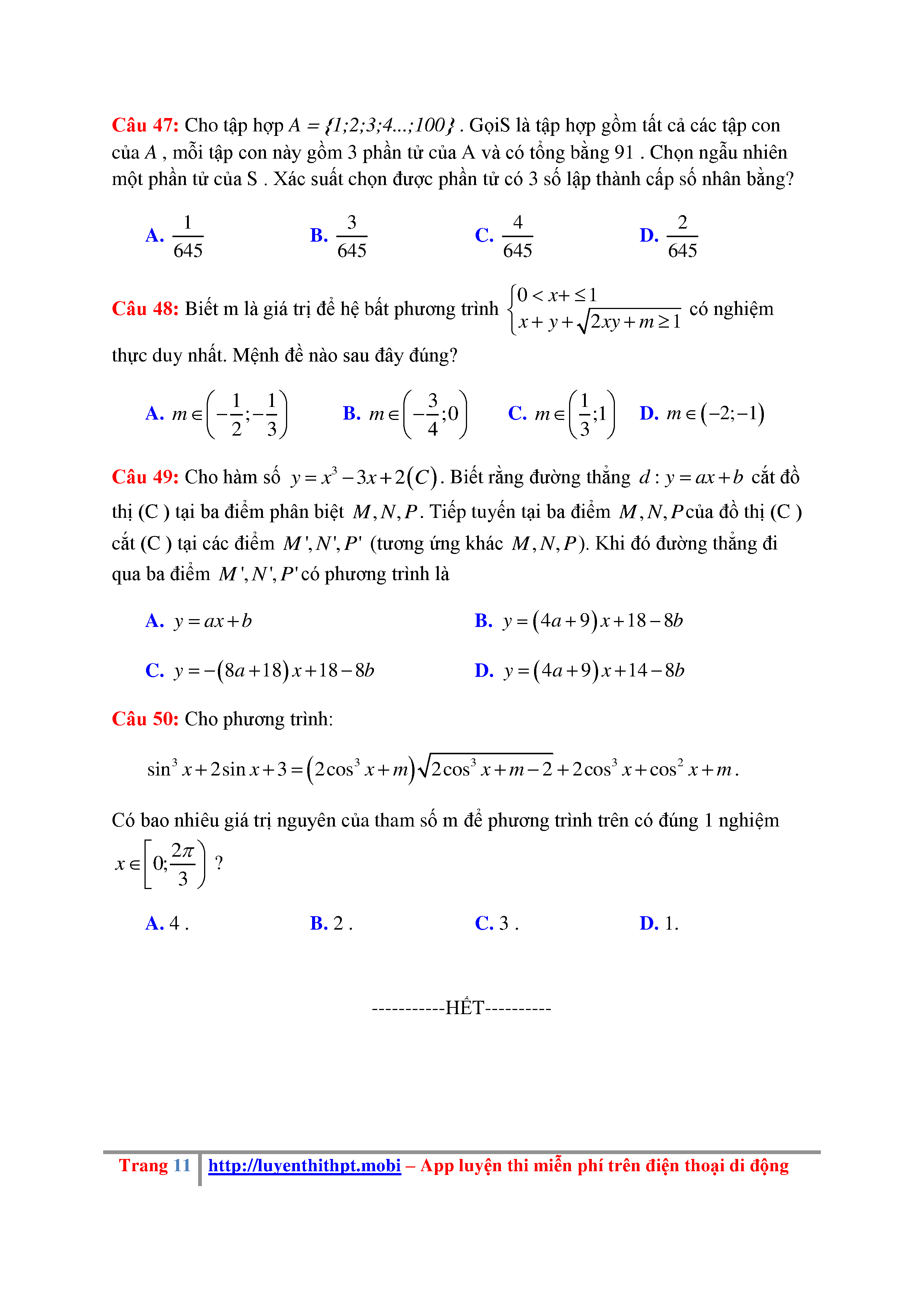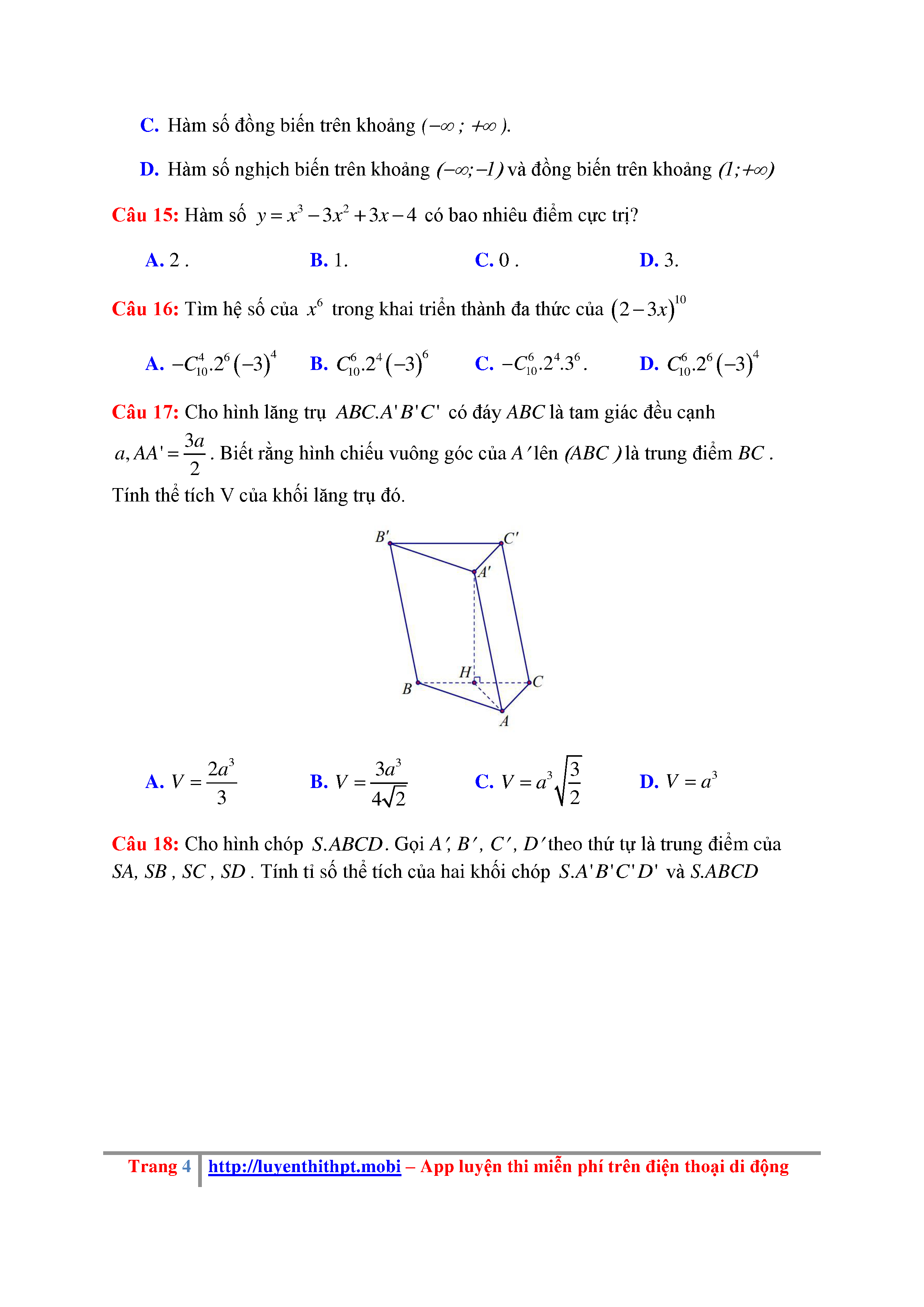 Đề khảo sát chất lượng 2019 - Môn Toán 12 – THPT Lê Văn Thịnh - Bắc Ninh - File có lời giải chi tiết