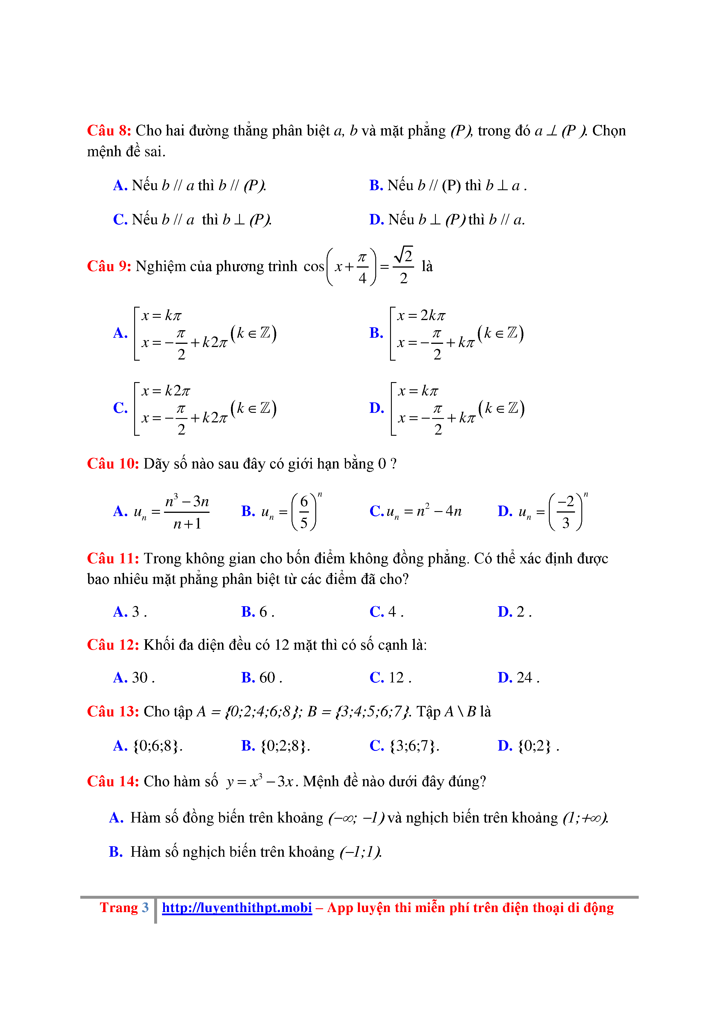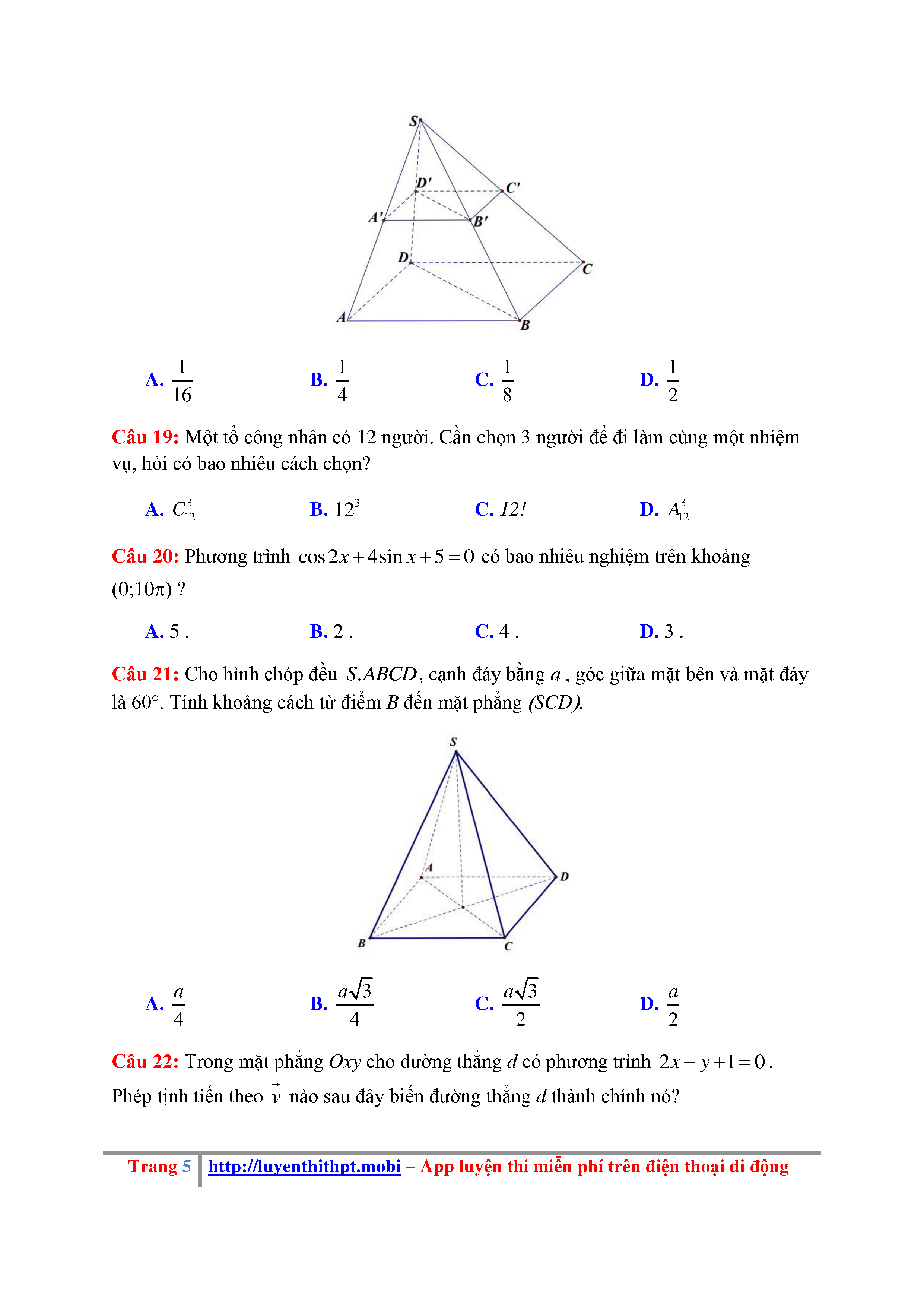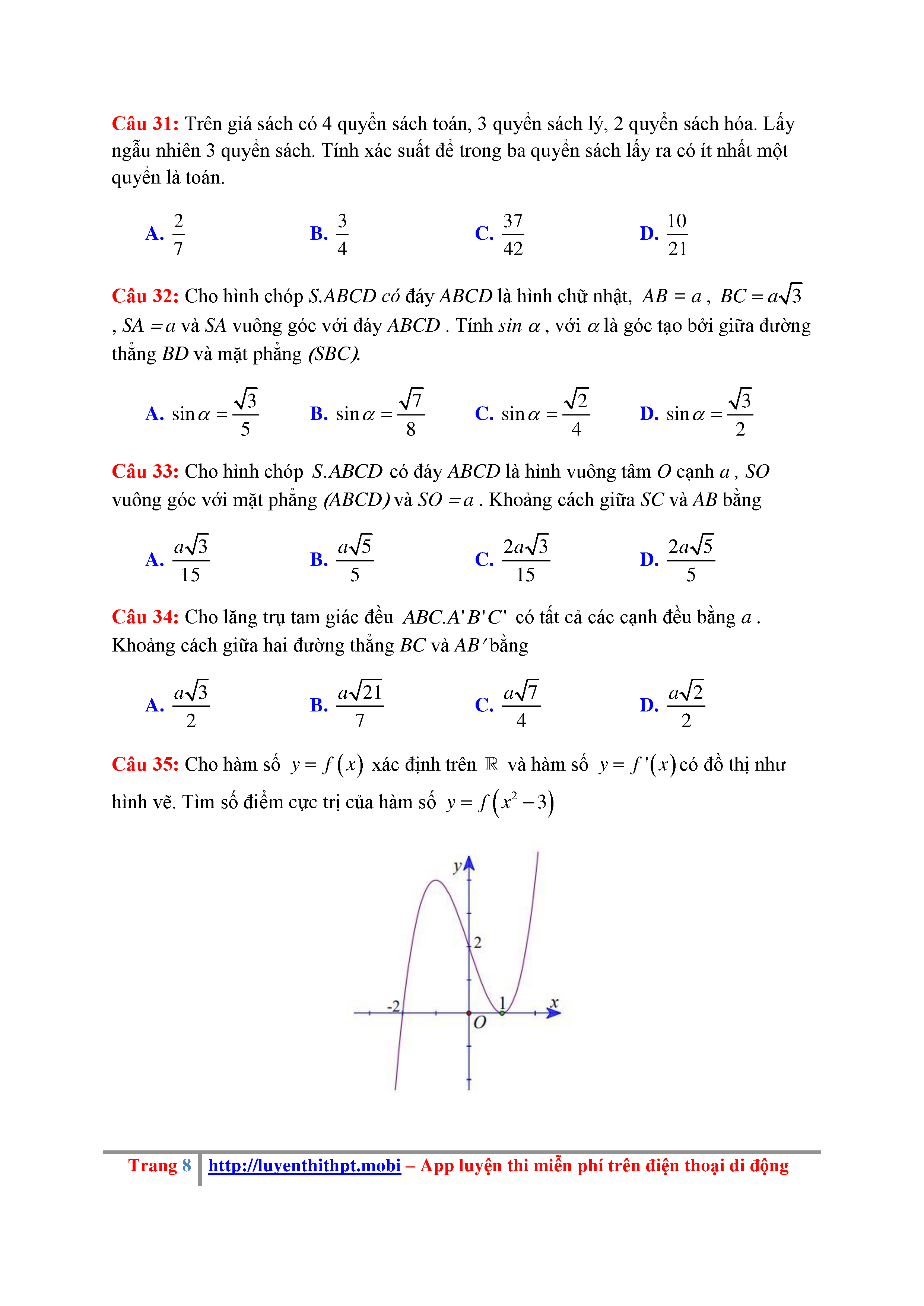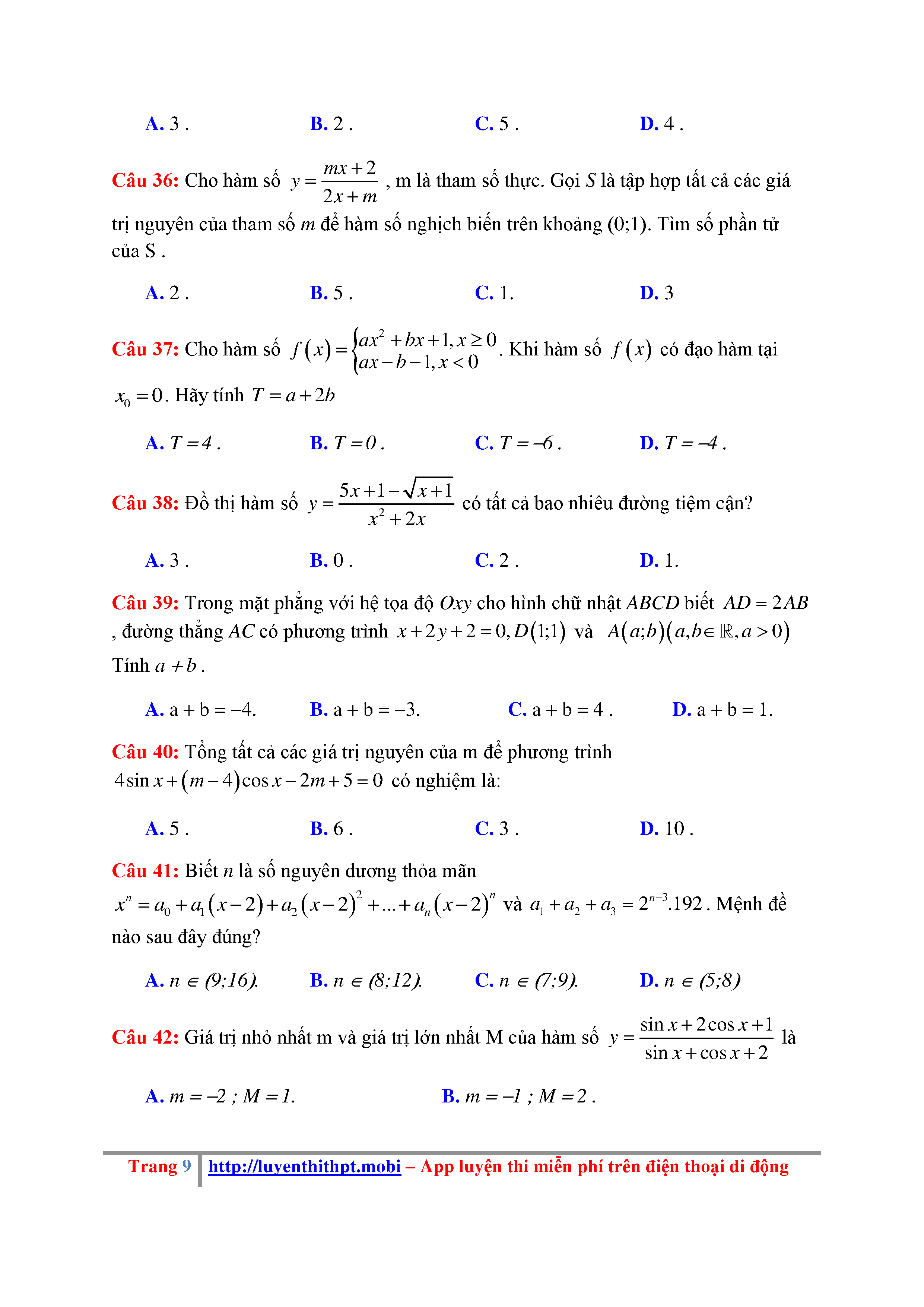 Đề khảo sát chất lượng 2019 - Môn Toán 12 – THPT Lê Văn Thịnh - Bắc Ninh - File có lời giải chi tiết