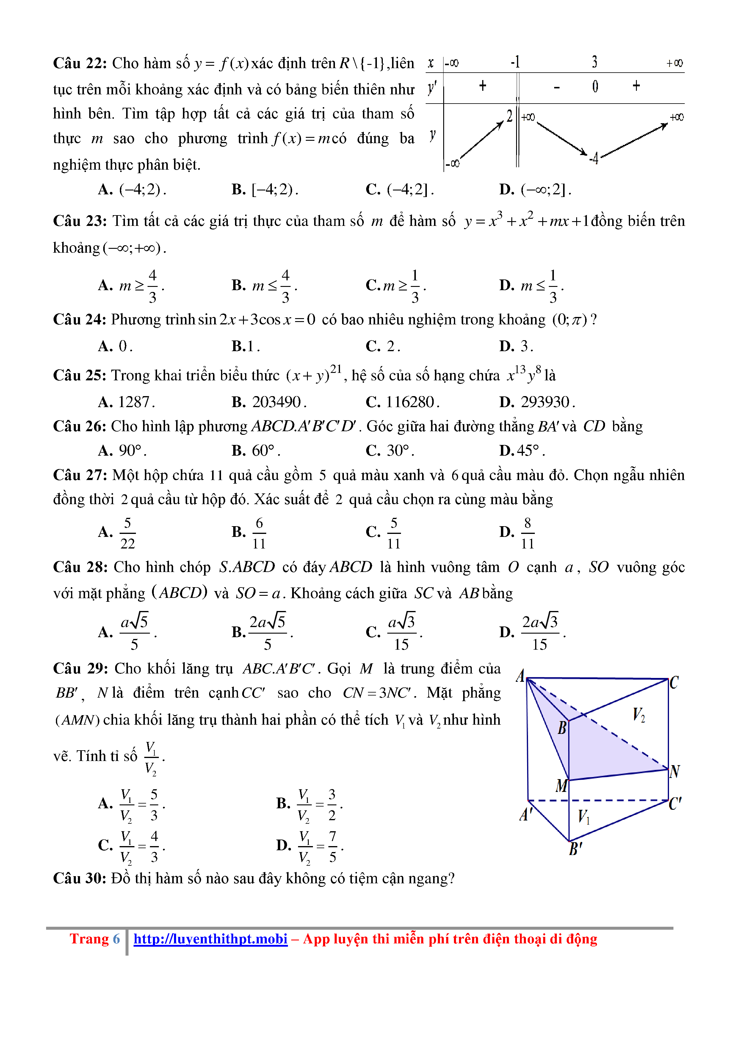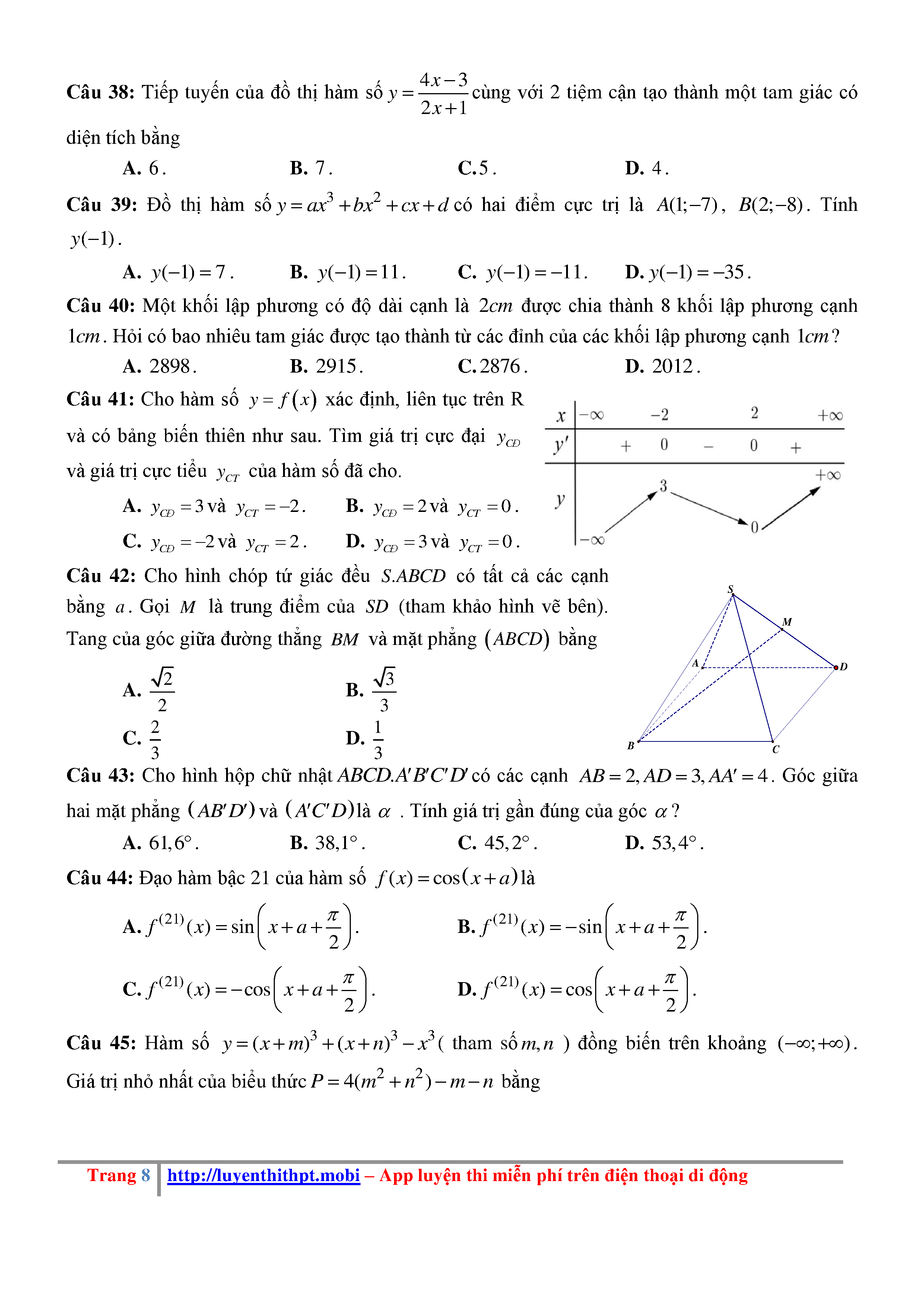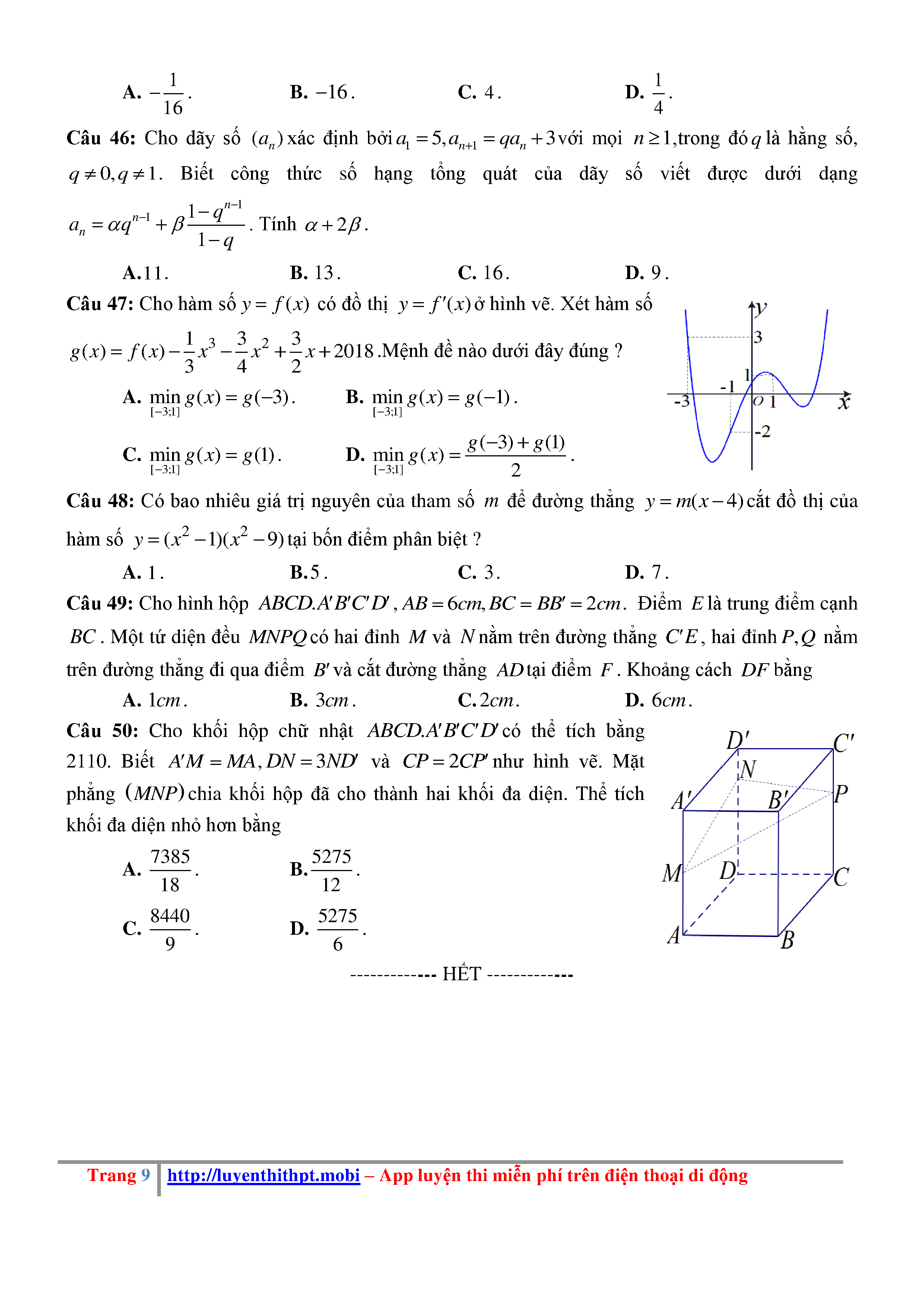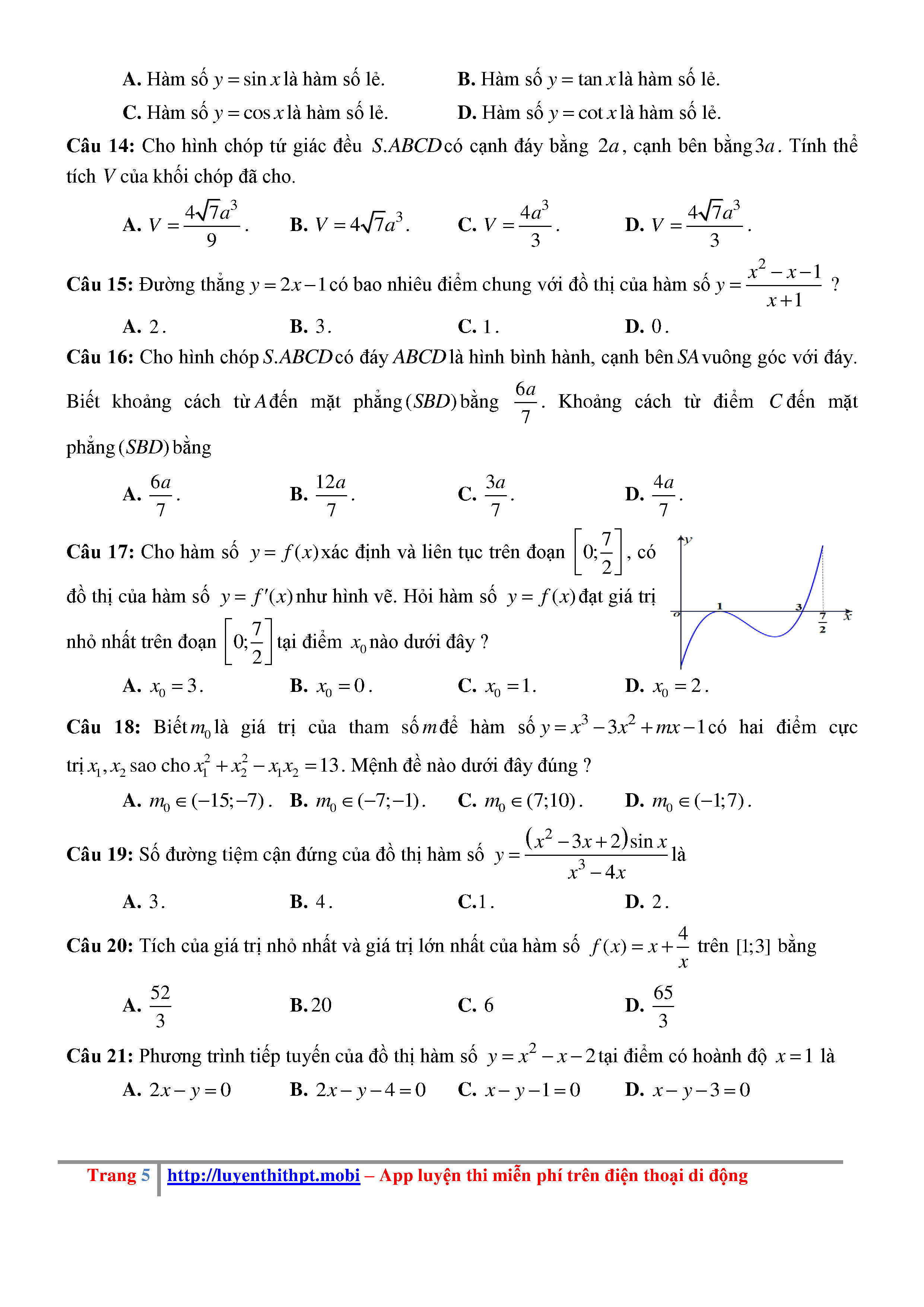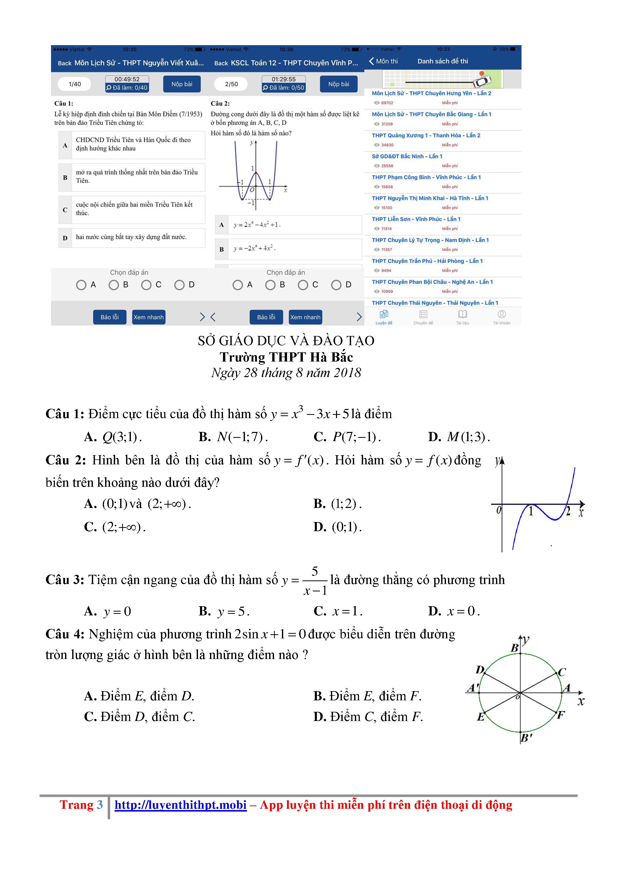 Đề KSCL Toán 12 năm học 2018 – 2019 trường Hà Bắc – Hải Dương lần 1 - File word có đáp án