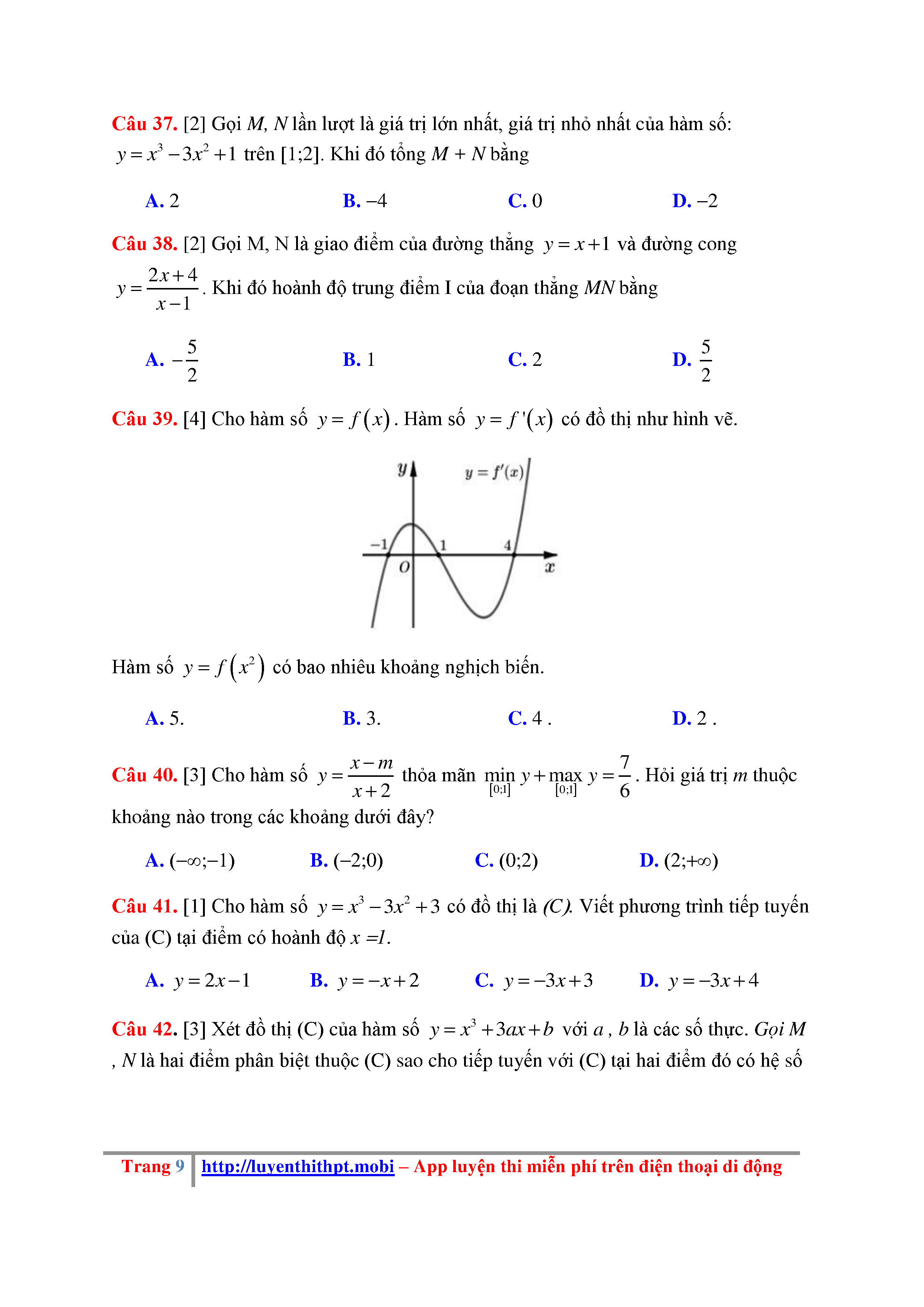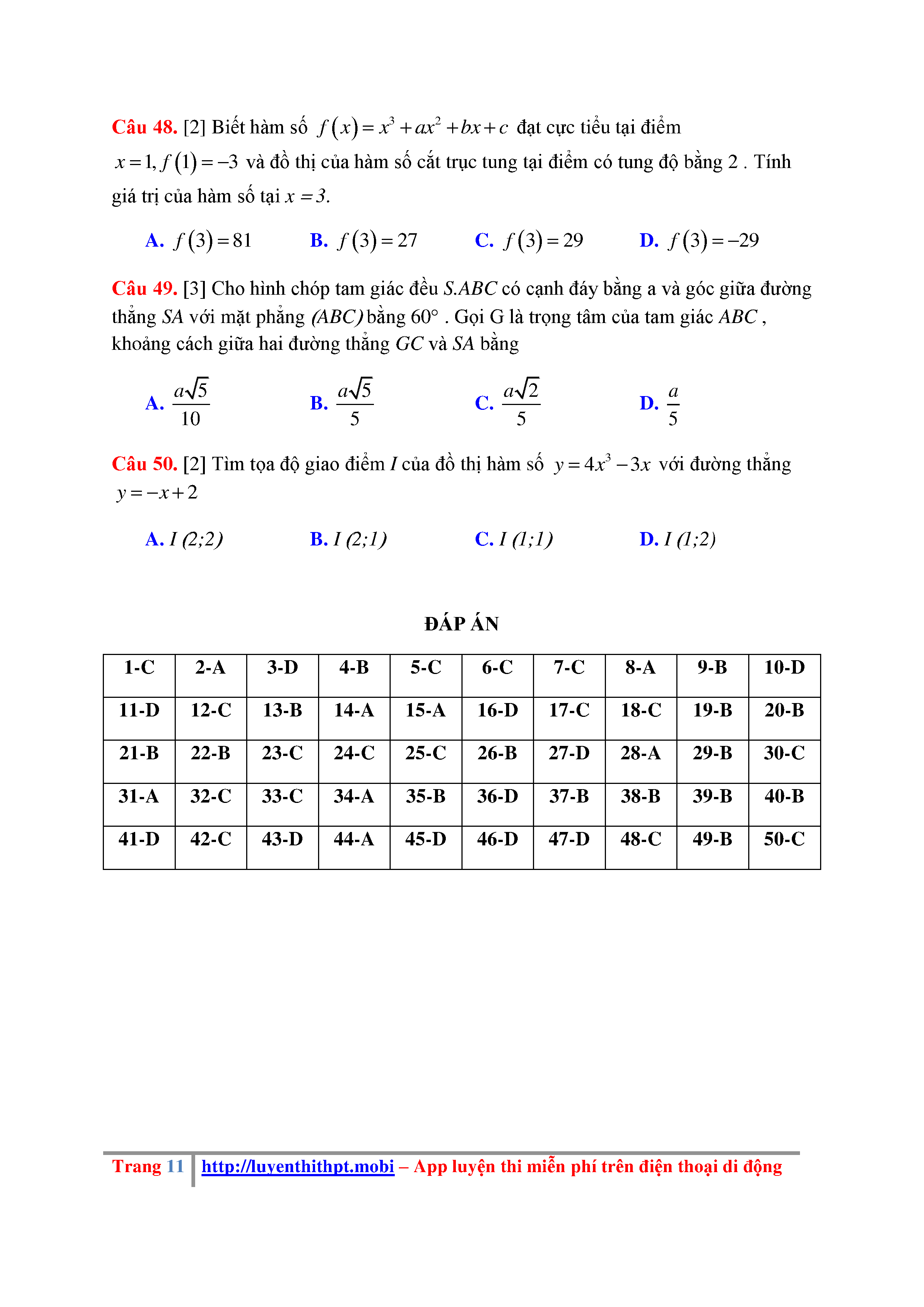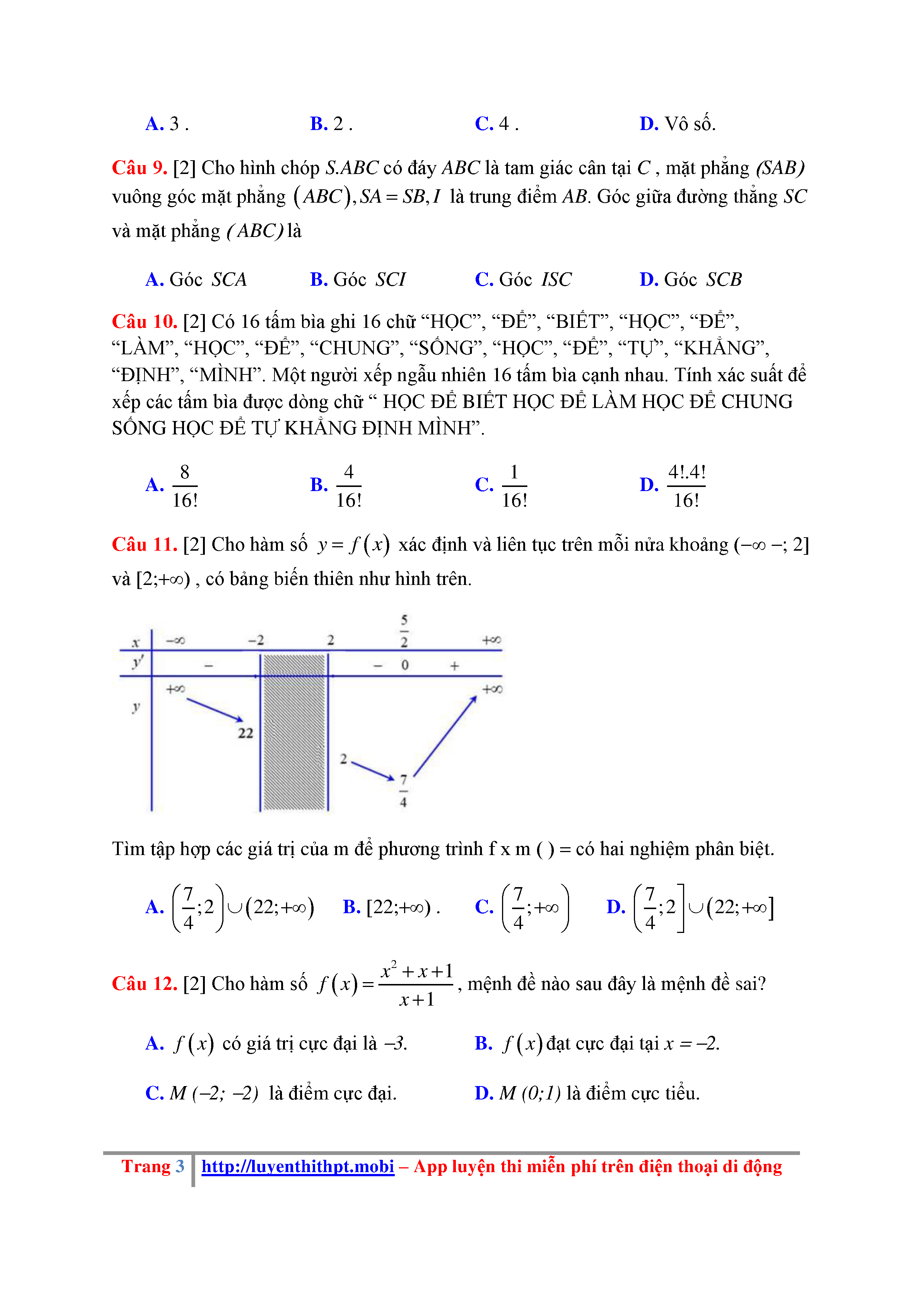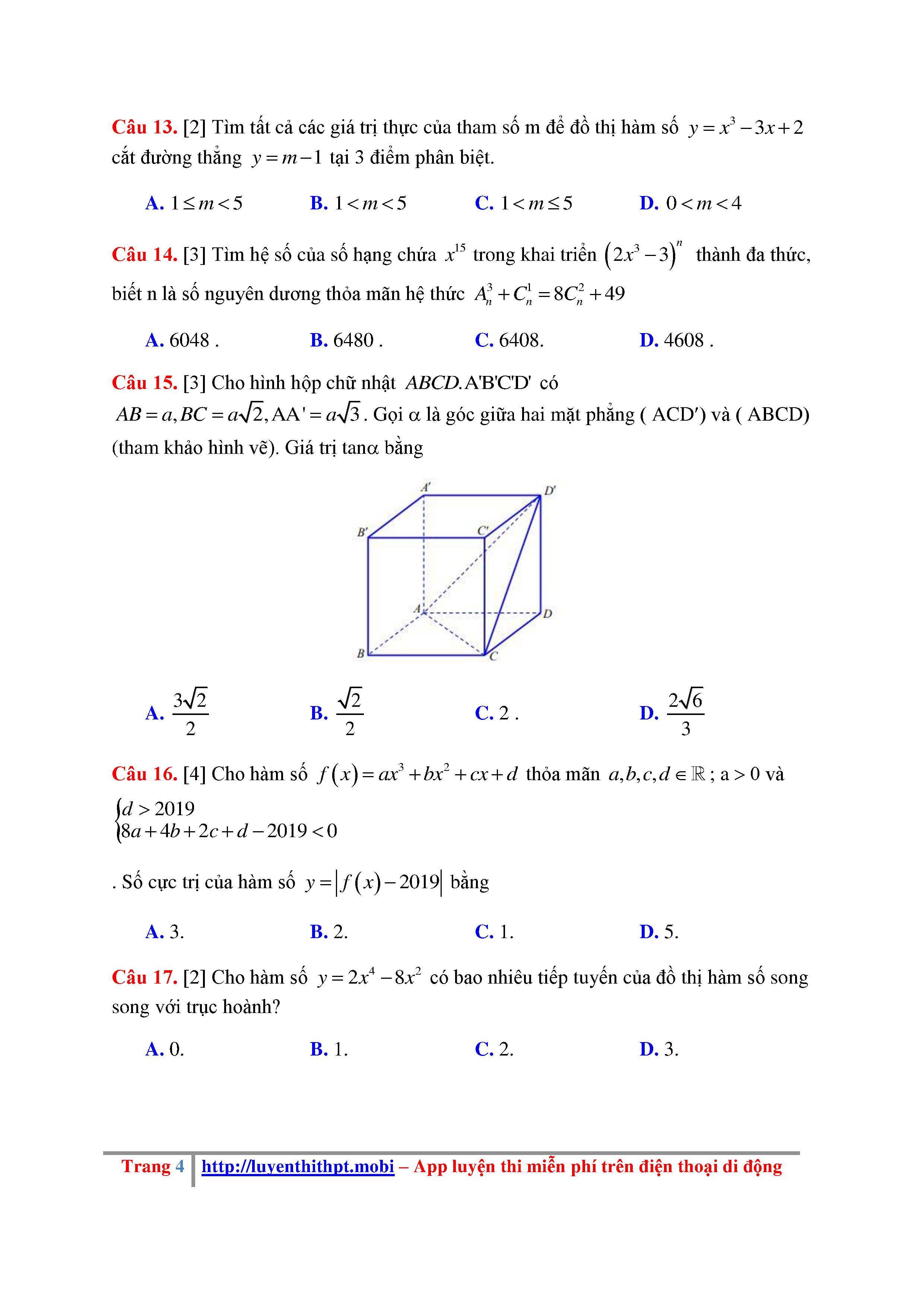 Đề KSCL 2019 - Môn Toán 12 – THPT Đoàn thượng - Hải Dương - File word có lời giải