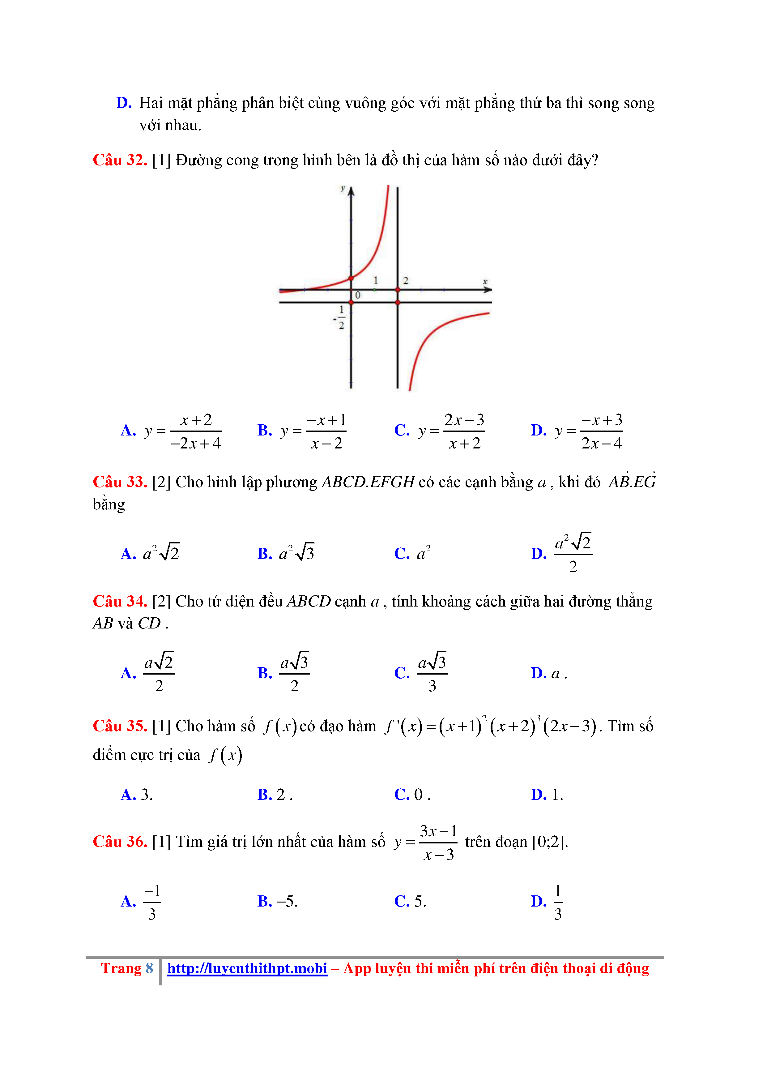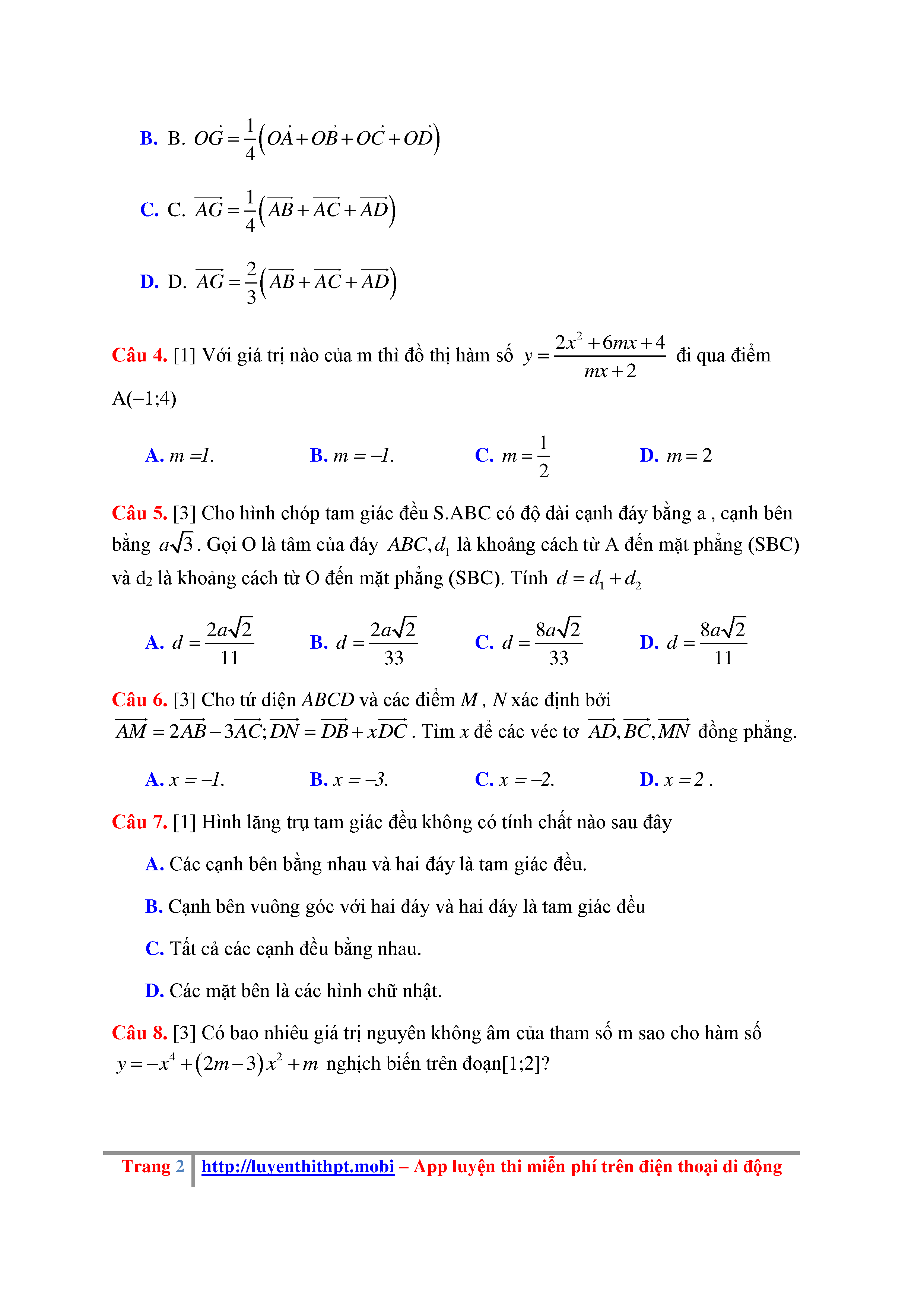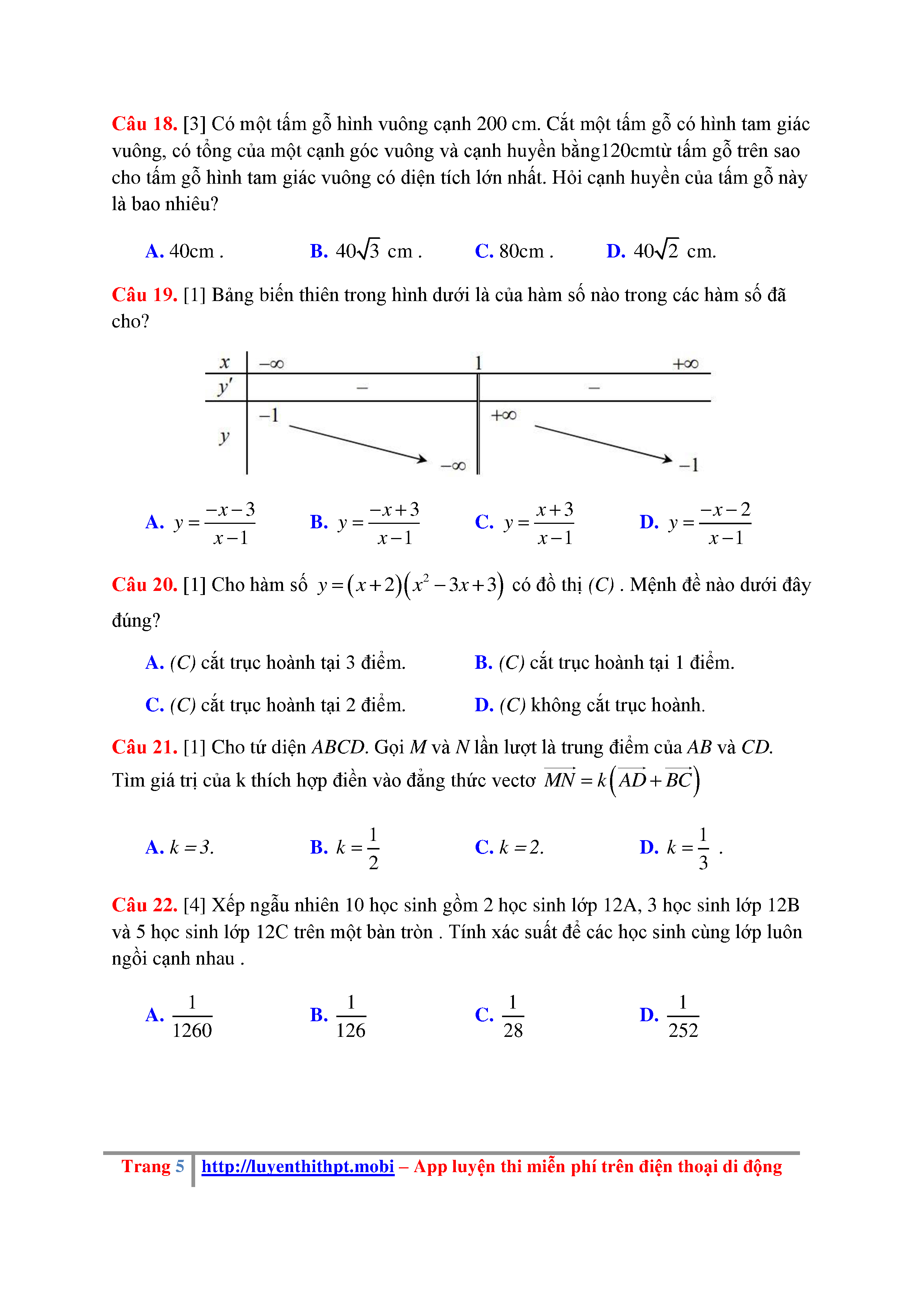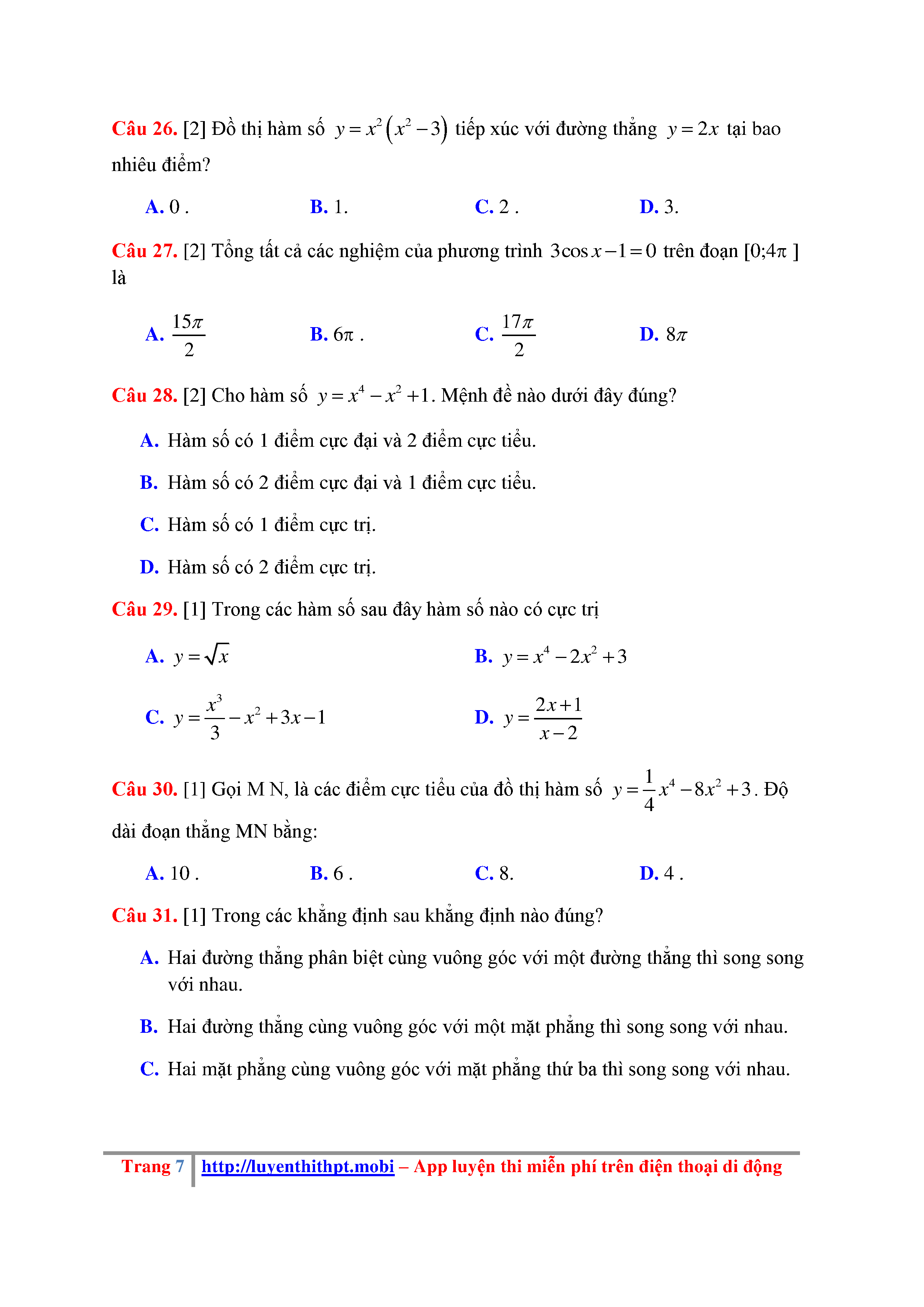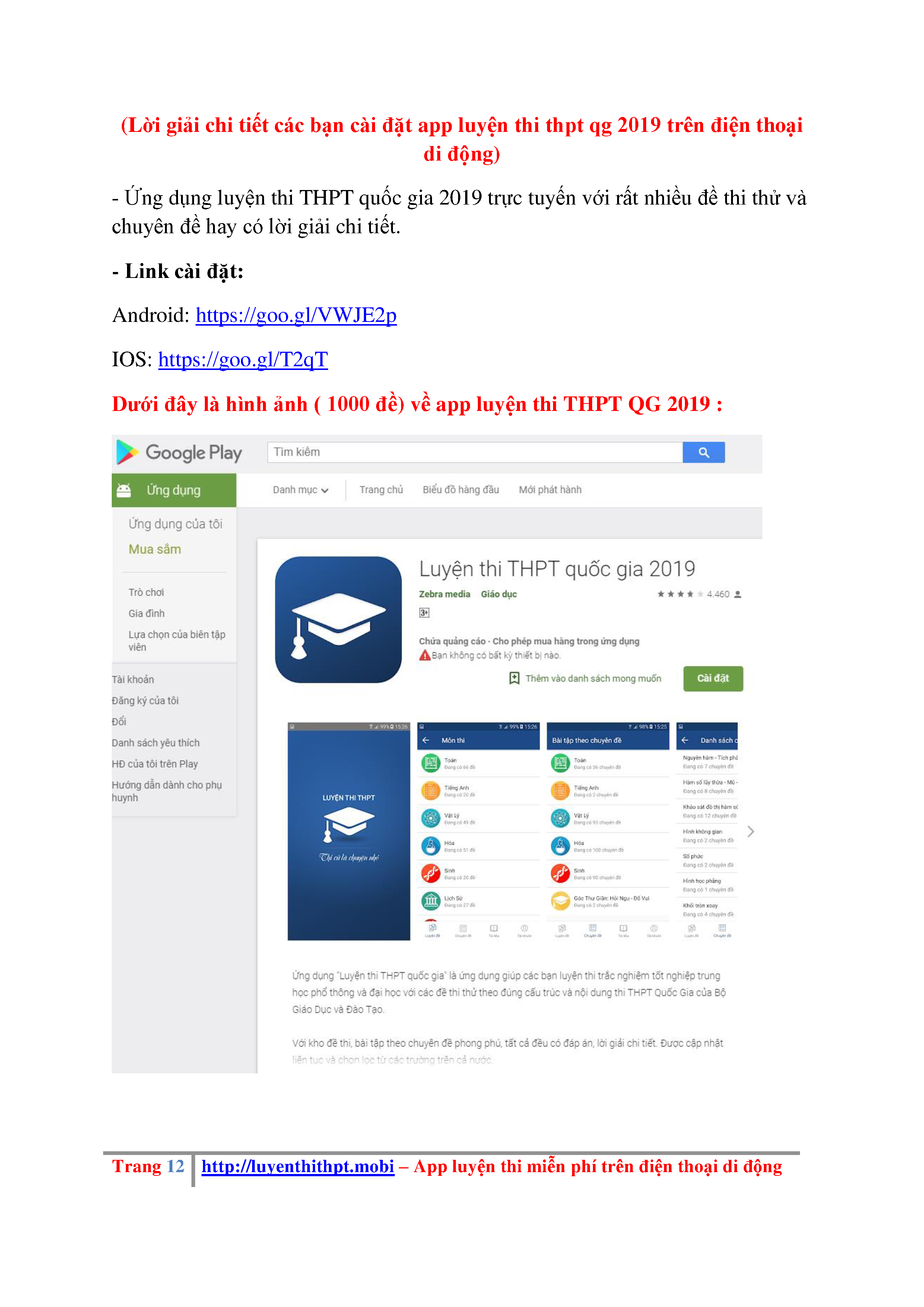 Đề KSCL 2019 - Môn Toán 12 – THPT Đoàn thượng - Hải Dương - File word có lời giải