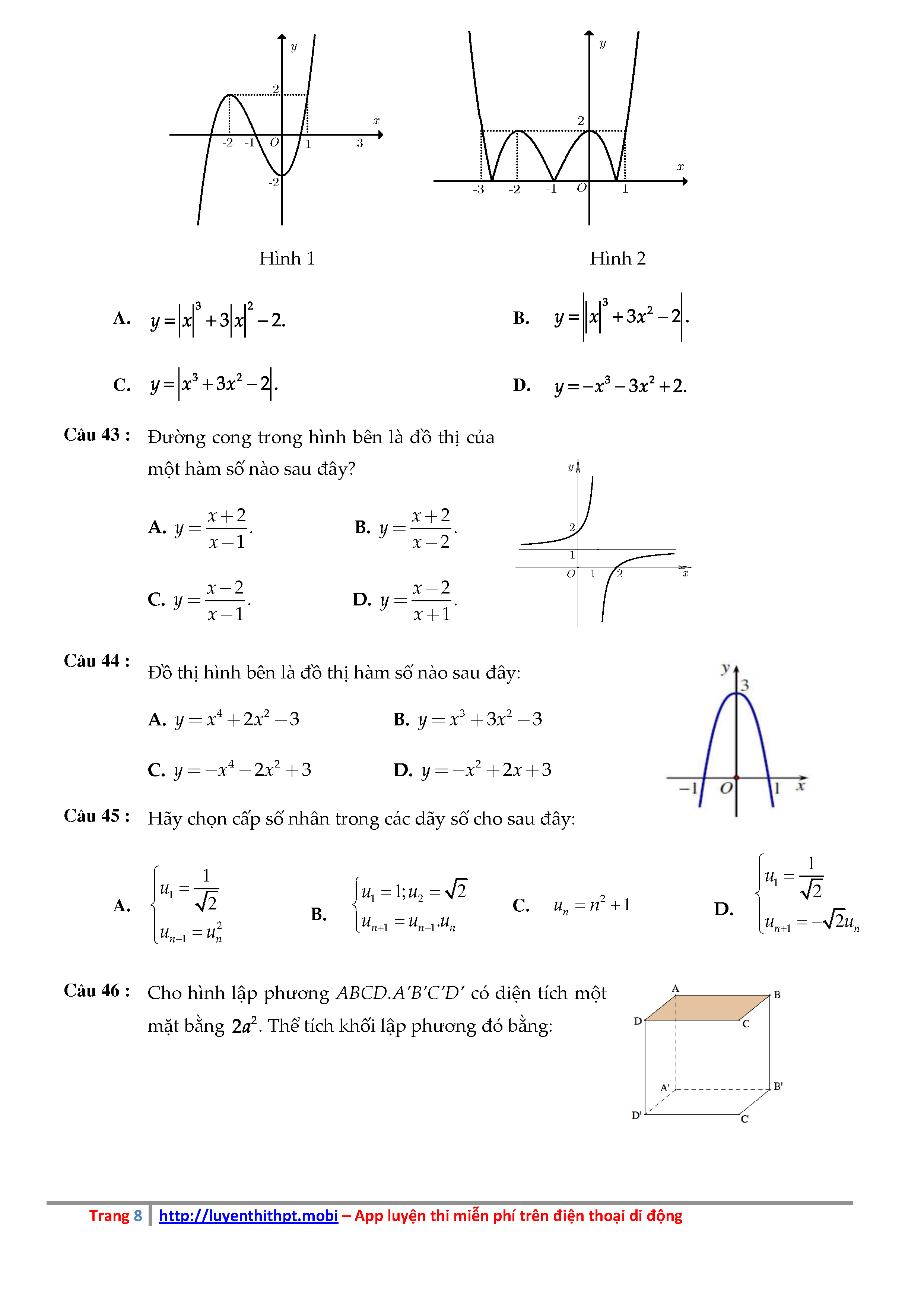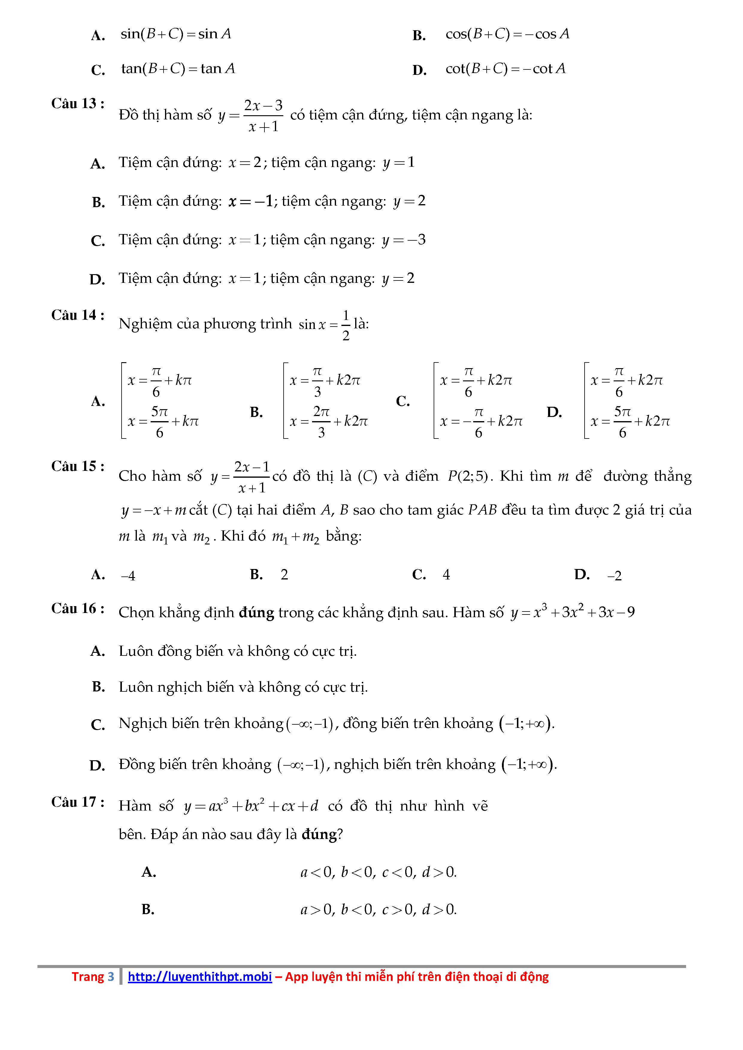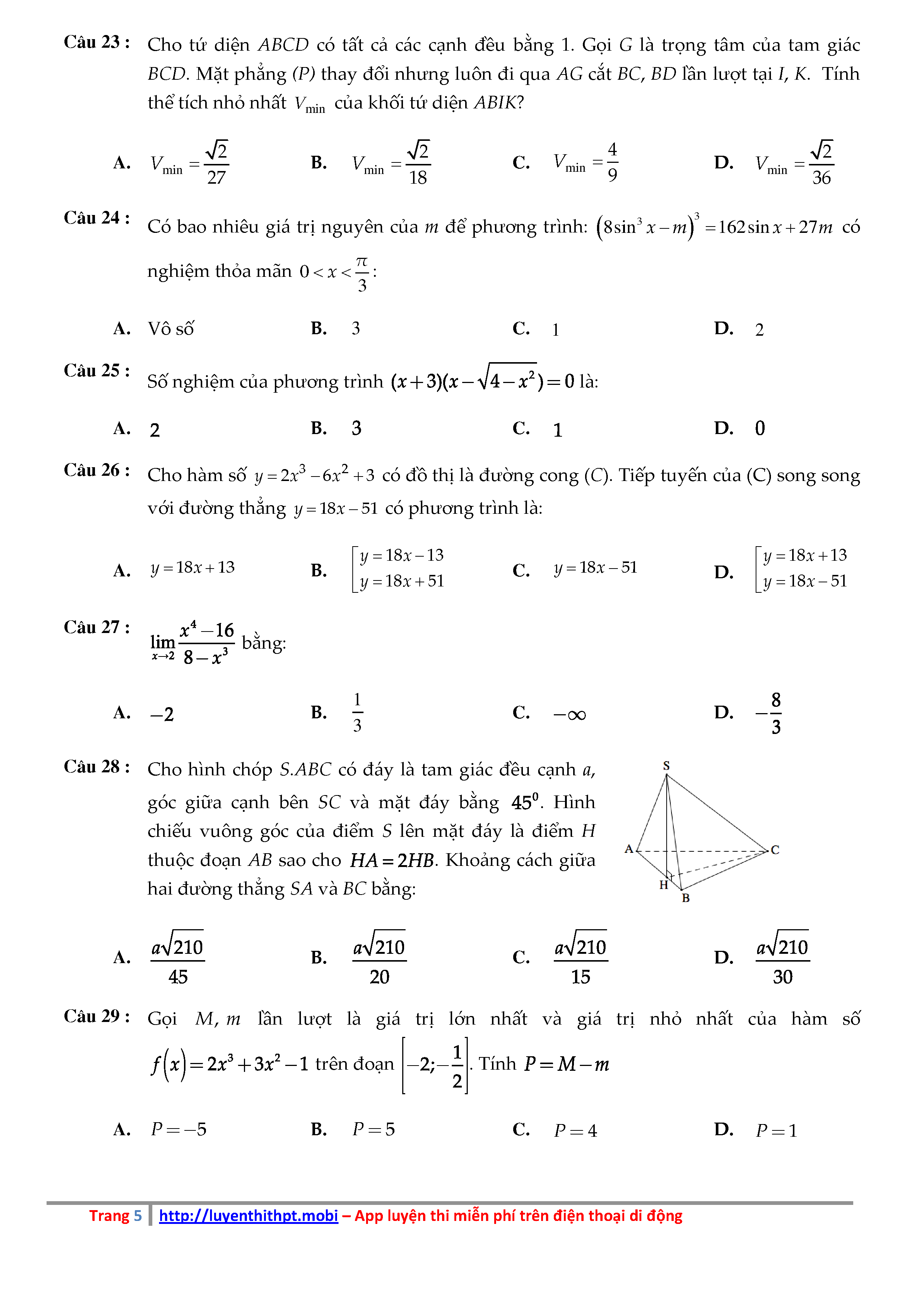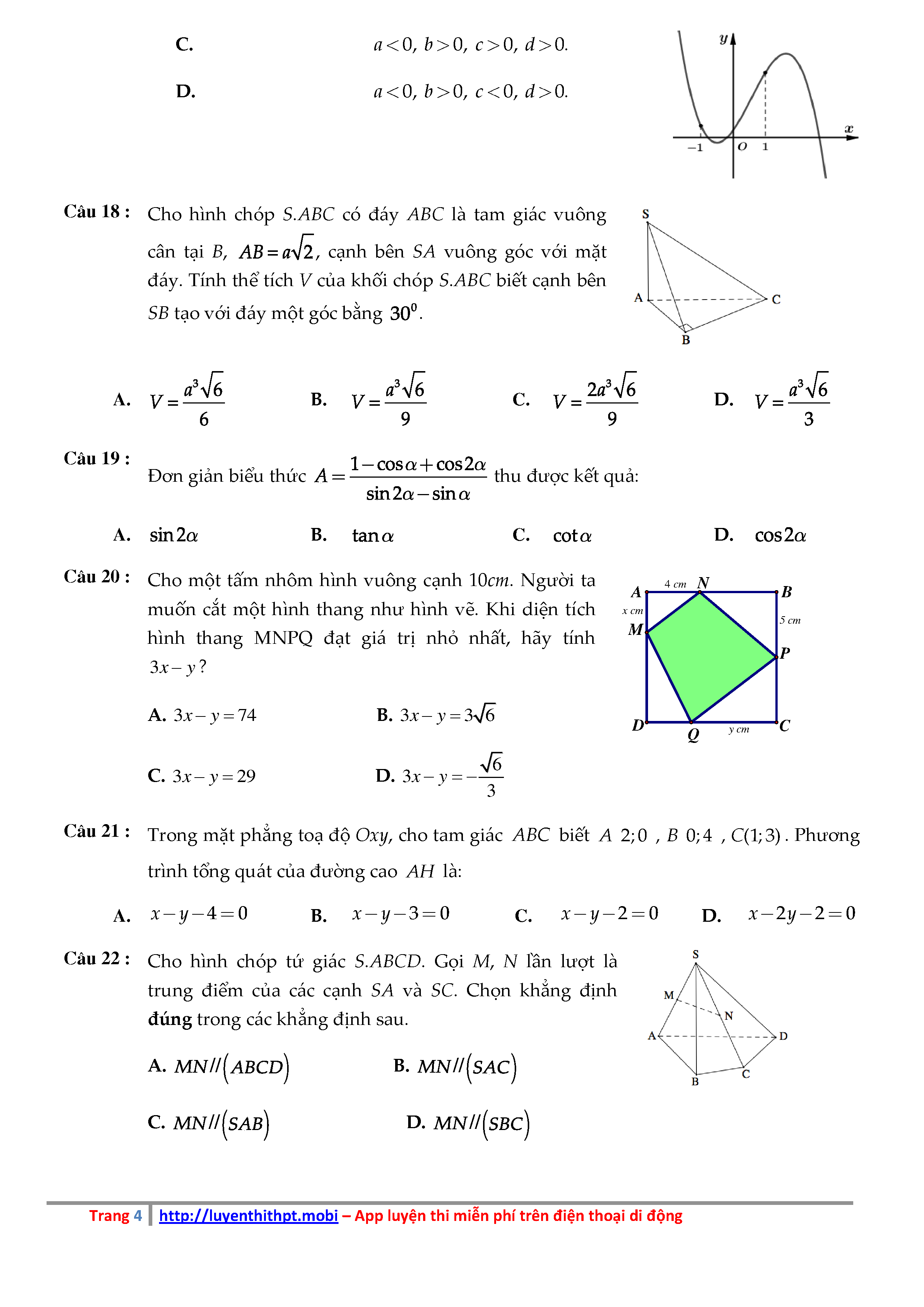 Đề khảo sát chất lượng 2019 - Môn Toán 12 – Trường M.V Lômônôxốp - File word có đáp án