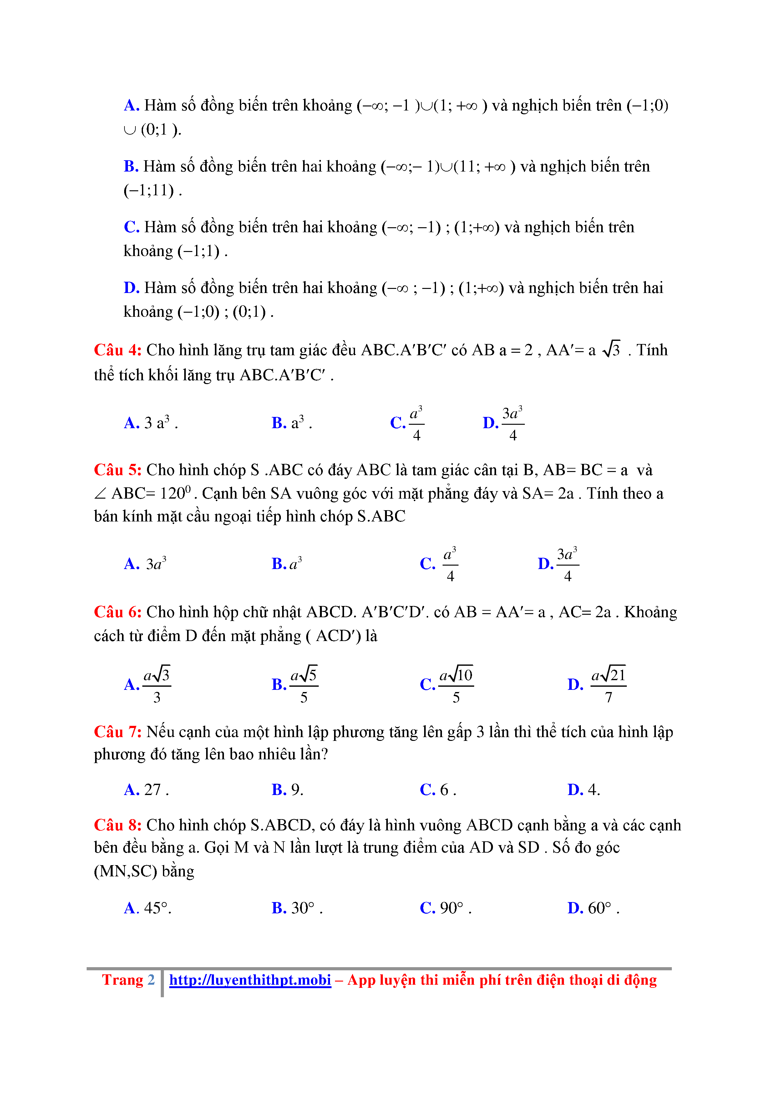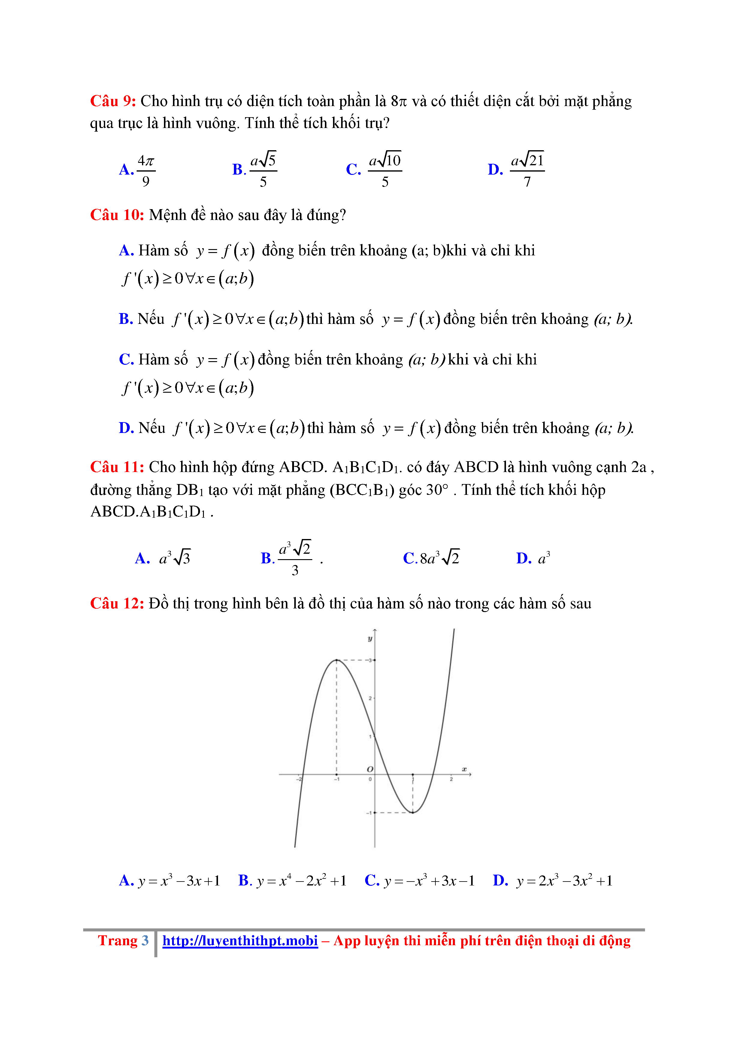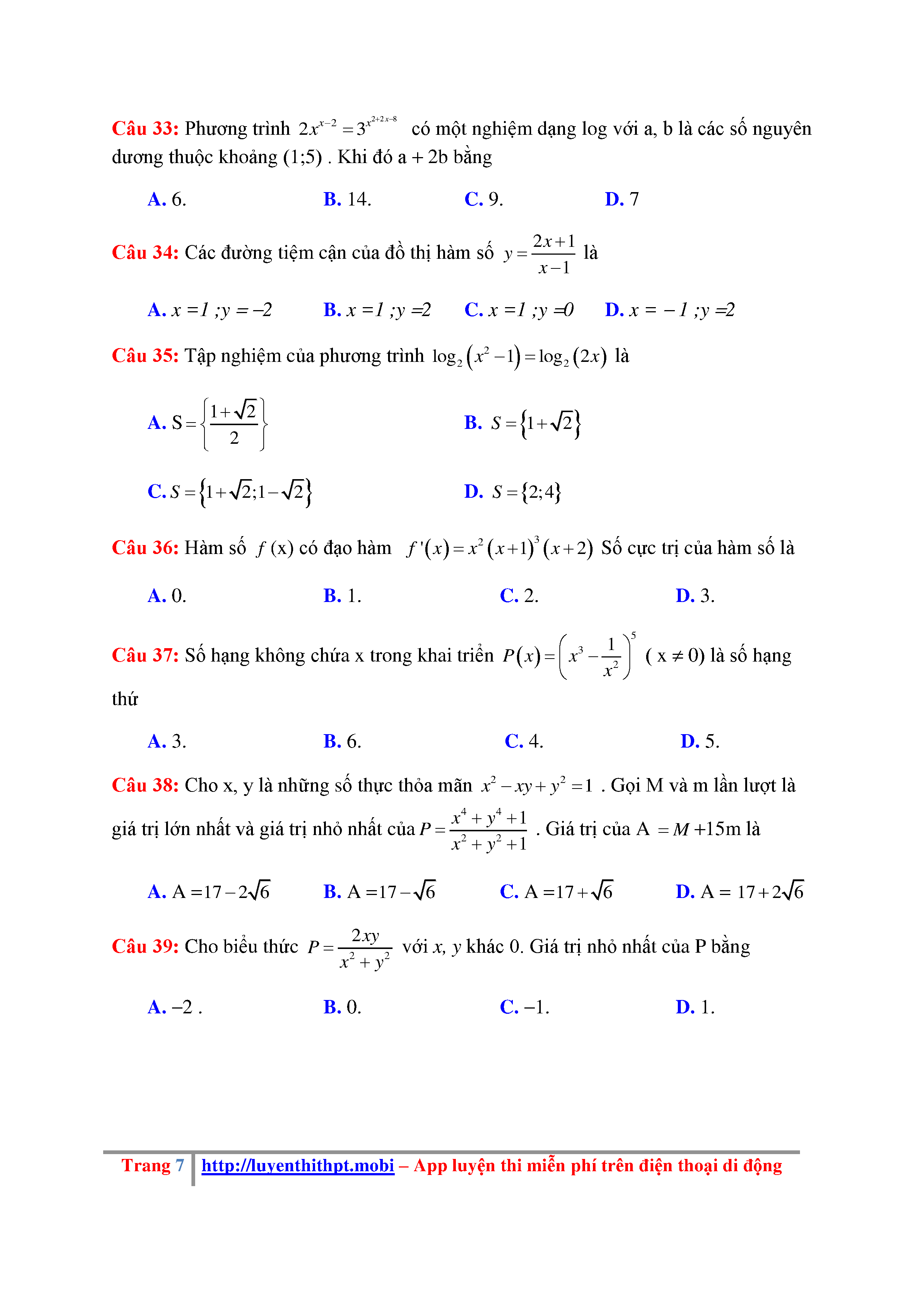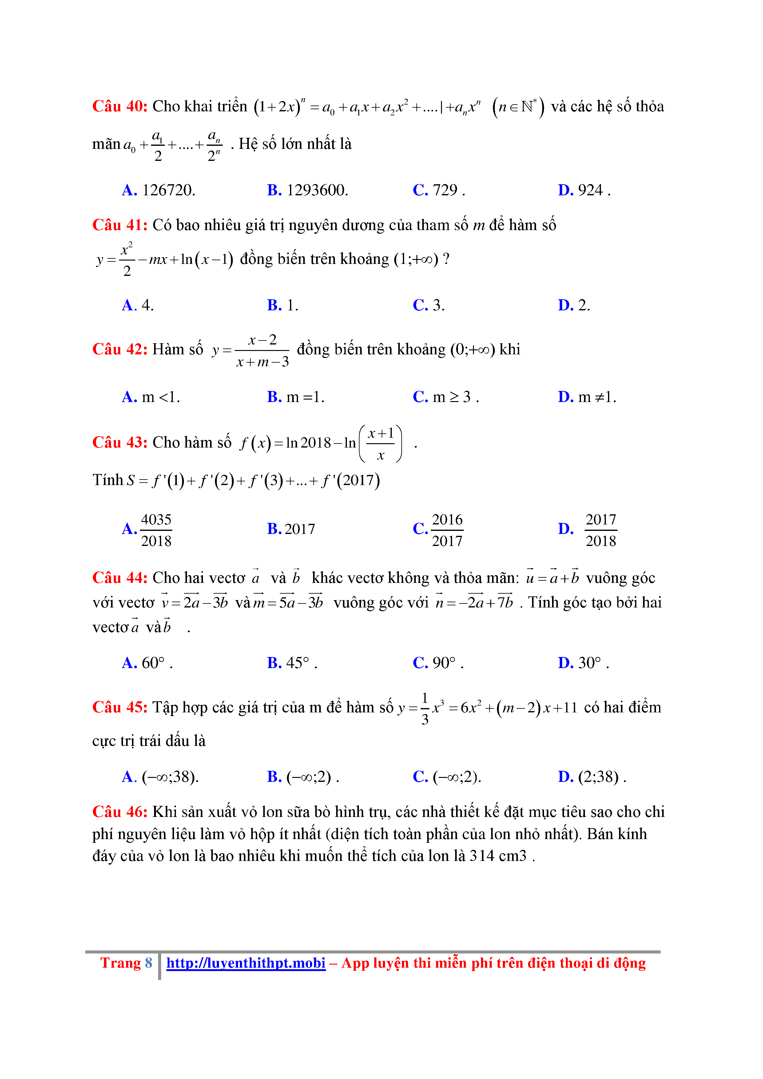 Đề thi thử THPTQG 2019 - Toán 12 - THPT Chuyên Bắc Giang - Bắc Giang - Lần1 - File word có lời giải