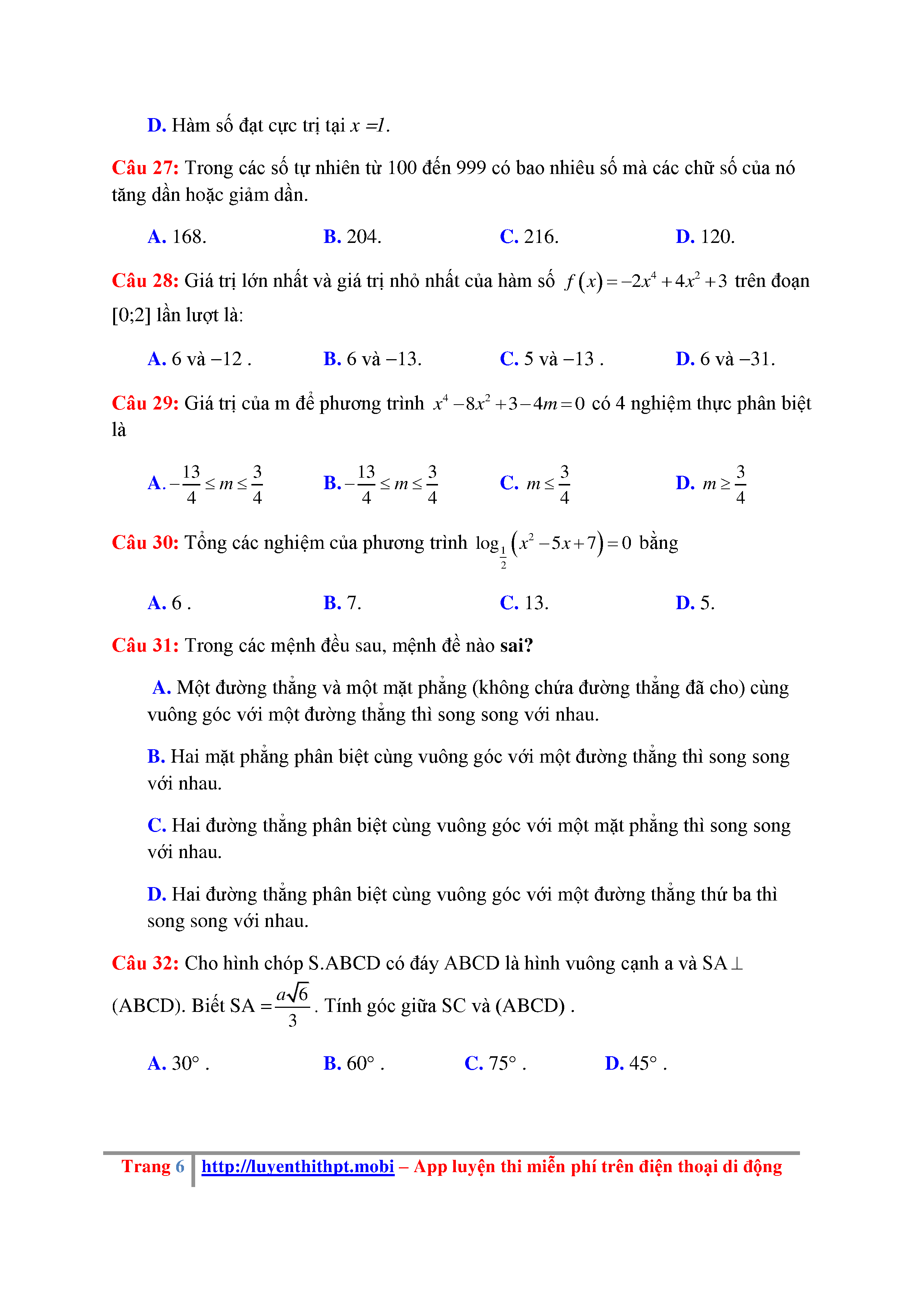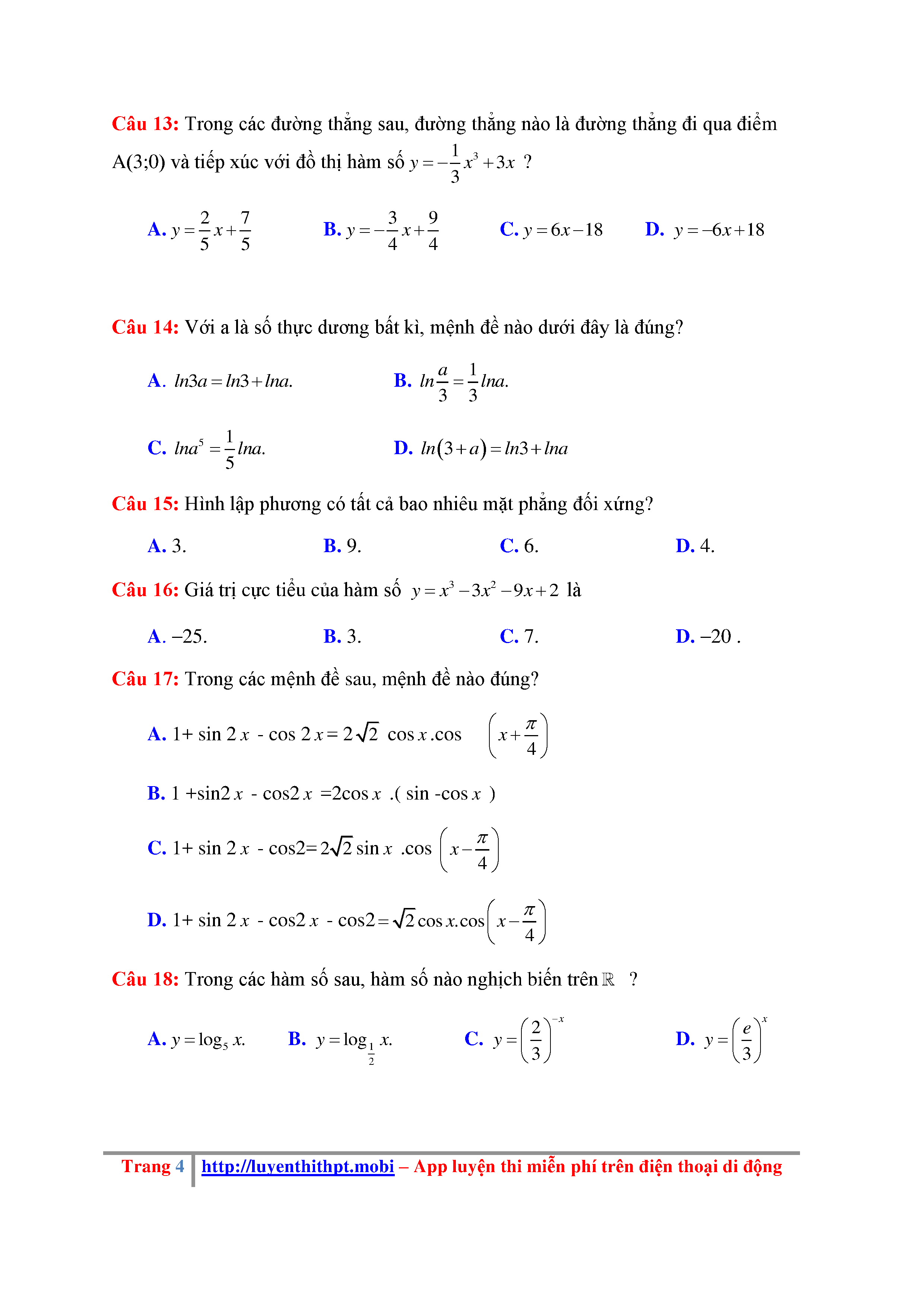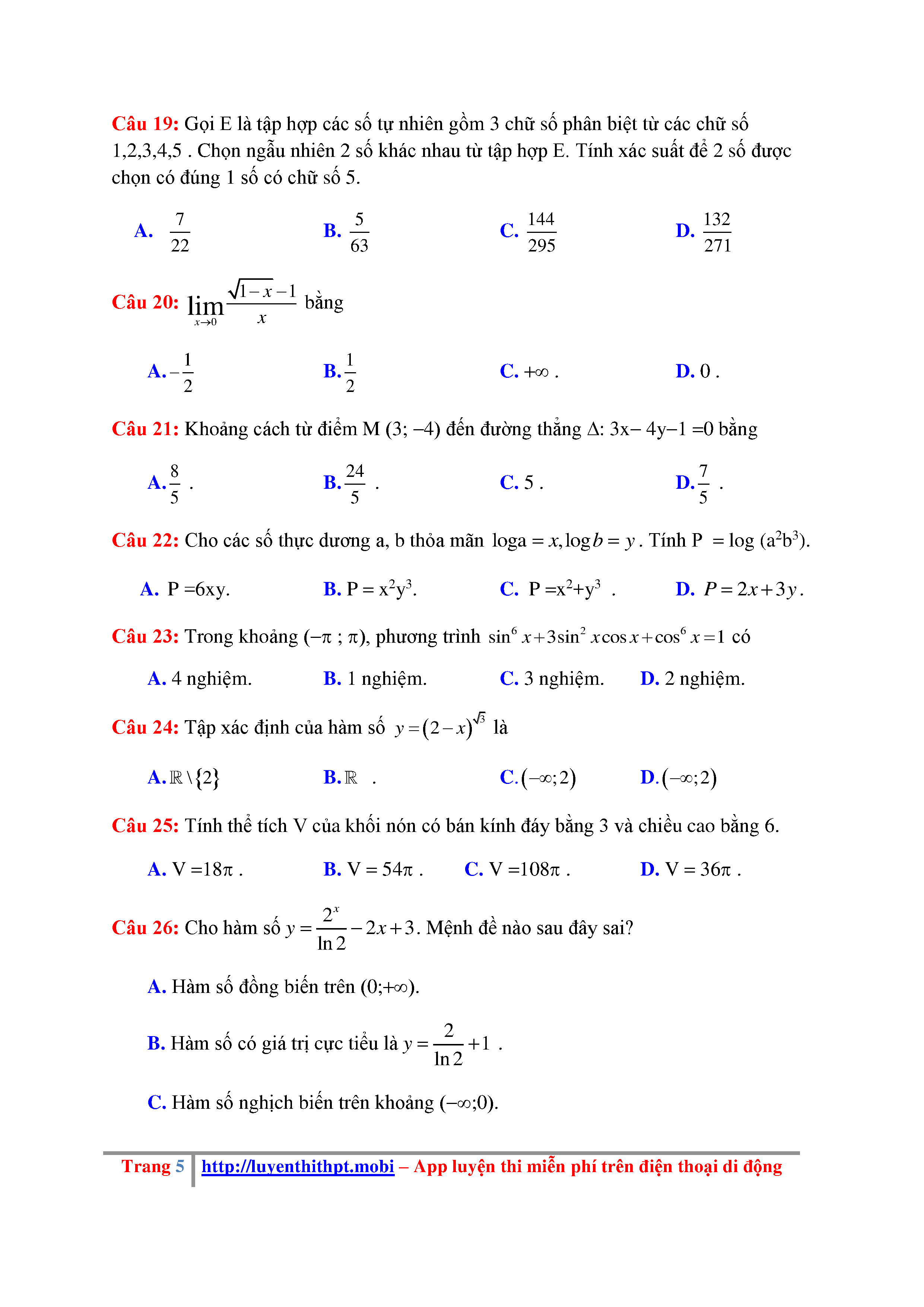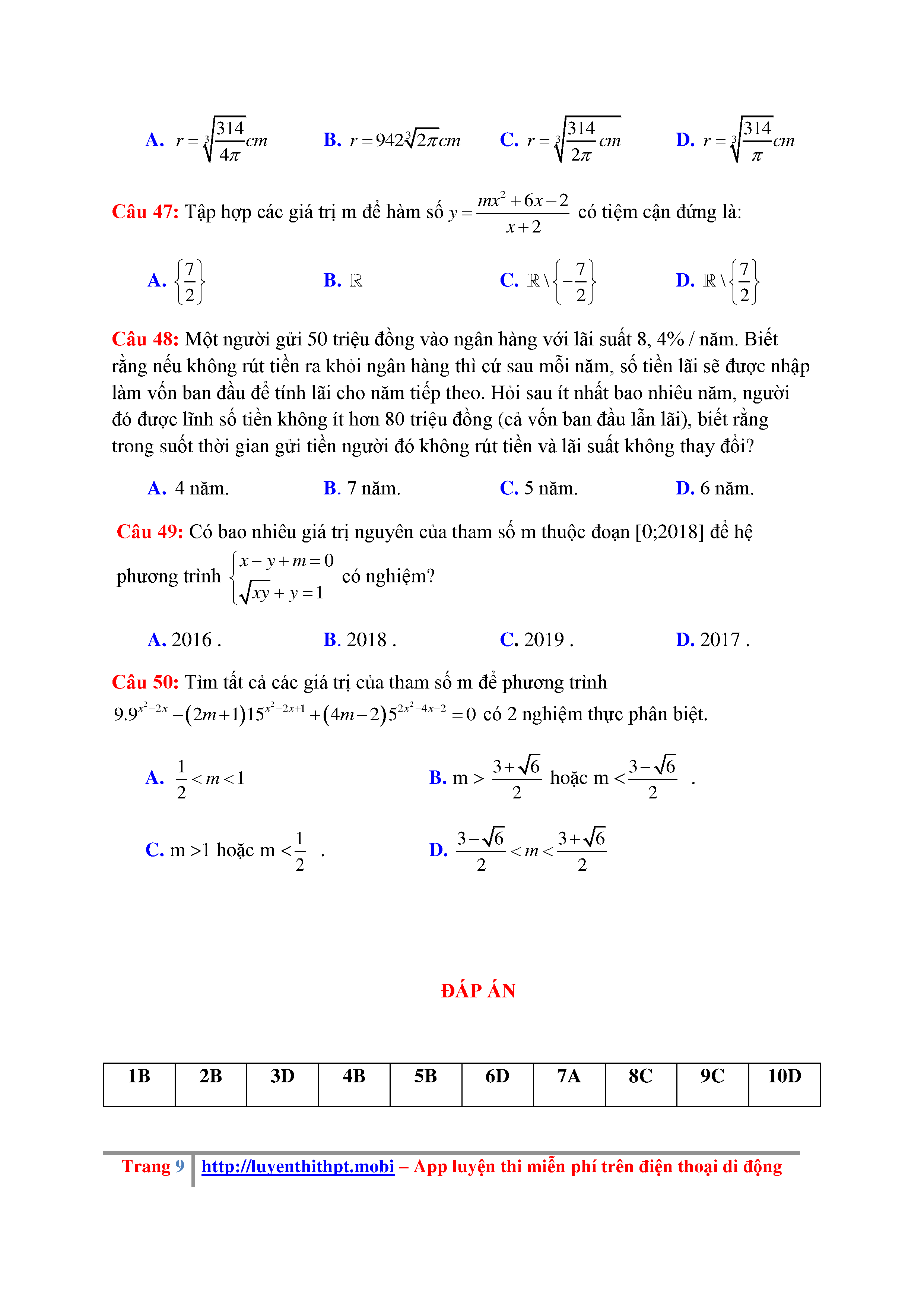 Đề thi thử THPTQG 2019 - Toán 12 - THPT Chuyên Bắc Giang - Bắc Giang - Lần1 - File word có lời giải