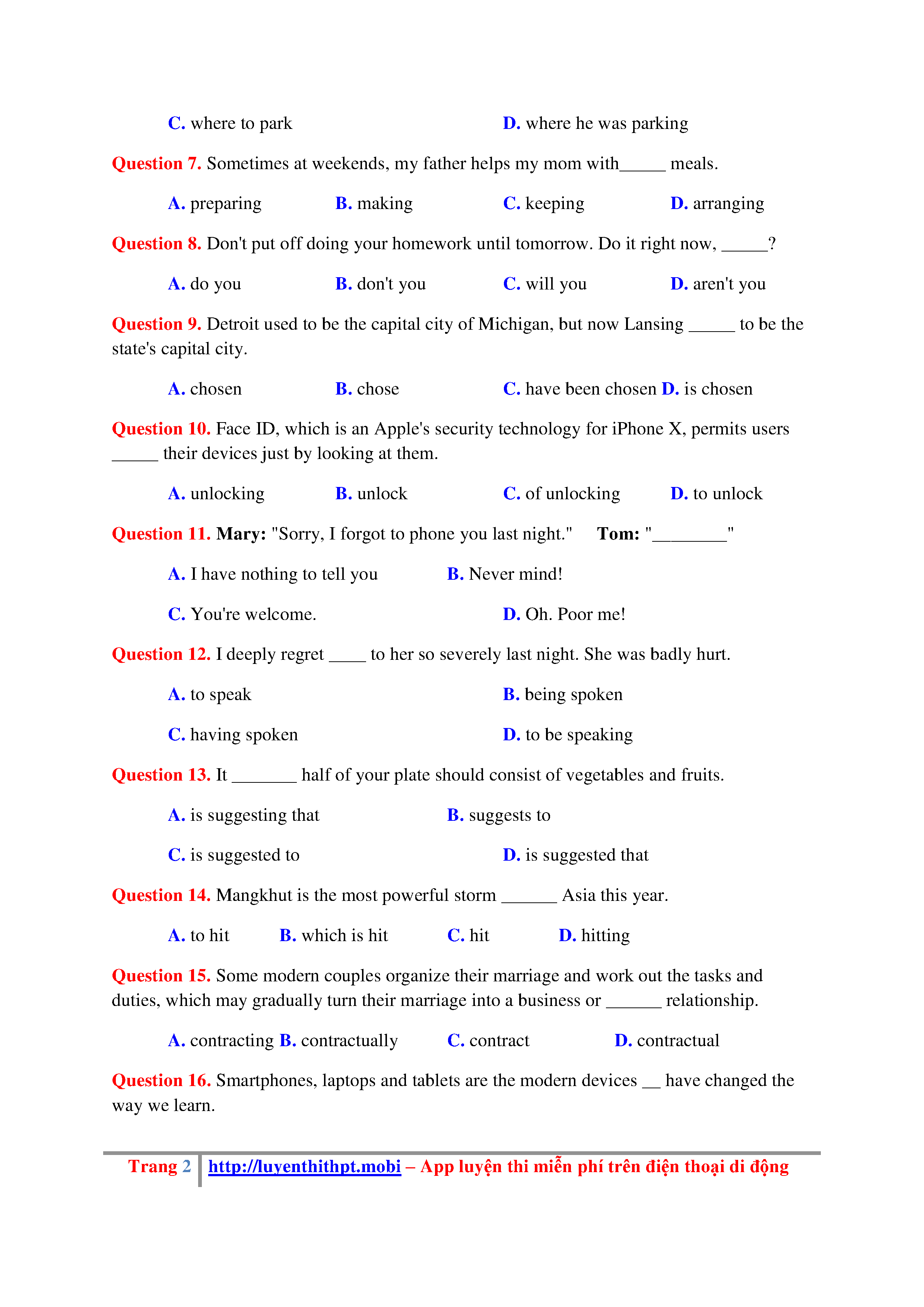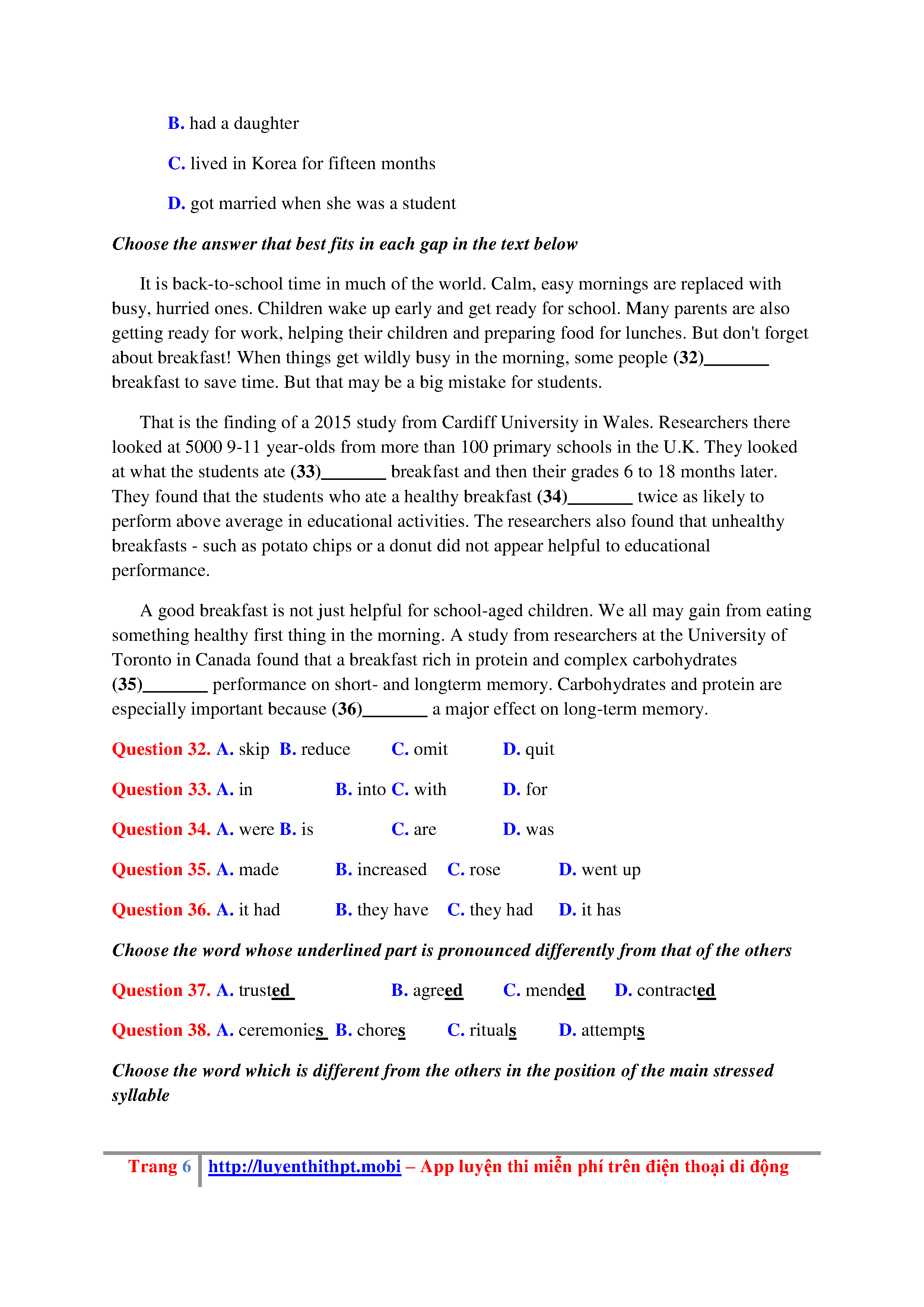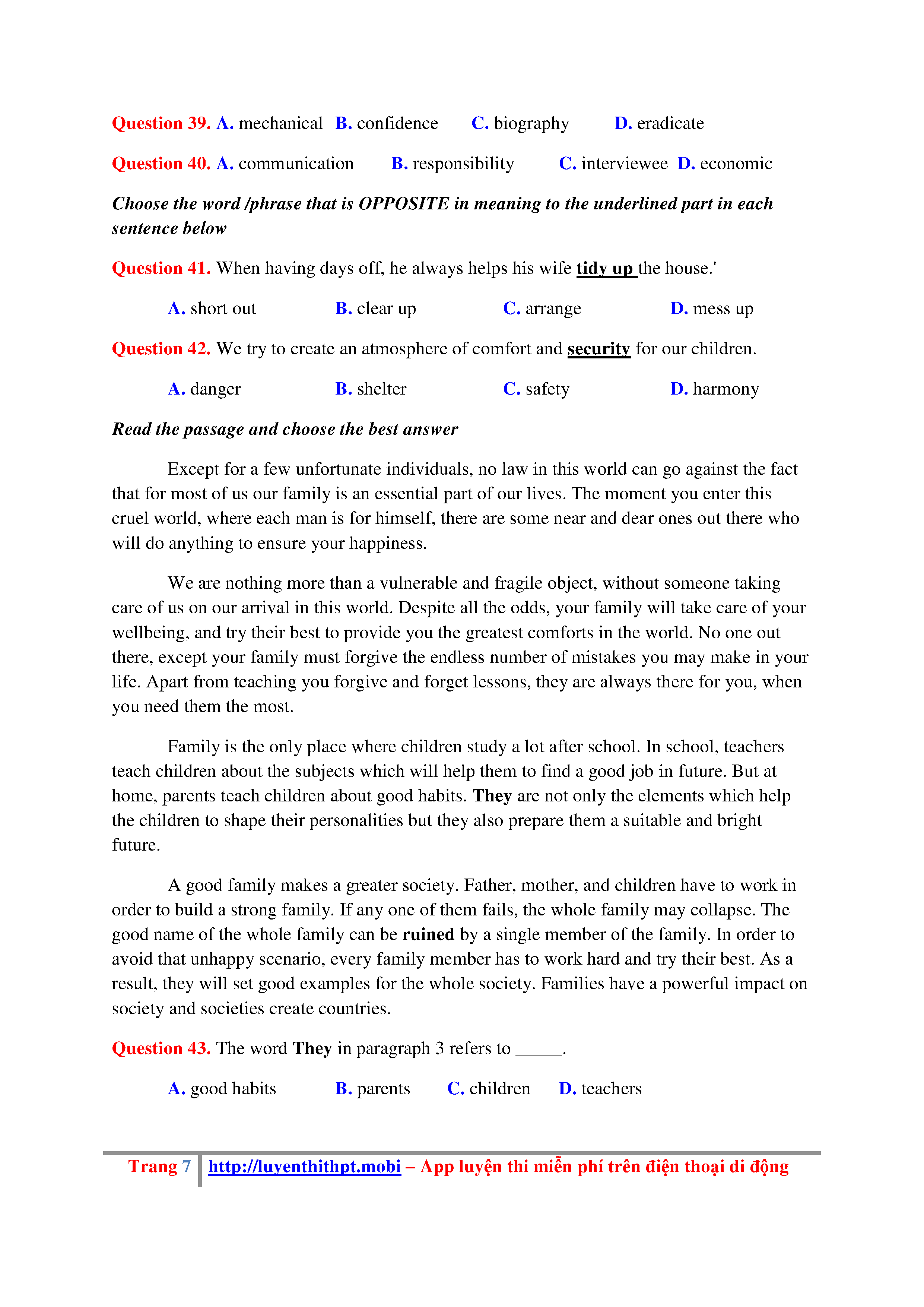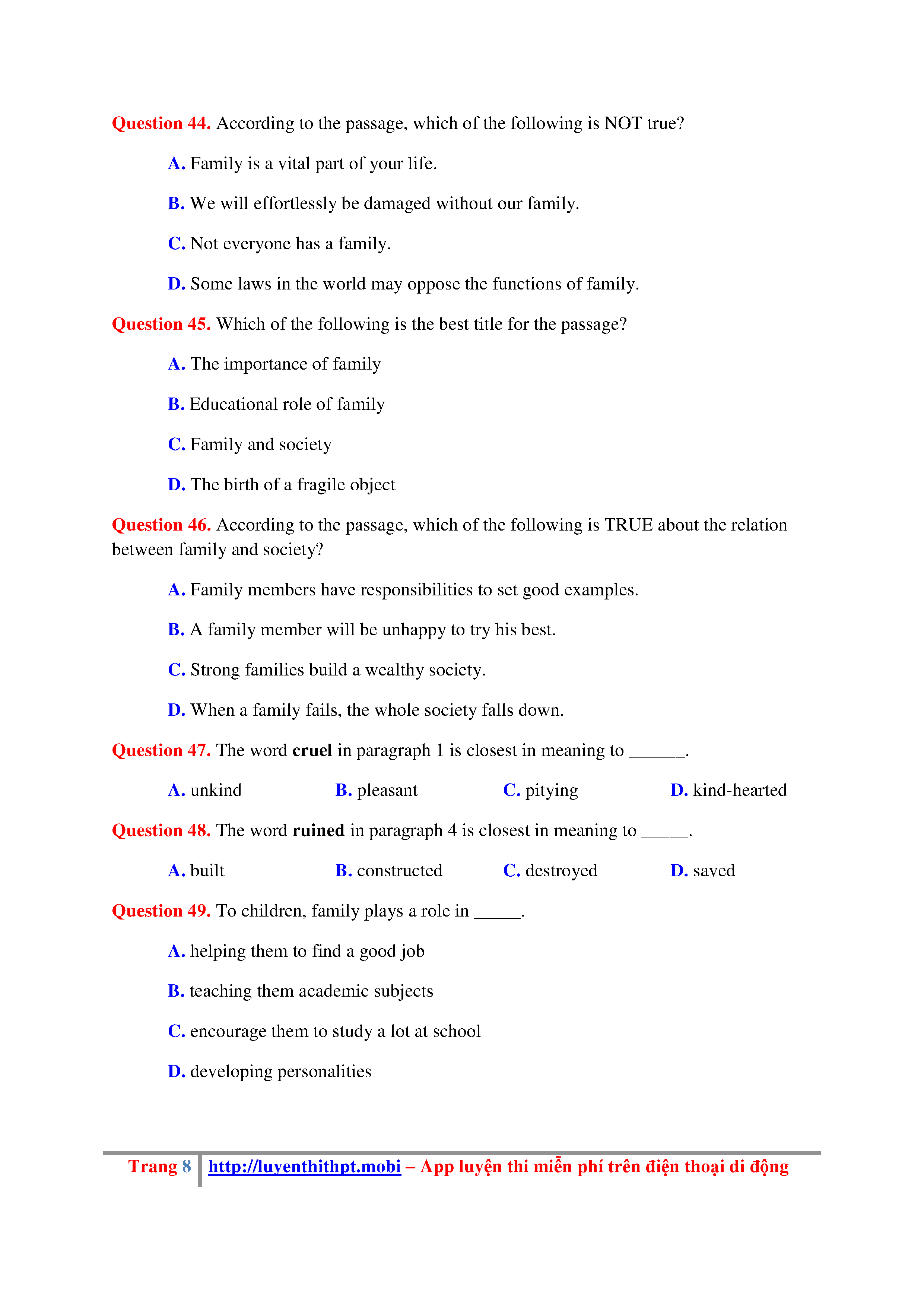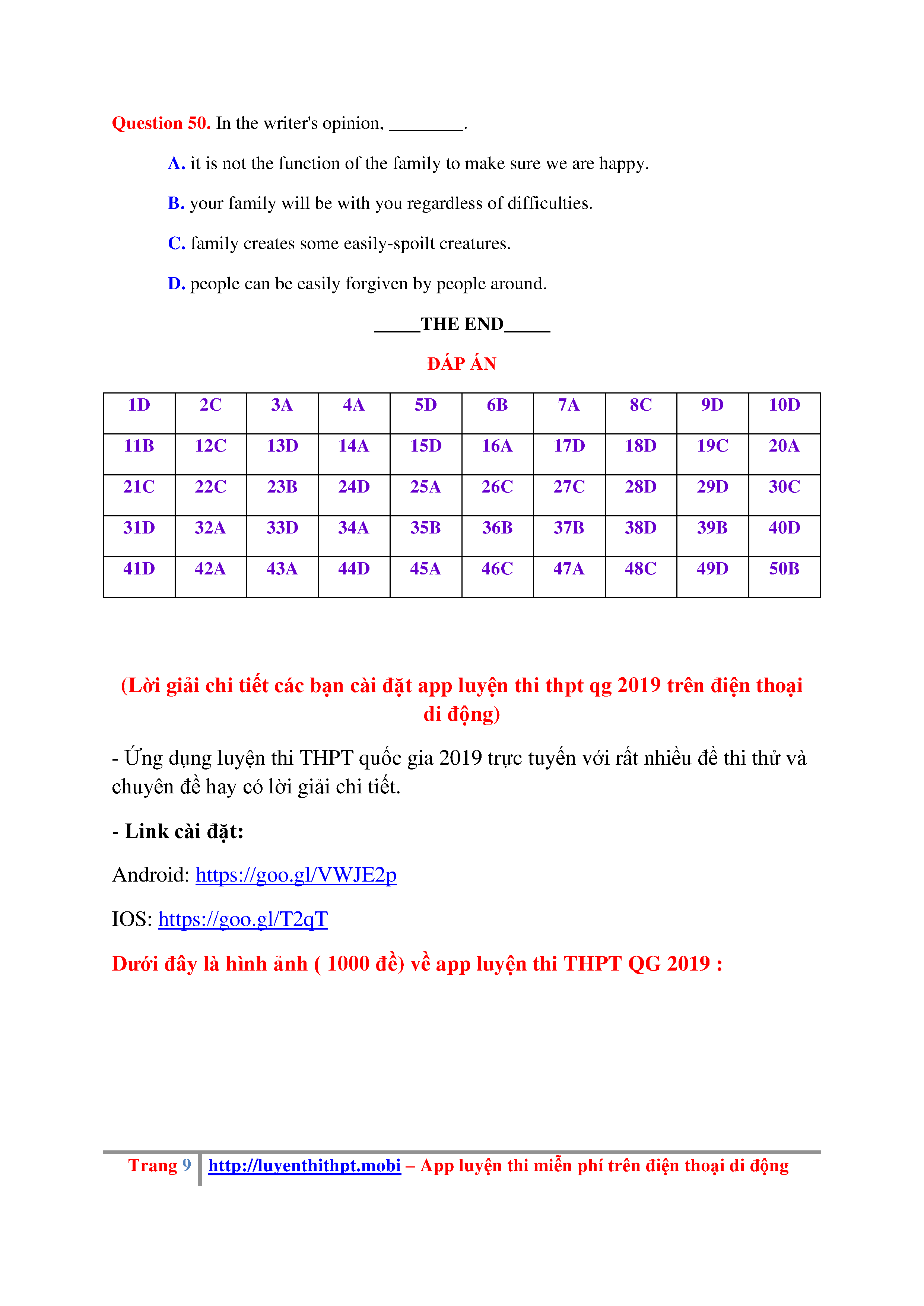 Đề thi thử THPTQG 2019 - Tiếng Anh - THPT Đoàn Thượng - Hải Dương -Lần 1-có lời giải