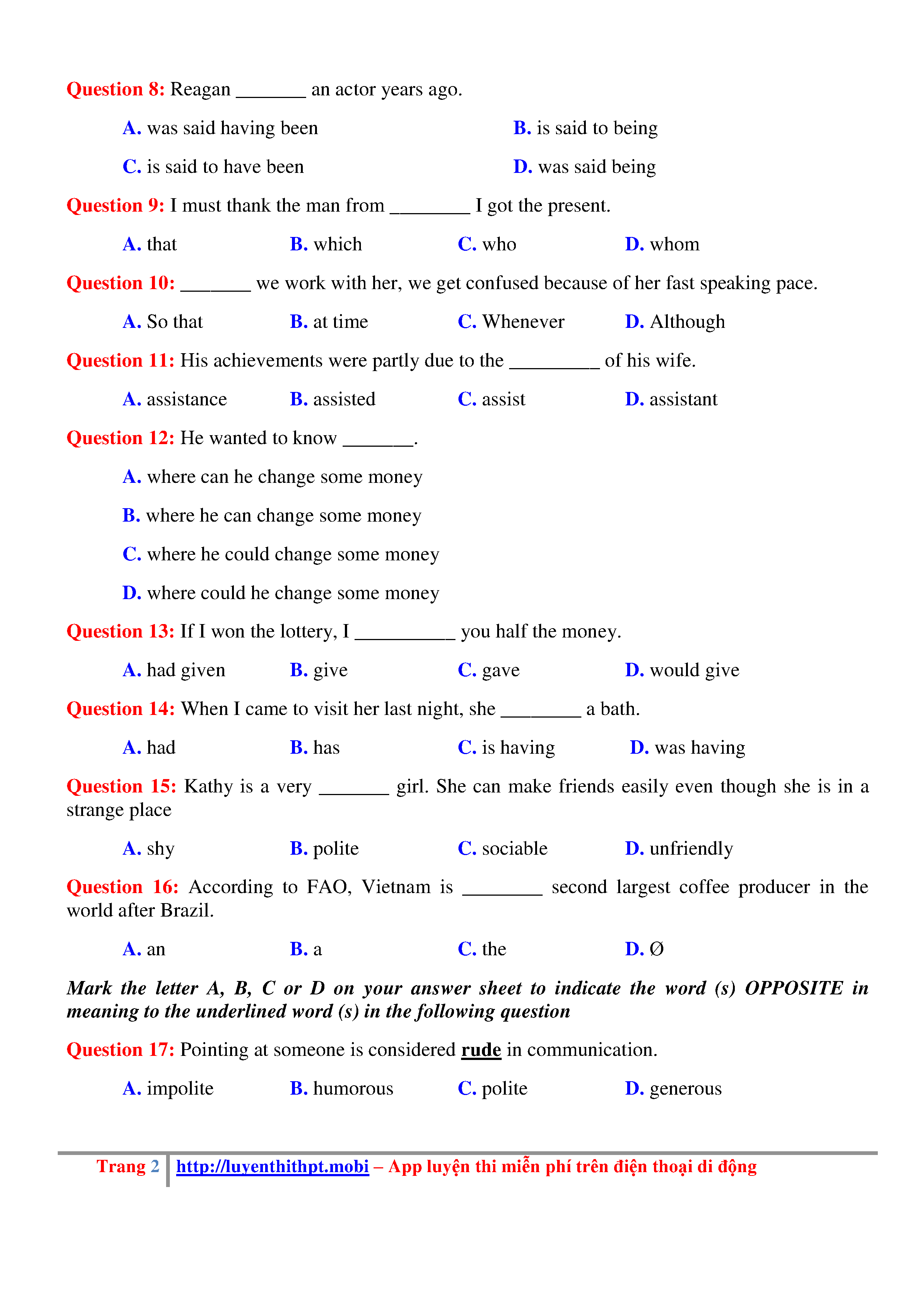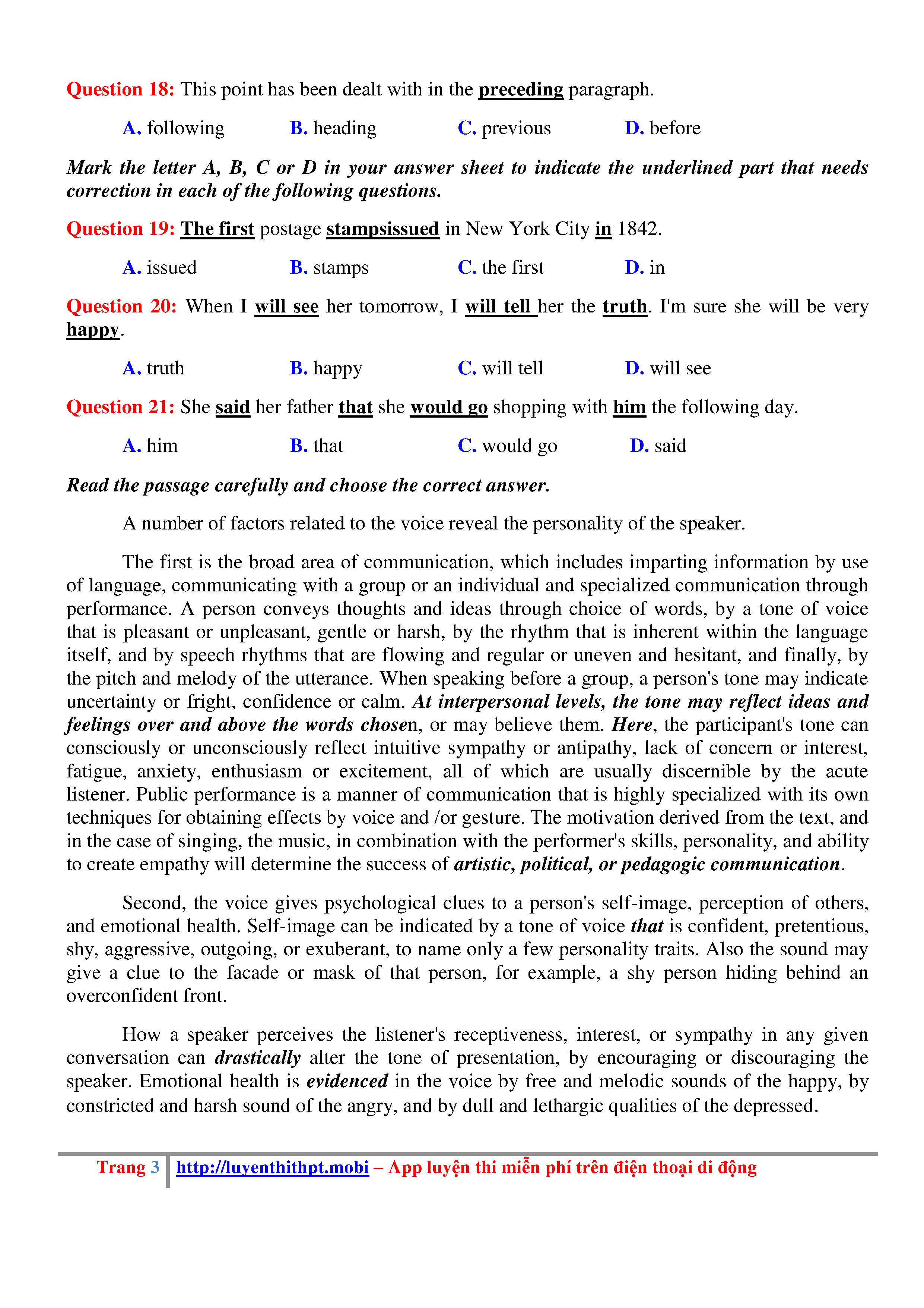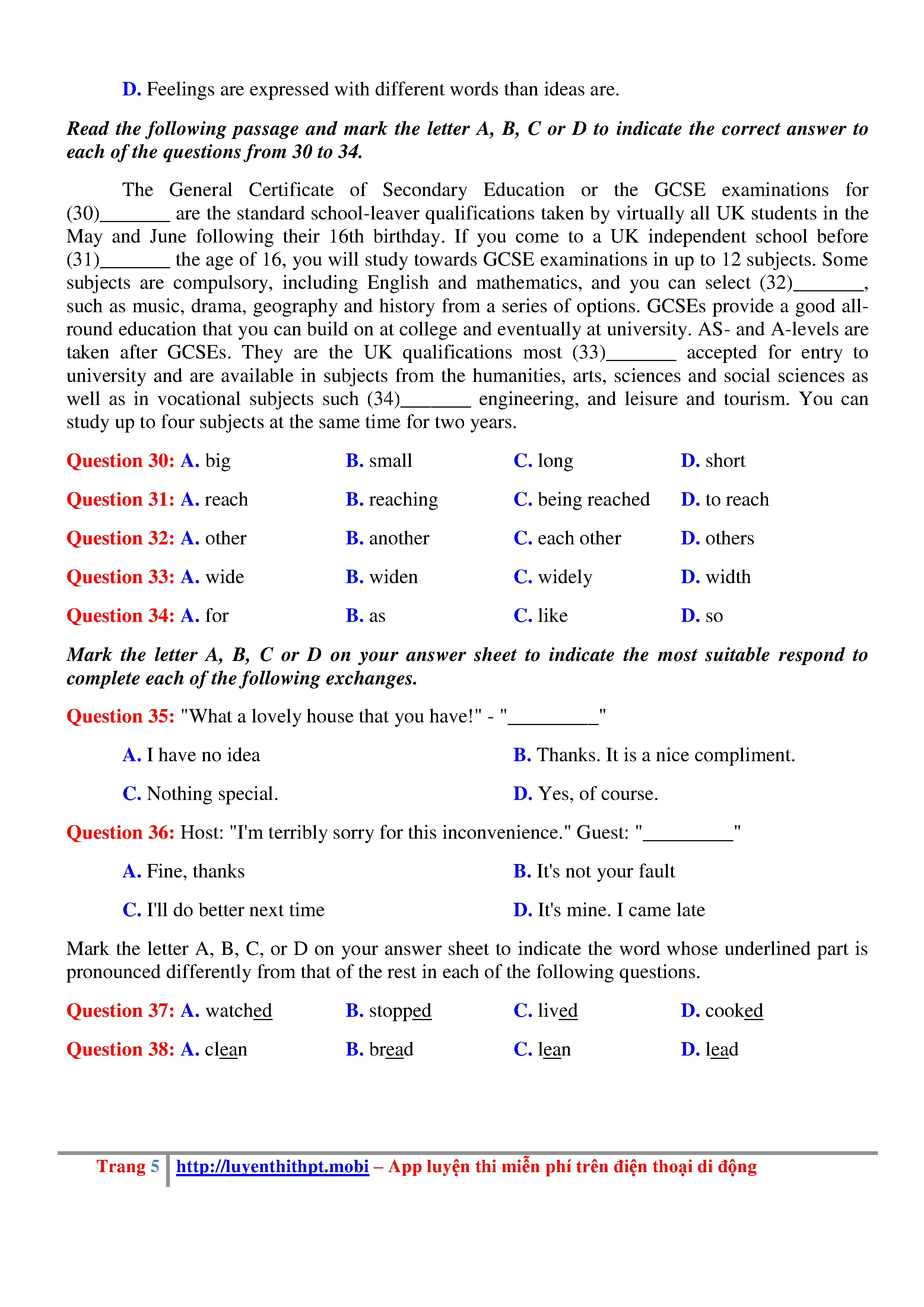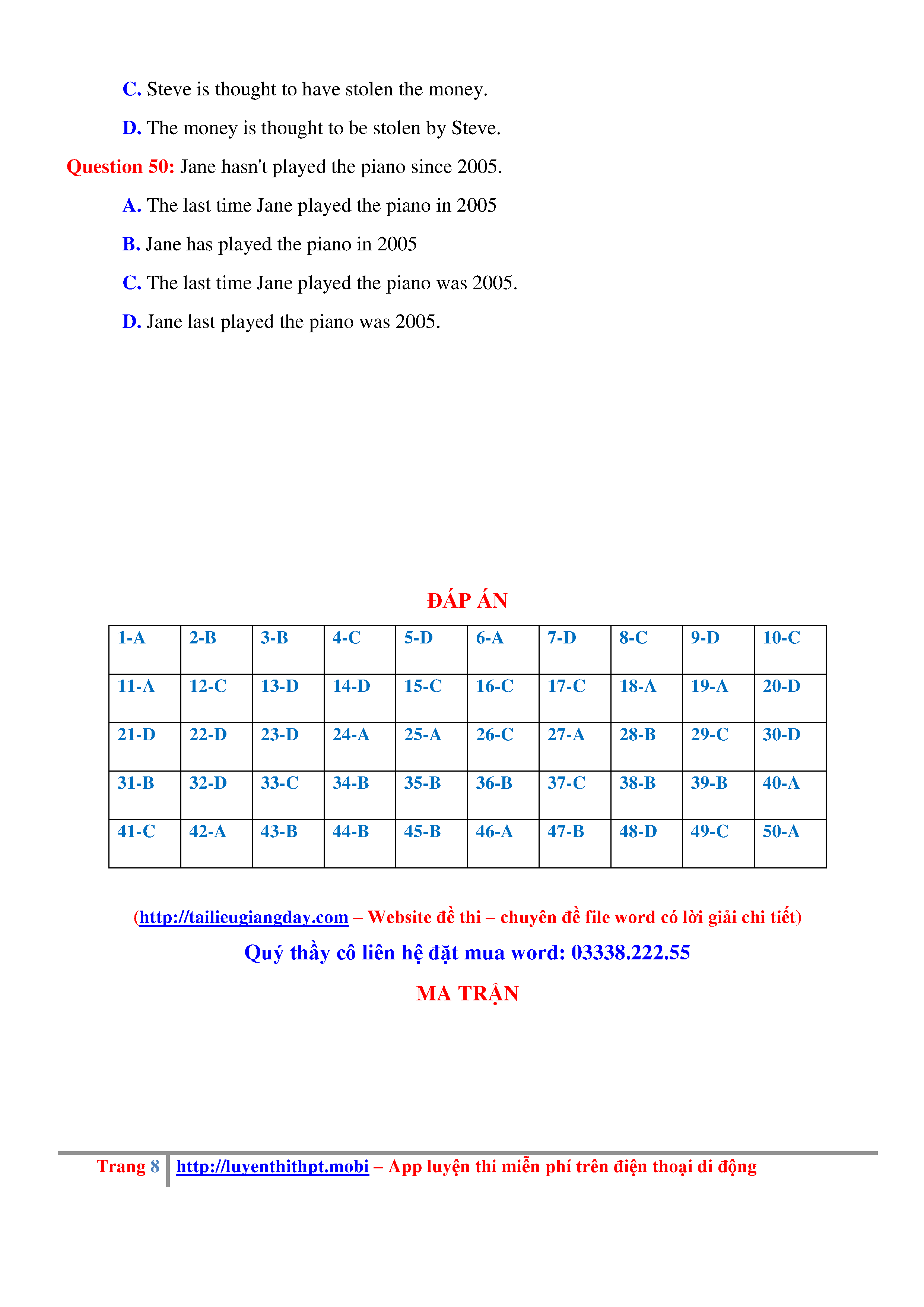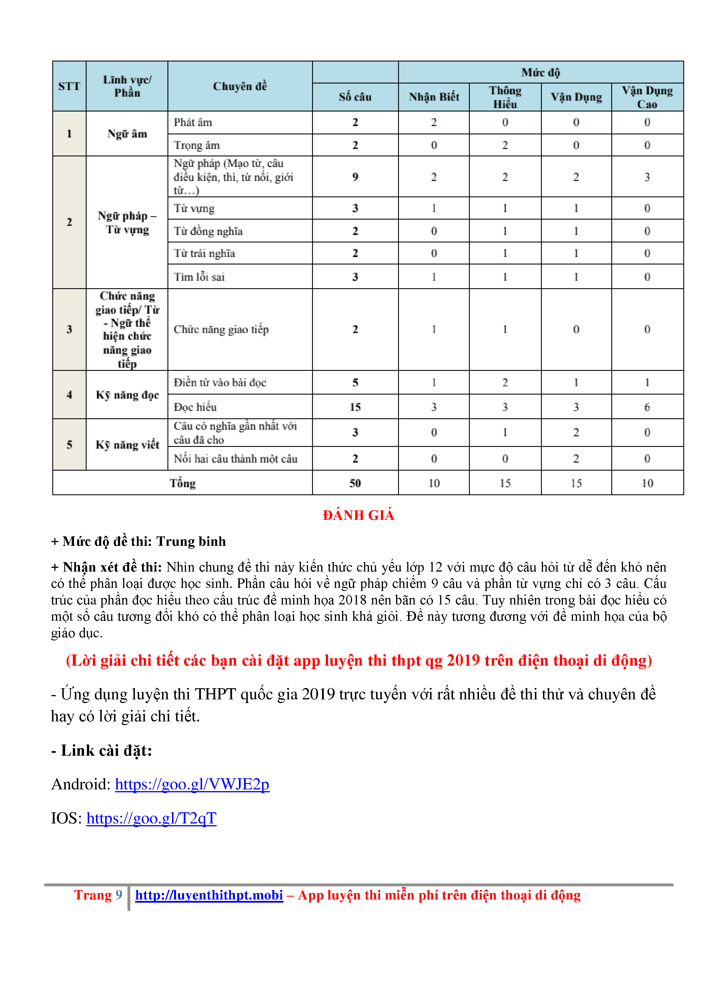 Đề thi thử THPTQG 2019 - Tiếng Anh - THPT Yên Lạc 2 - Vĩnh Phúc - Lần 1 - có lời giải, ma trận