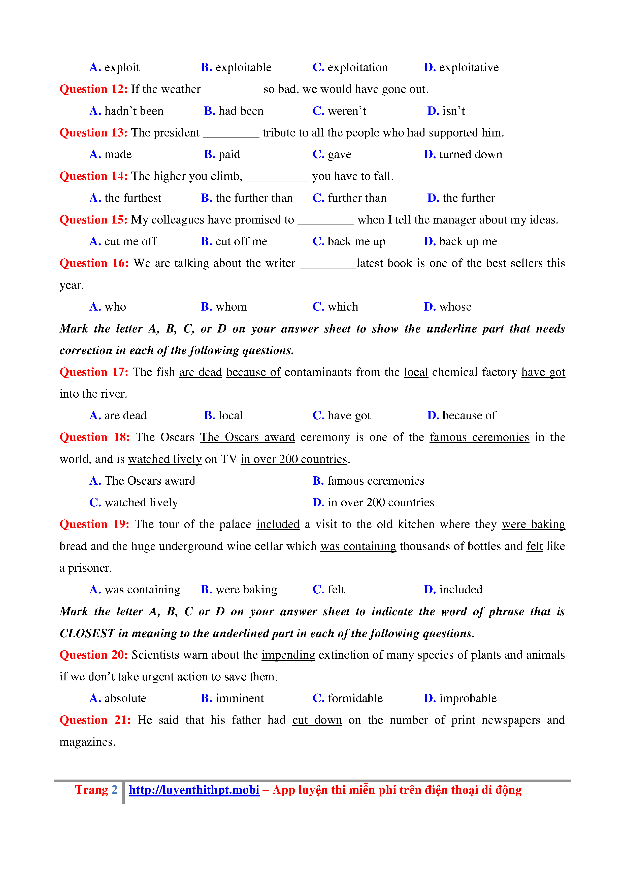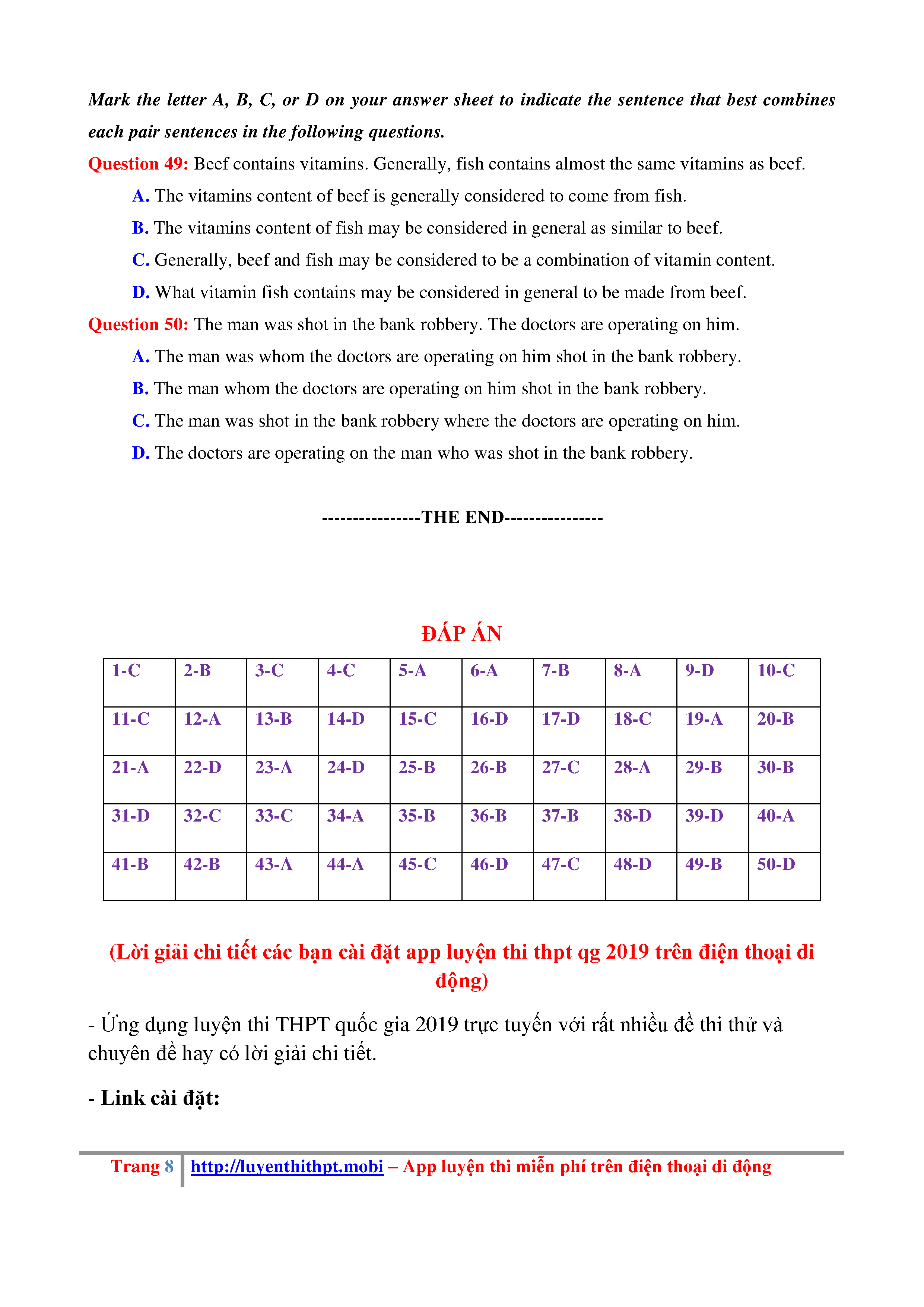 Đề thi thử THPTQG 2019 - Tiếng Anh - THPT Ngô Gia Tự - Vĩnh Phúc - Lần 1-có lời giải