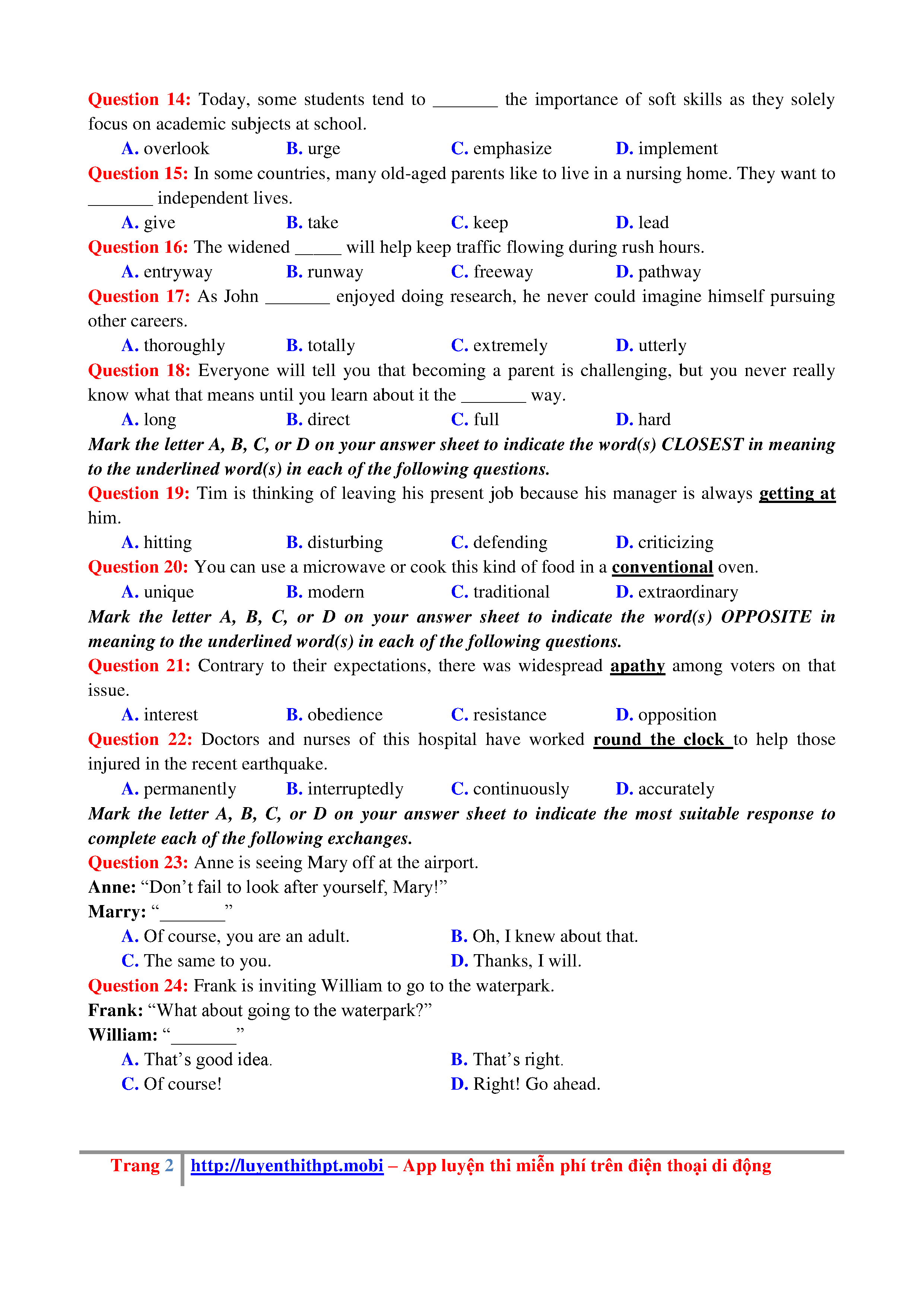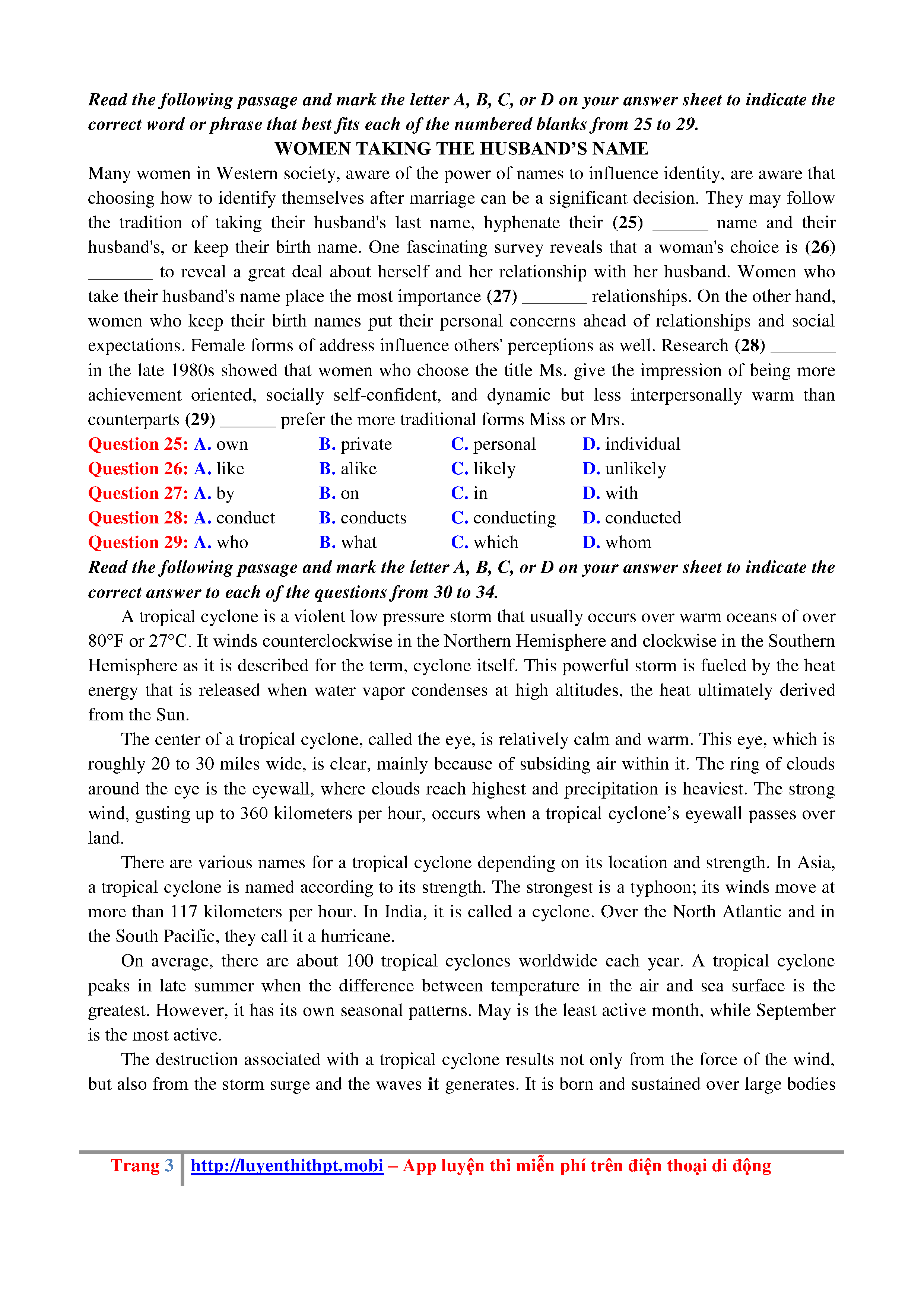 ĐỀ THI THỬ THPT QUỐC GIA LẦN 1 - THPT CHUYÊN TRẦN PHÚ - Tiếng Anh