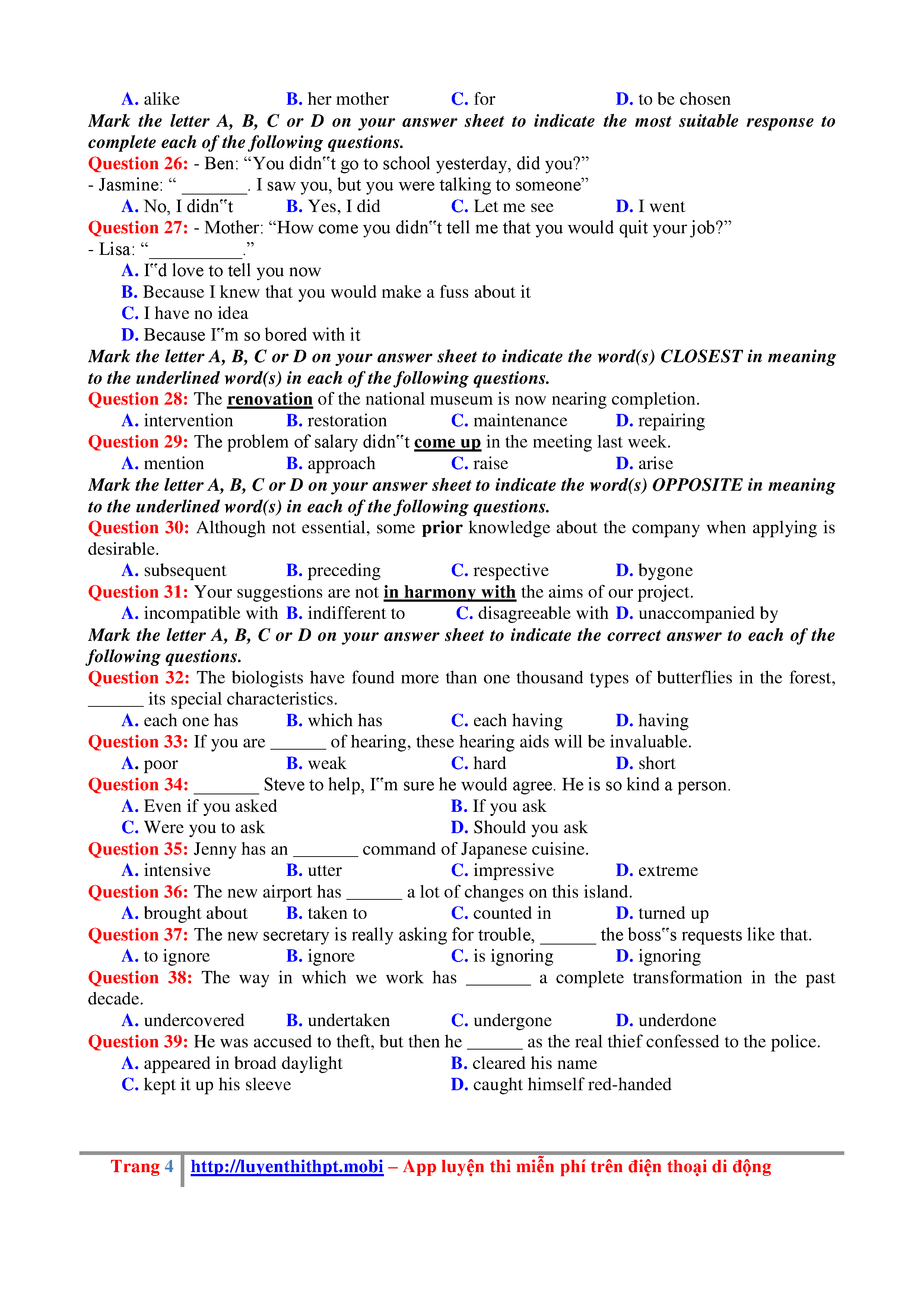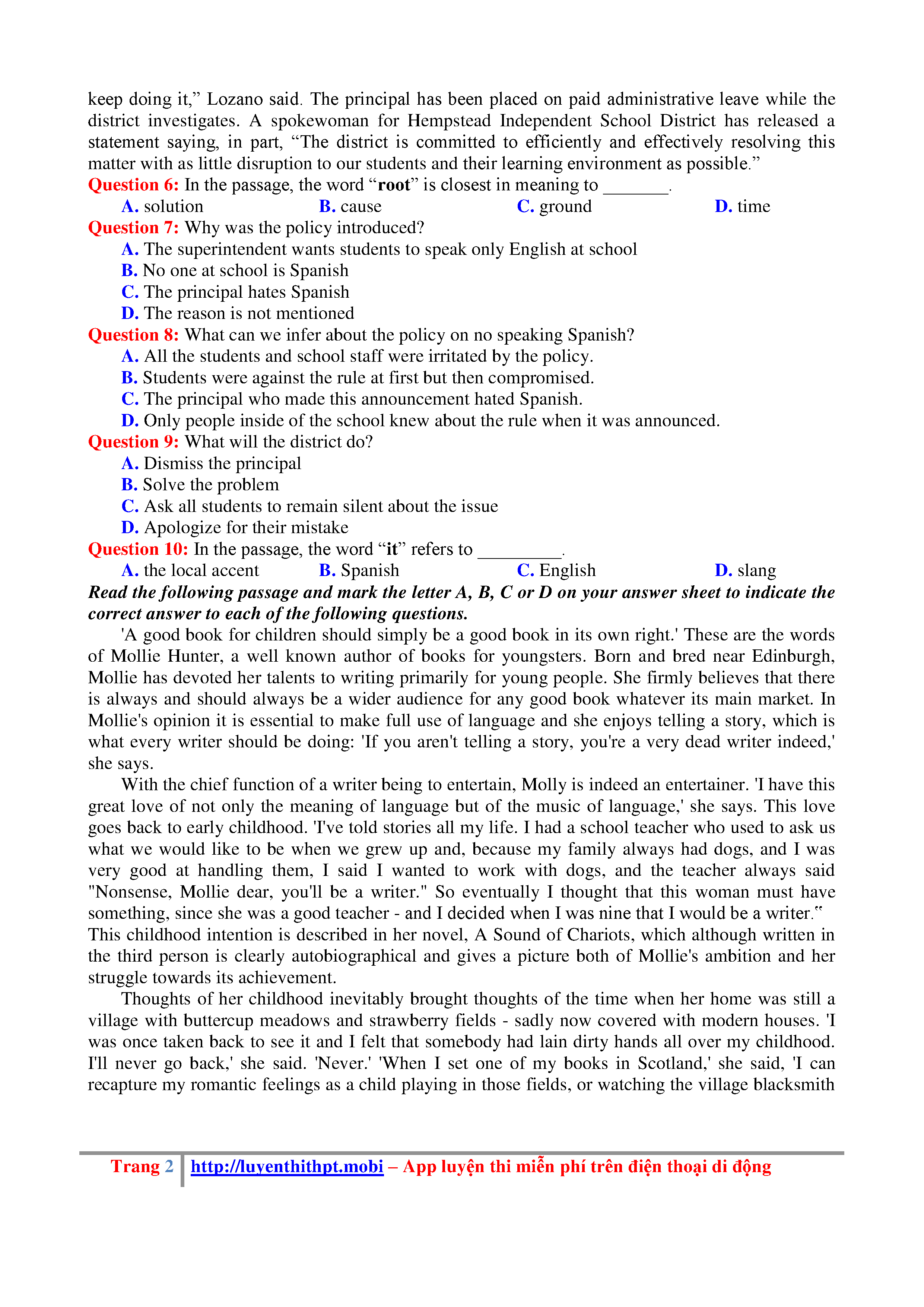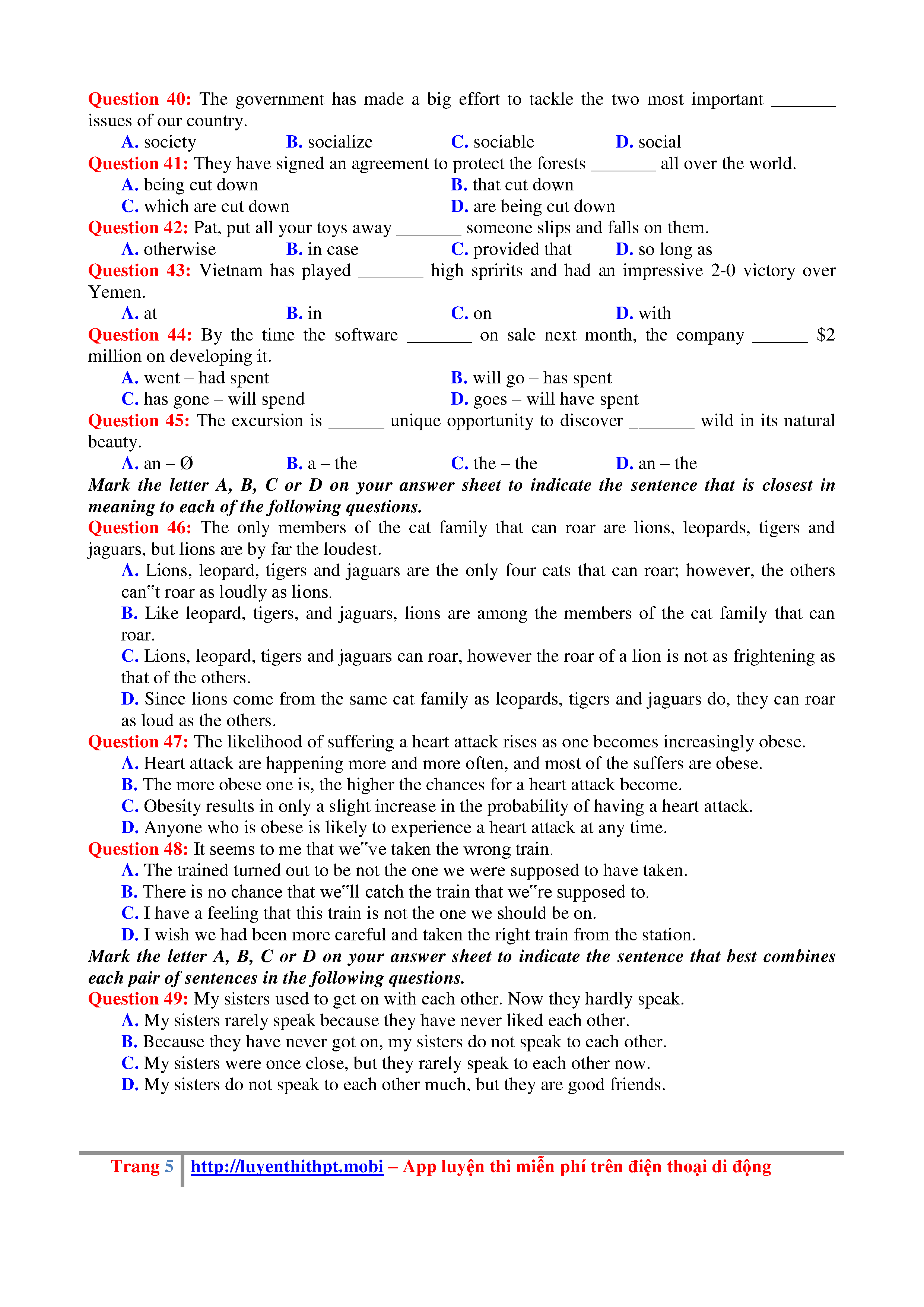 Đề thi thử THPTQG 2019 - Tiếng Anh - THPT Thái Phiên - Hải Phòng - Lần 1 - có lời giải