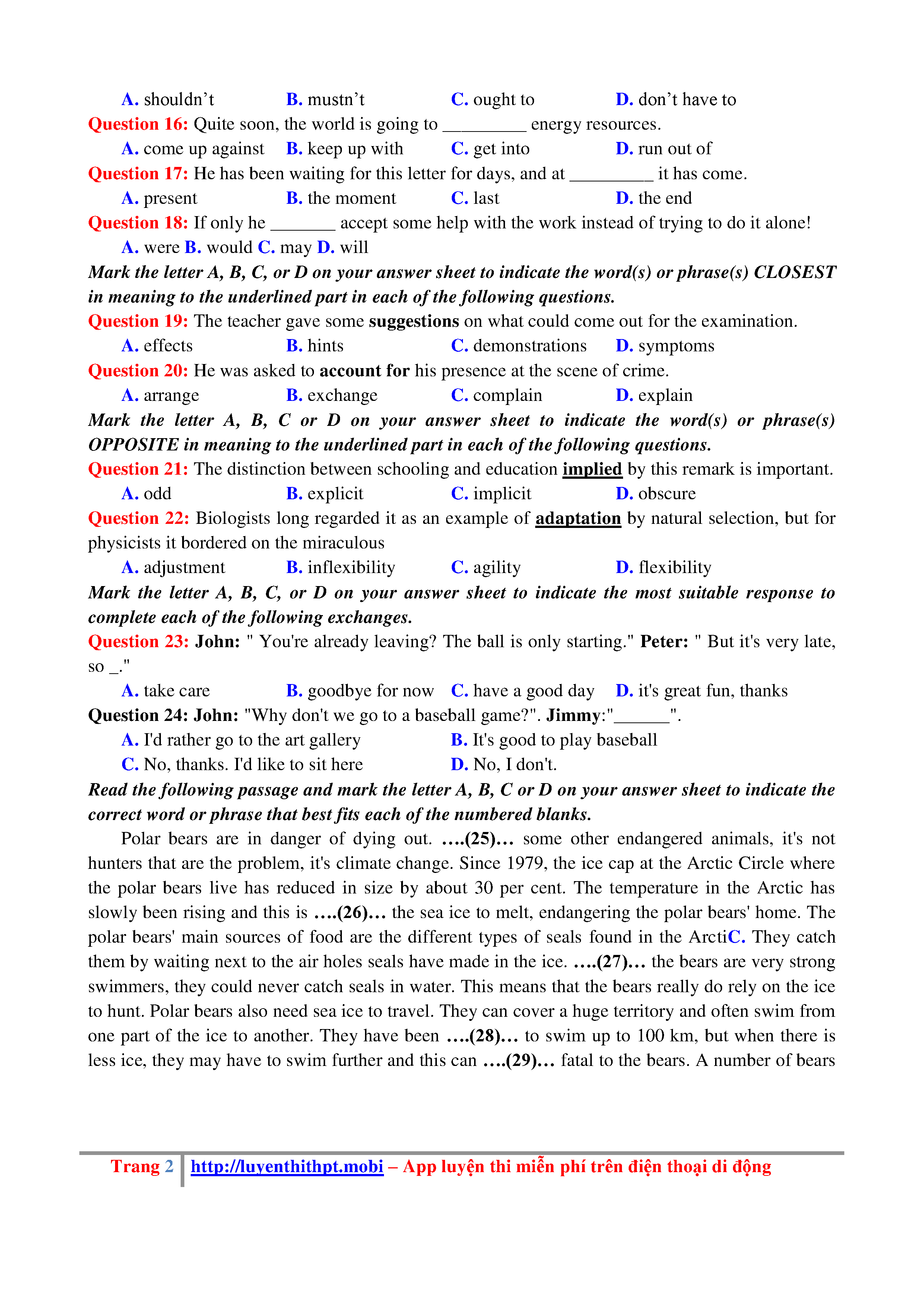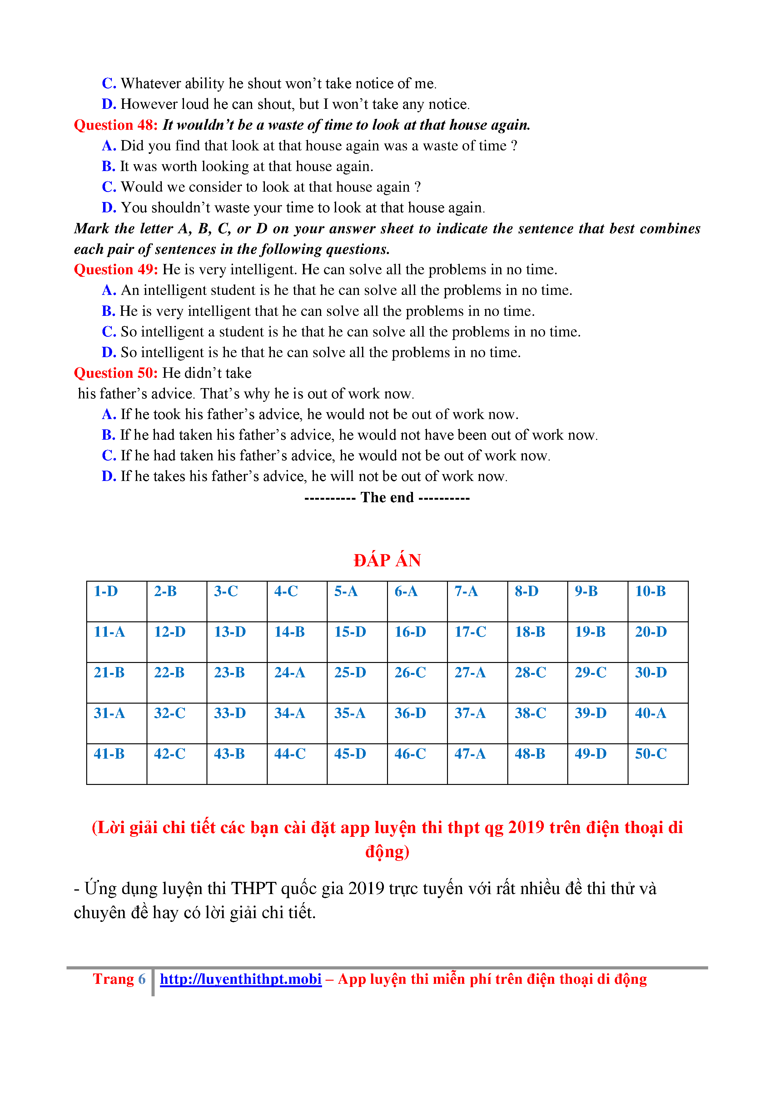 Đề thi thử THPTQG 2019 - Tiếng Anh - THPT Hàm Rồng - Thanh Hóa - Lần 1 - có lời giải, ma trận
