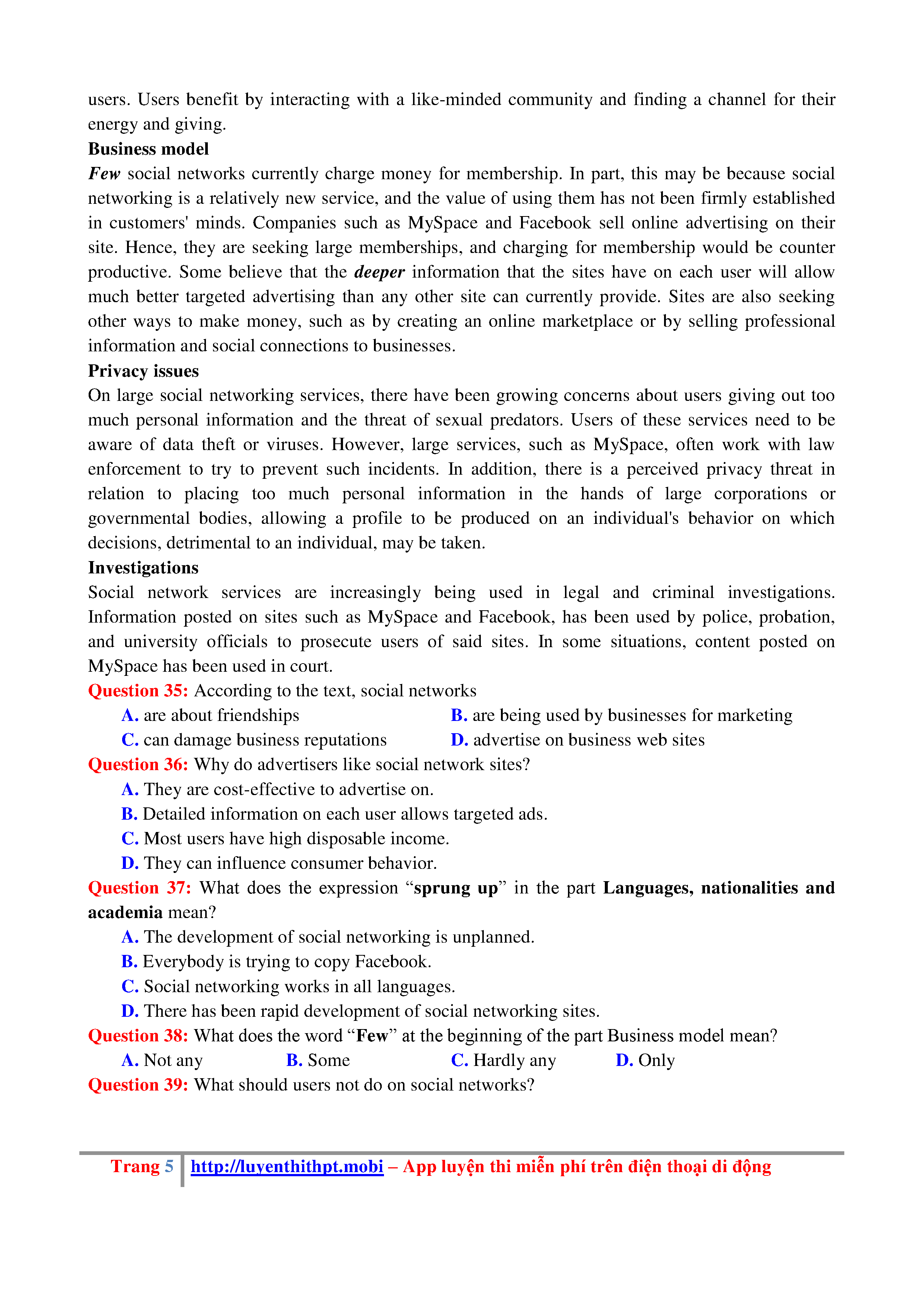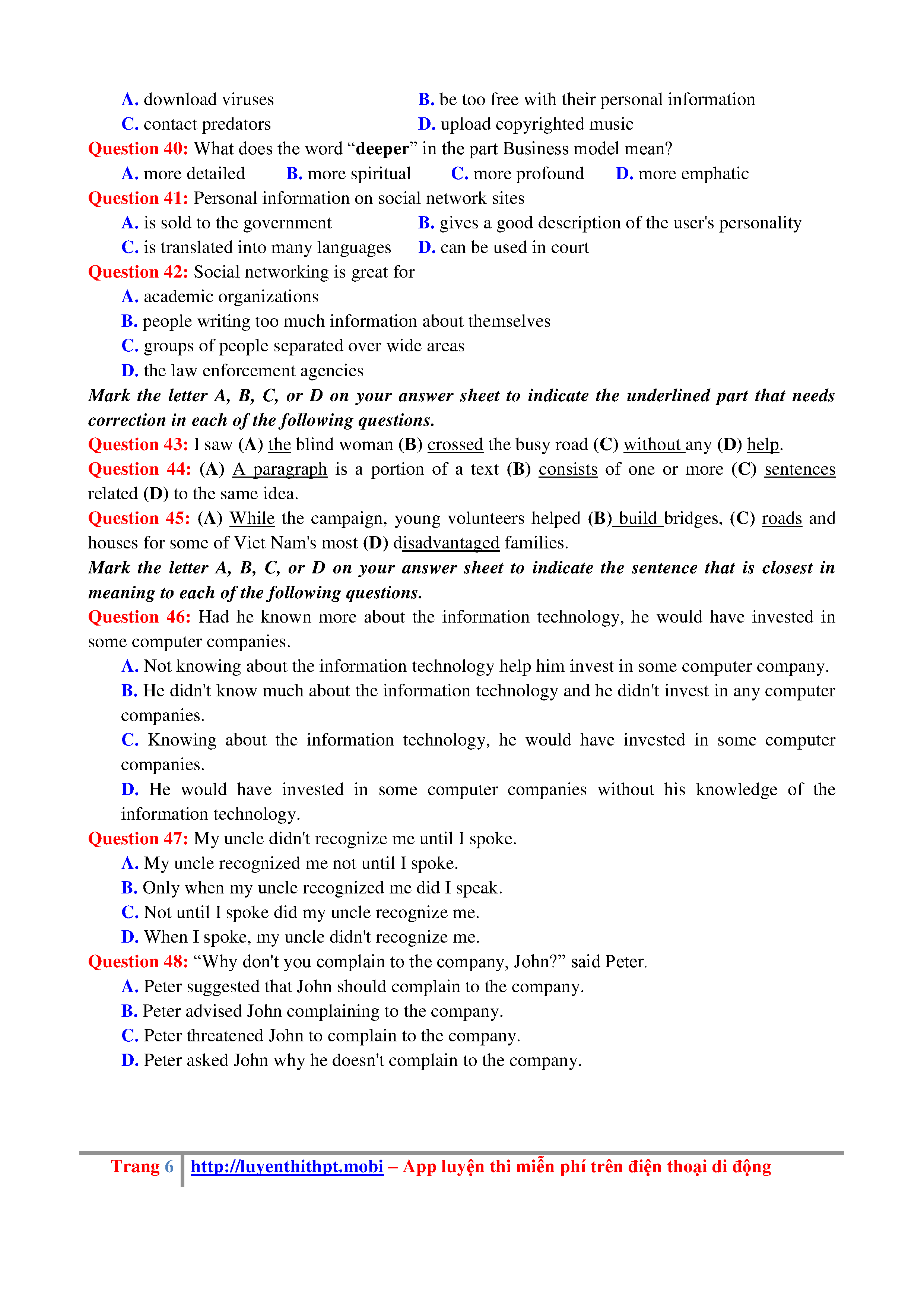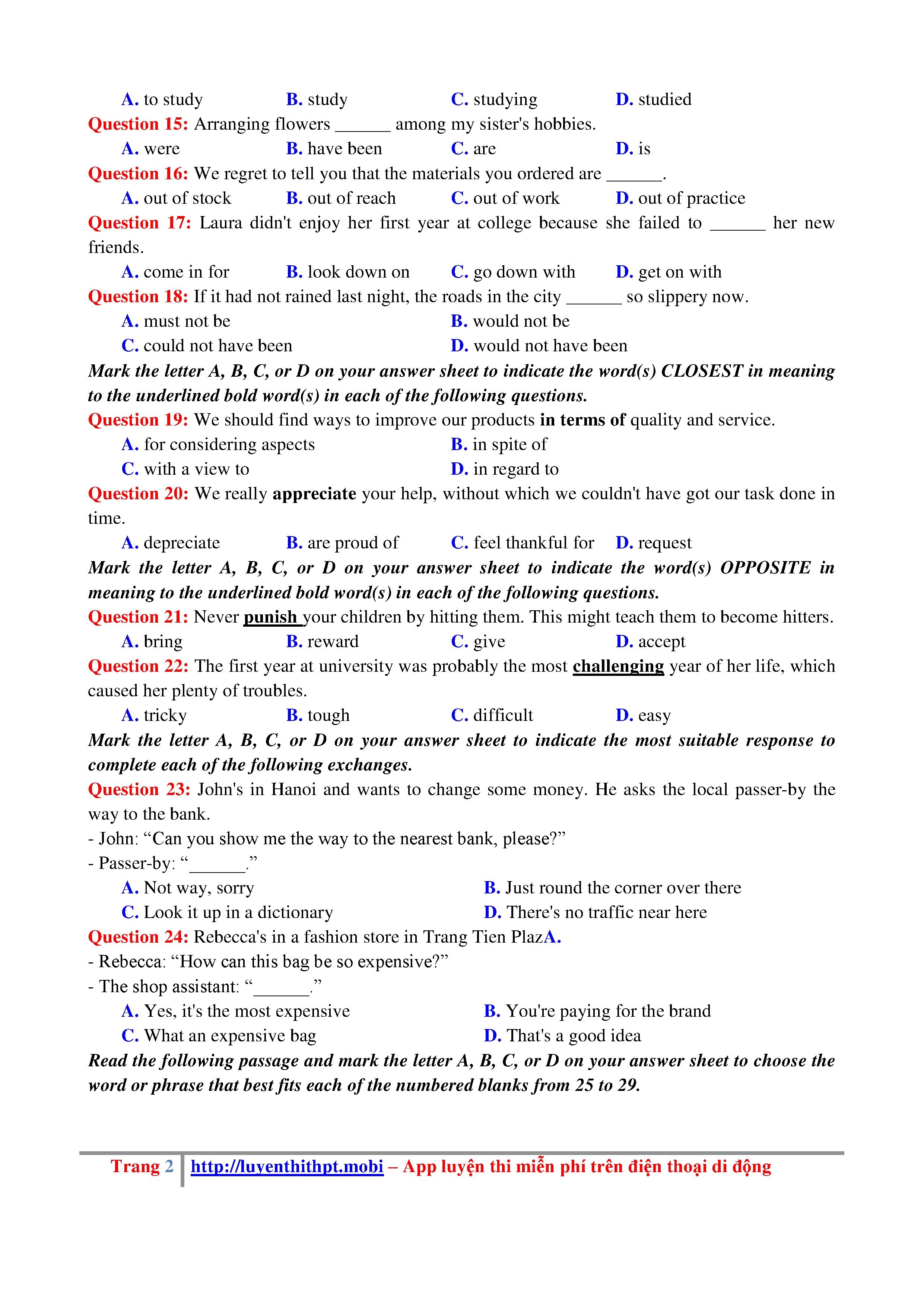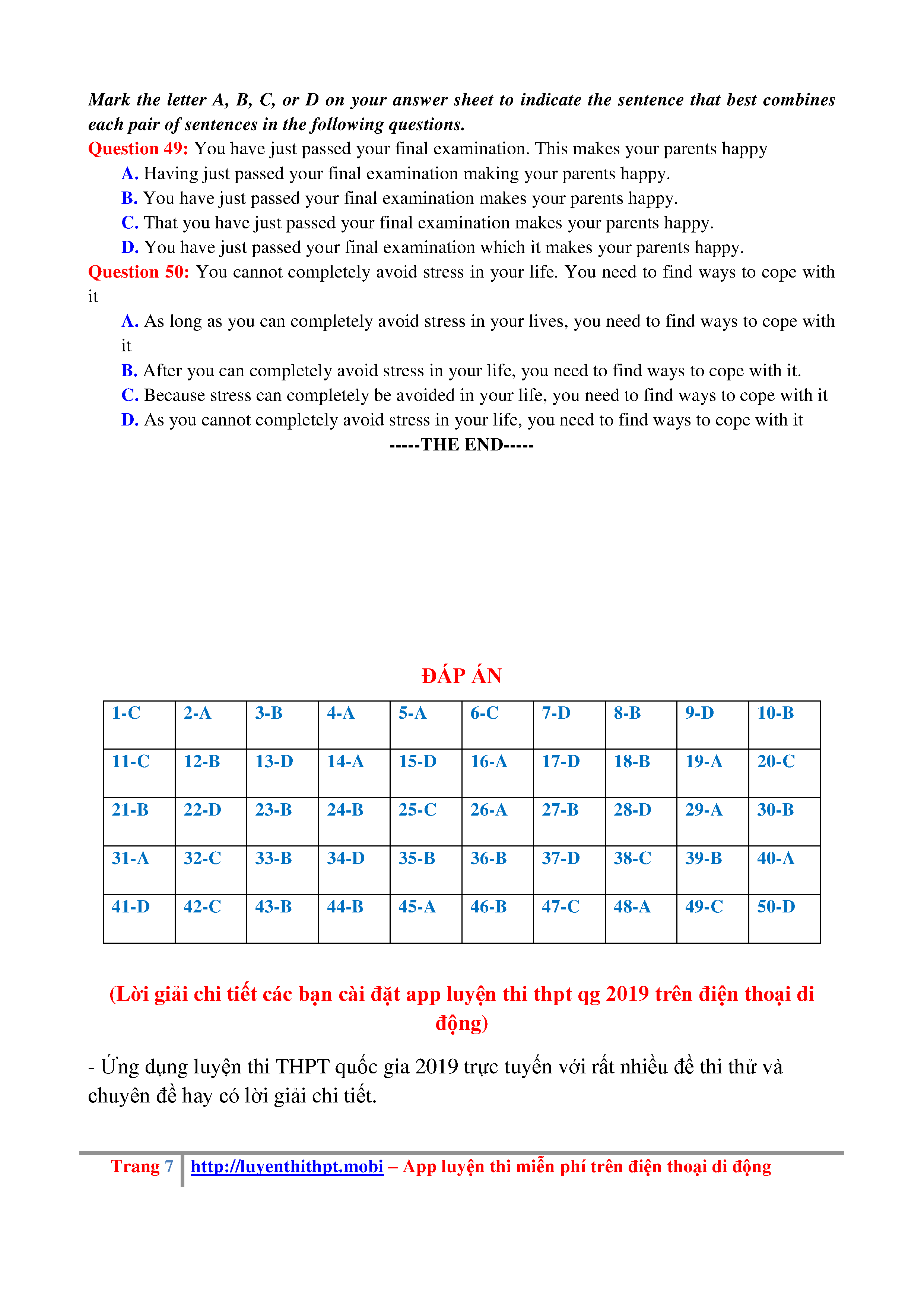 Đề thi thử THPTQG 2019 - Tiếng Anh - THPT Thăng Long - Hà Nội - Lần 1 - có lời giải, ma trận