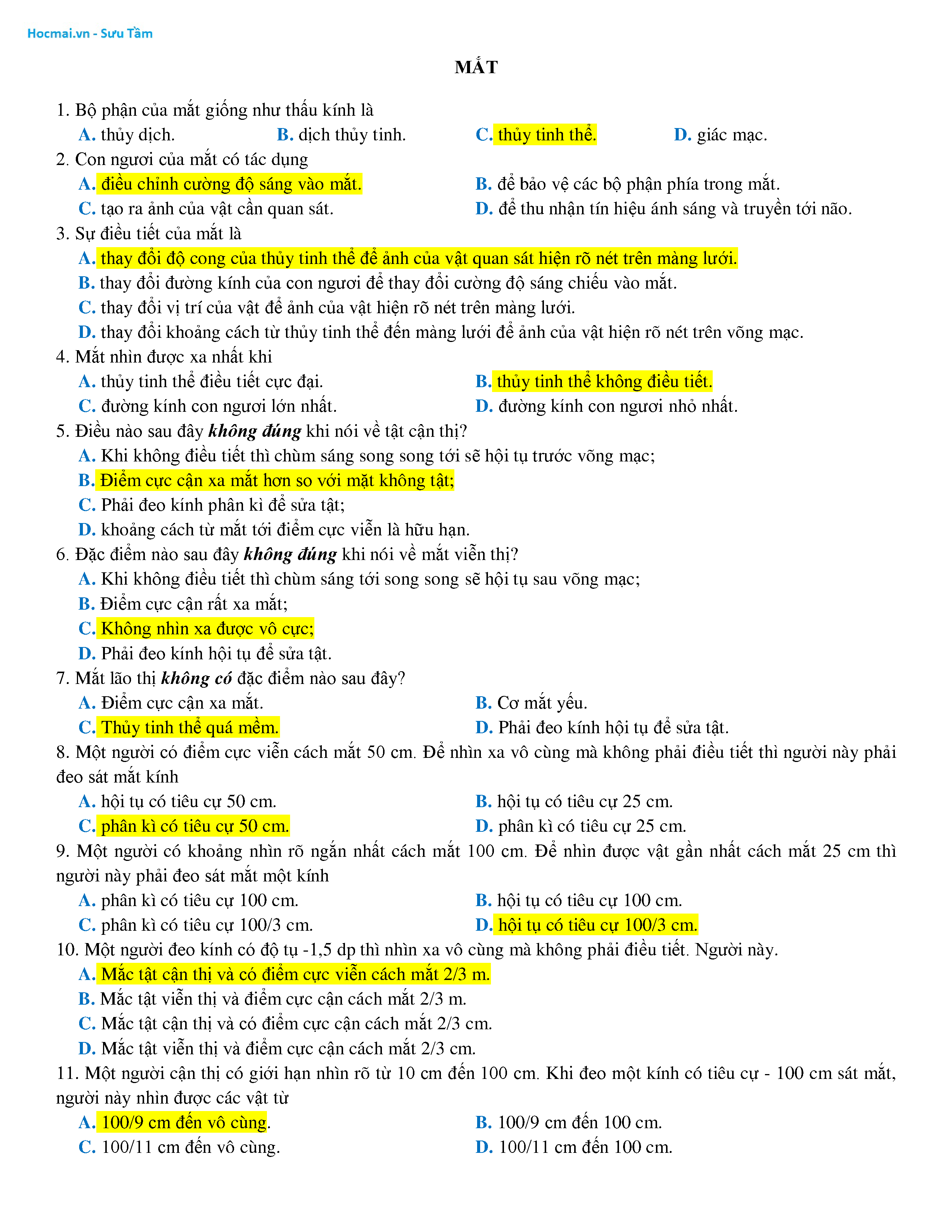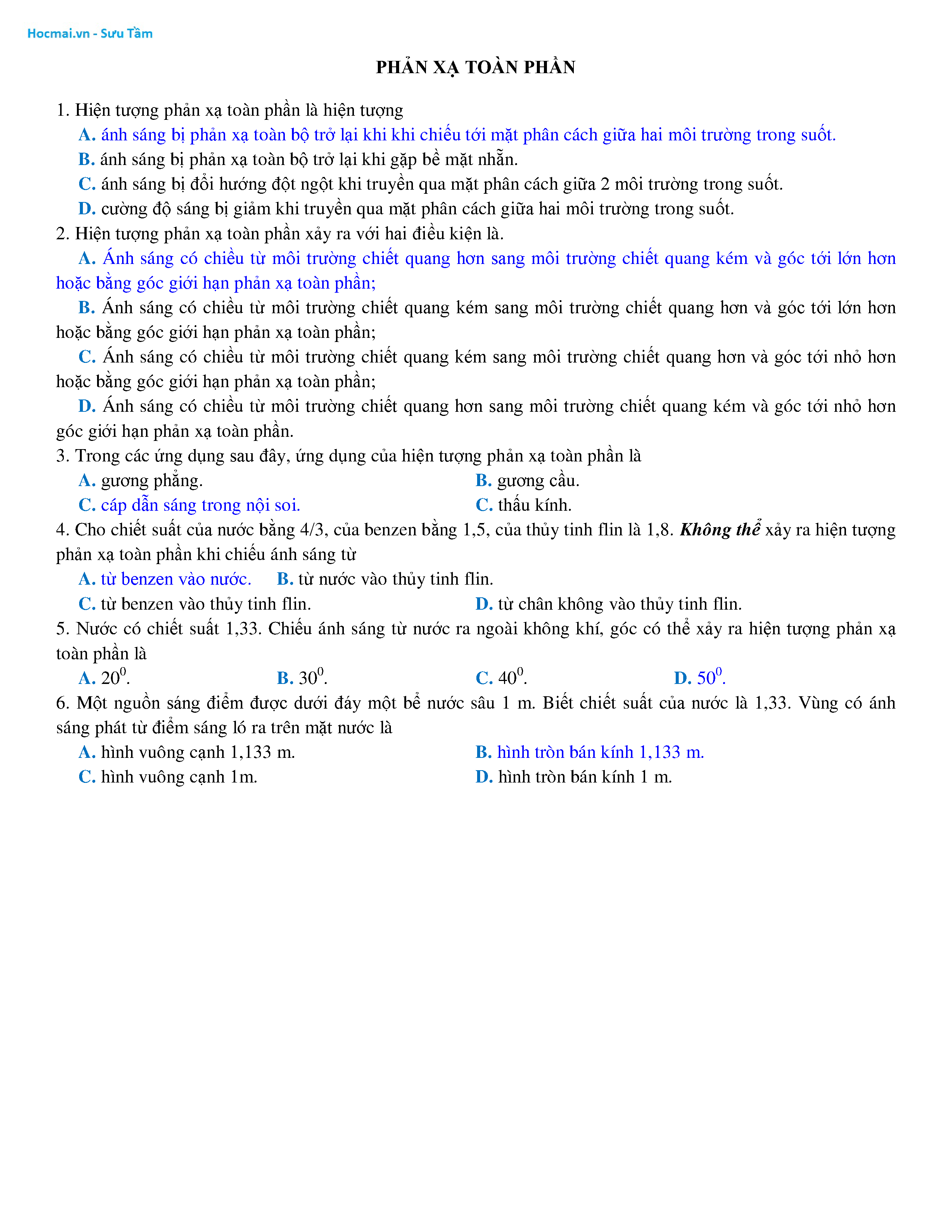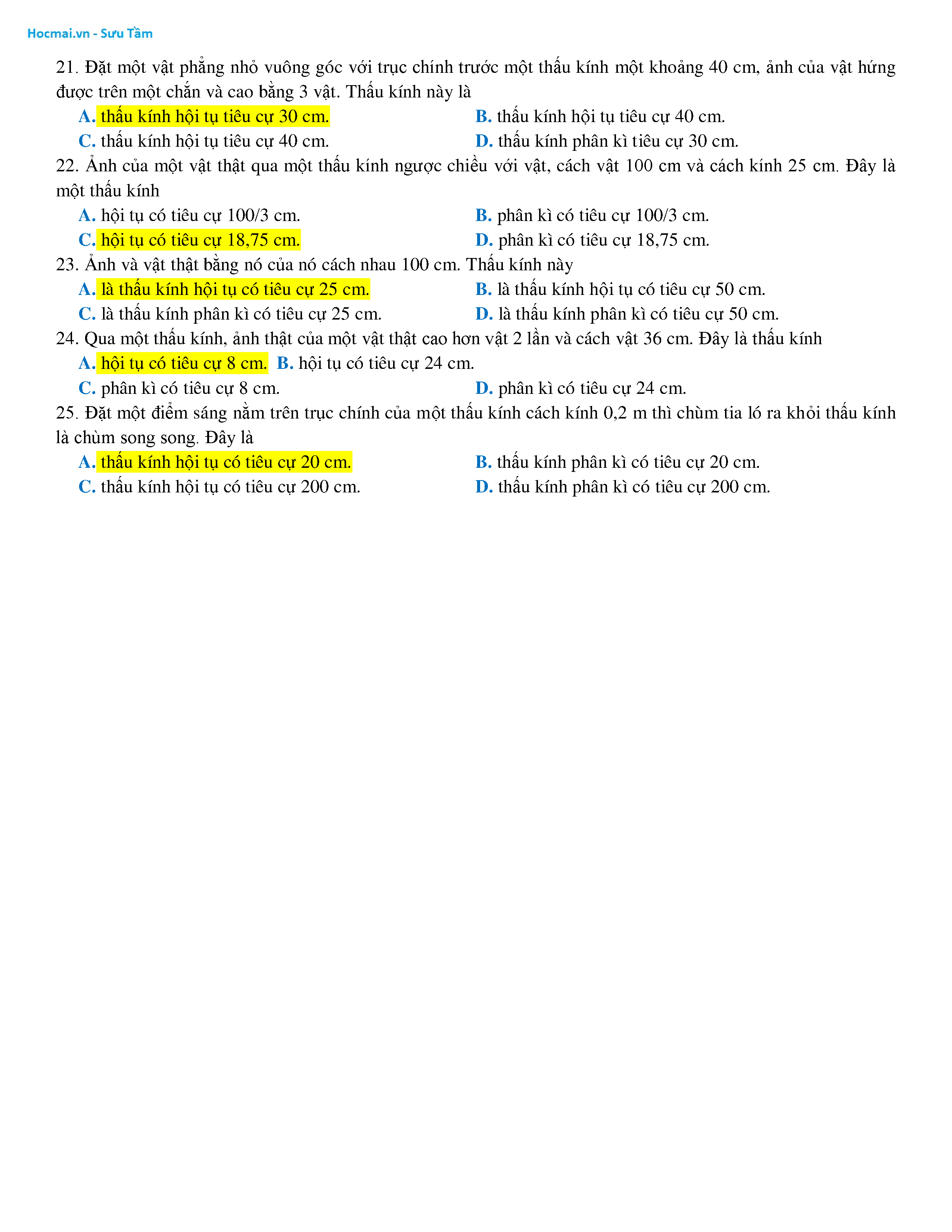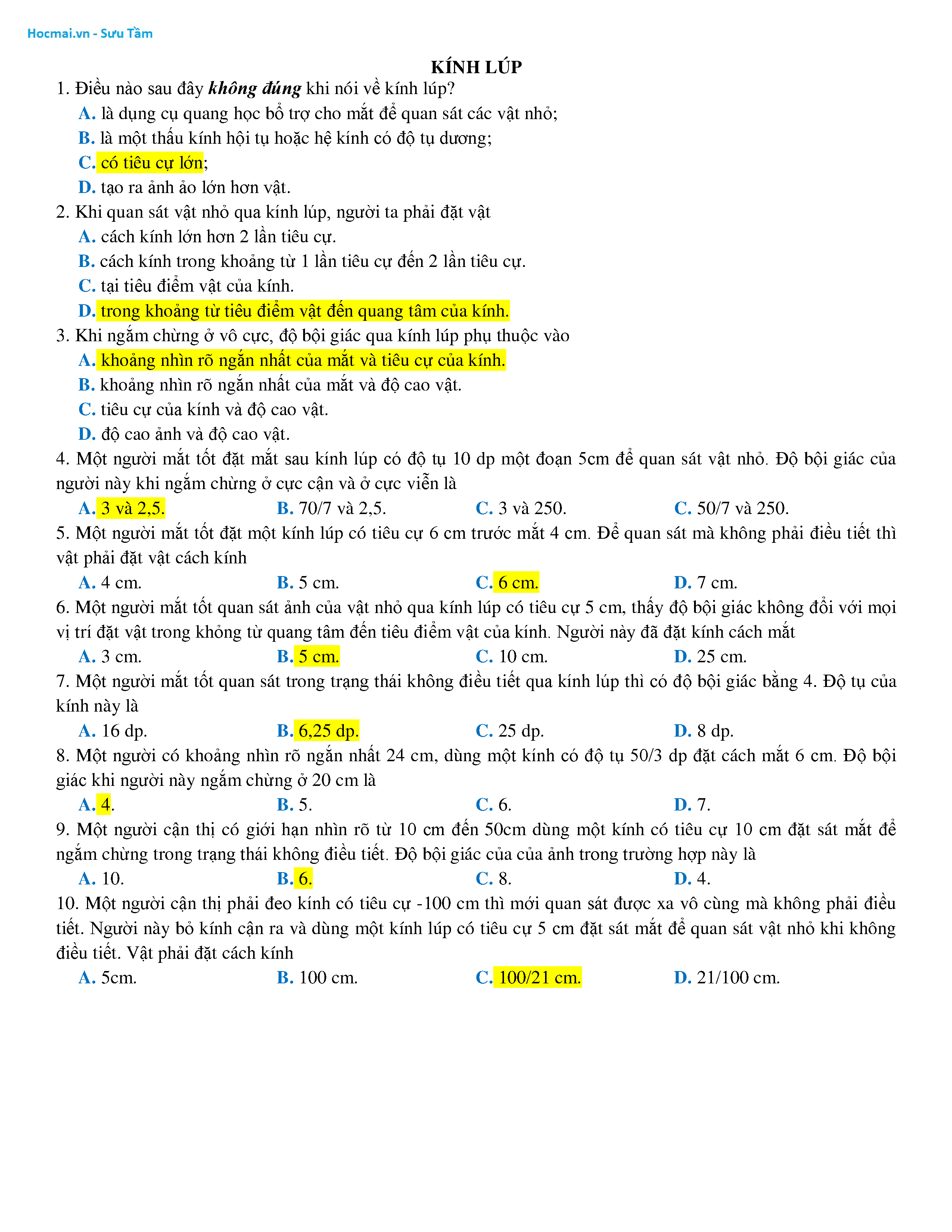 TÓM TẮT LÝ THUYẾT VÀ BÀI TẬP CÓ ĐÁP ÁN CHƯƠNG 6 + 7 VẬT LÍ 11