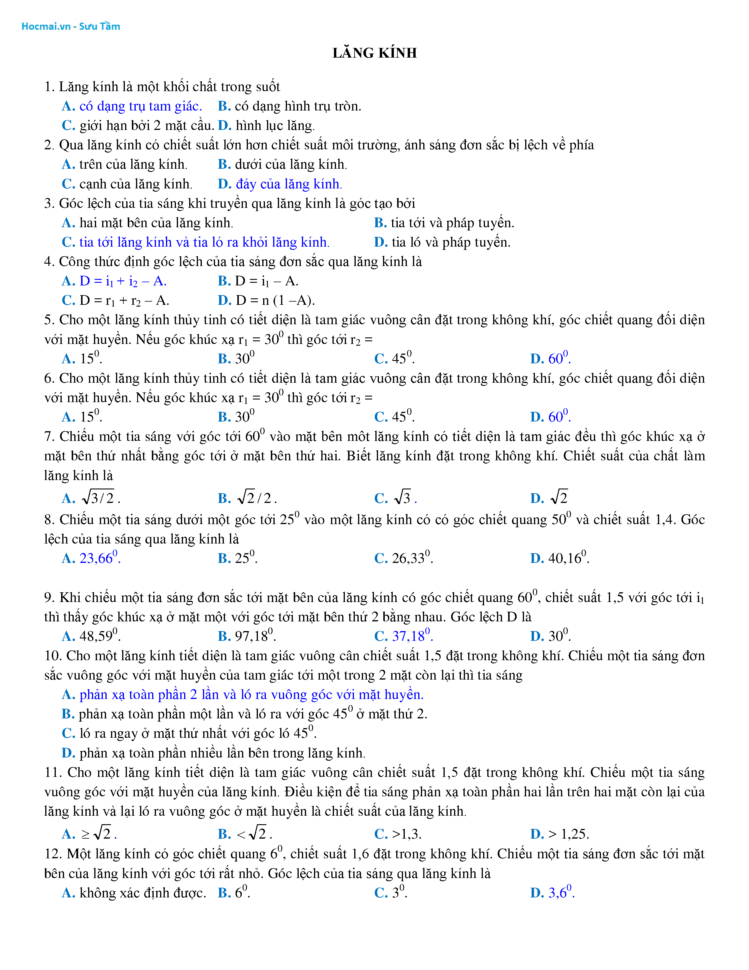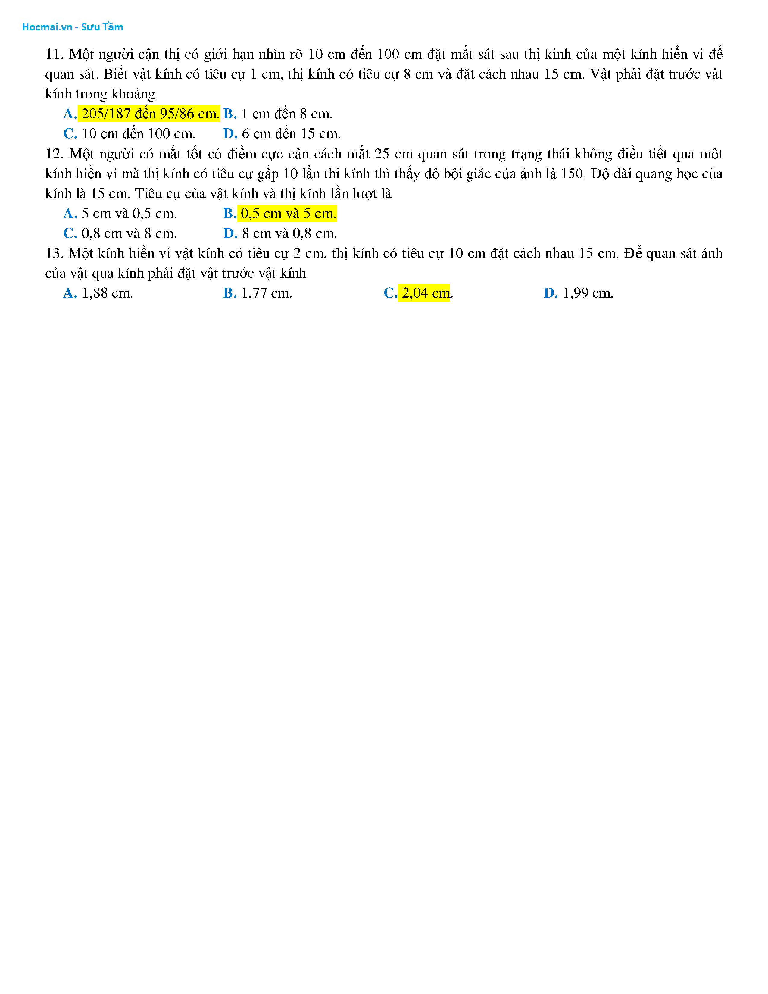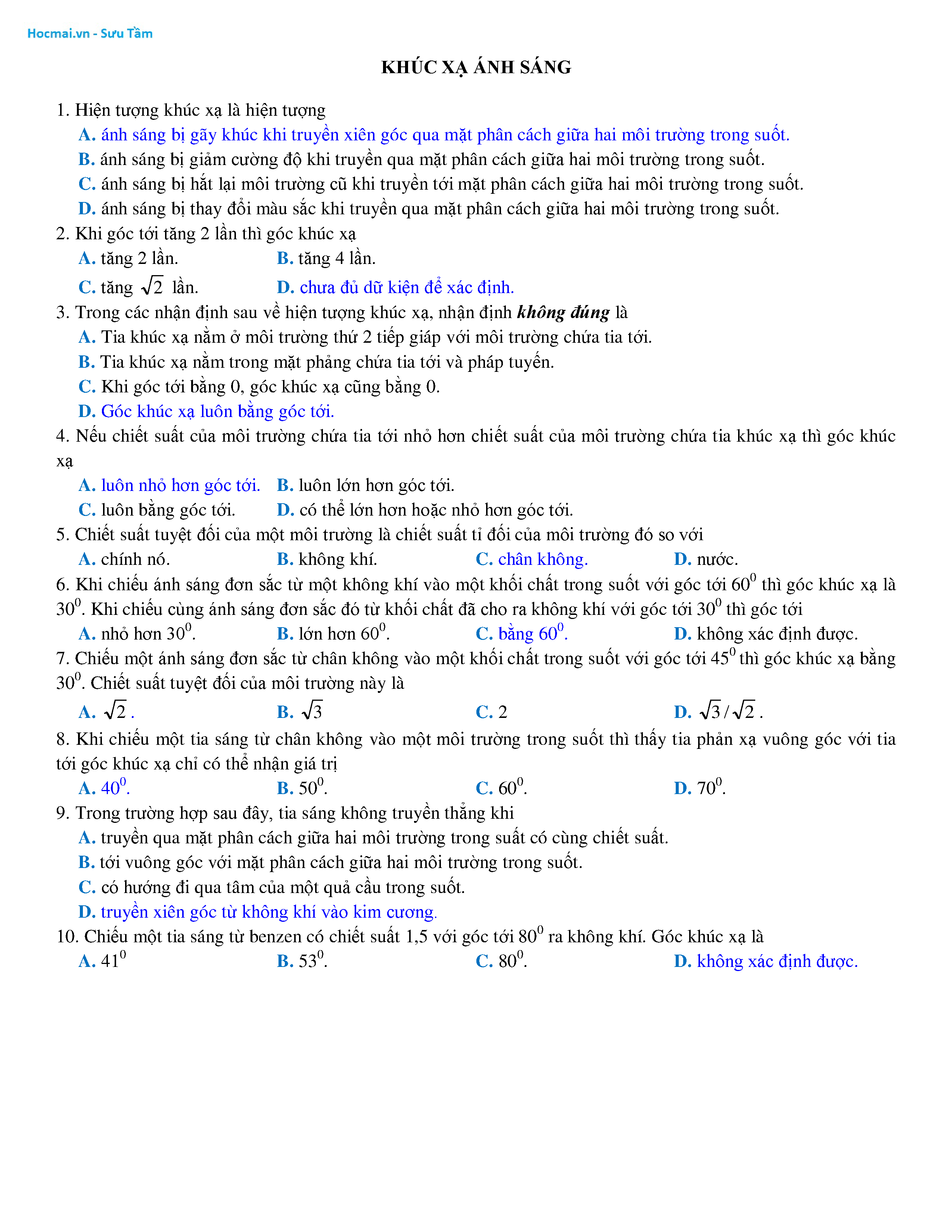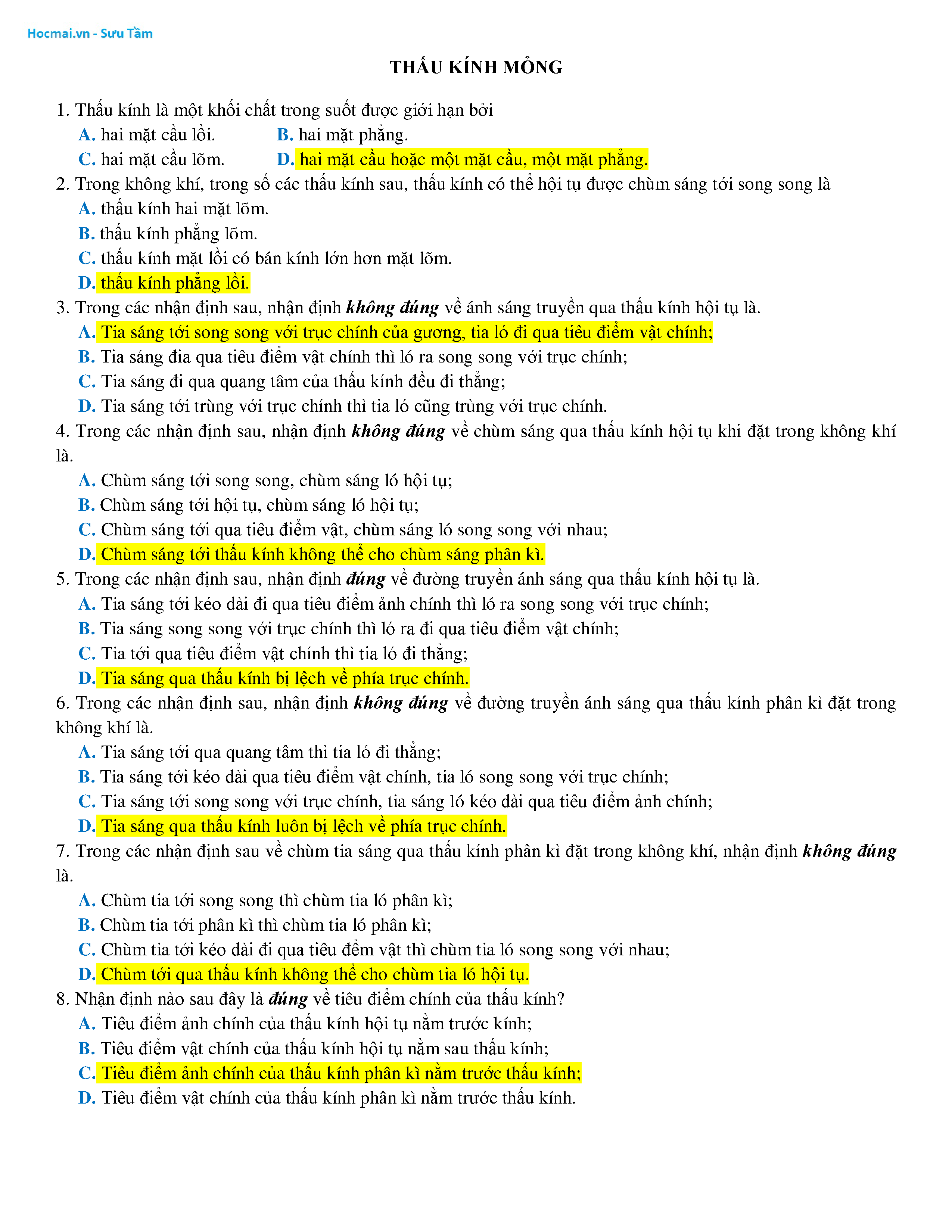 TÓM TẮT LÝ THUYẾT VÀ BÀI TẬP CÓ ĐÁP ÁN CHƯƠNG 6 + 7 VẬT LÍ 11