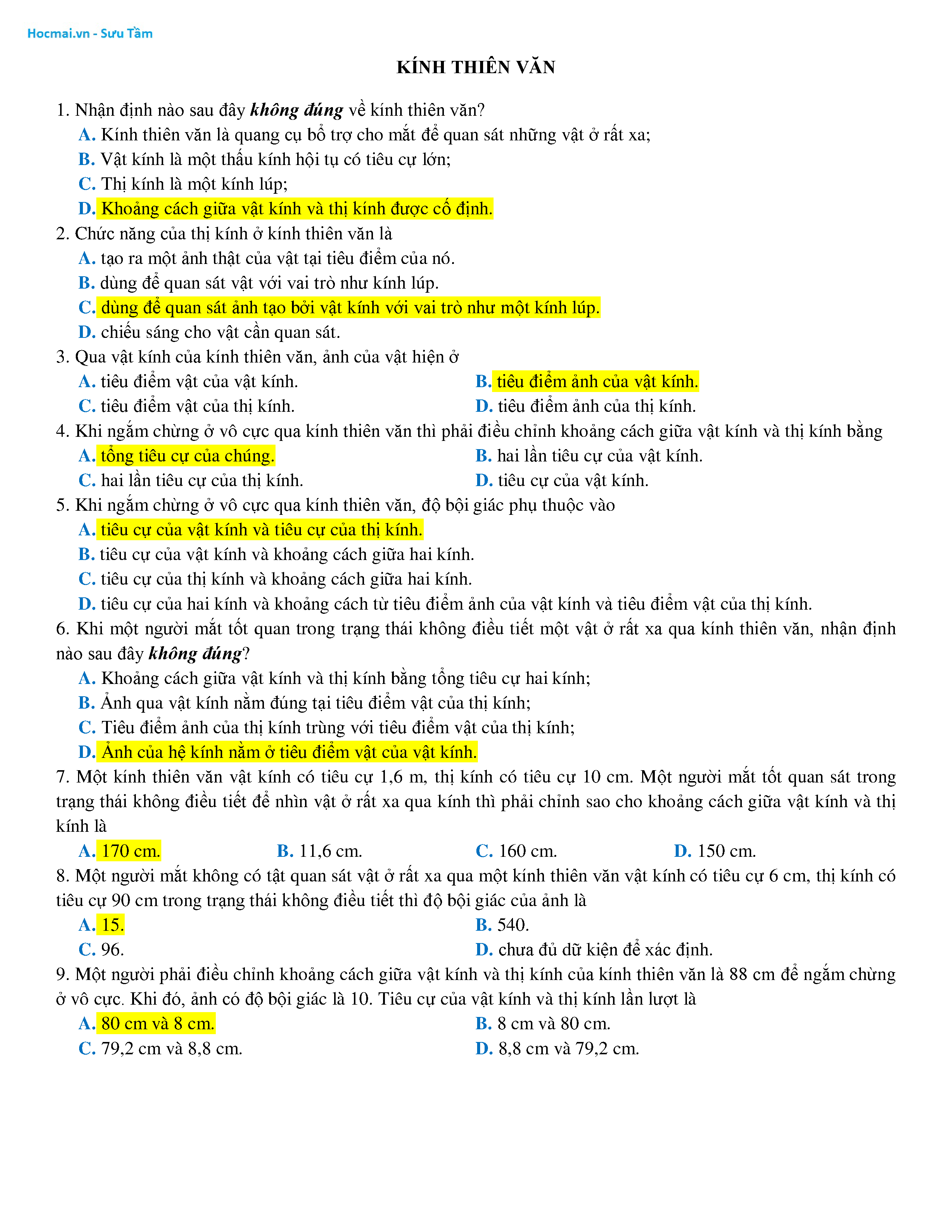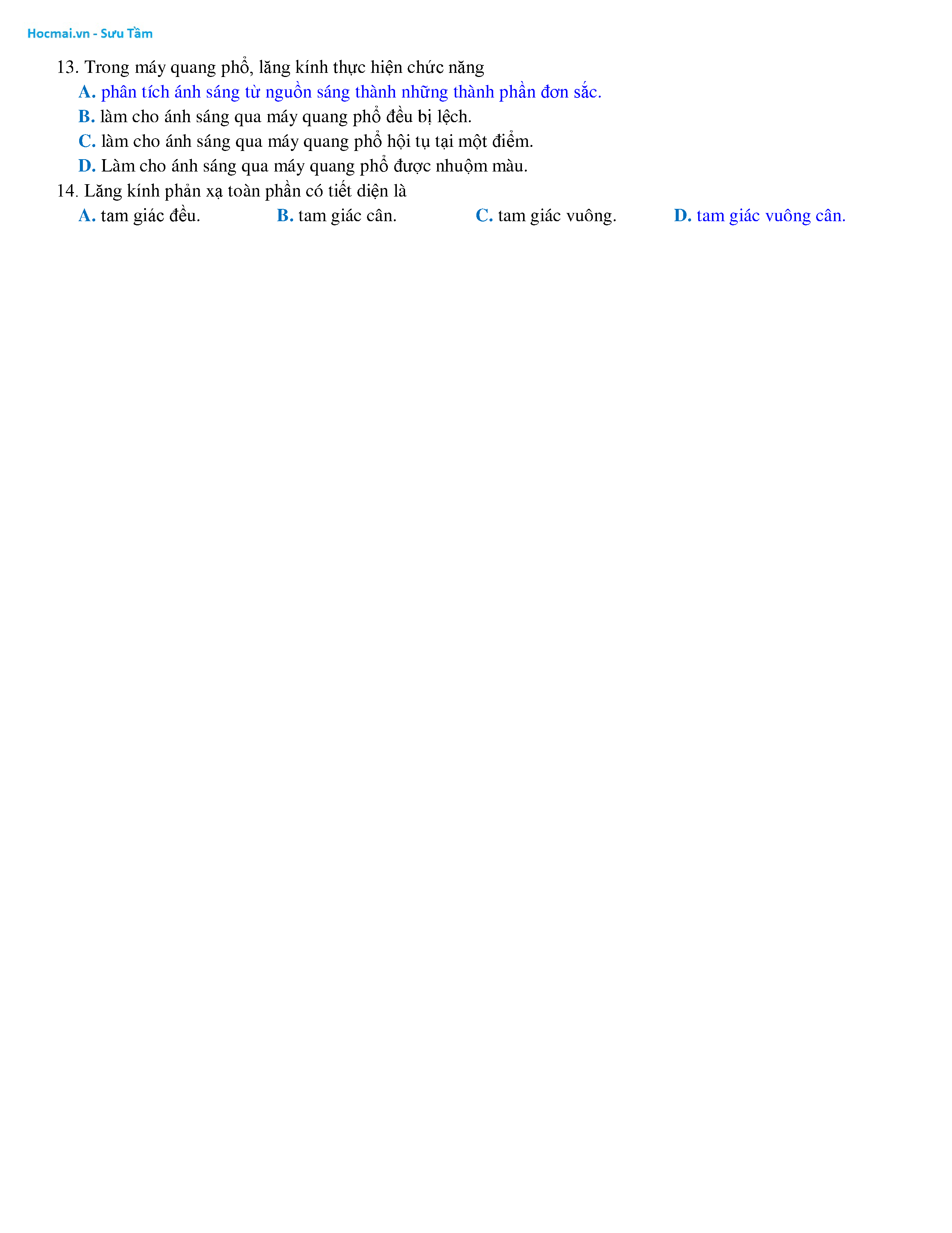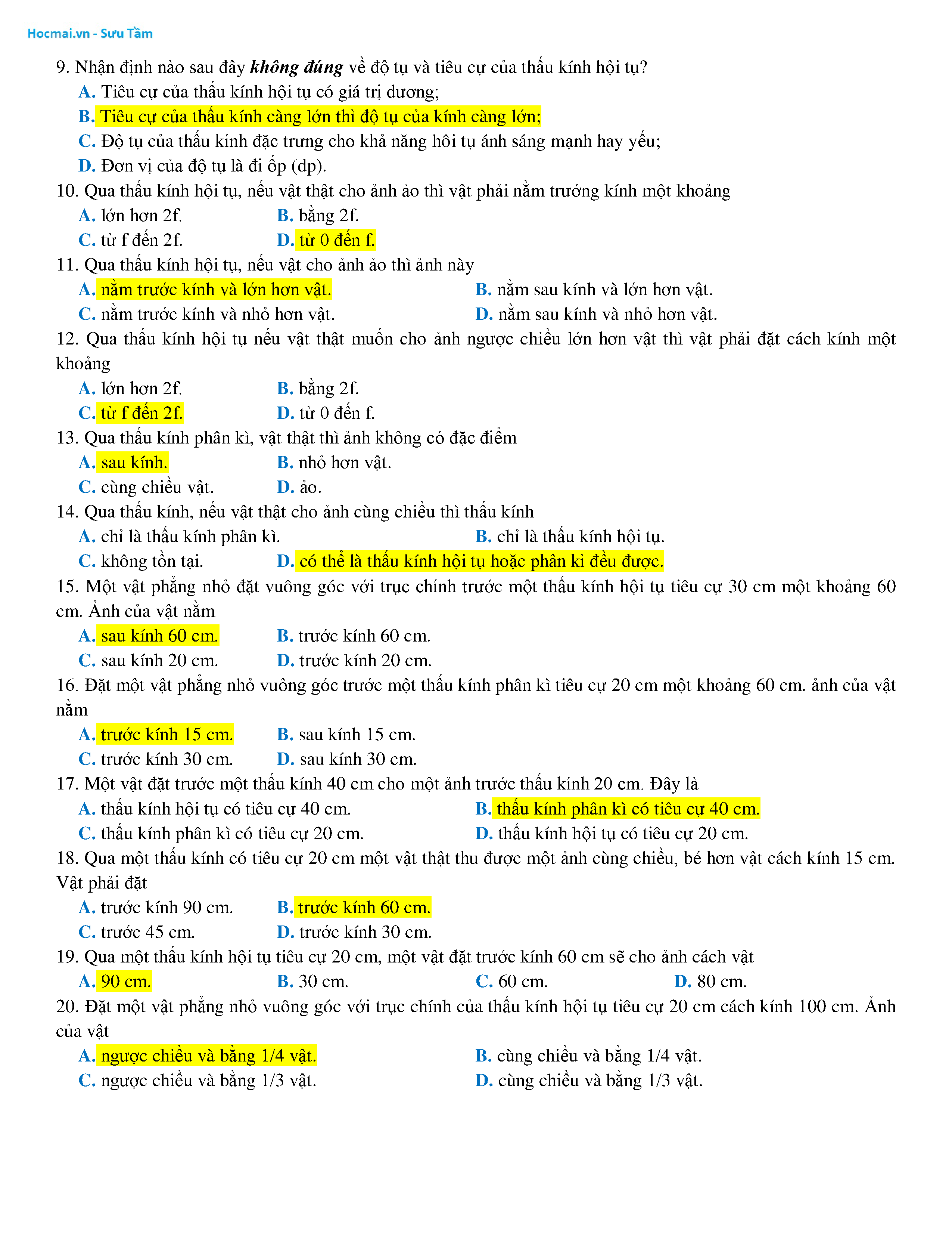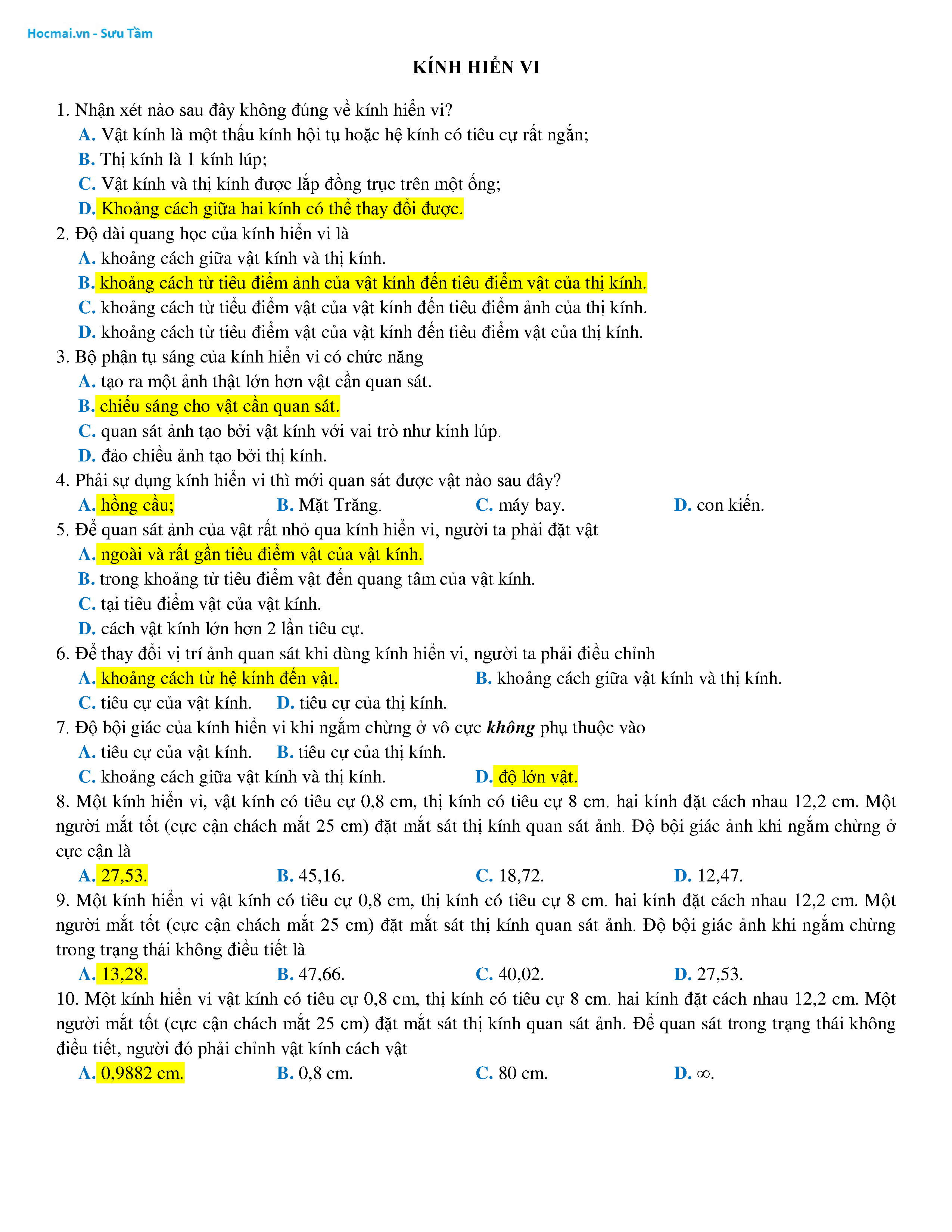 TÓM TẮT LÝ THUYẾT VÀ BÀI TẬP CÓ ĐÁP ÁN CHƯƠNG 6 + 7 VẬT LÍ 11