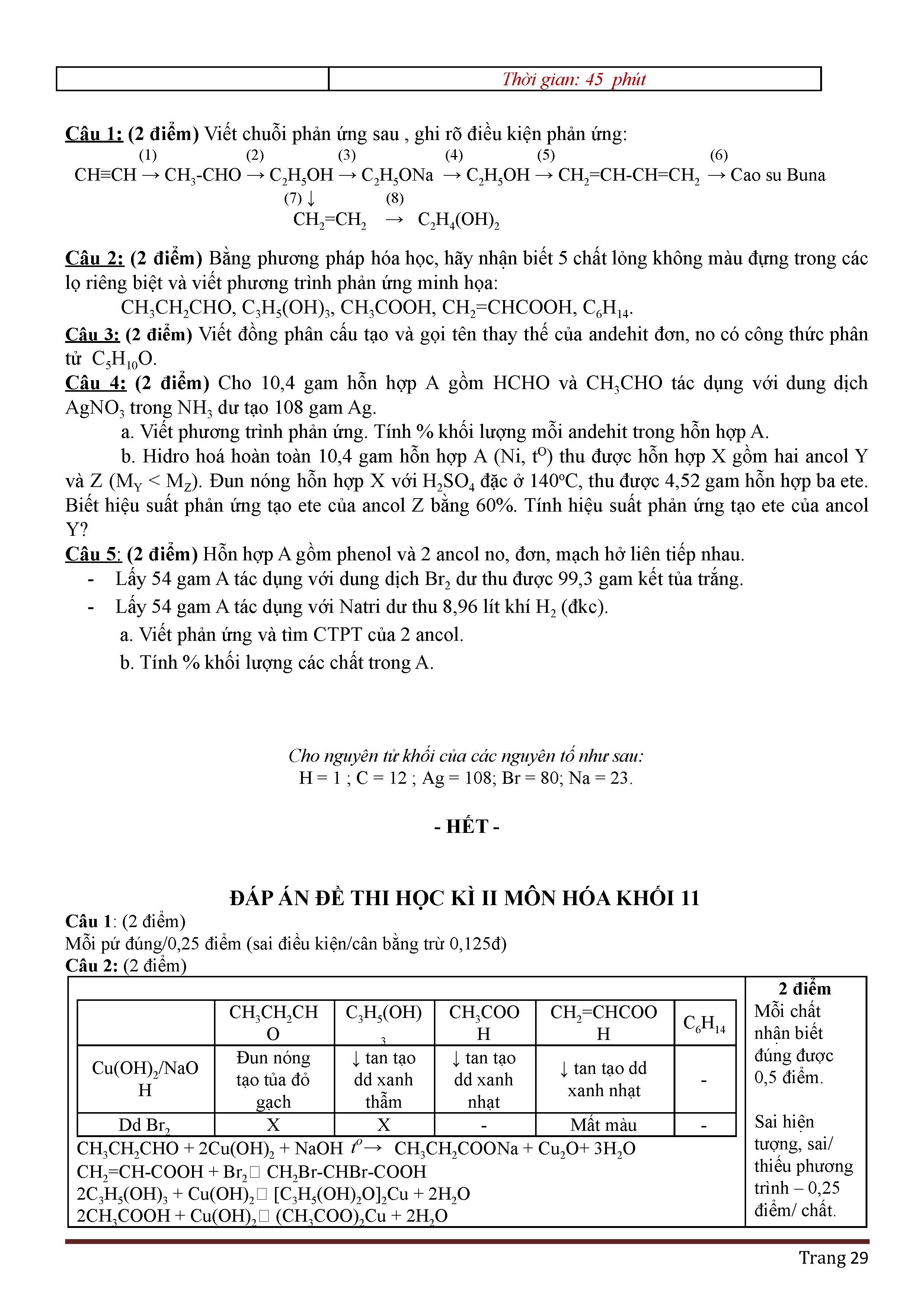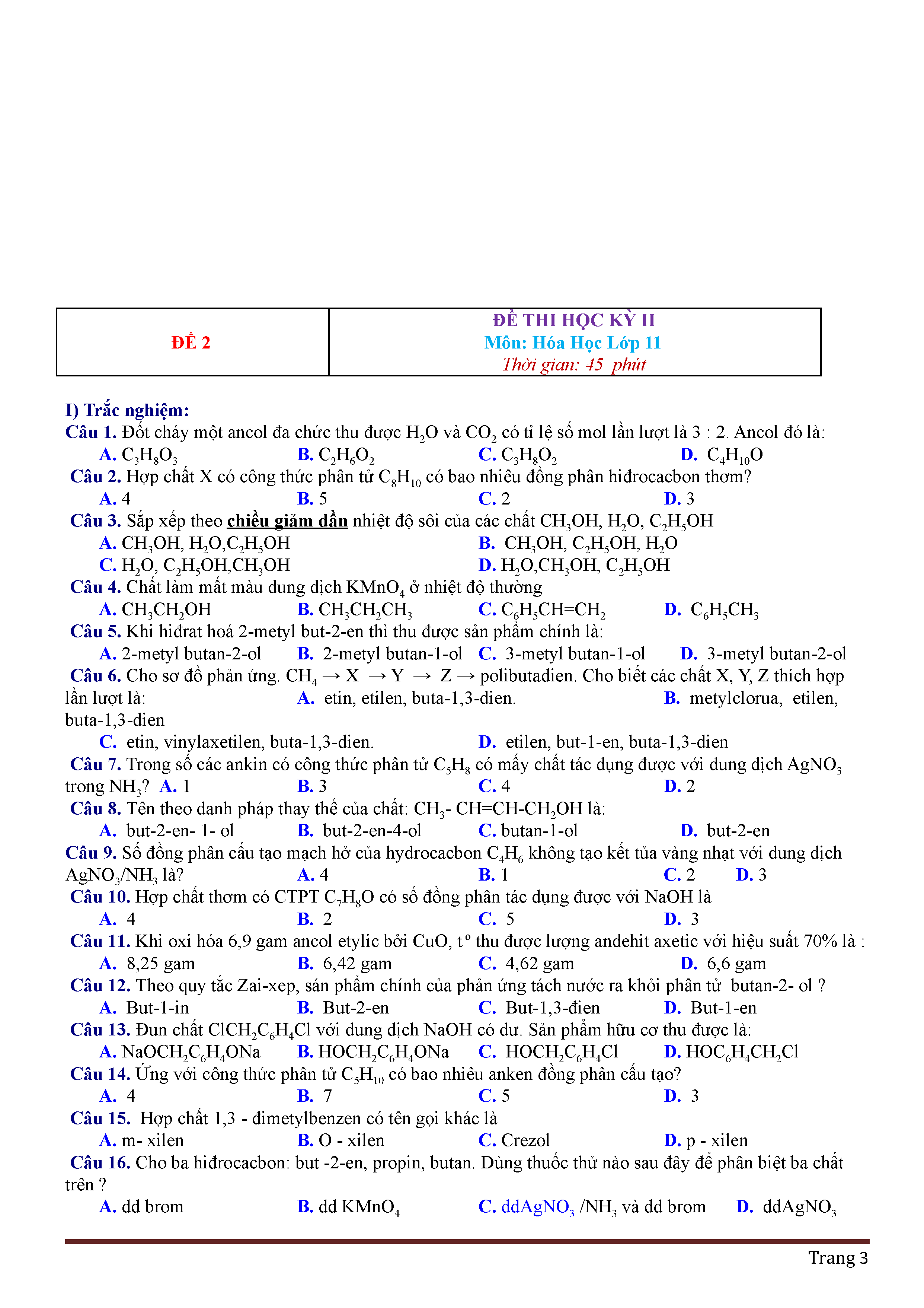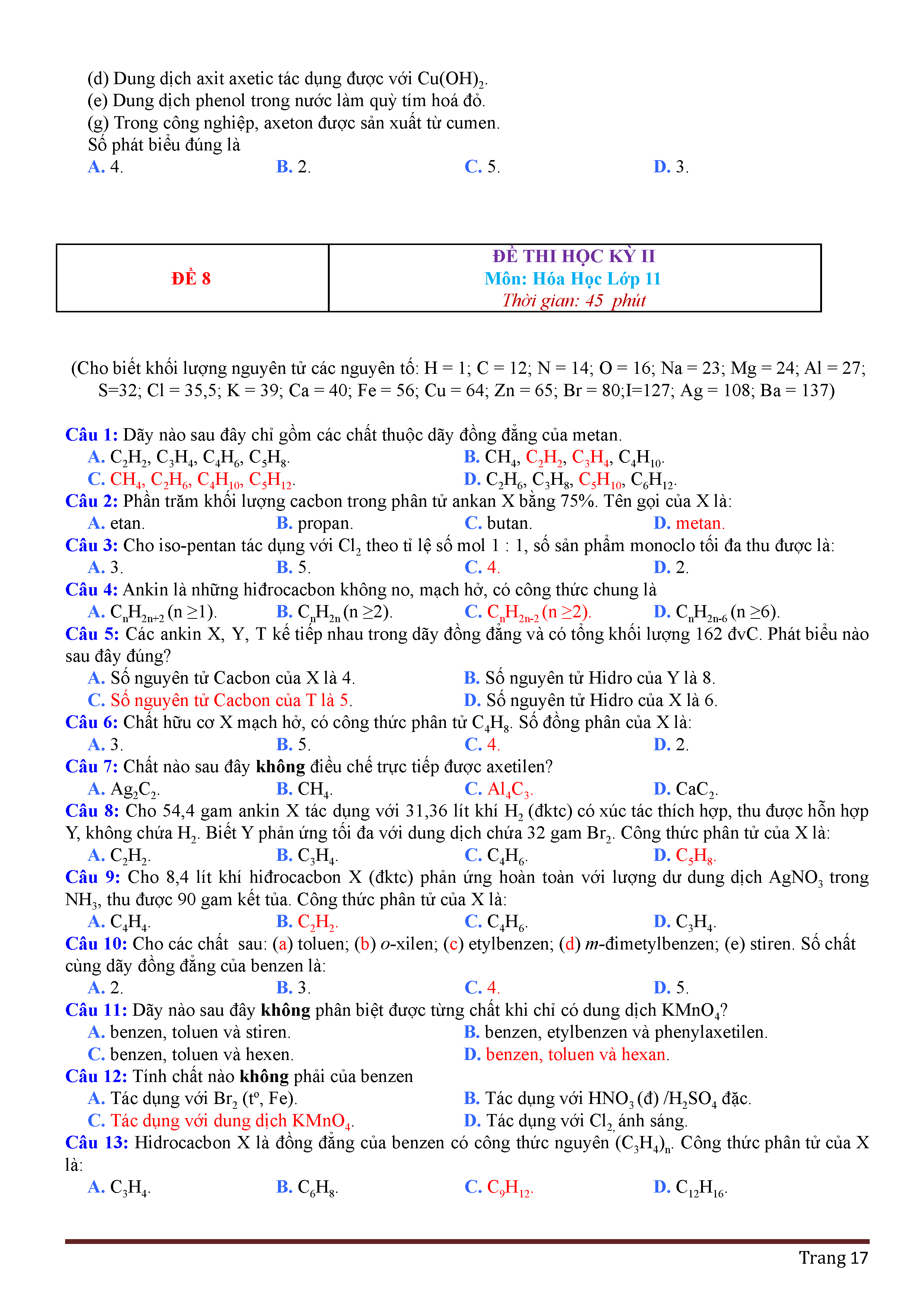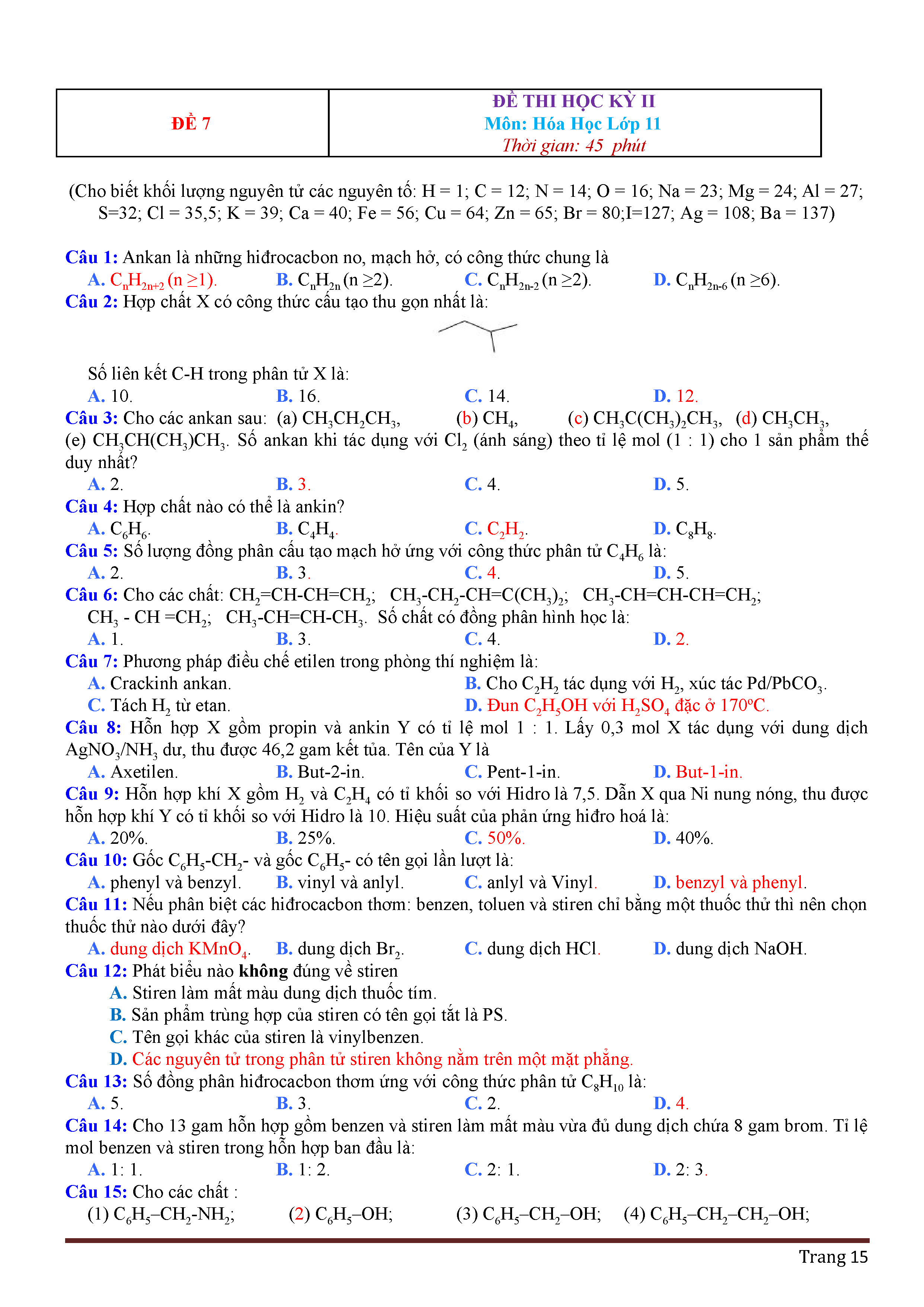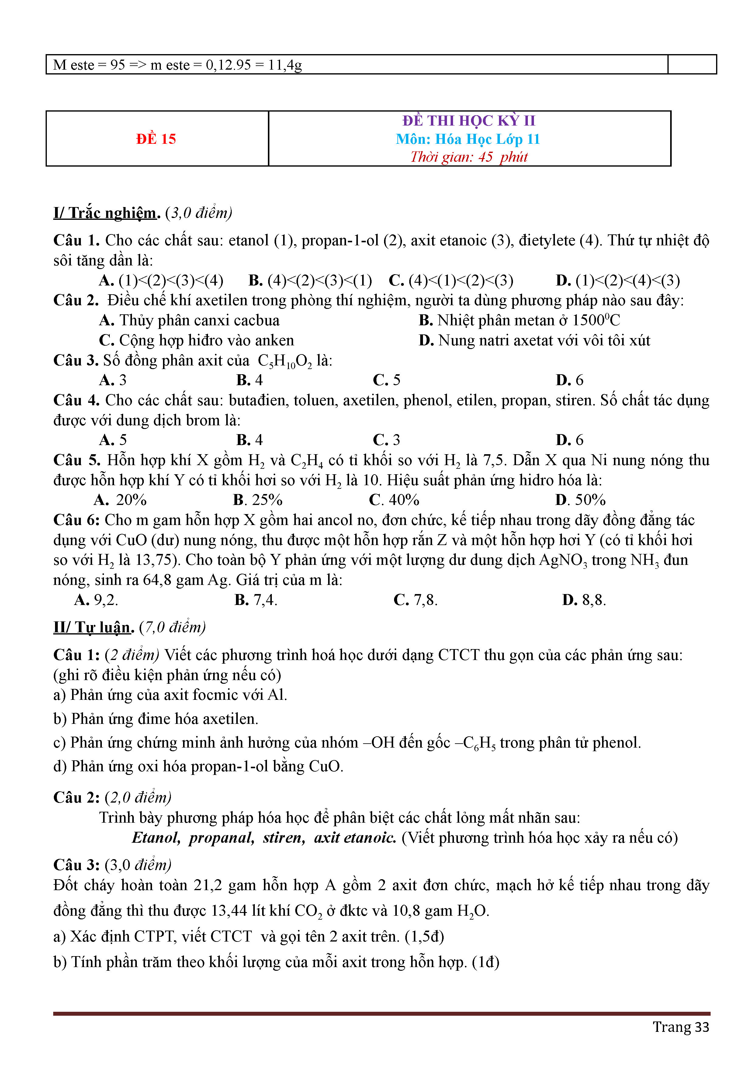 TỔNG HỢP 15 ĐỀ THI HỌC KÌ 2 MÔN HÓA 11
