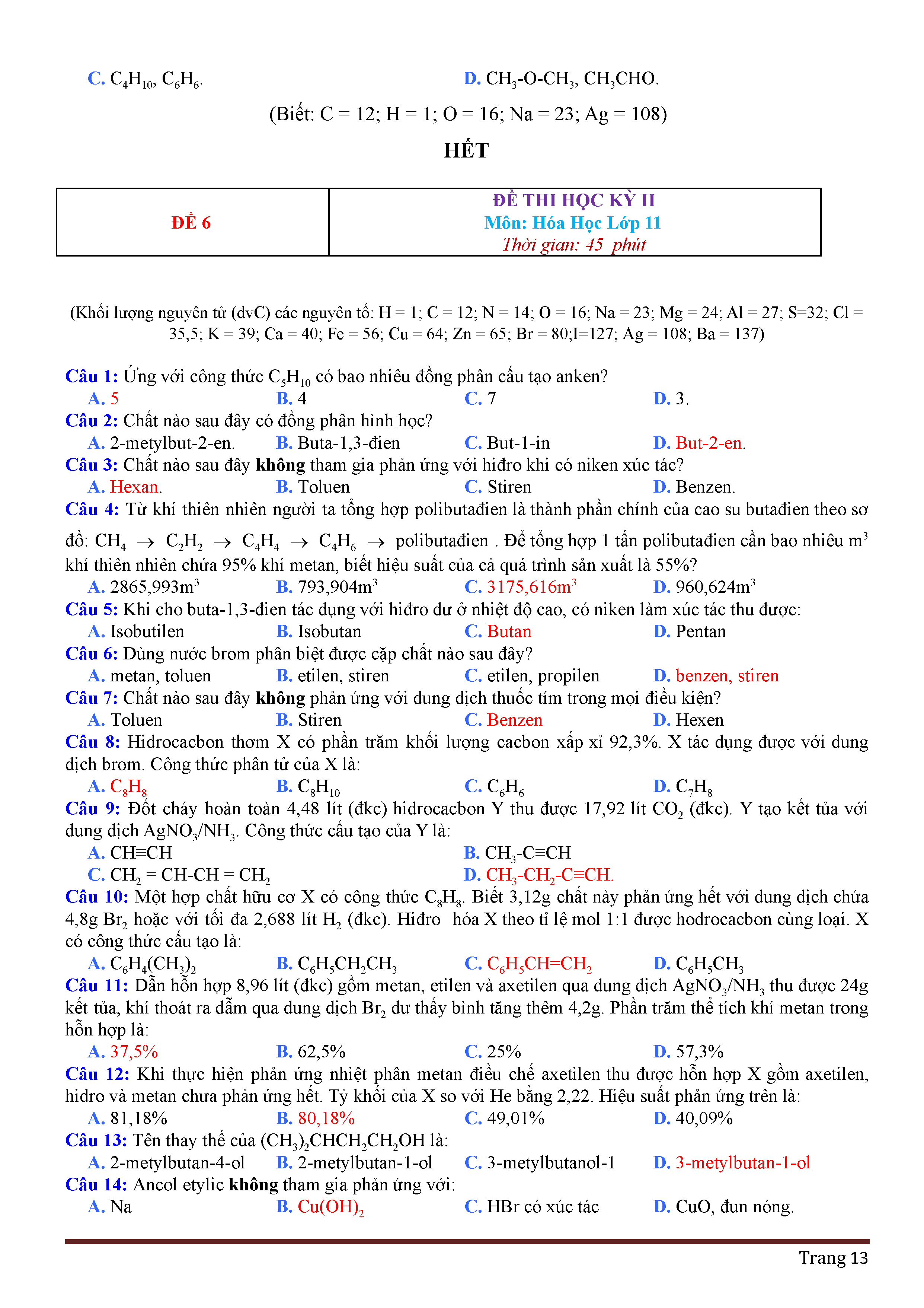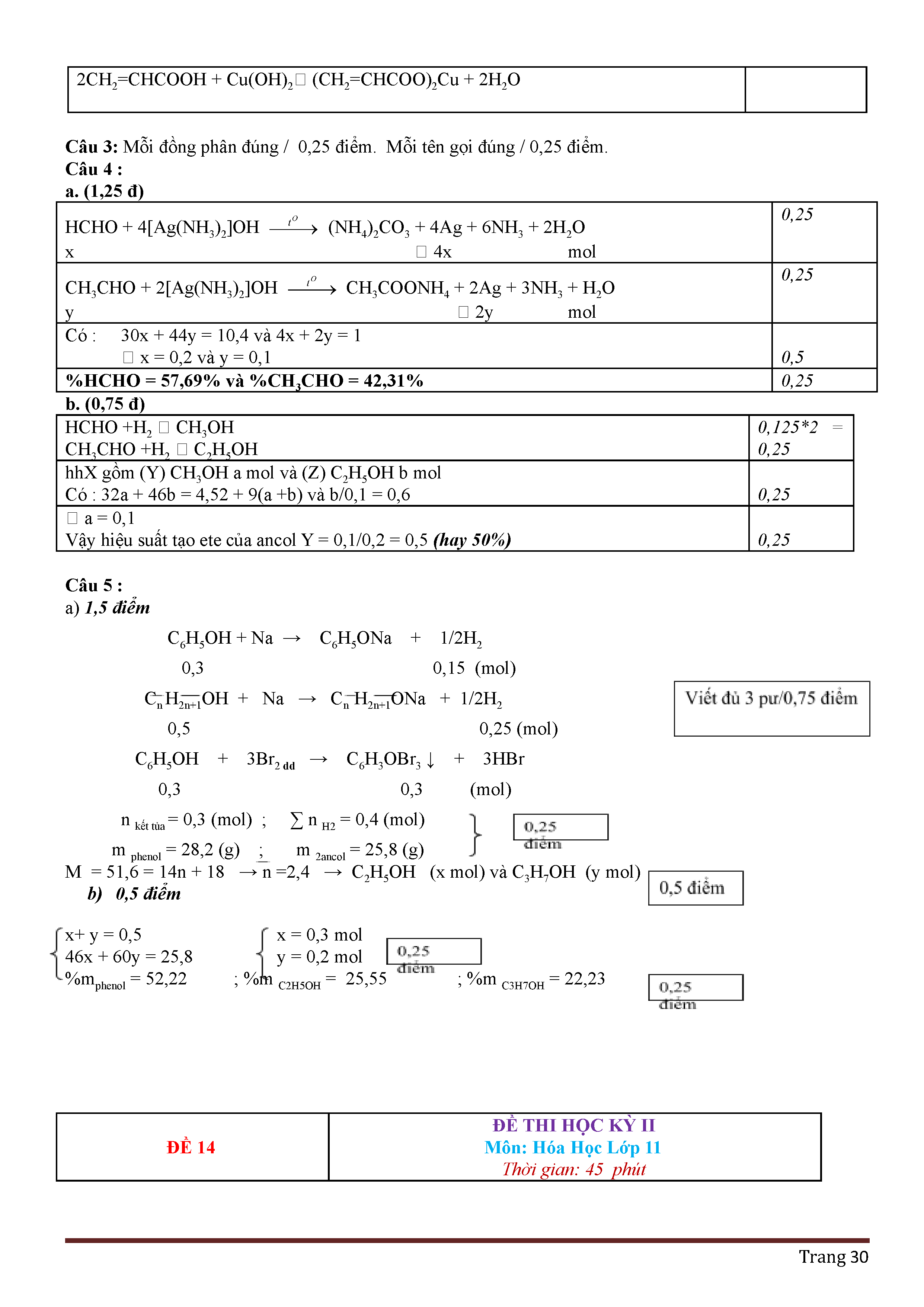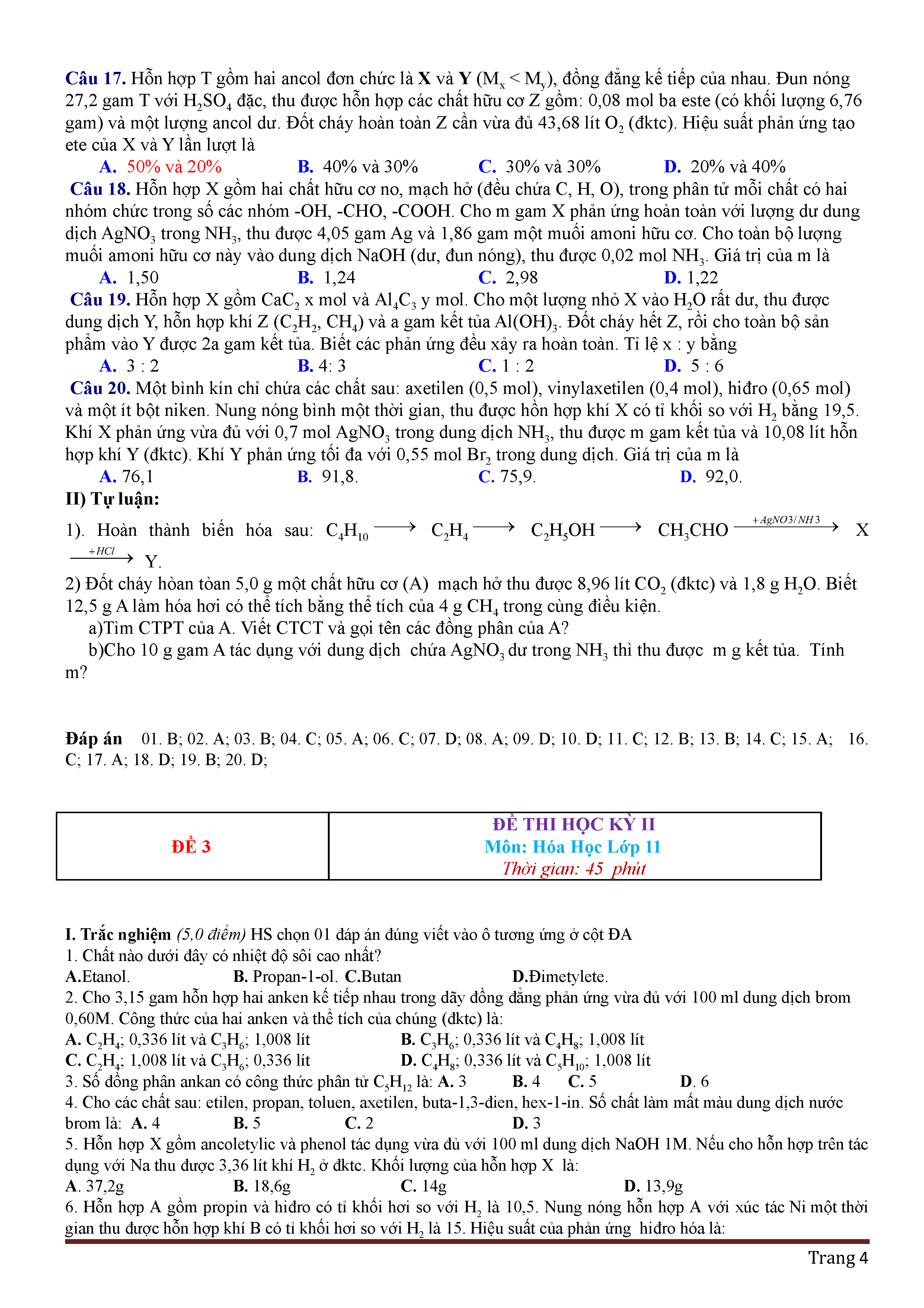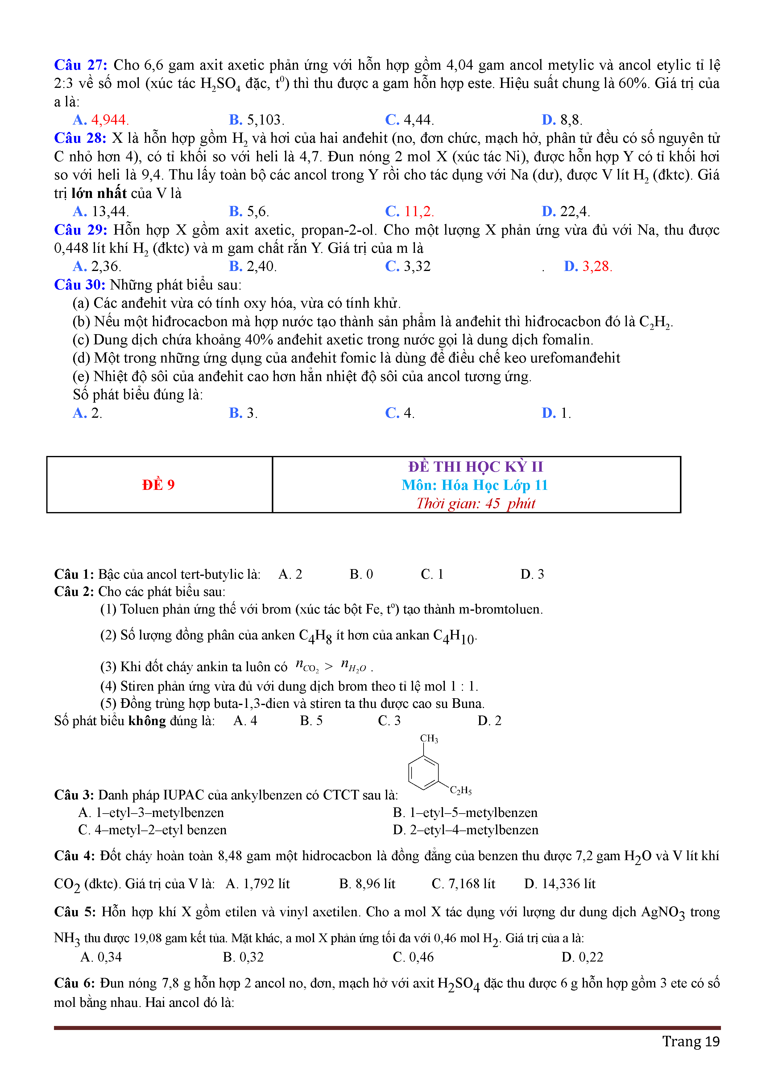 TỔNG HỢP 15 ĐỀ THI HỌC KÌ 2 MÔN HÓA 11