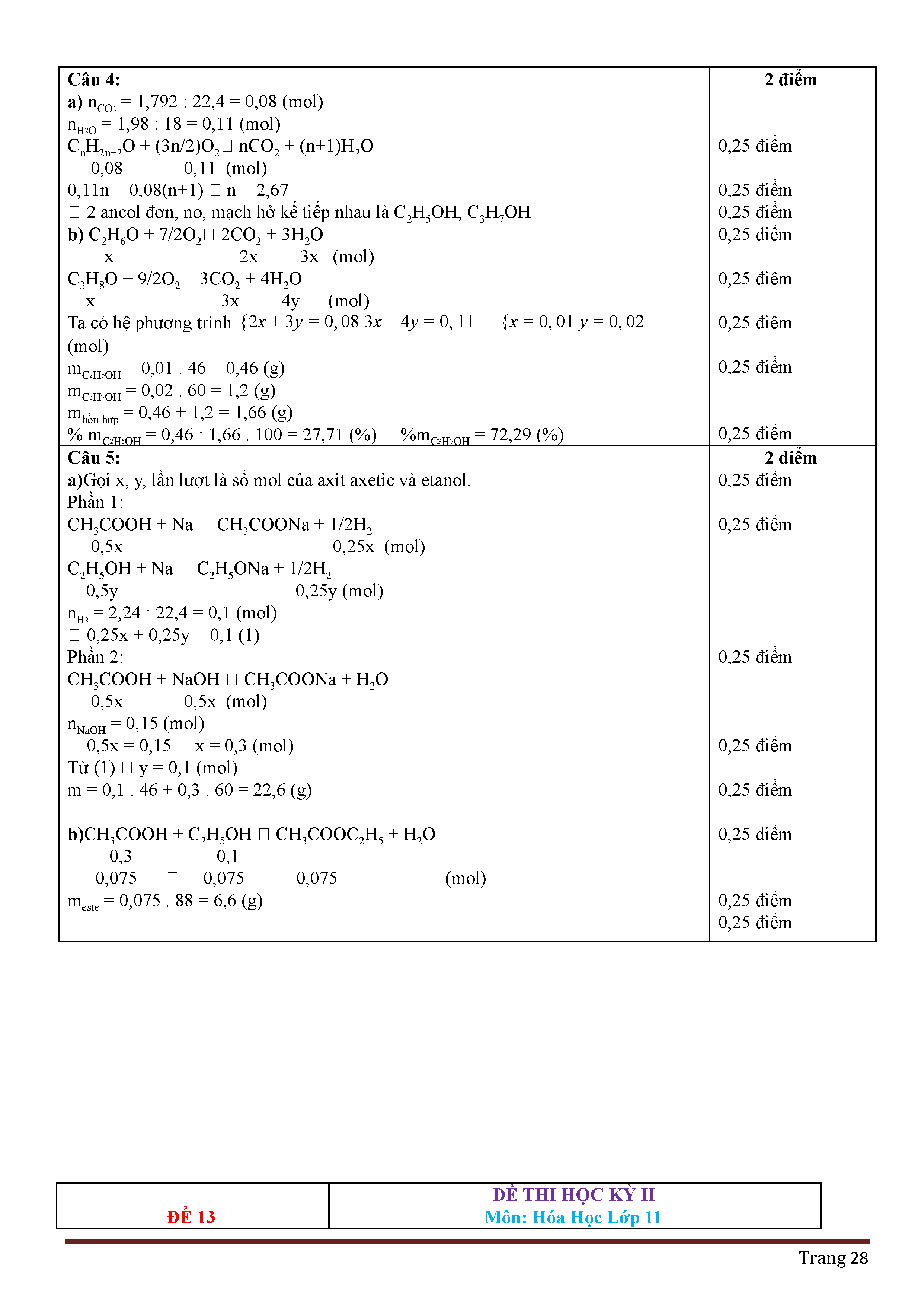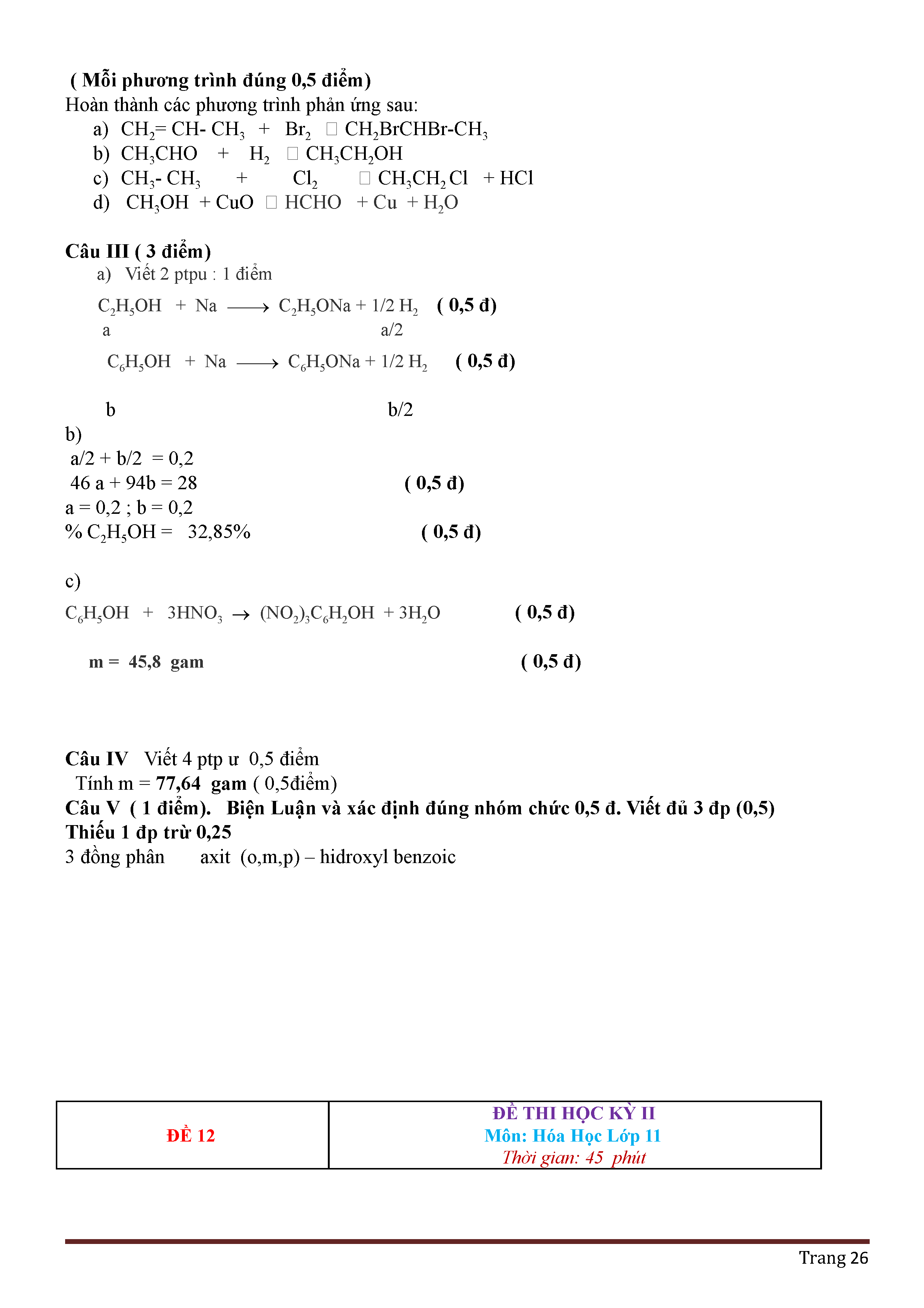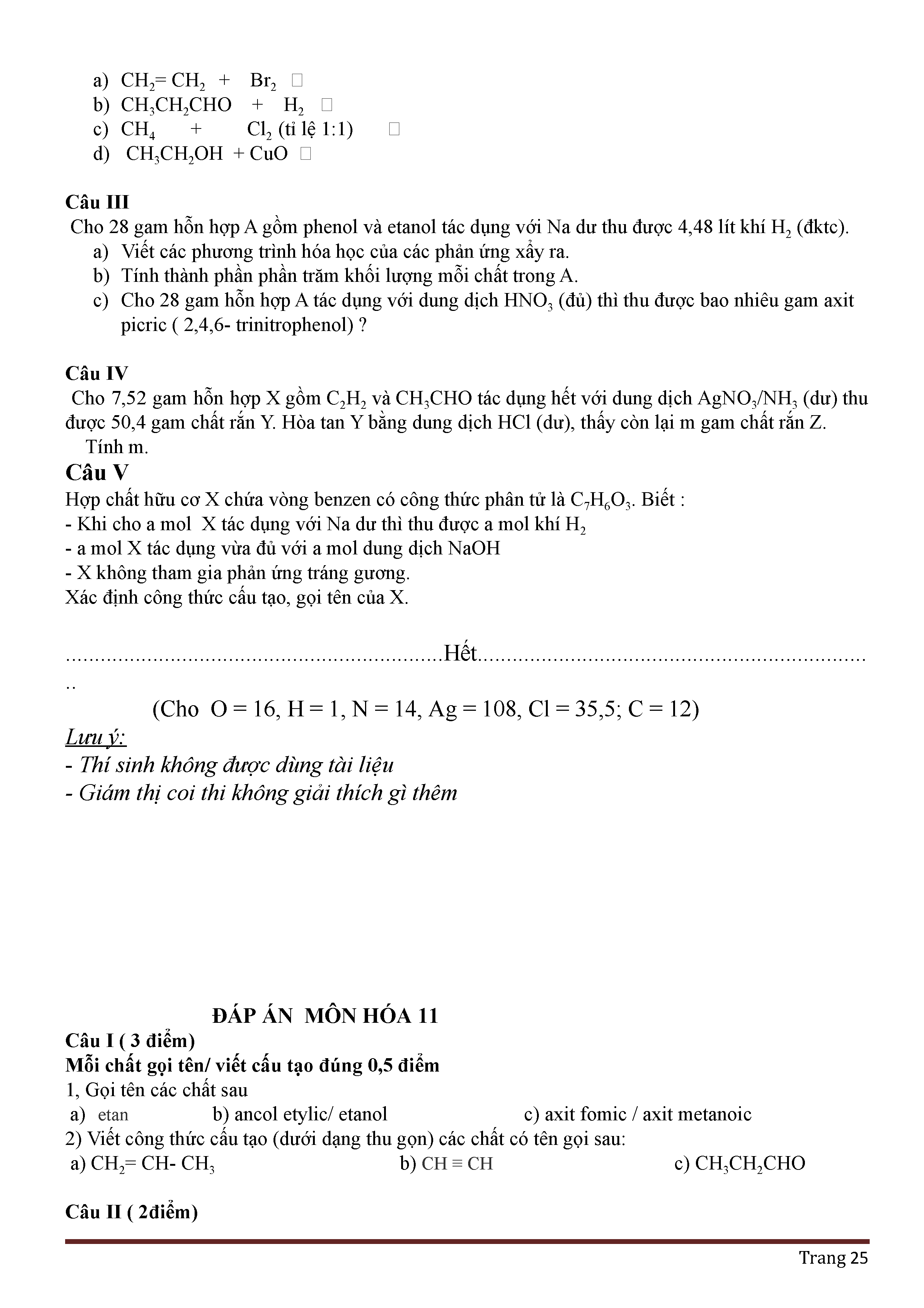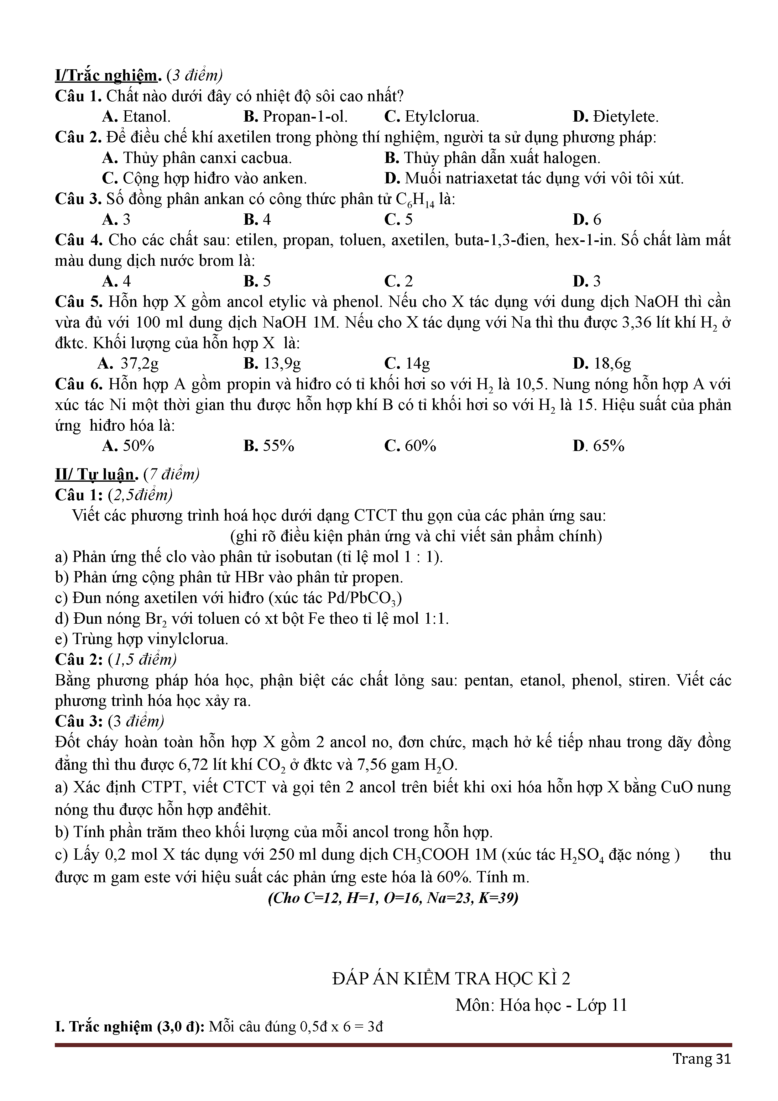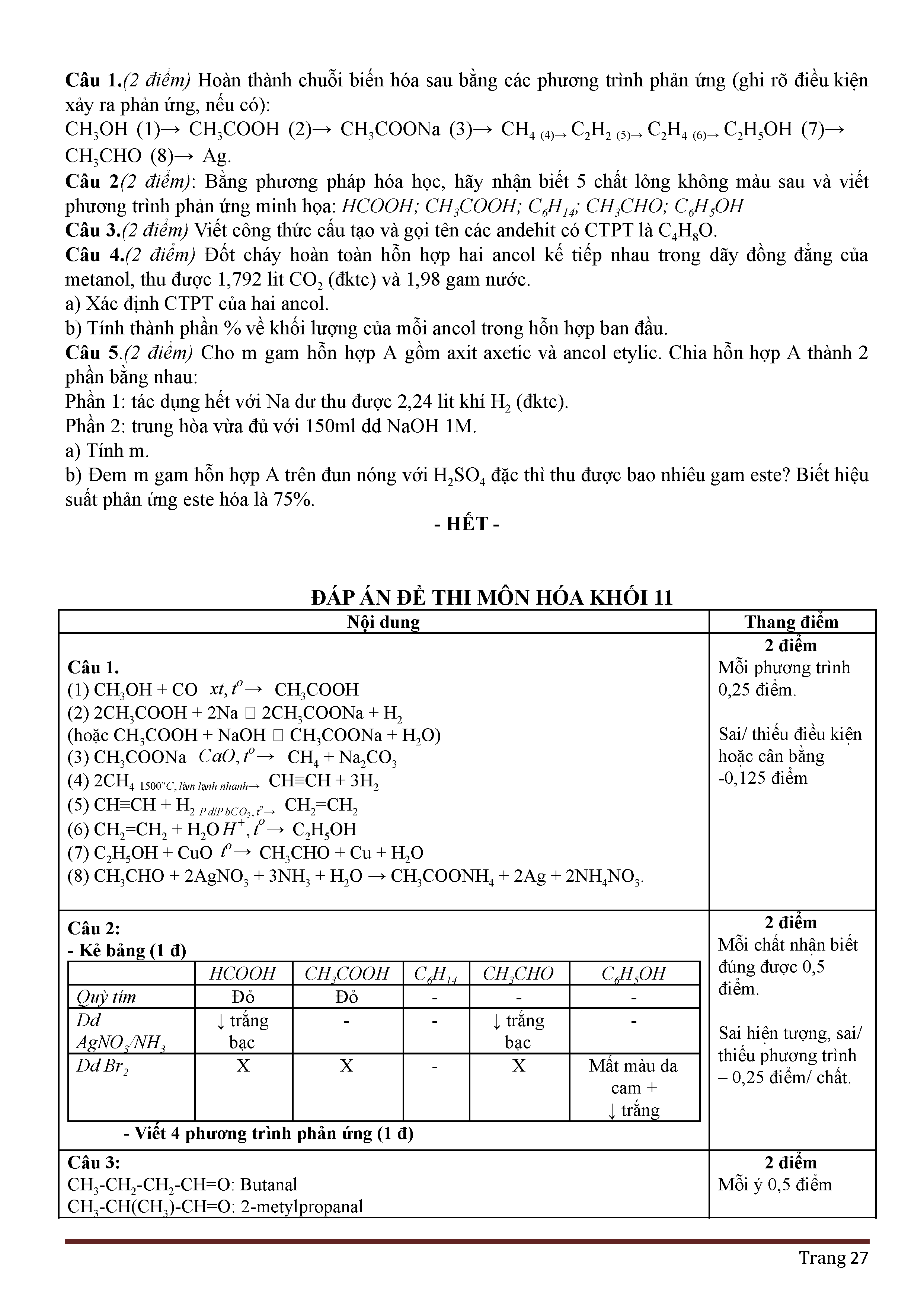 TỔNG HỢP 15 ĐỀ THI HỌC KÌ 2 MÔN HÓA 11