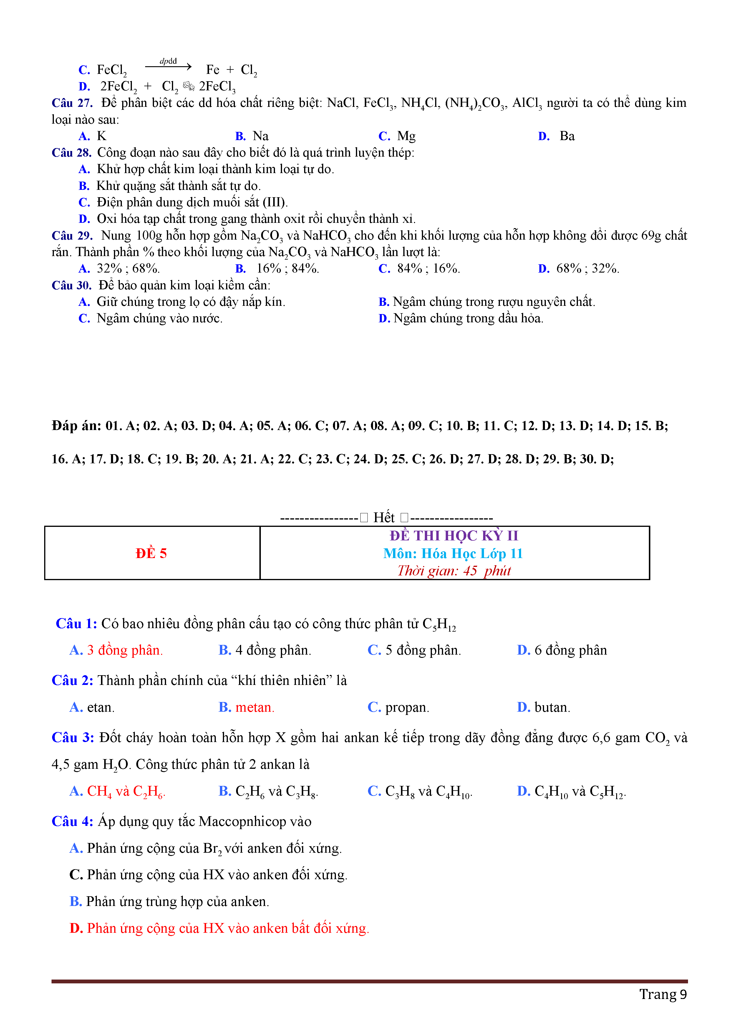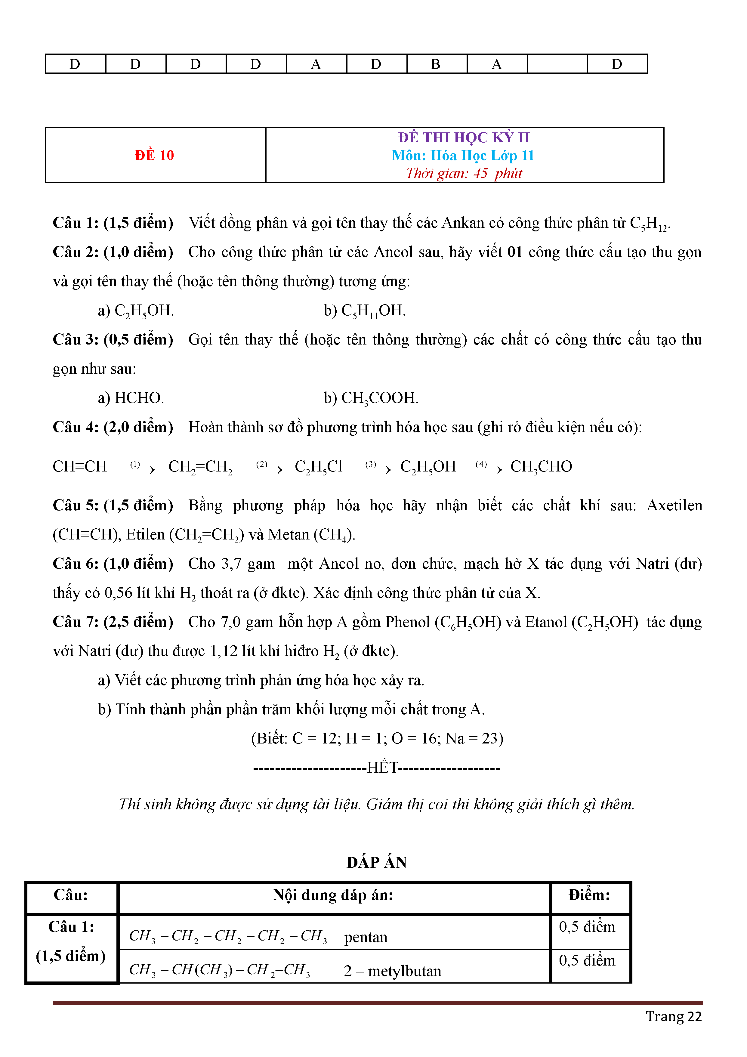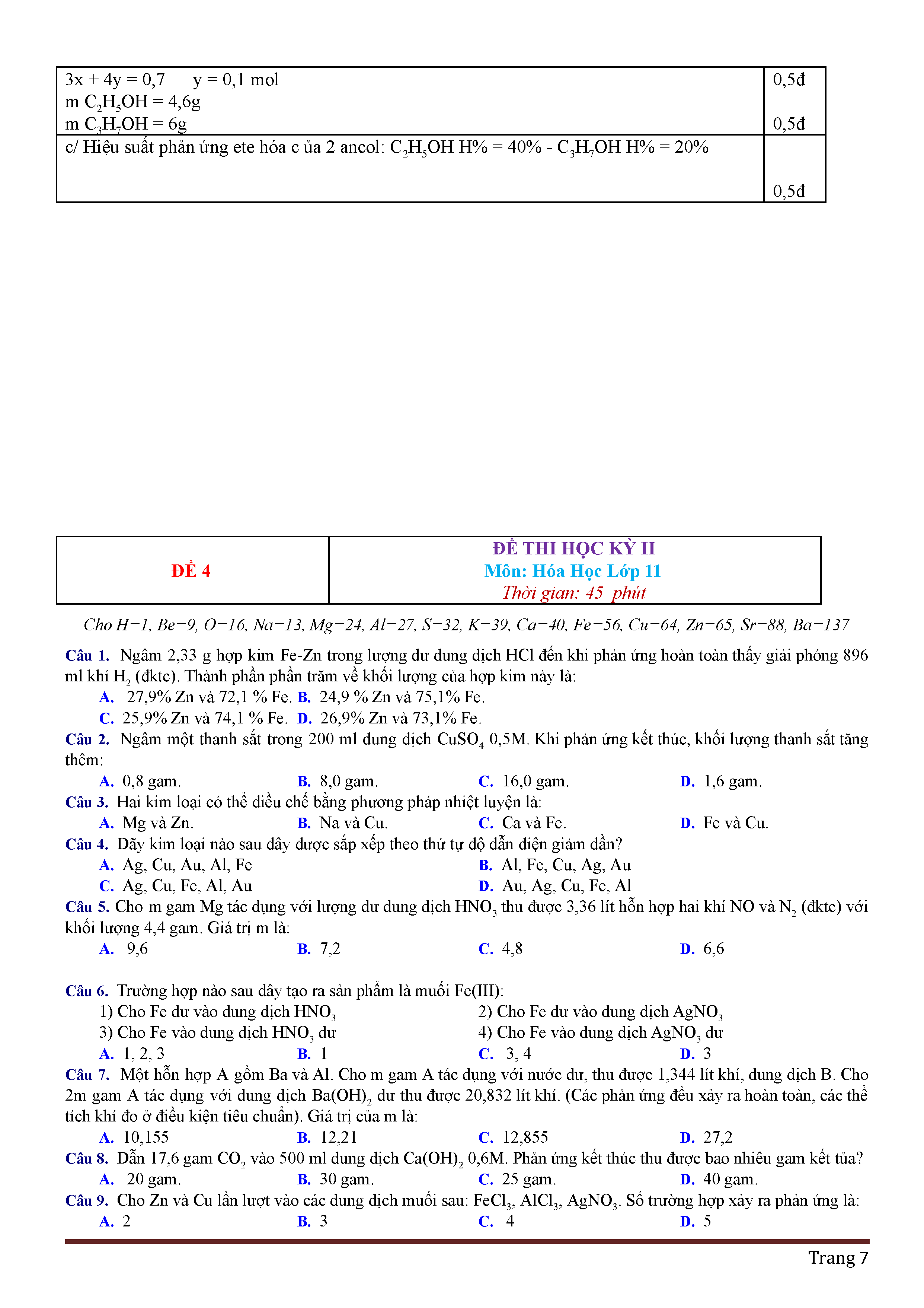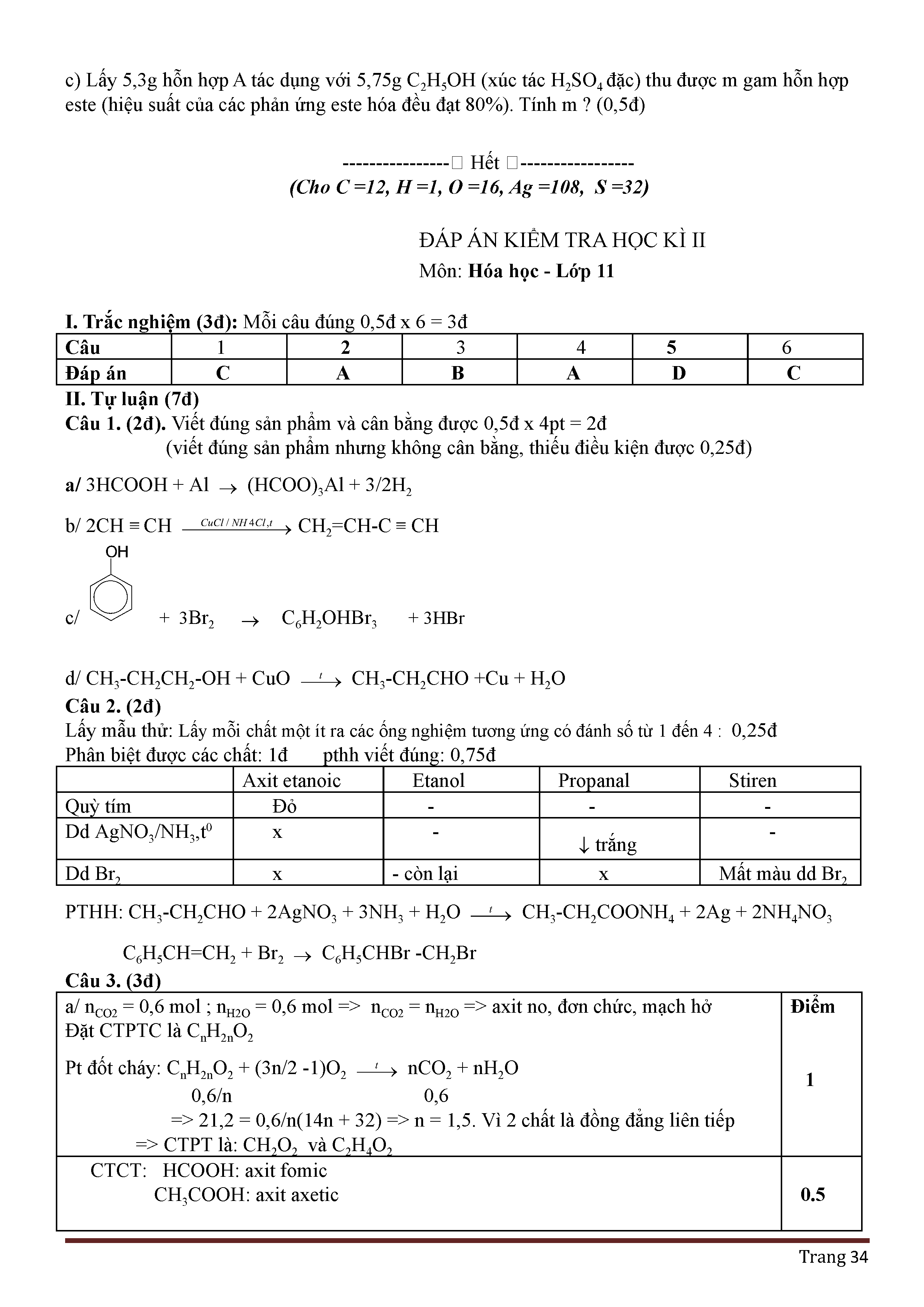 TỔNG HỢP 15 ĐỀ THI HỌC KÌ 2 MÔN HÓA 11