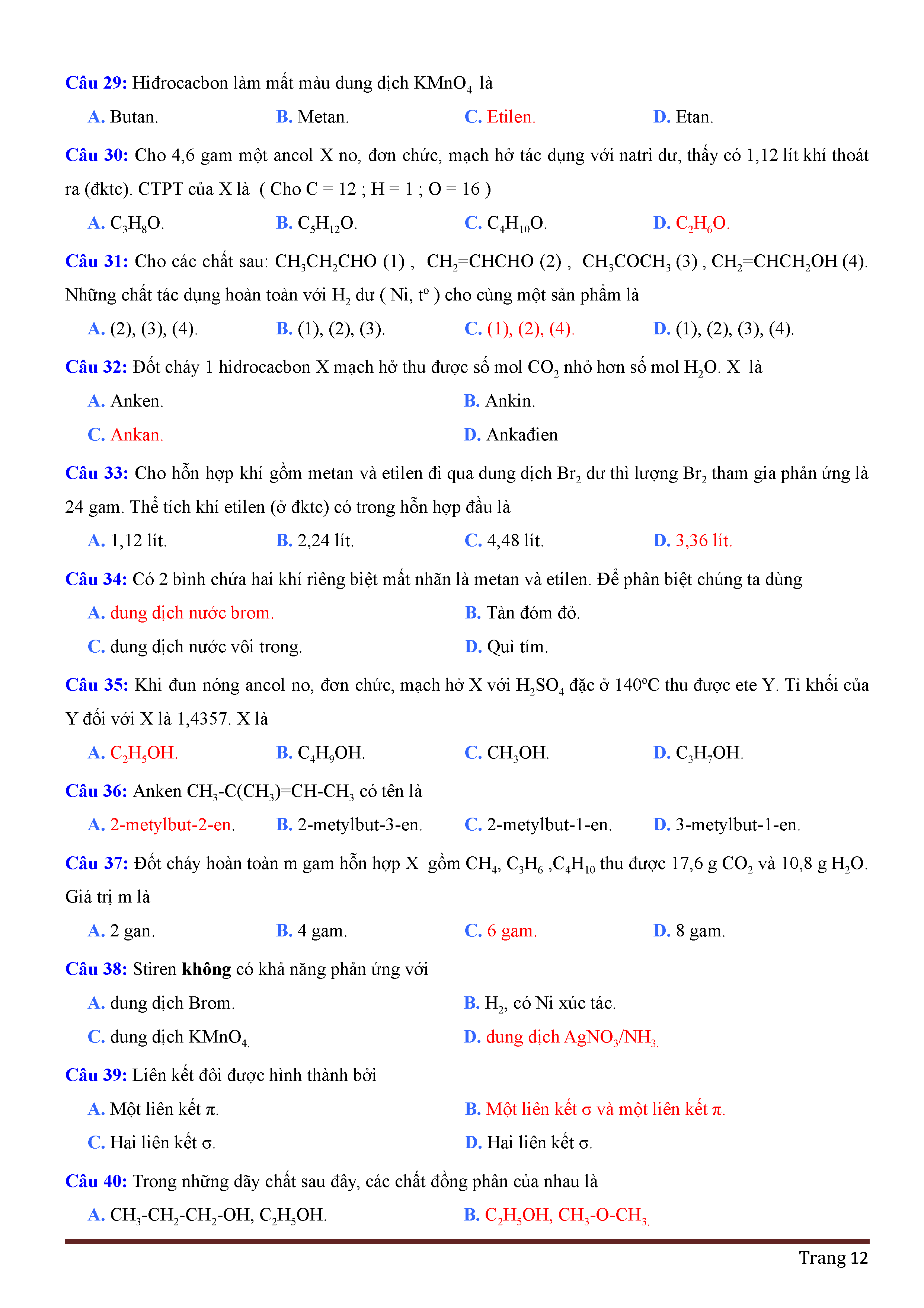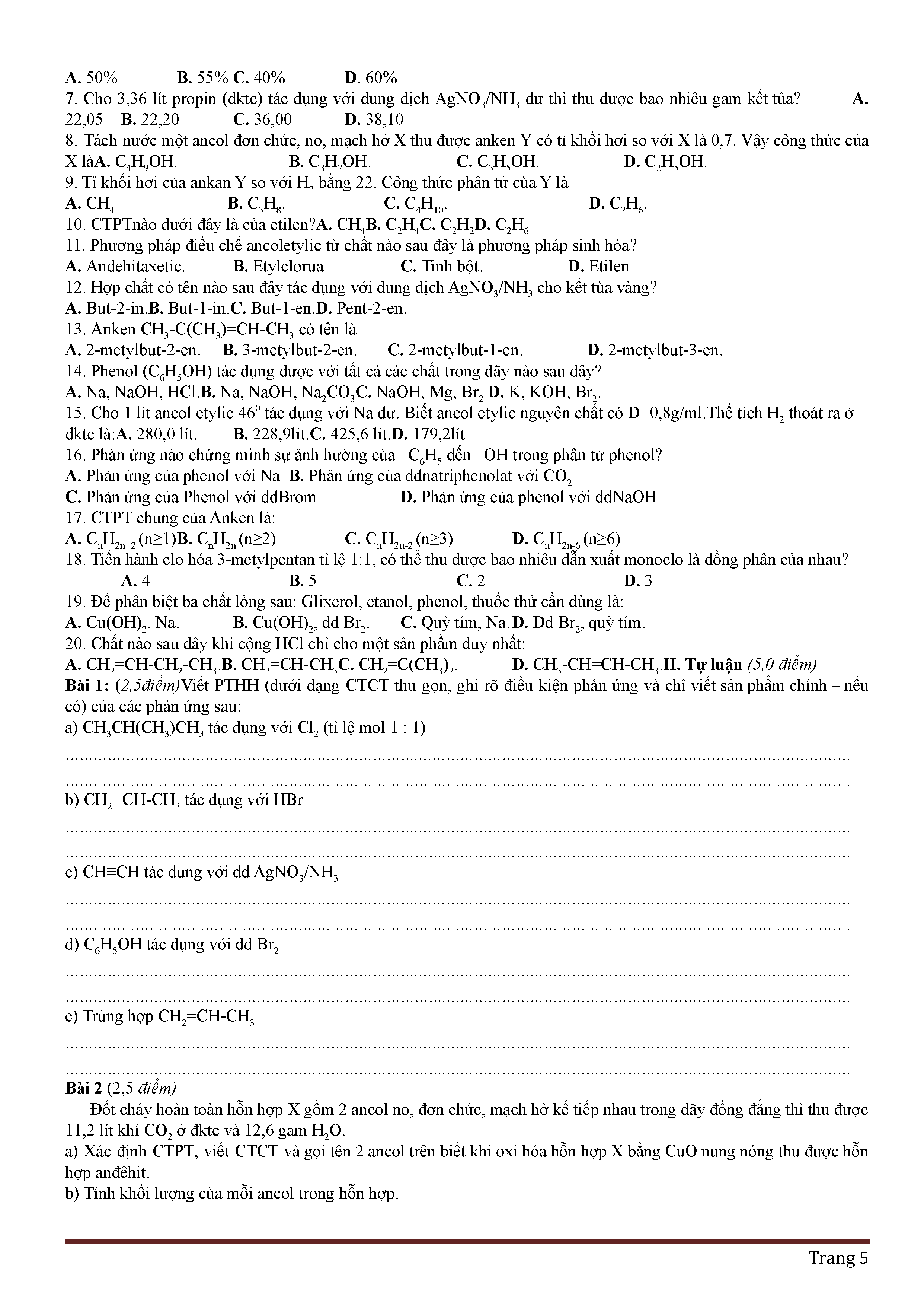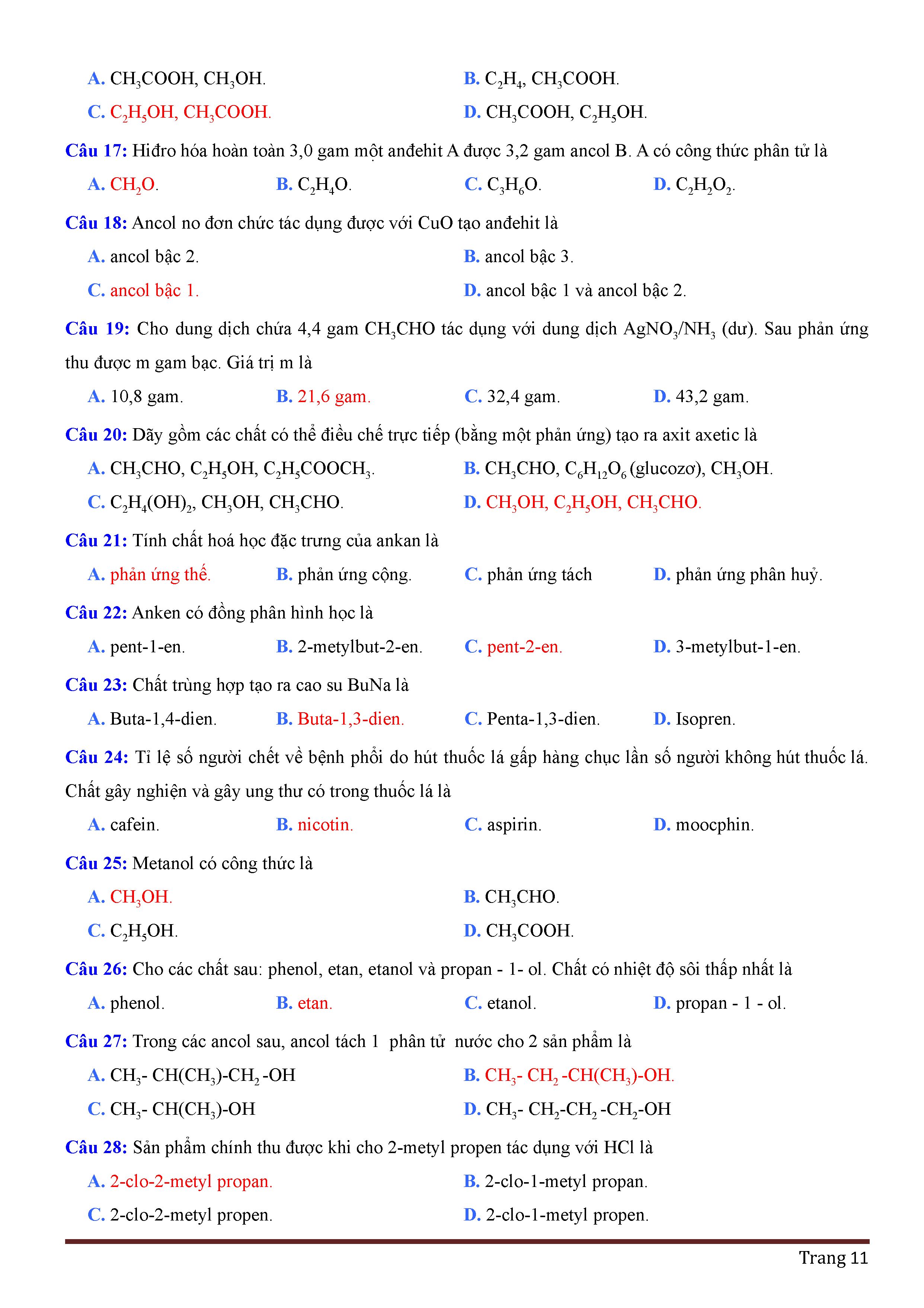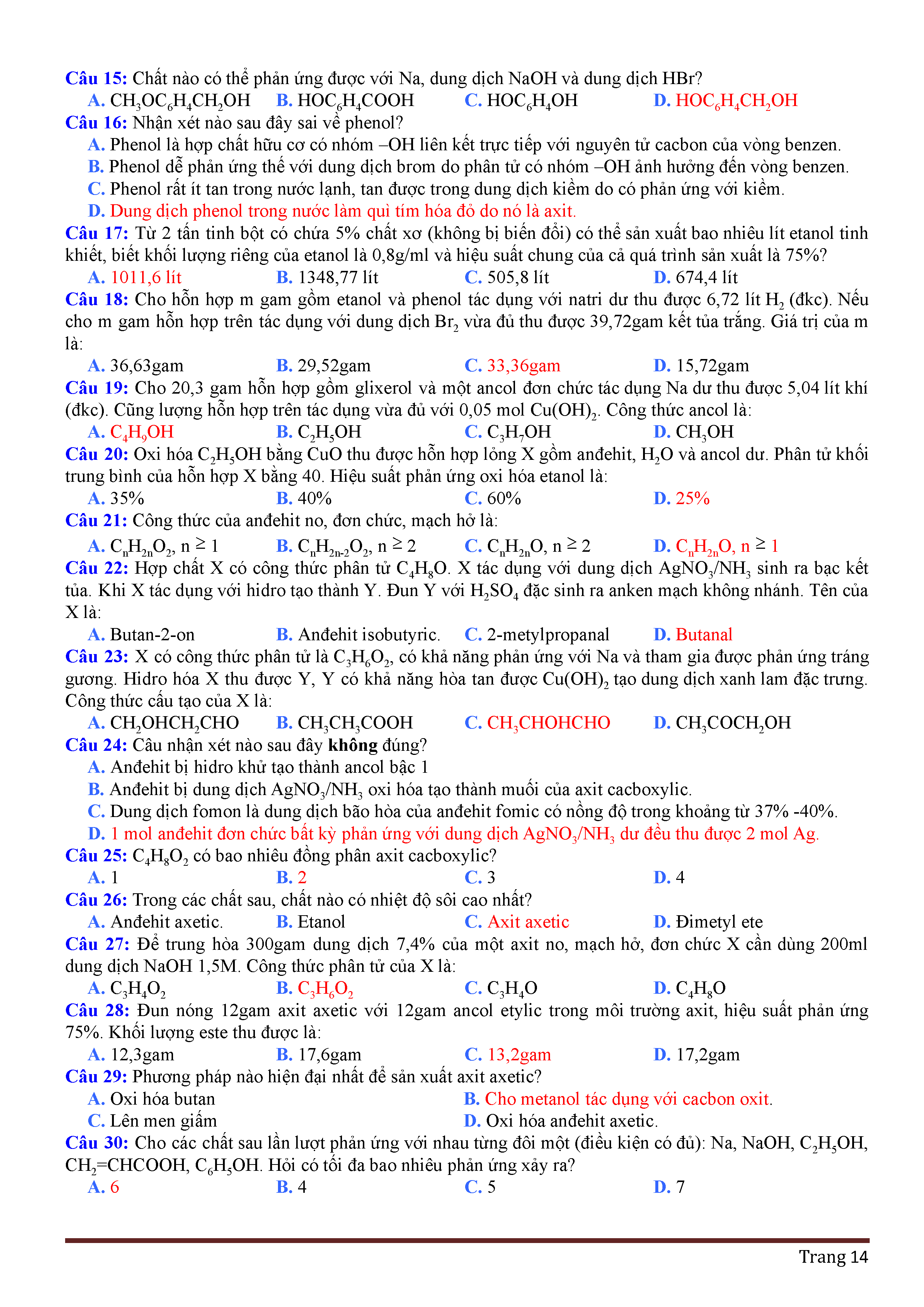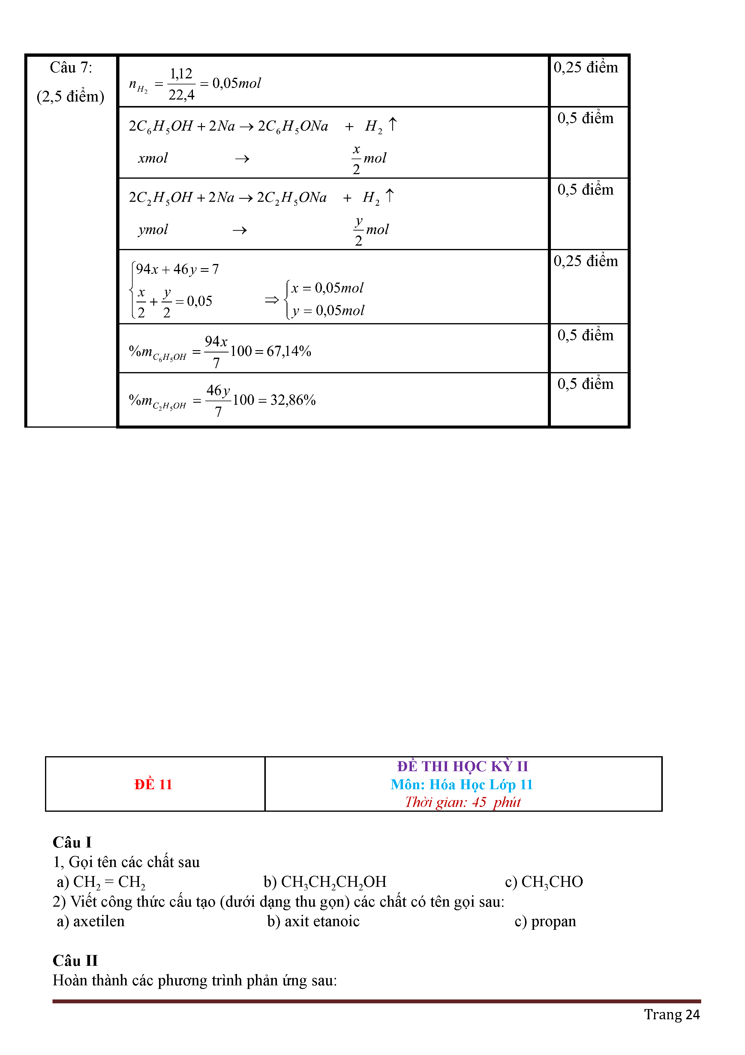 TỔNG HỢP 15 ĐỀ THI HỌC KÌ 2 MÔN HÓA 11