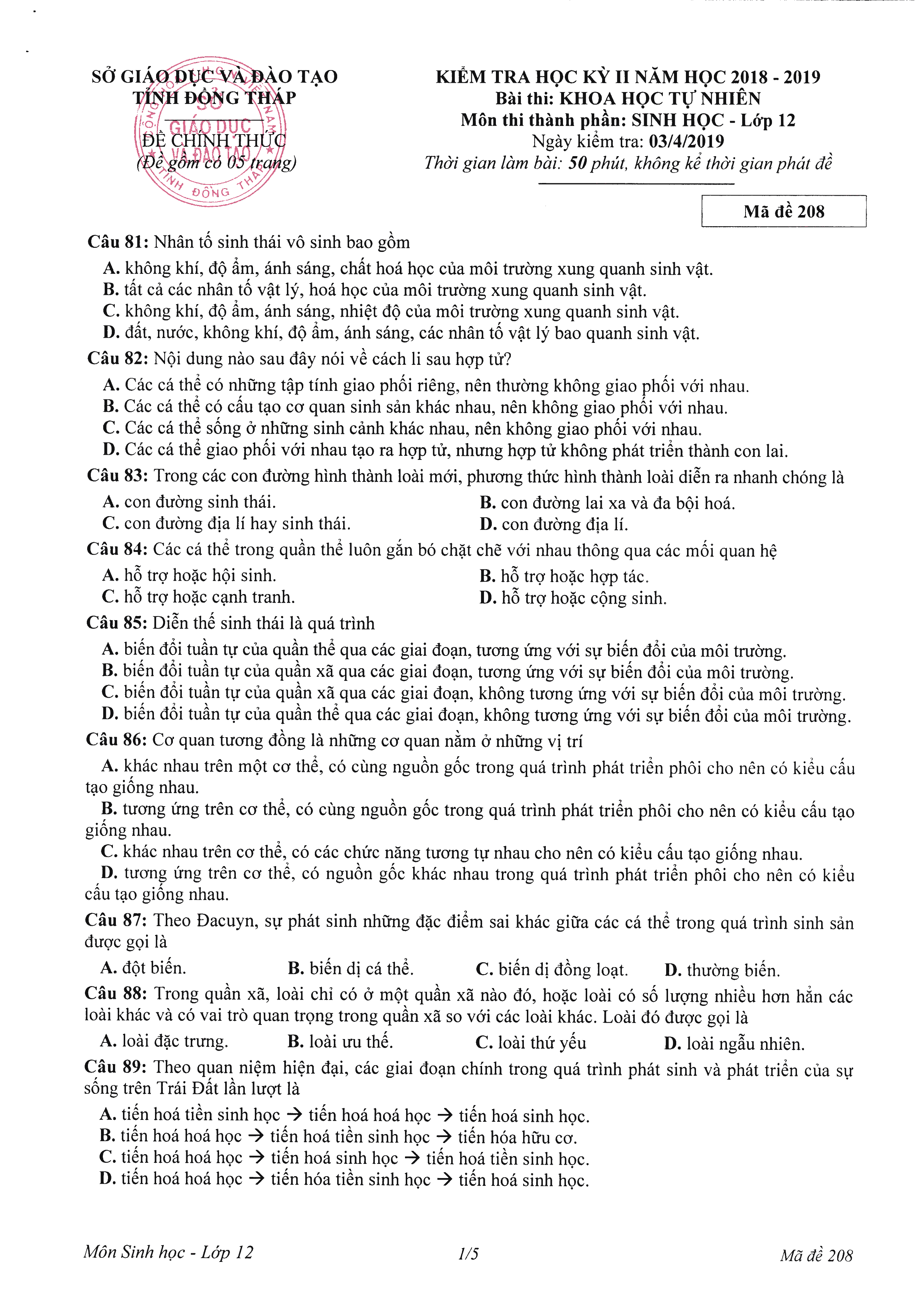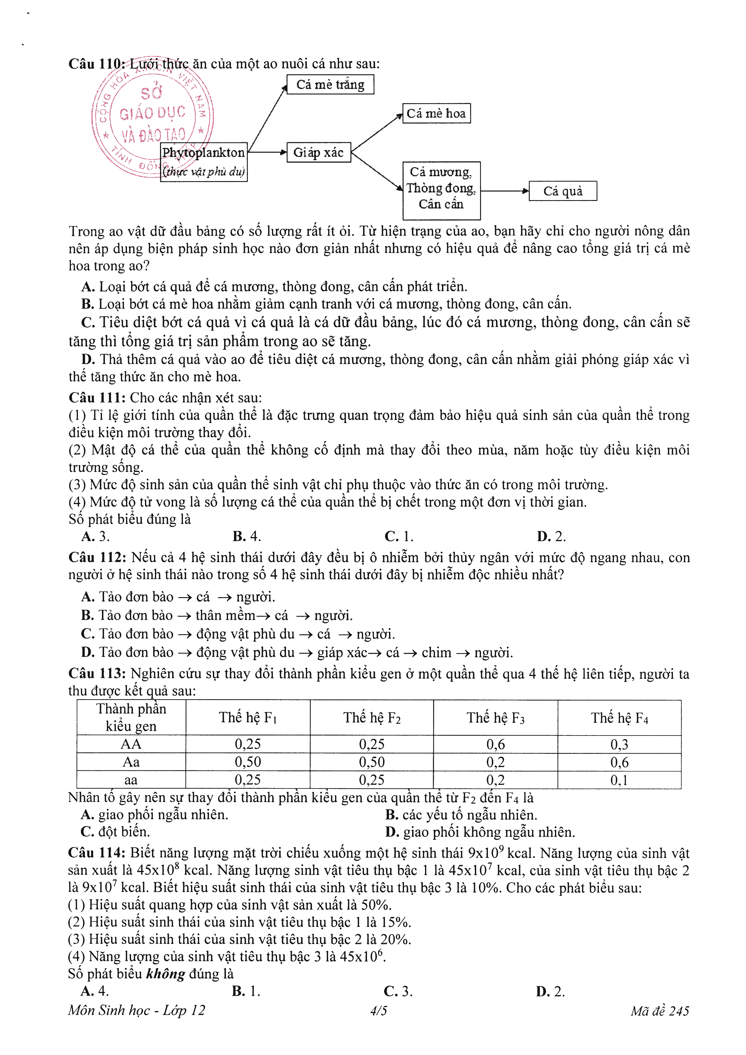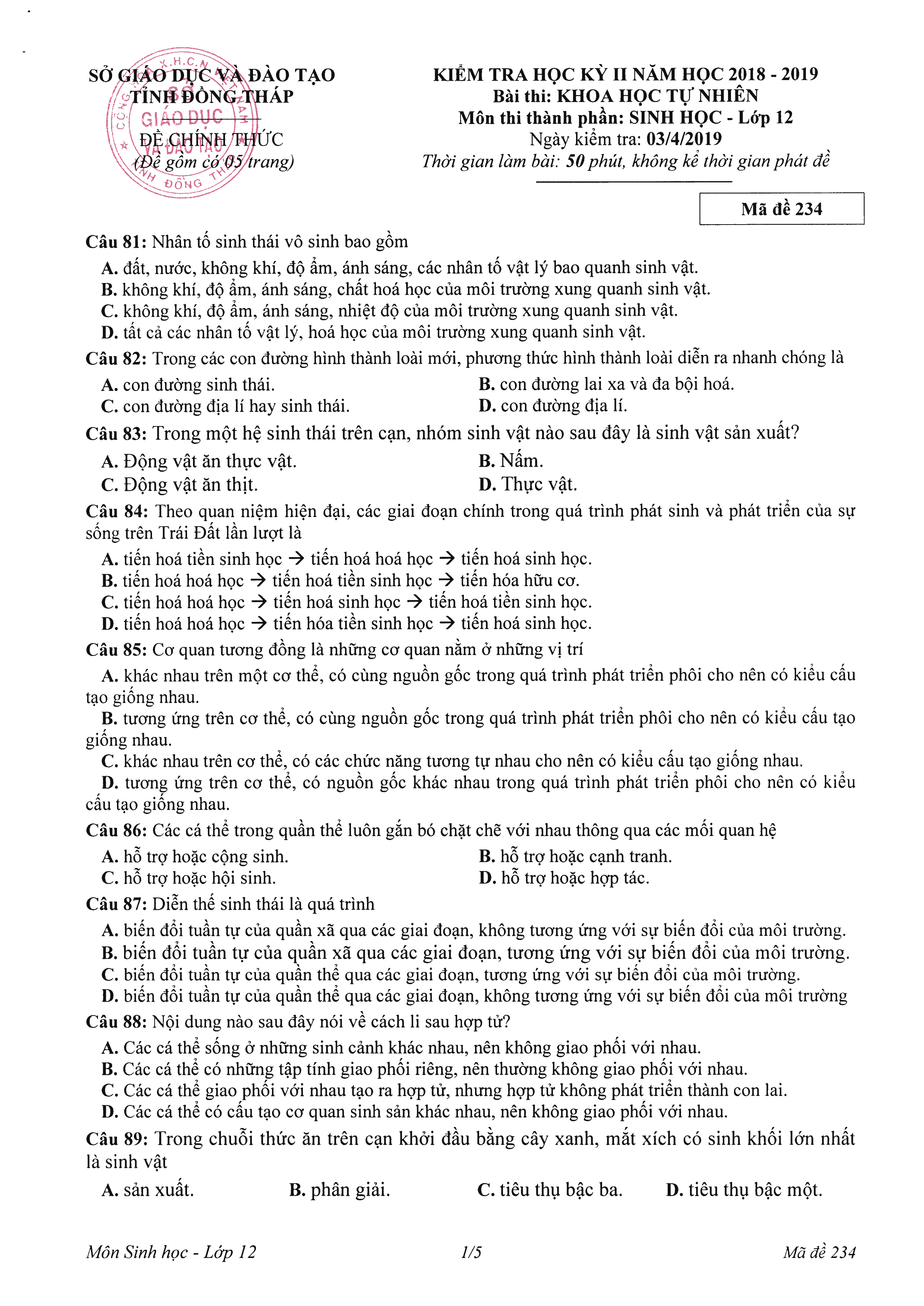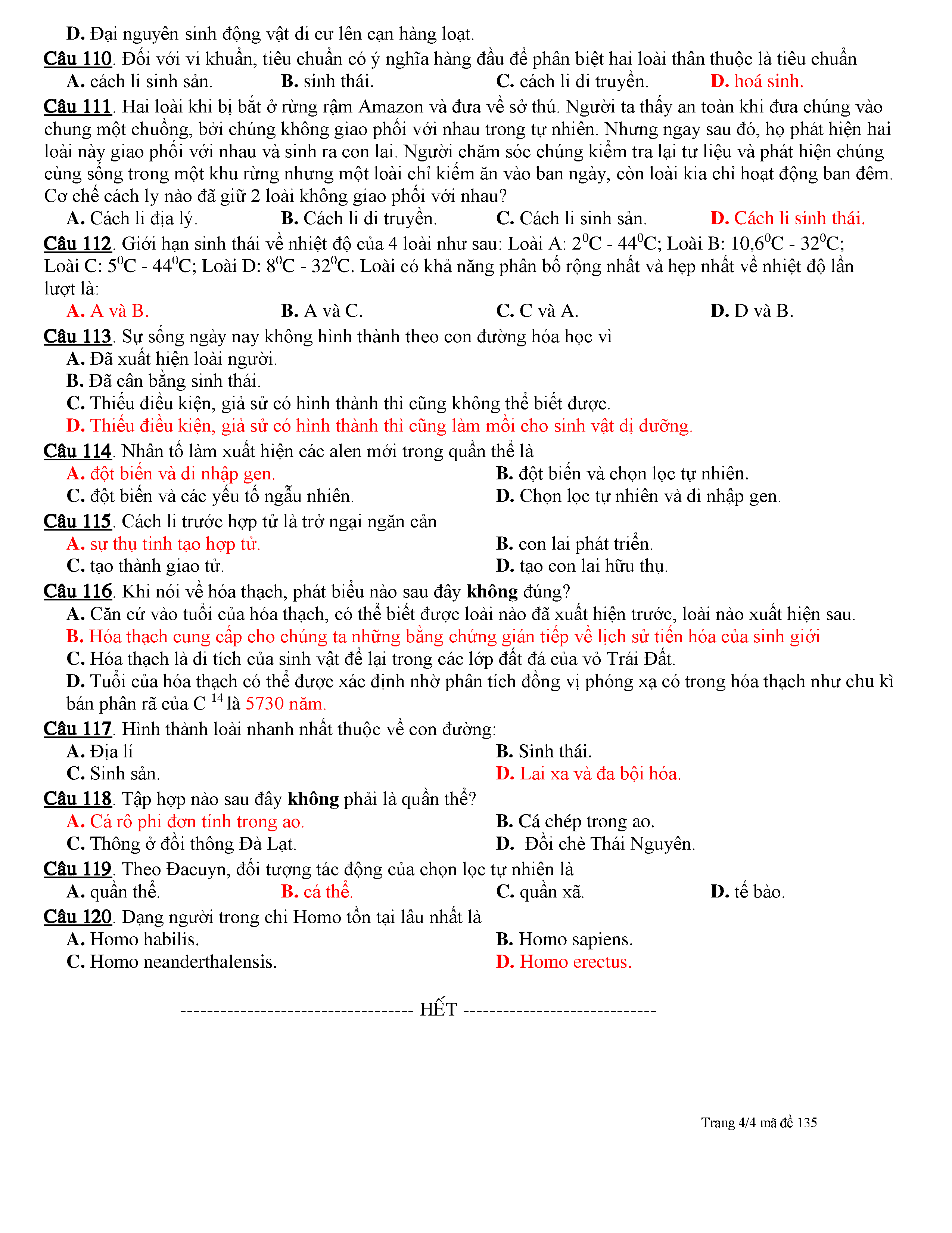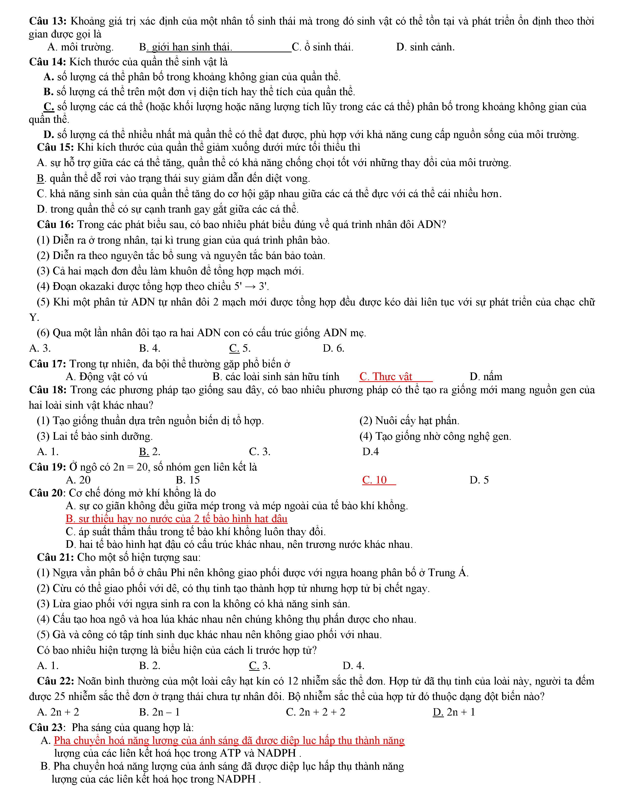 Bộ đề thi học kỳ 2 môn Sinh học 12
