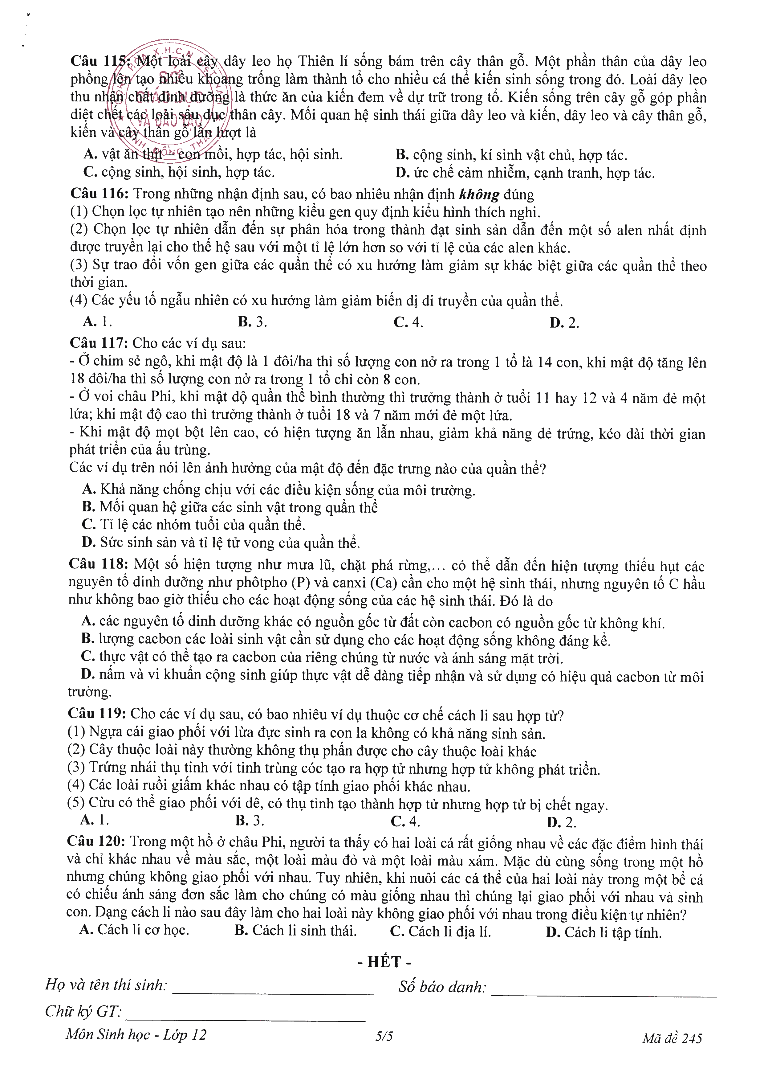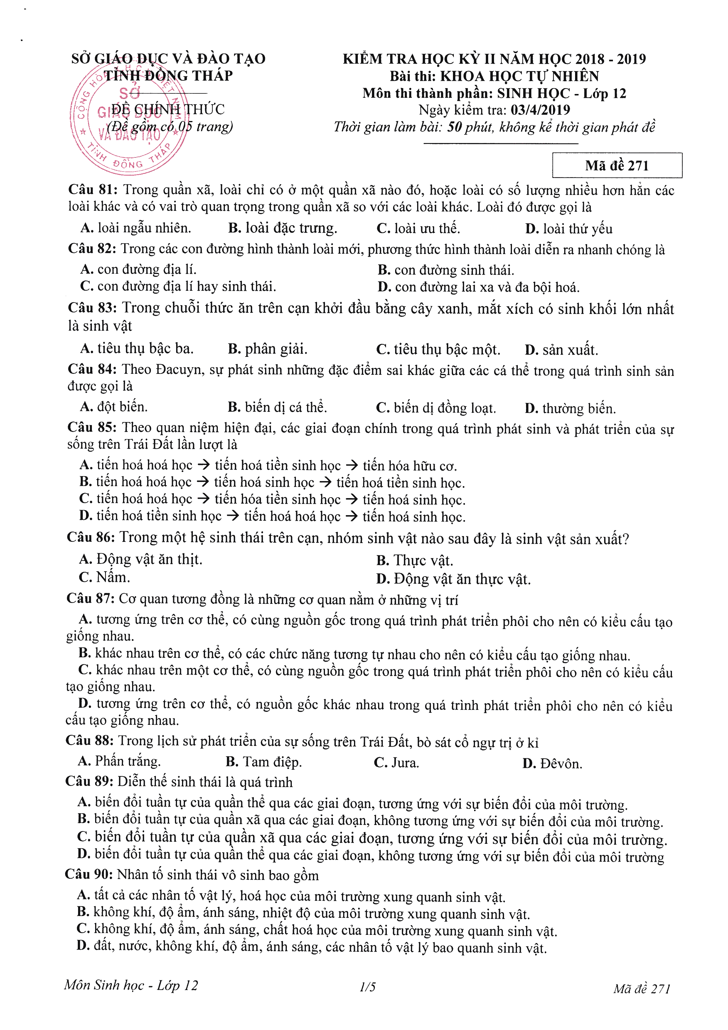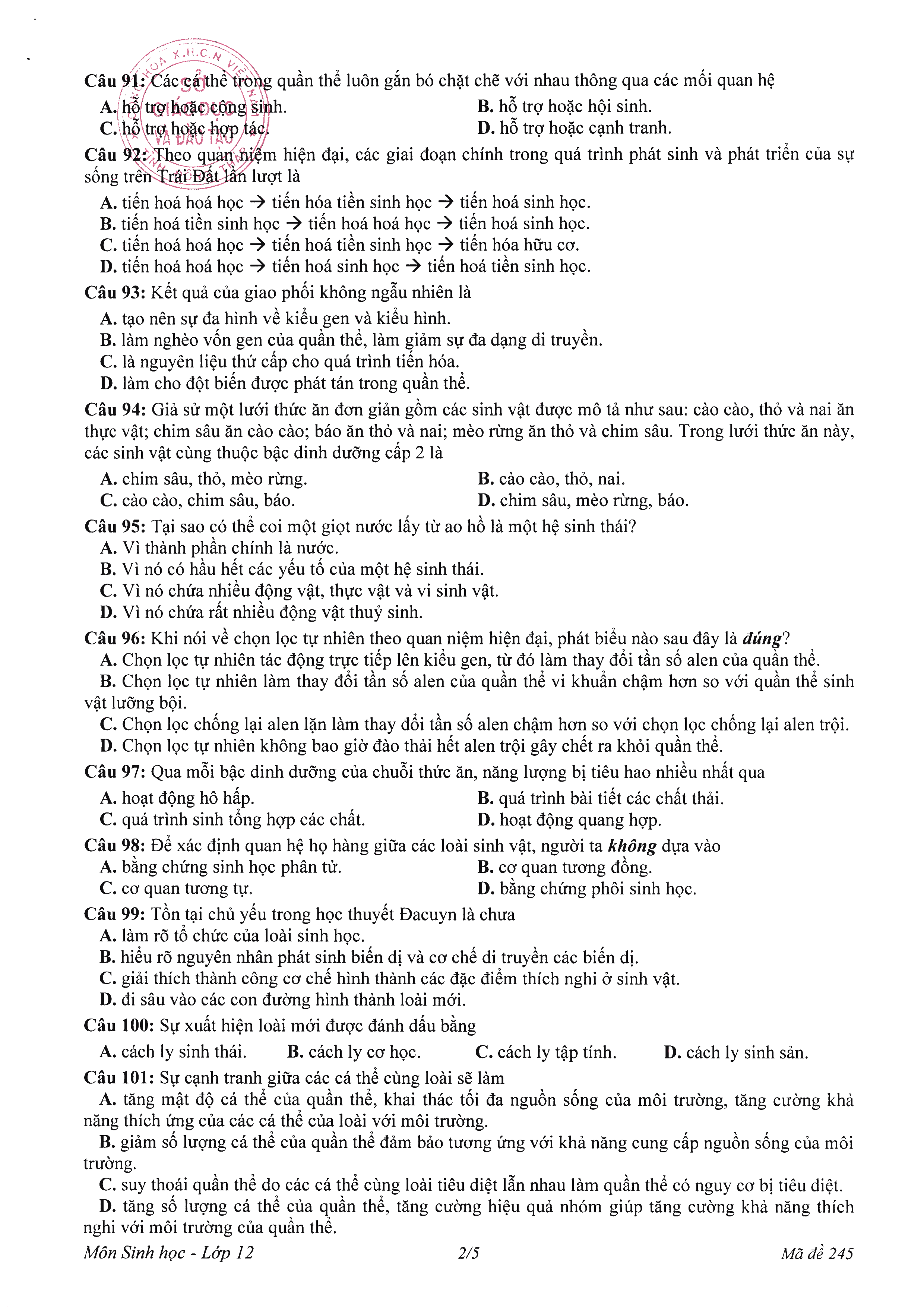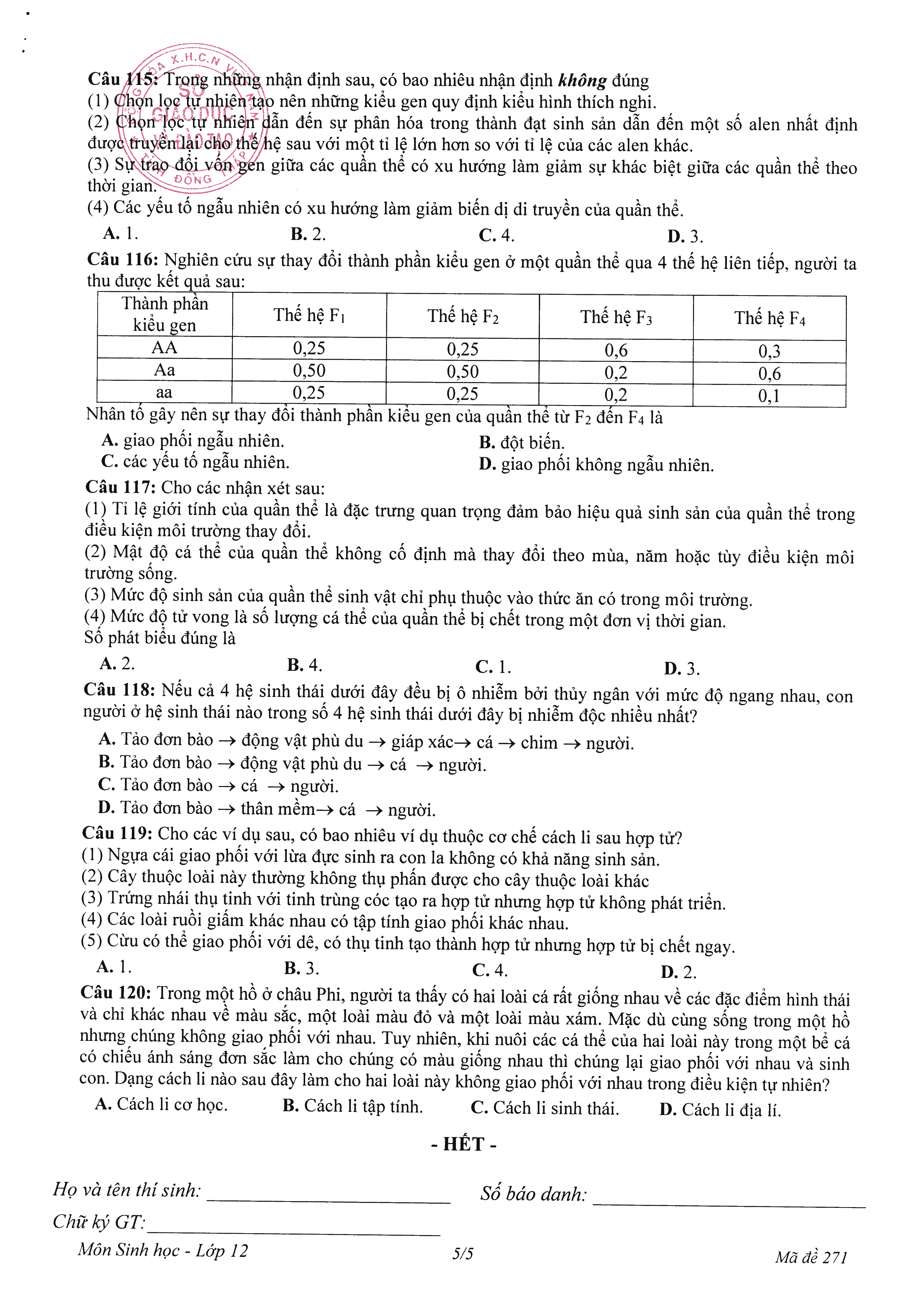 Bộ đề thi học kỳ 2 môn Sinh học 12