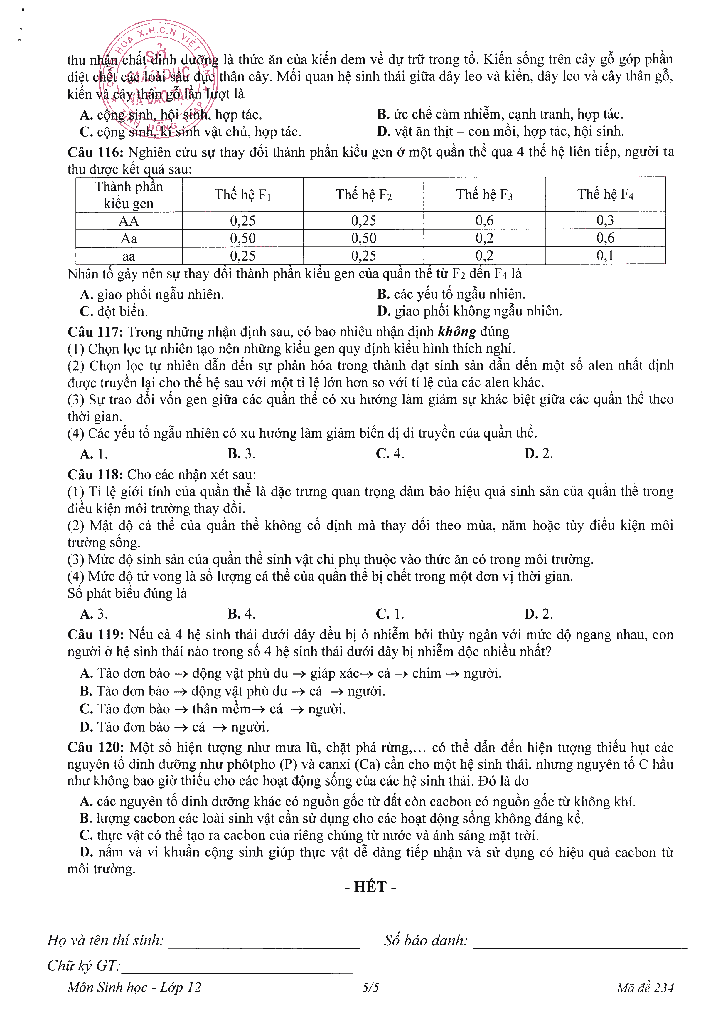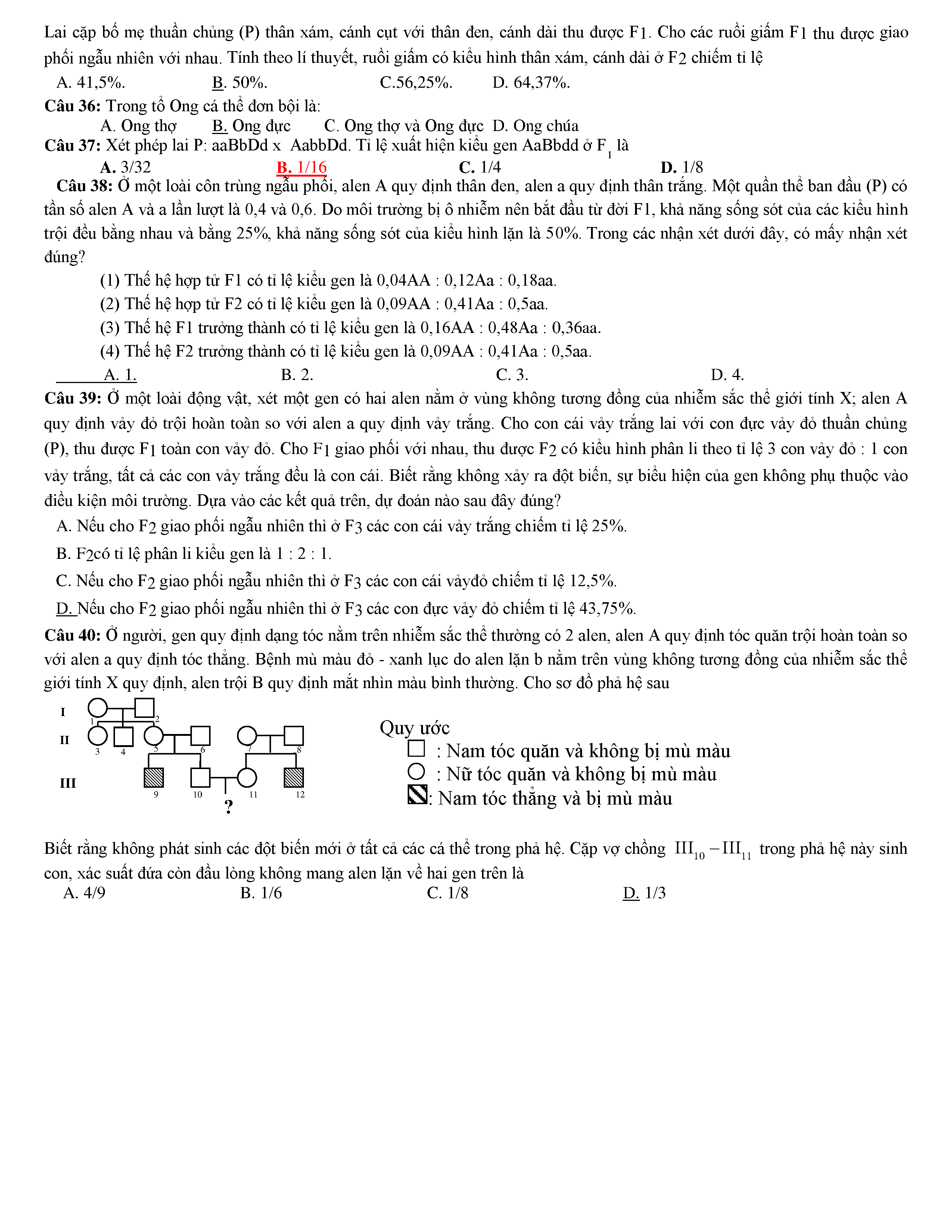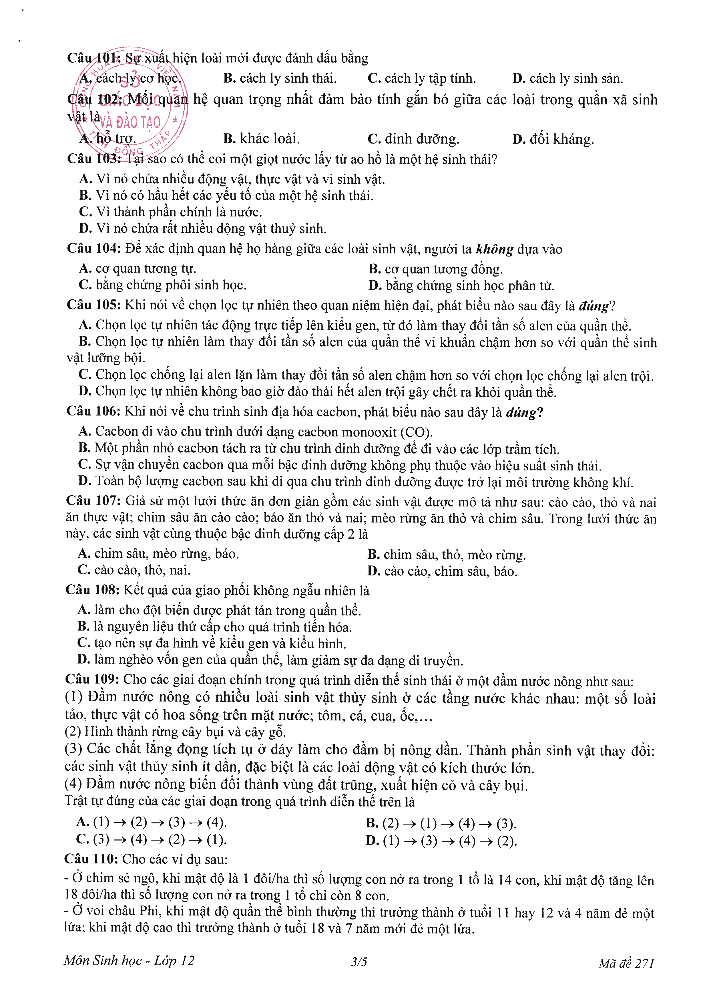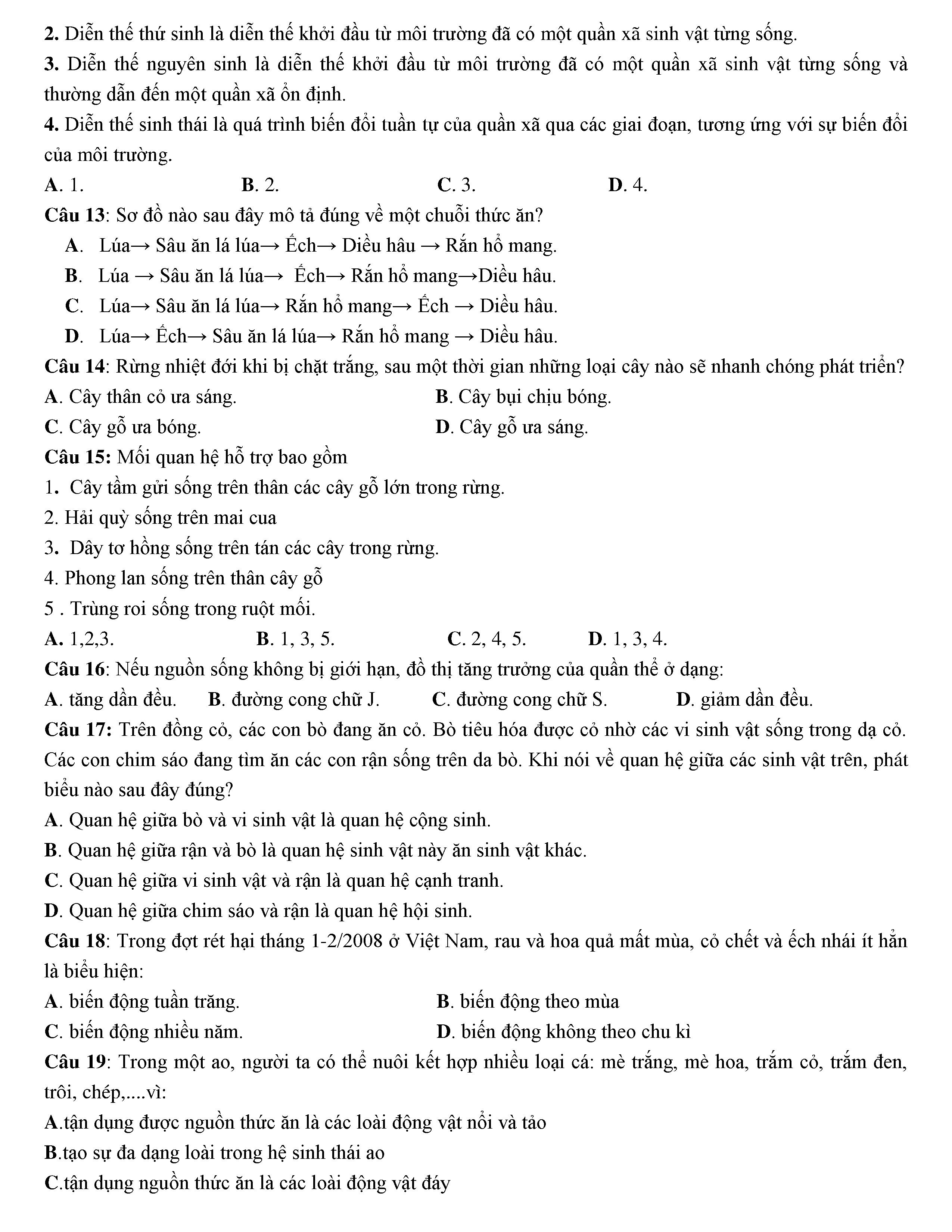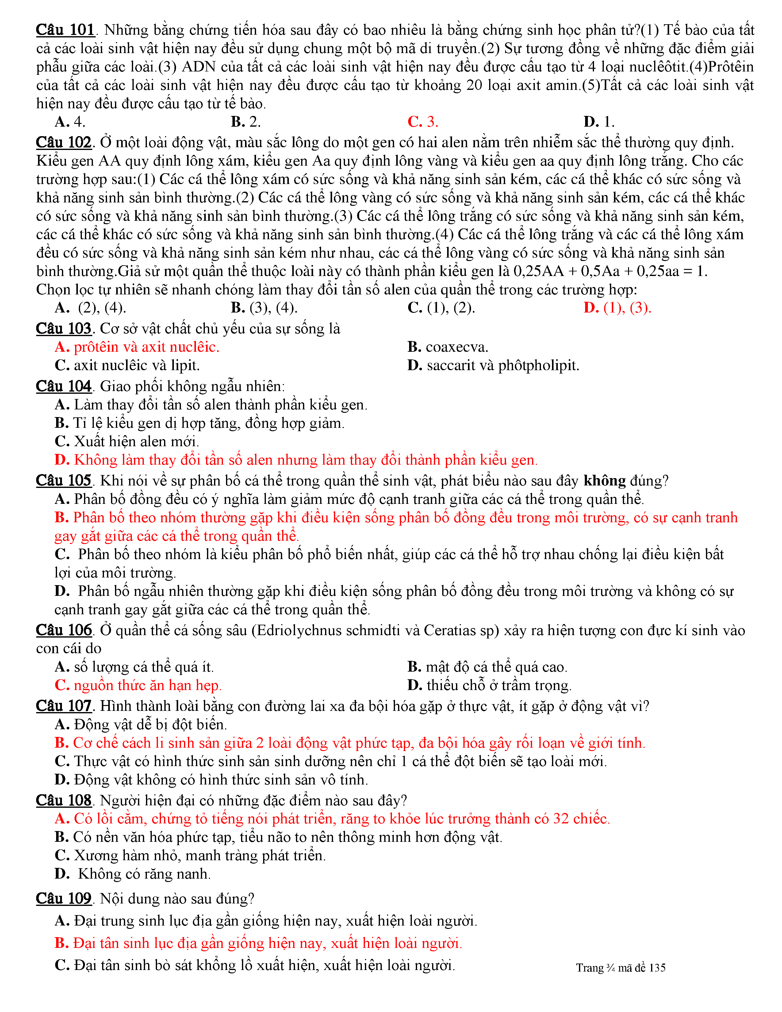 Bộ đề thi học kỳ 2 môn Sinh học 12