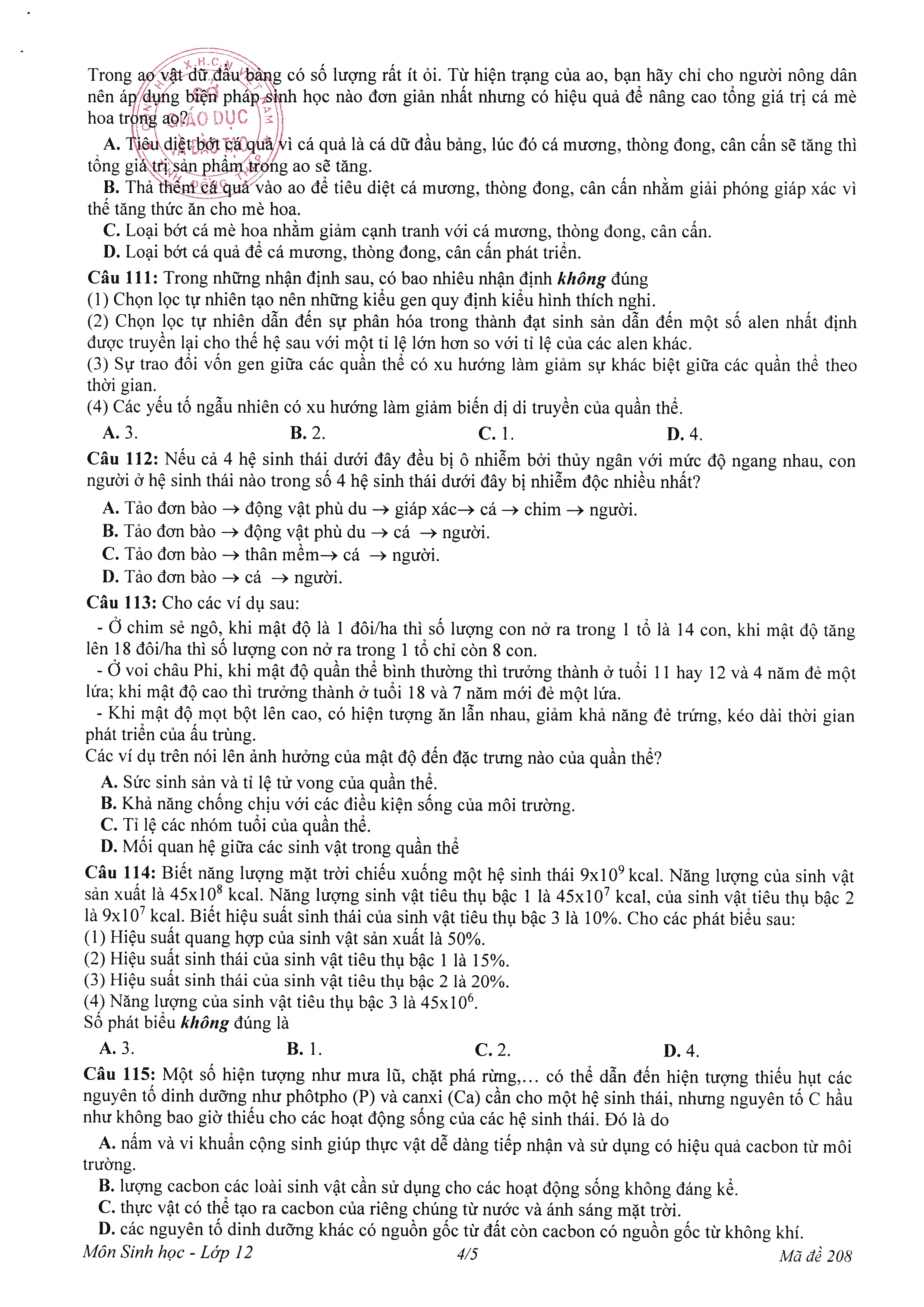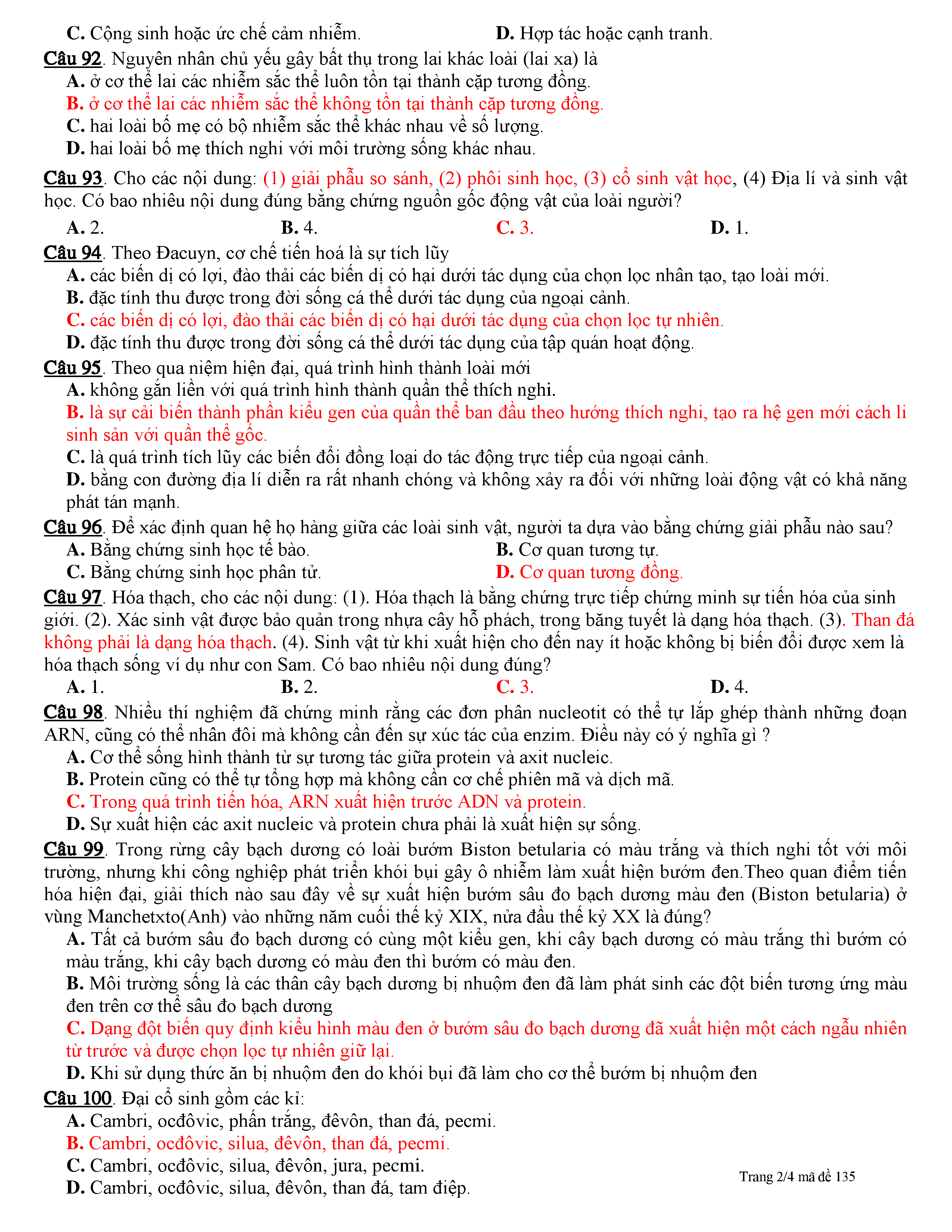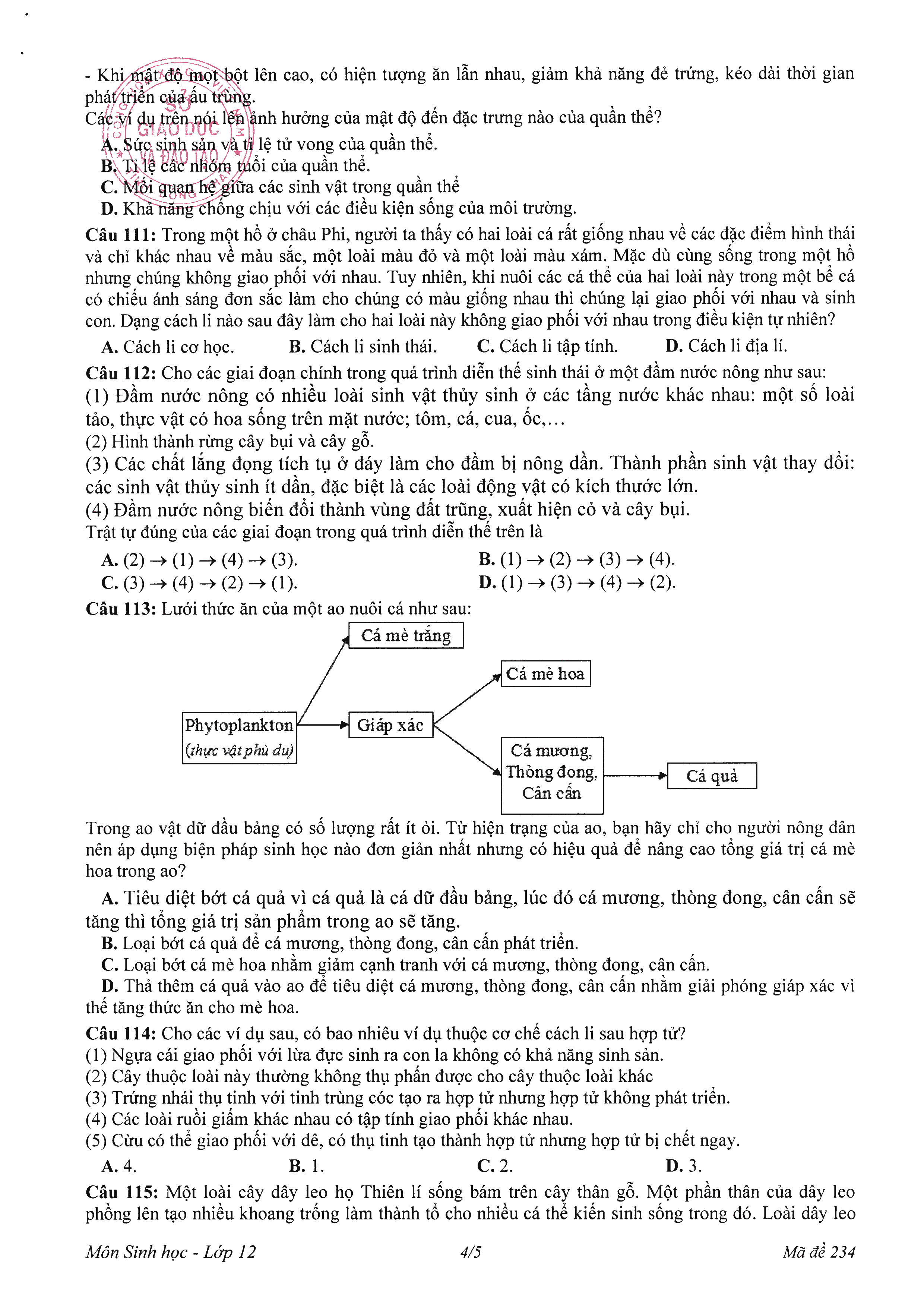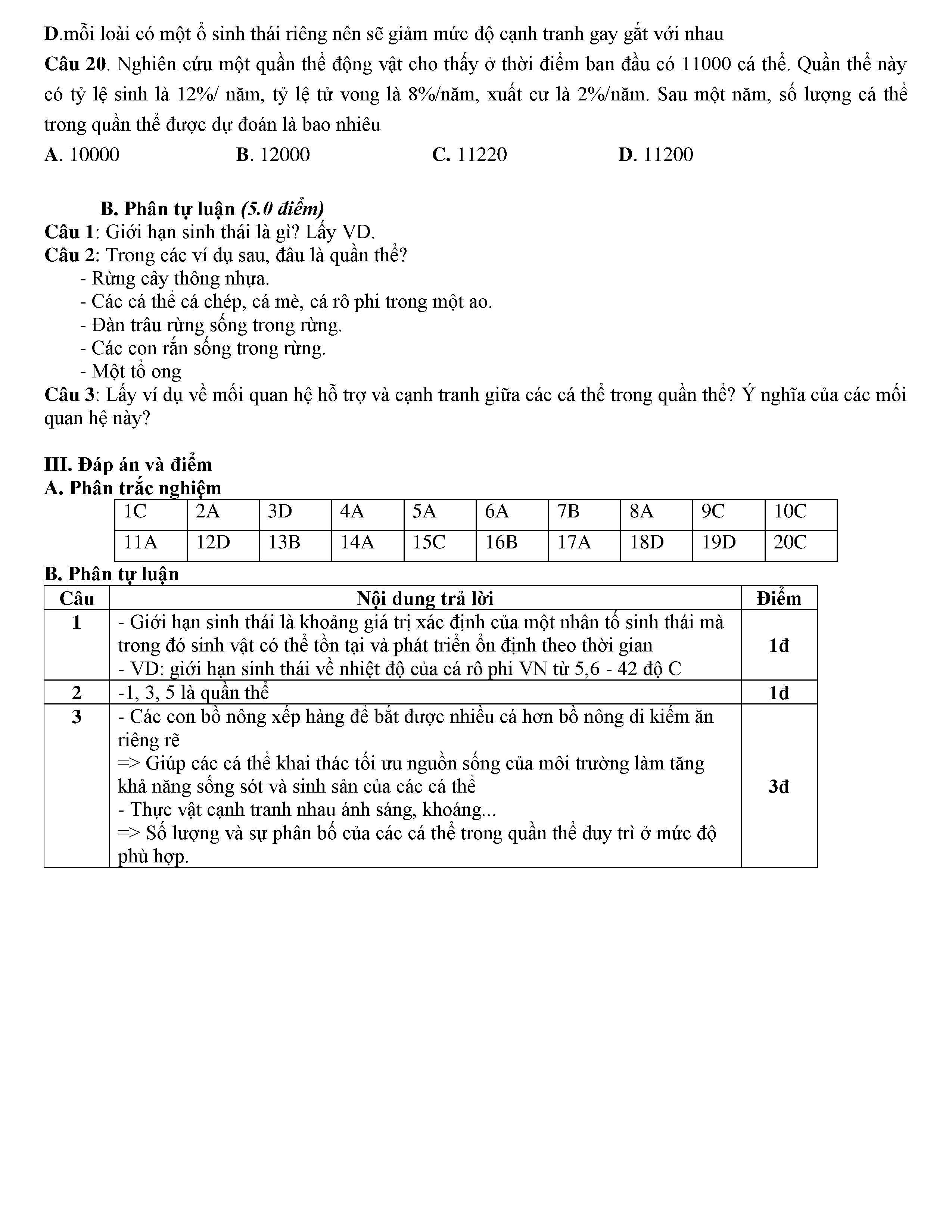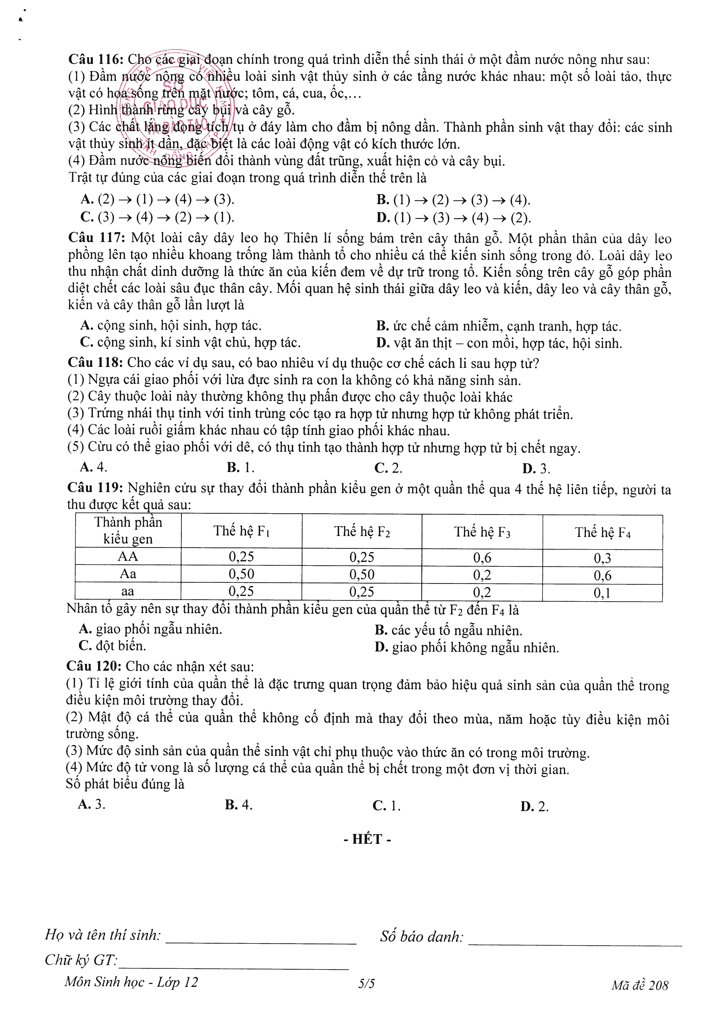 Bộ đề thi học kỳ 2 môn Sinh học 12