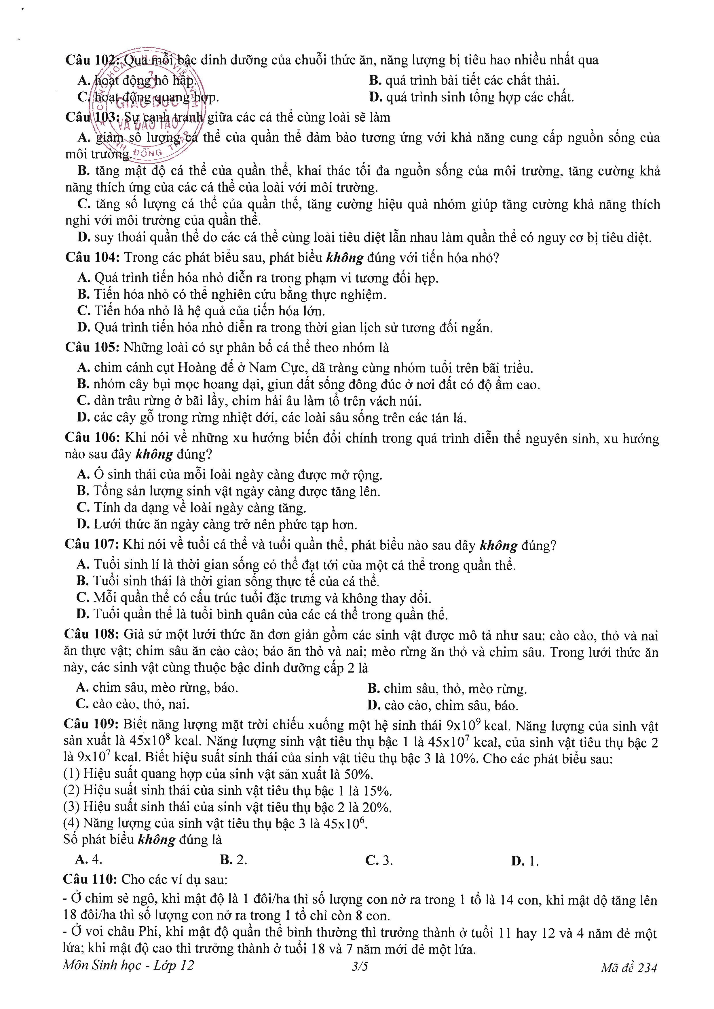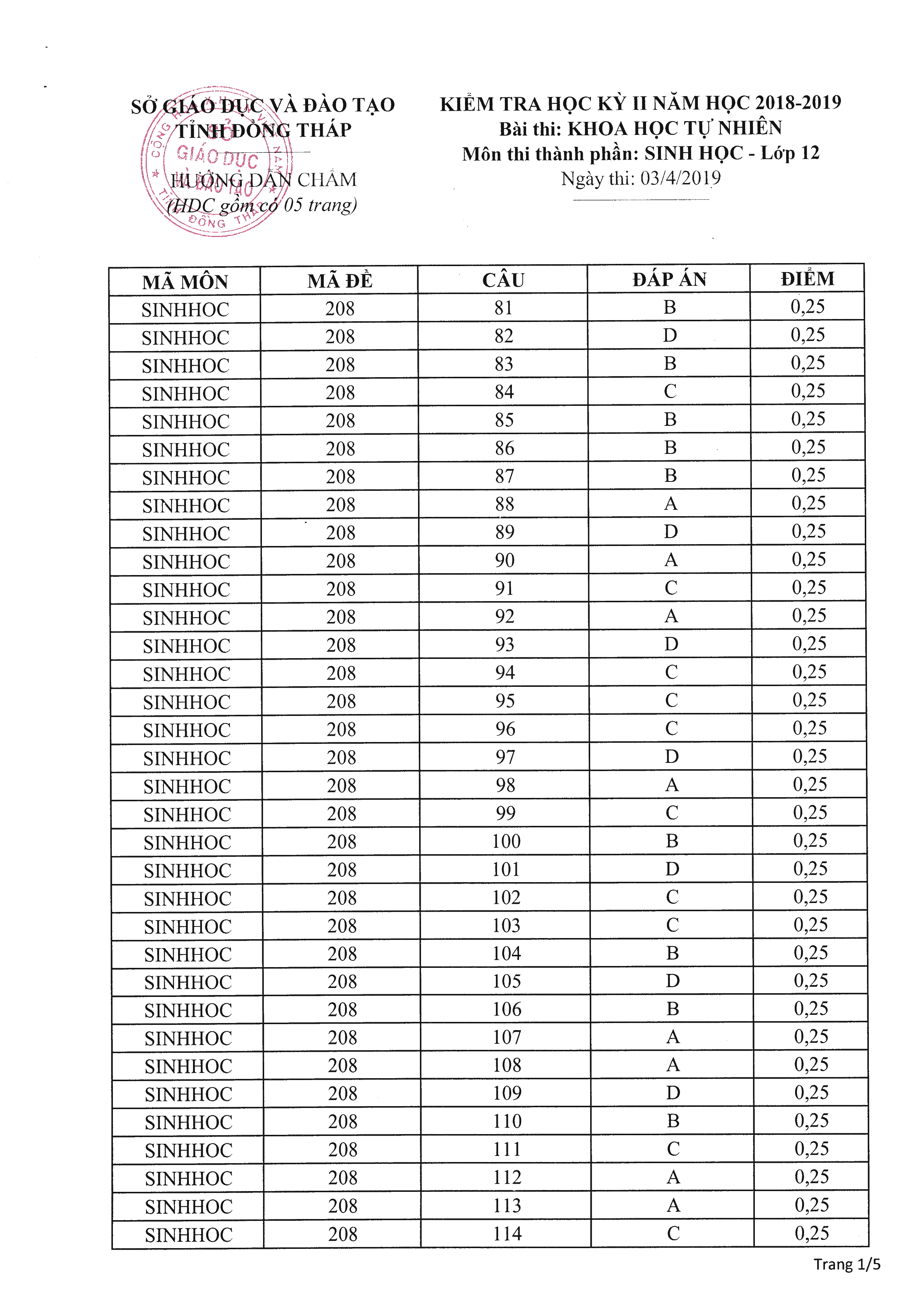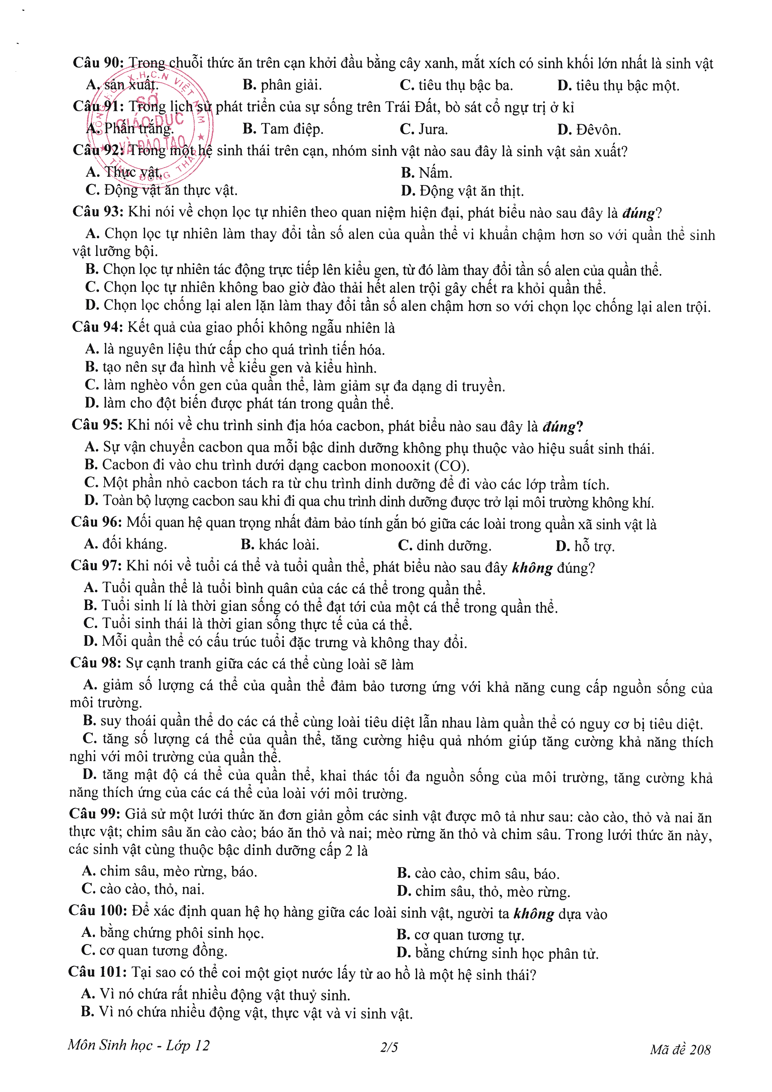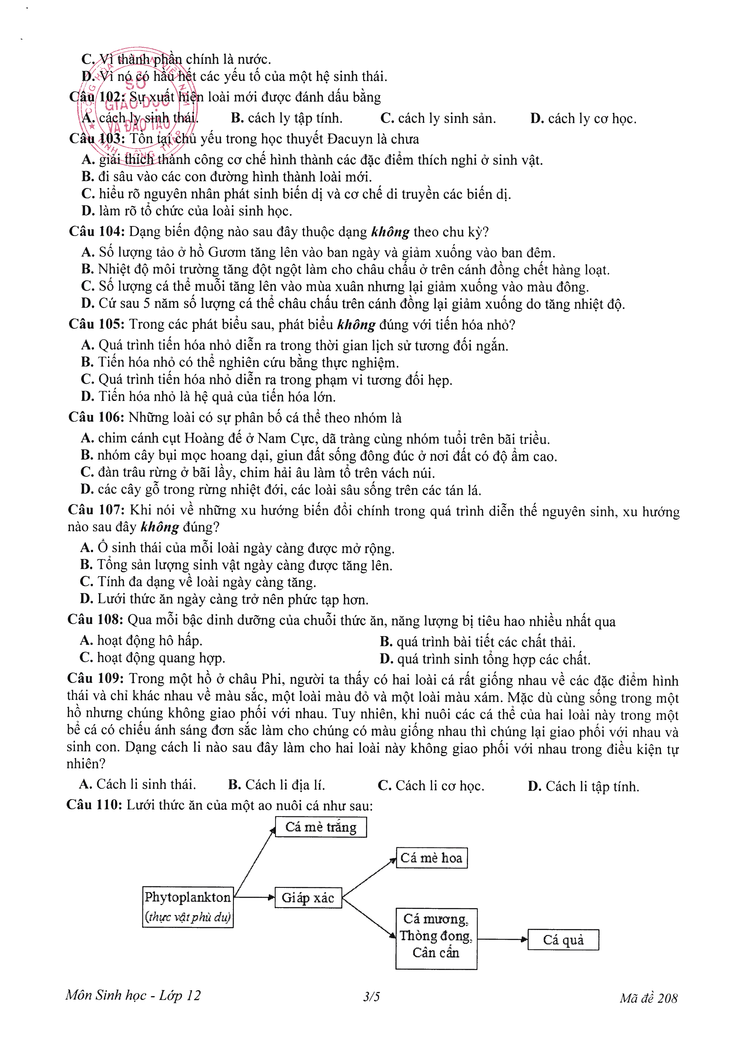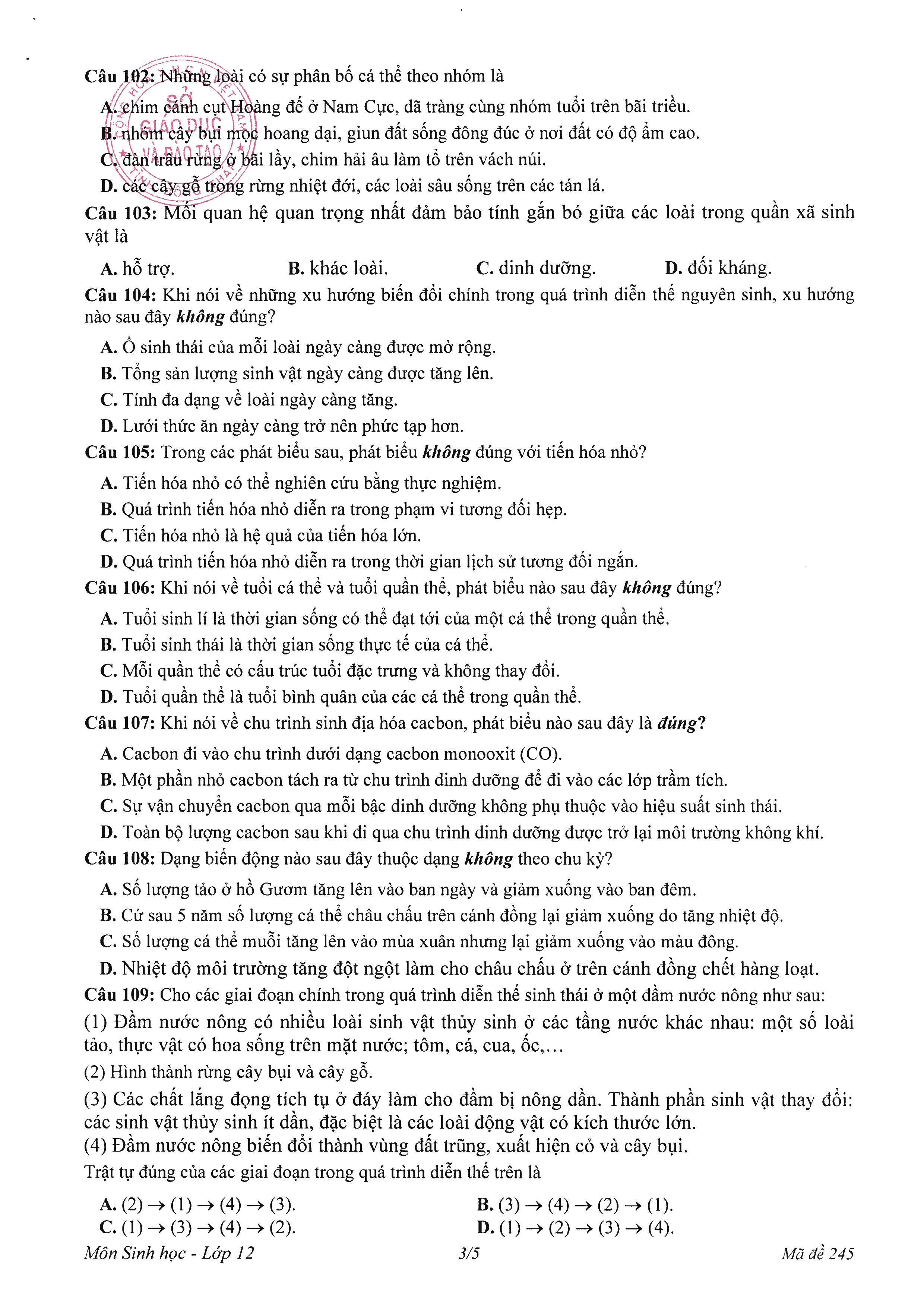 Bộ đề thi học kỳ 2 môn Sinh học 12