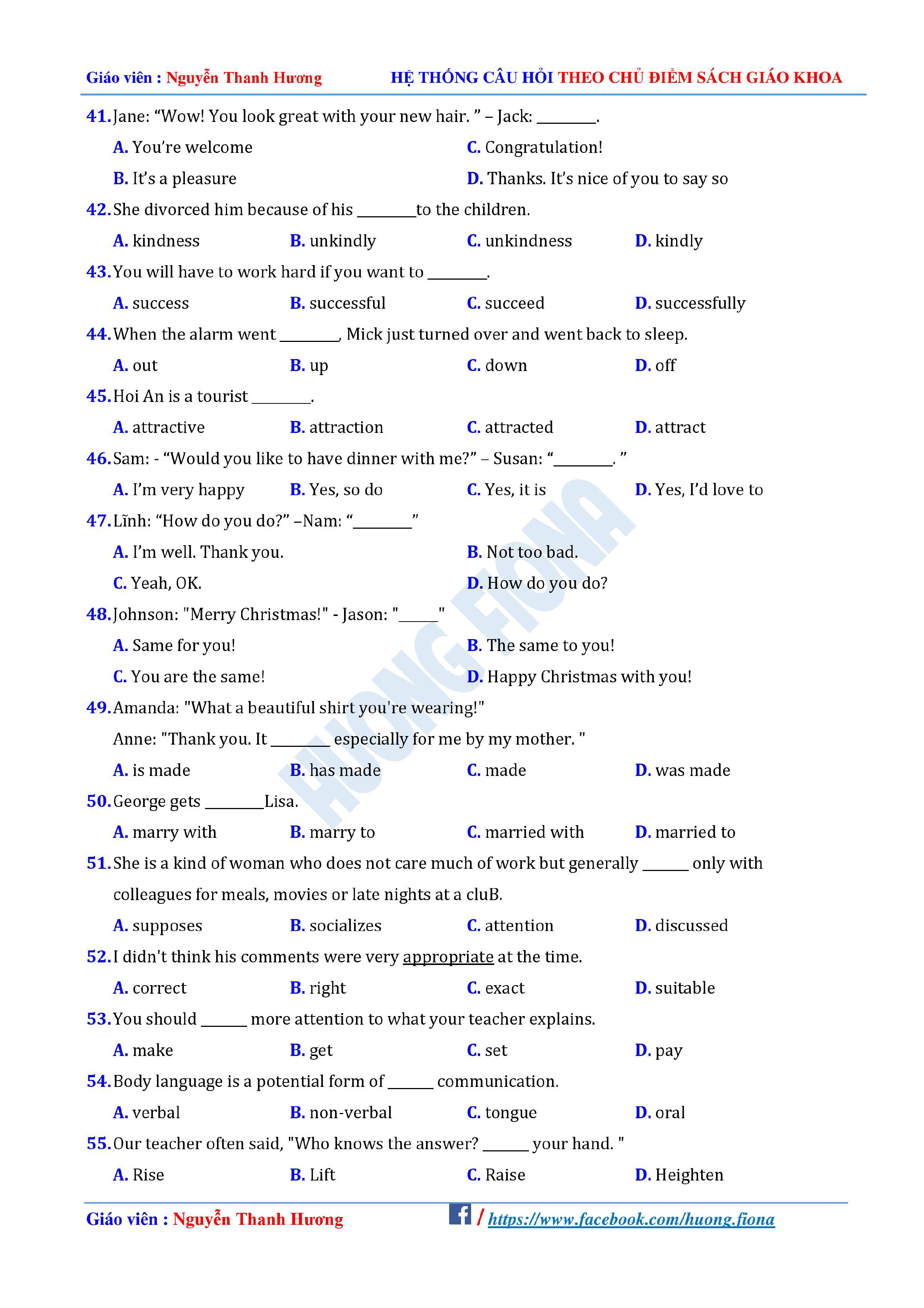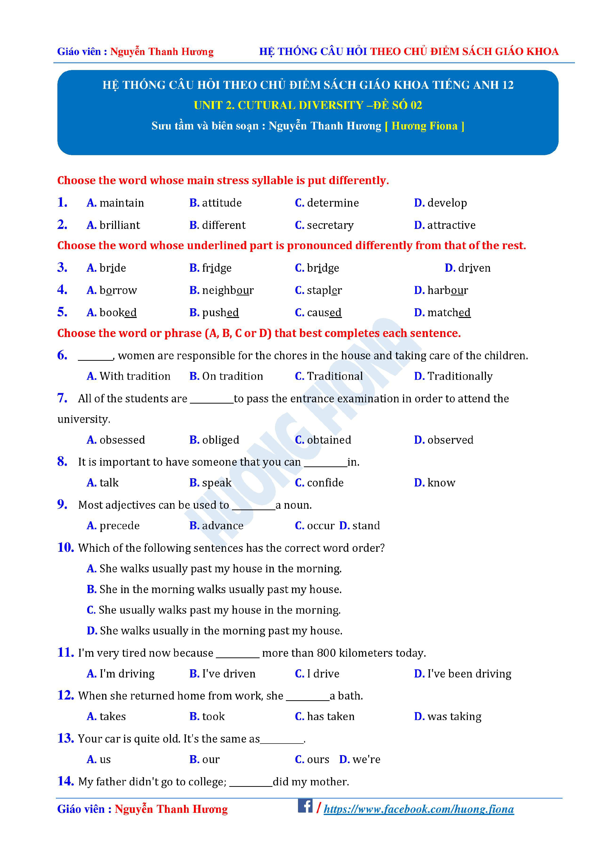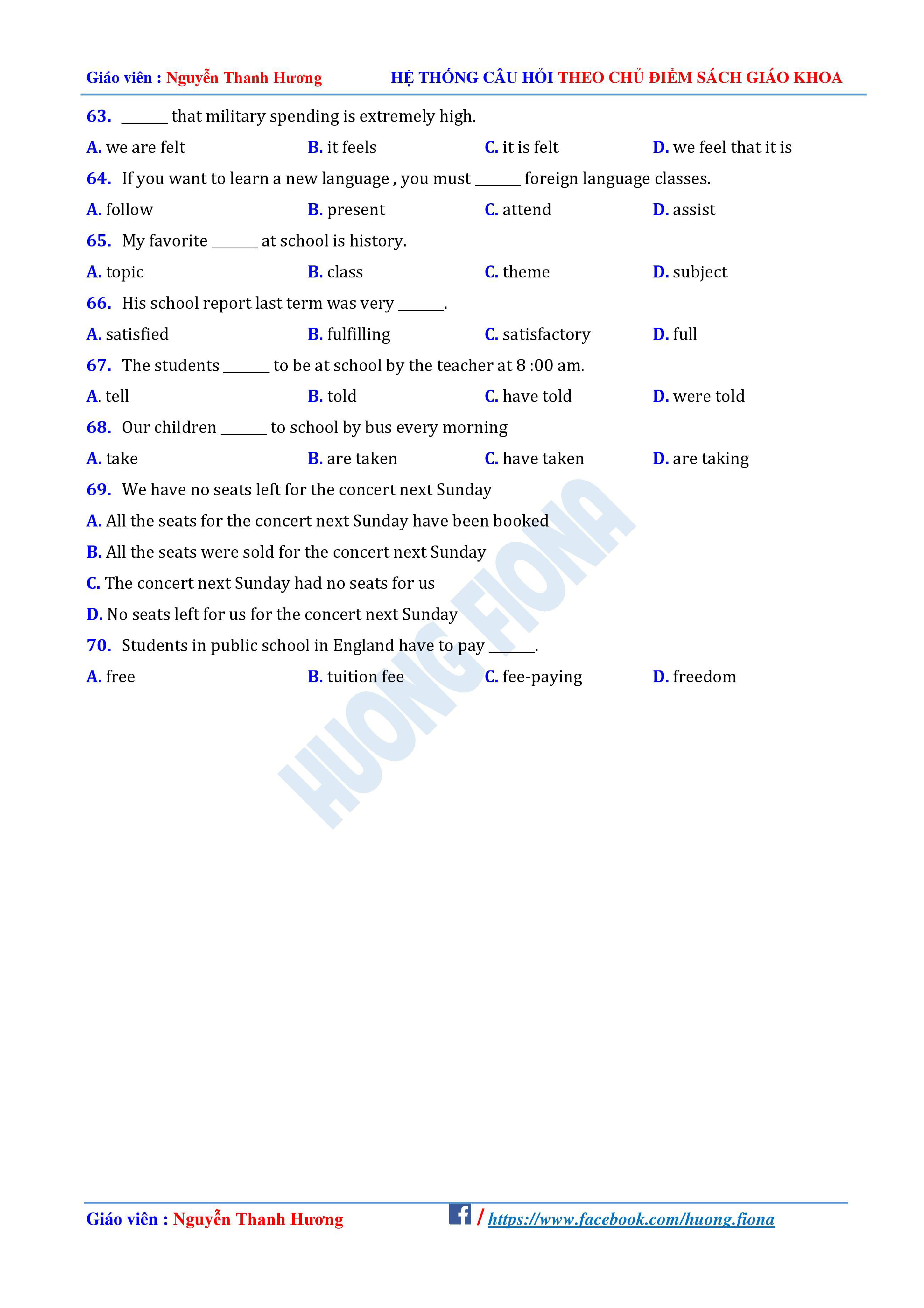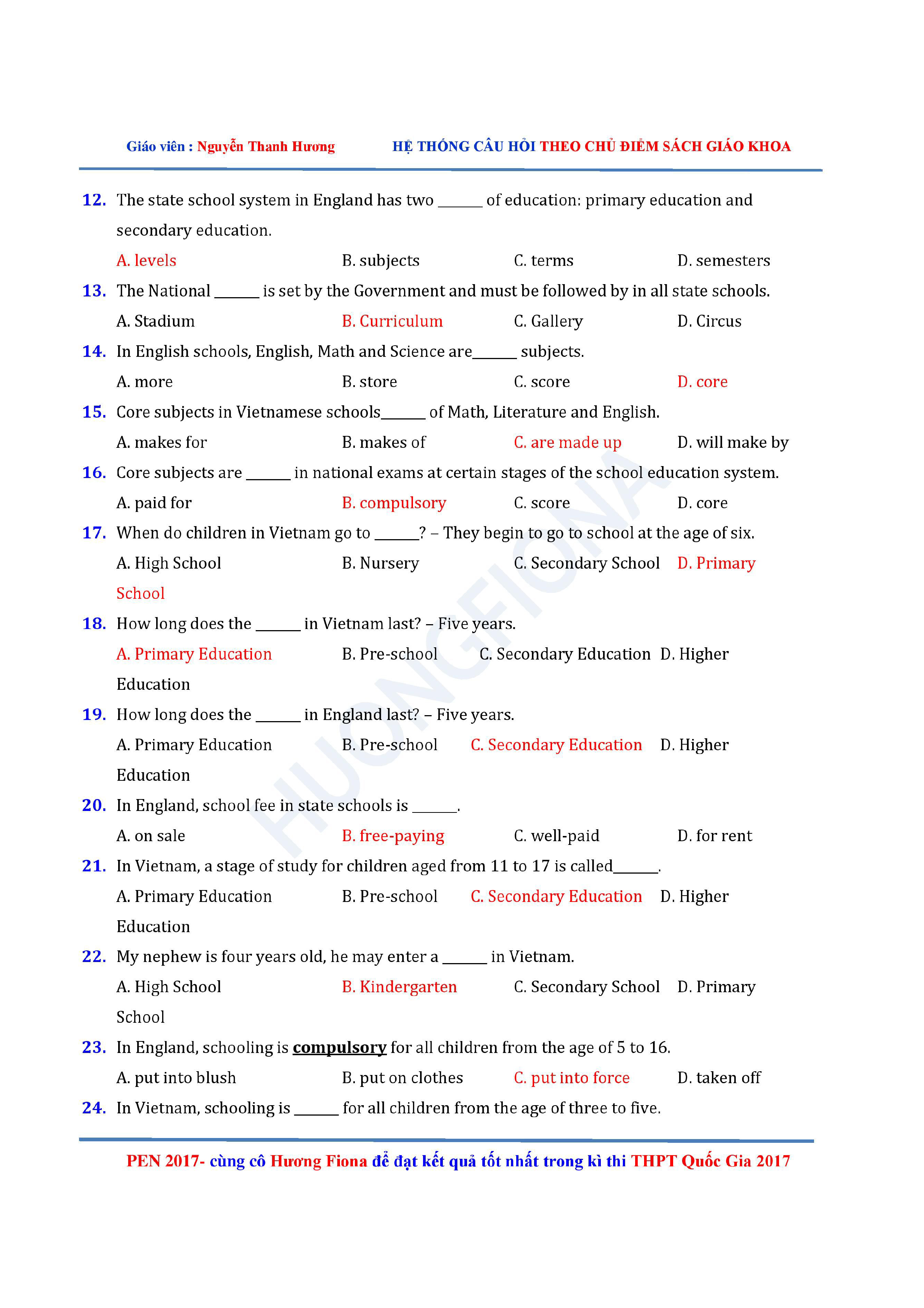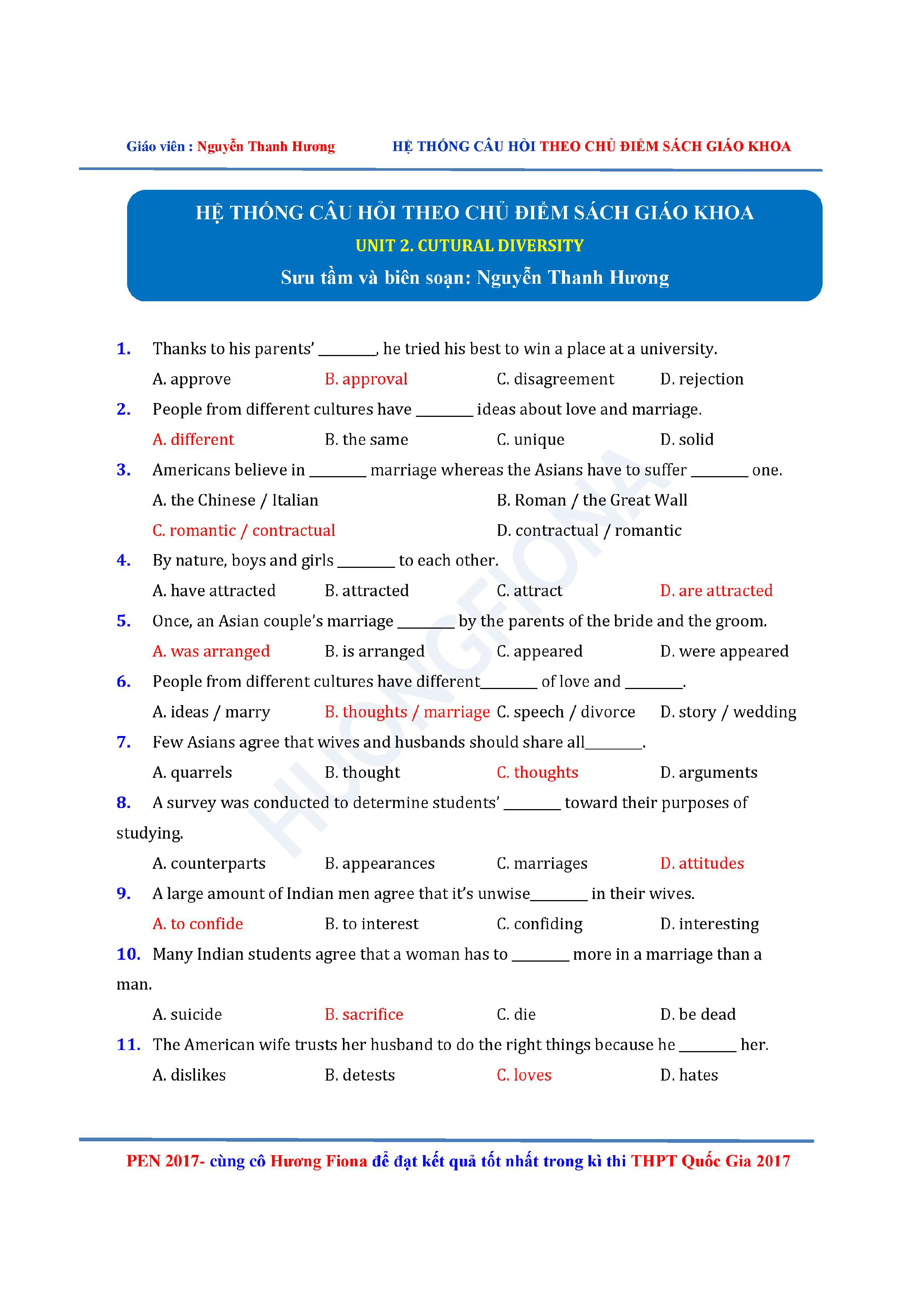 Câu hỏi trắc nghiệm Tiếng Anh 12 theo từng chủ điểm