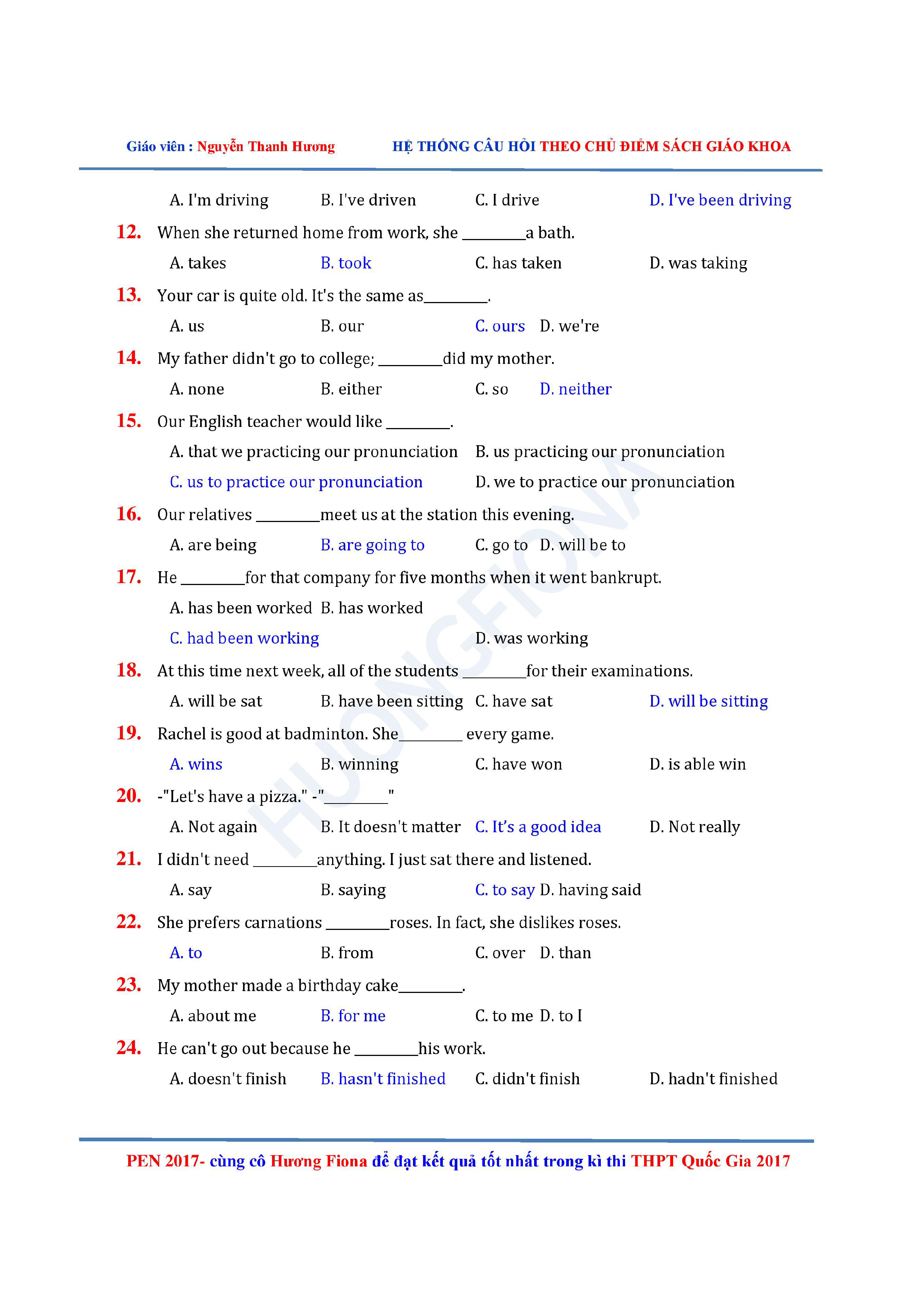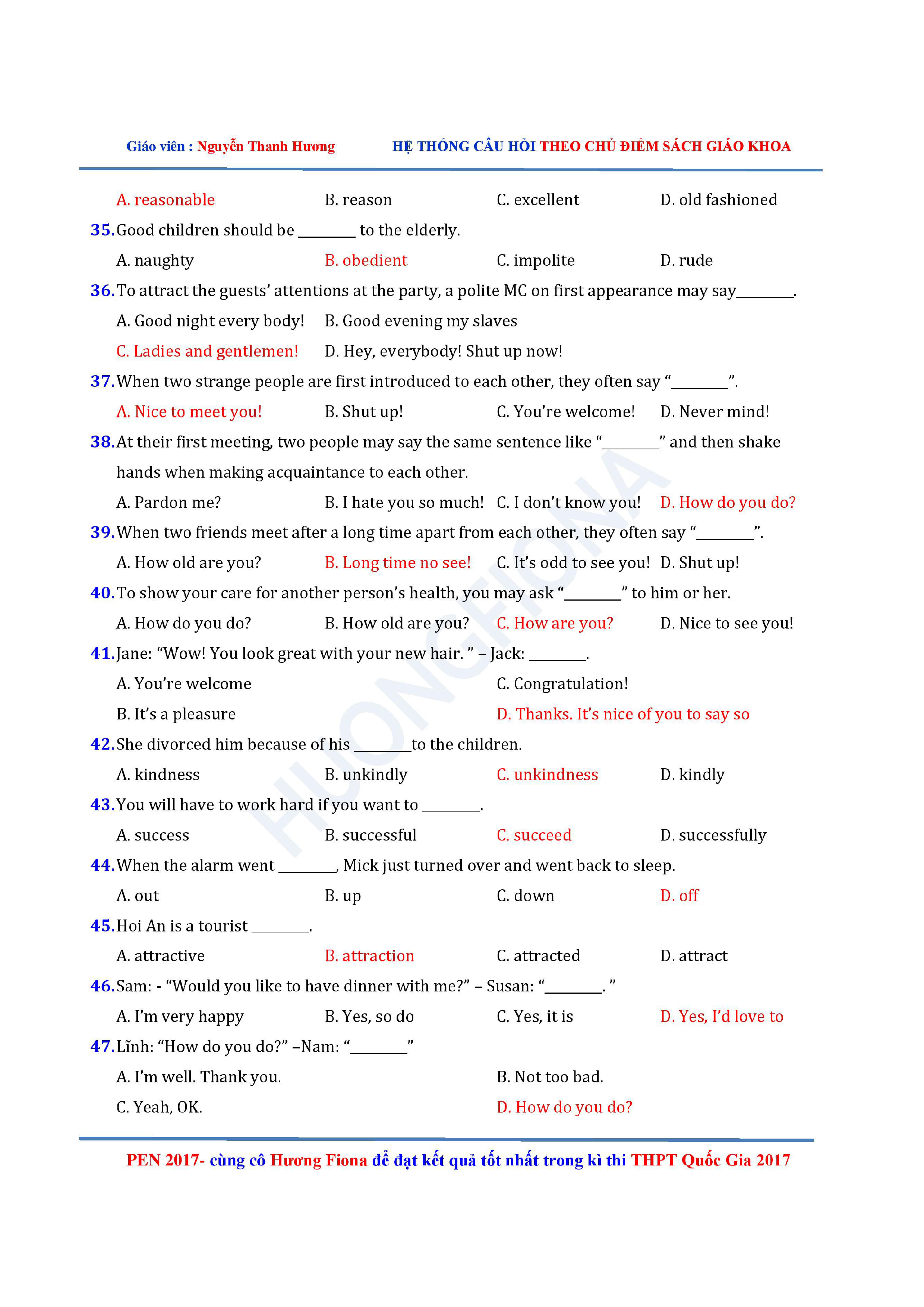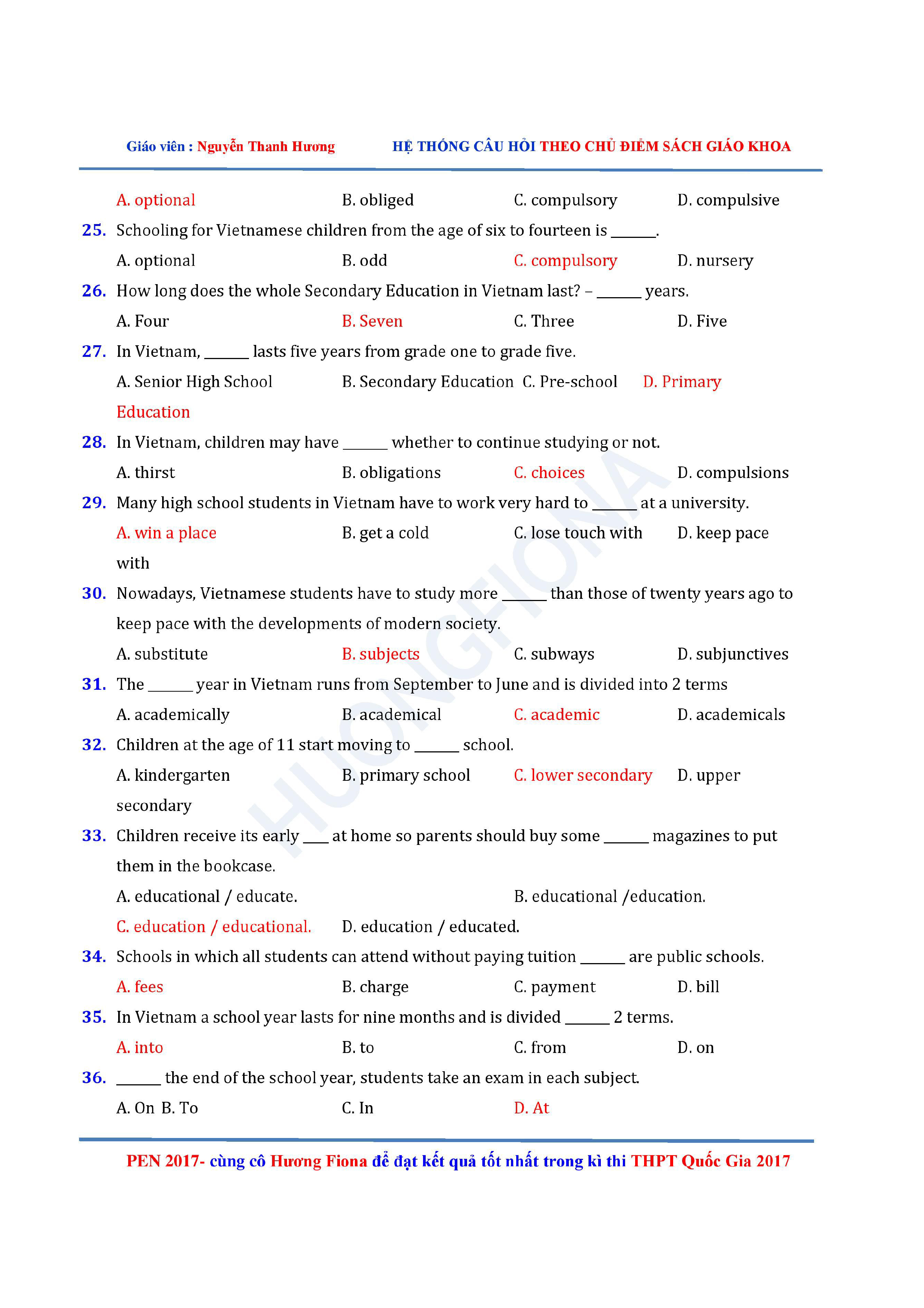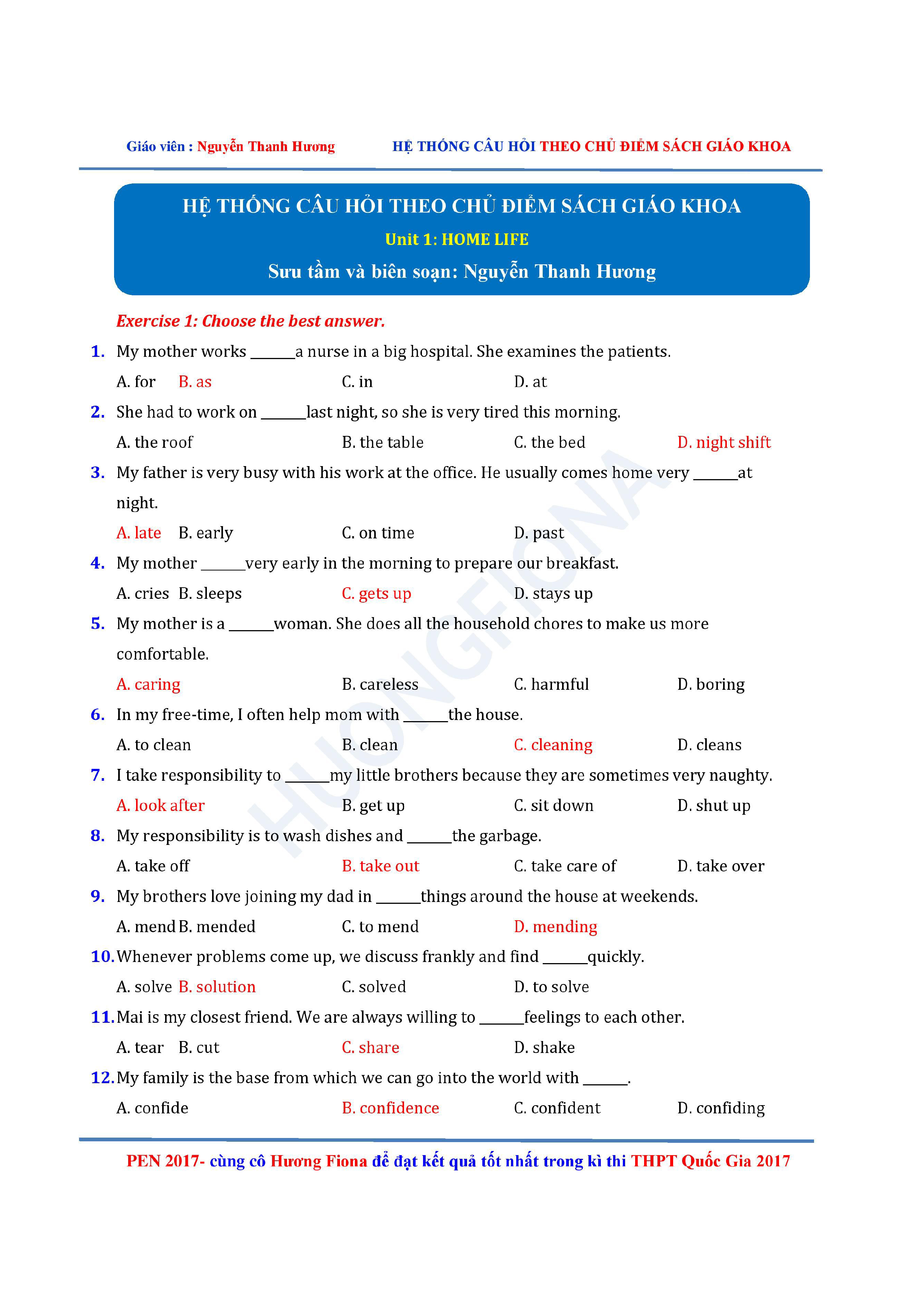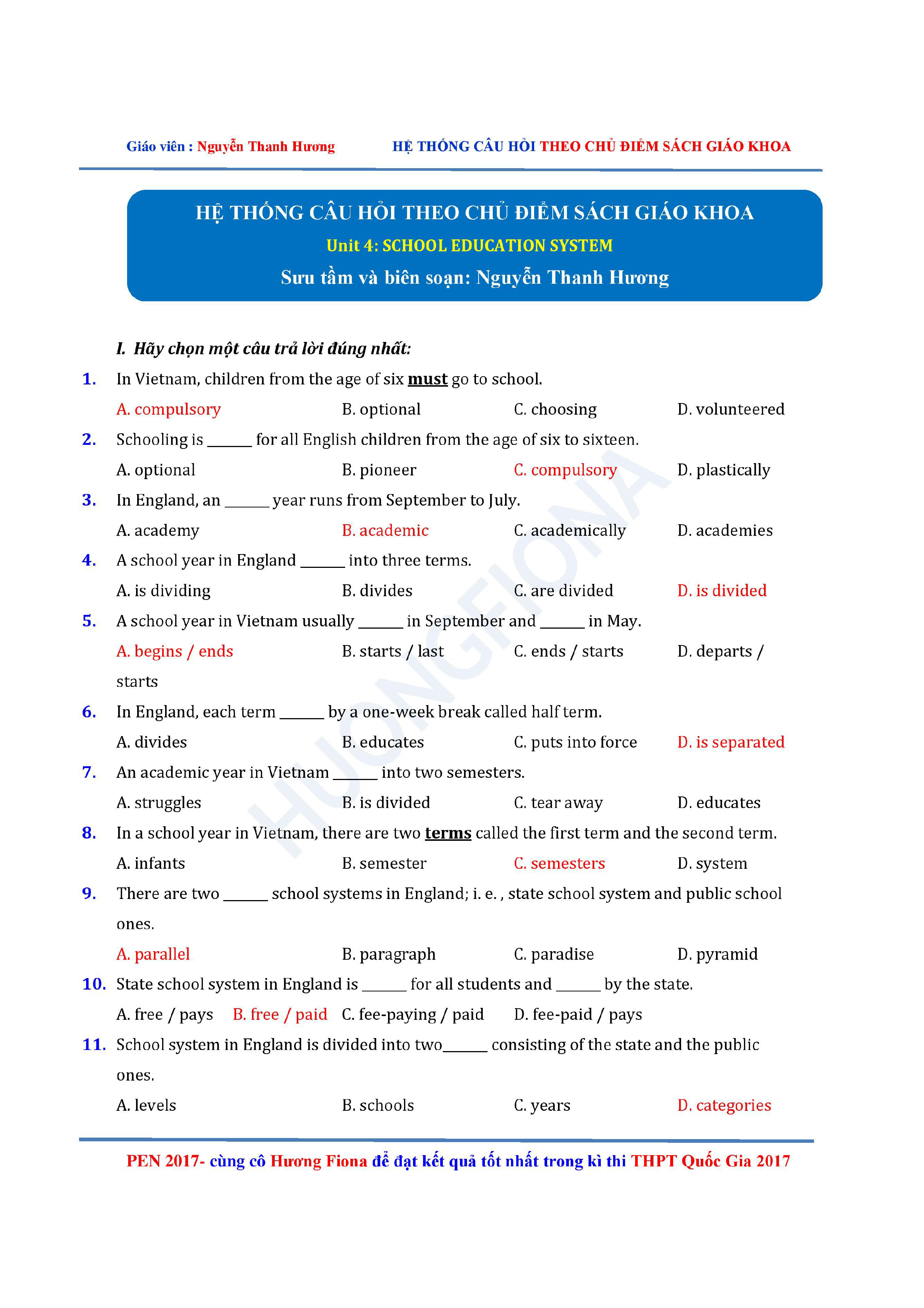 Câu hỏi trắc nghiệm Tiếng Anh 12 theo từng chủ điểm