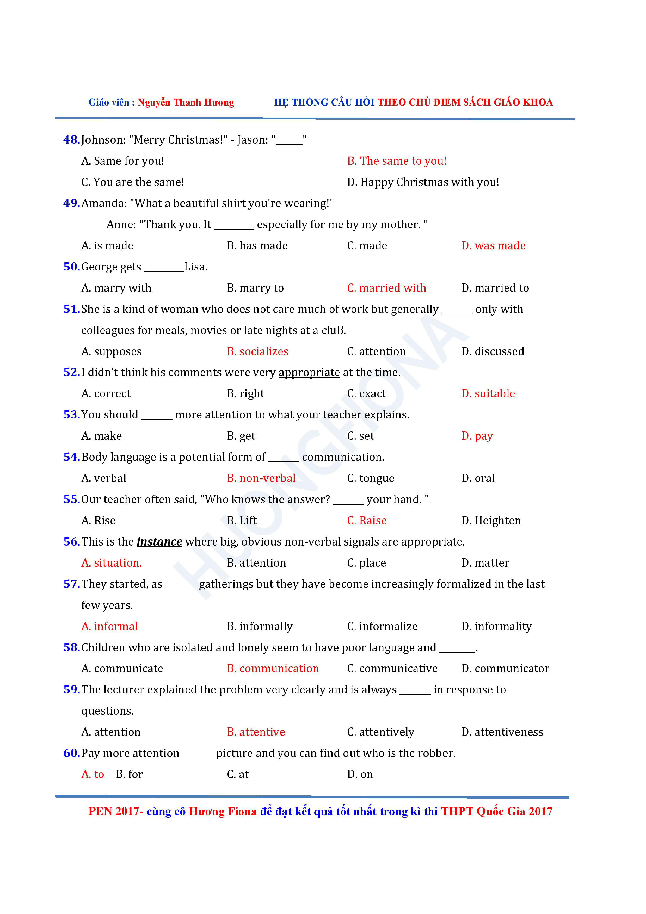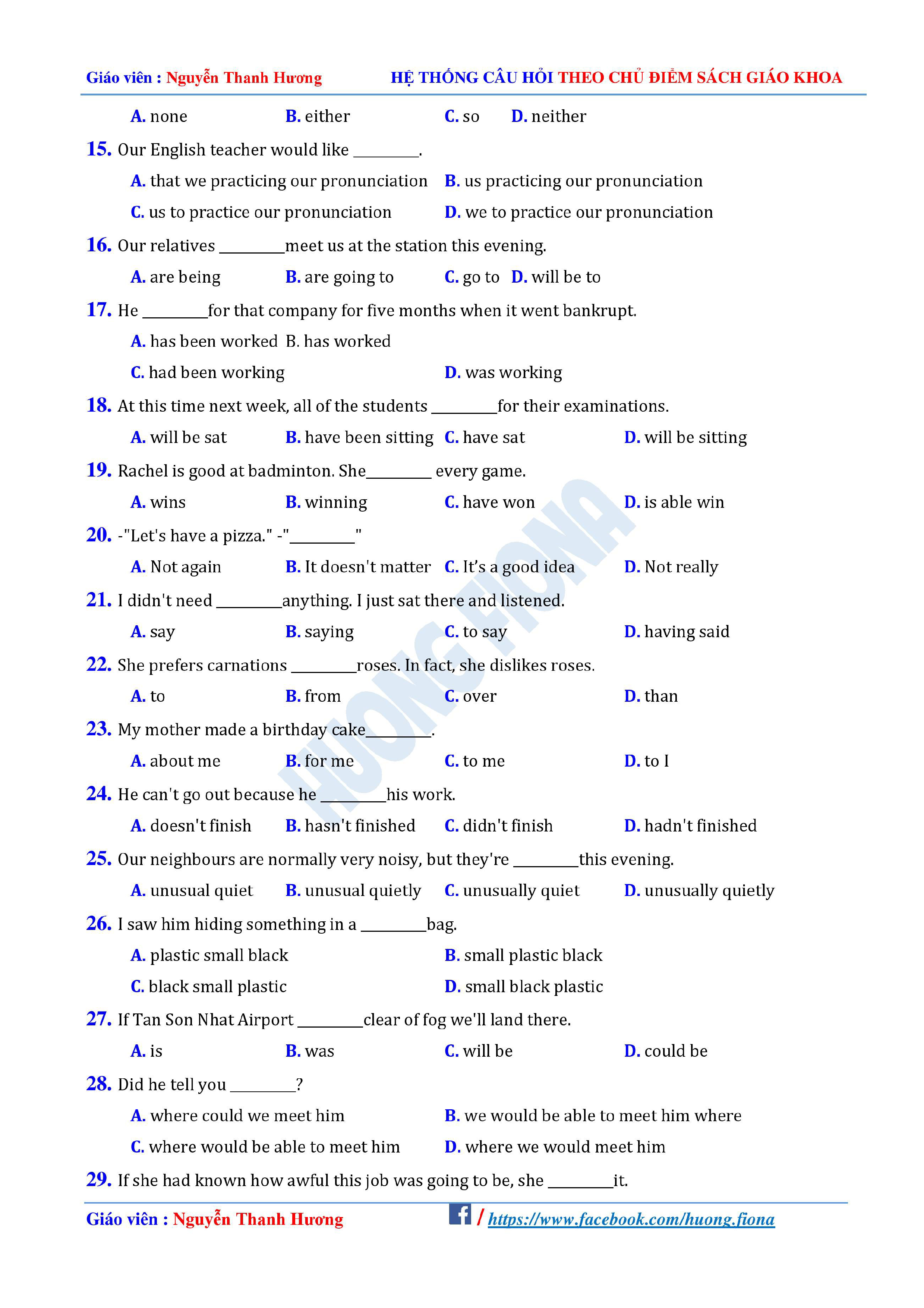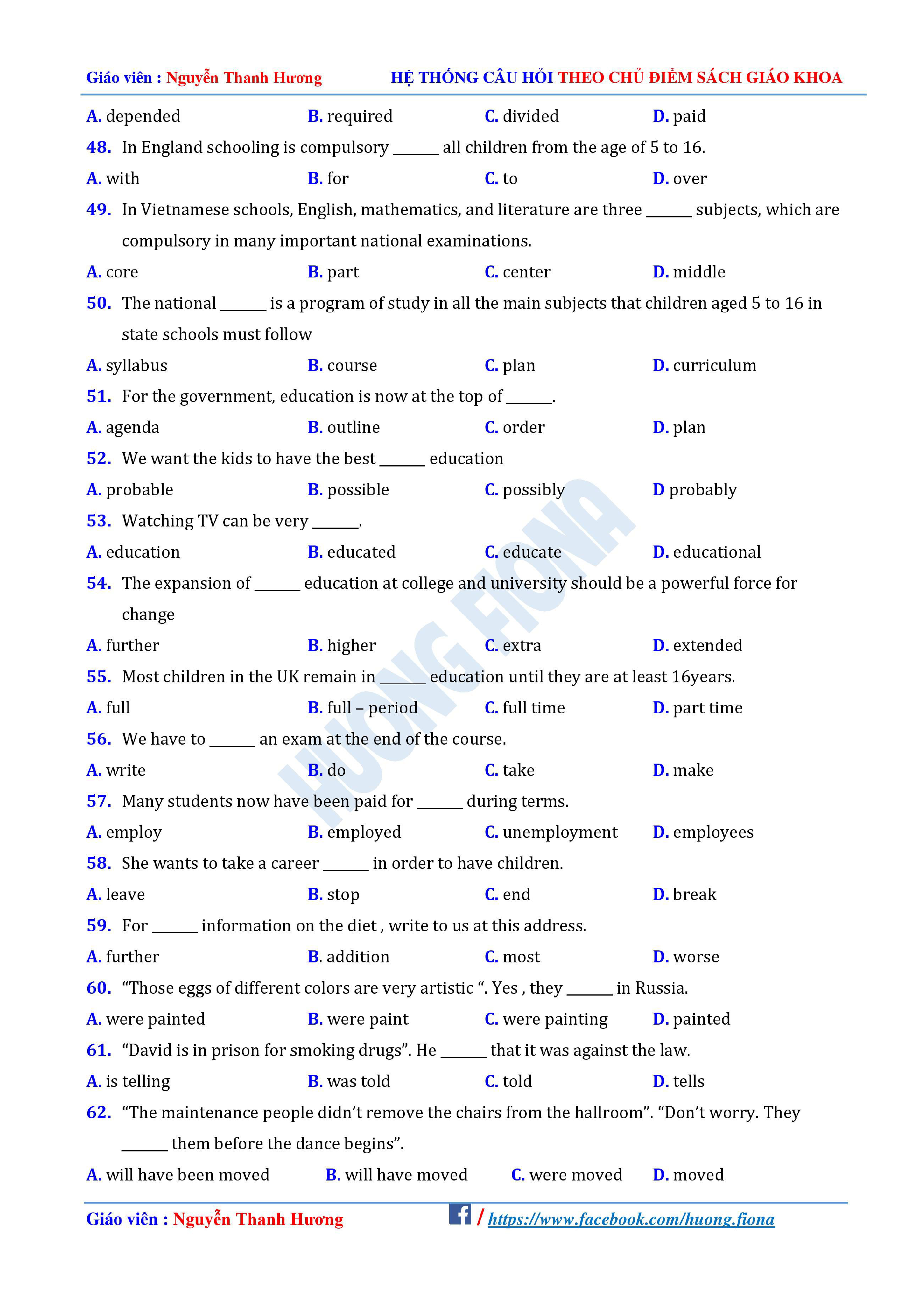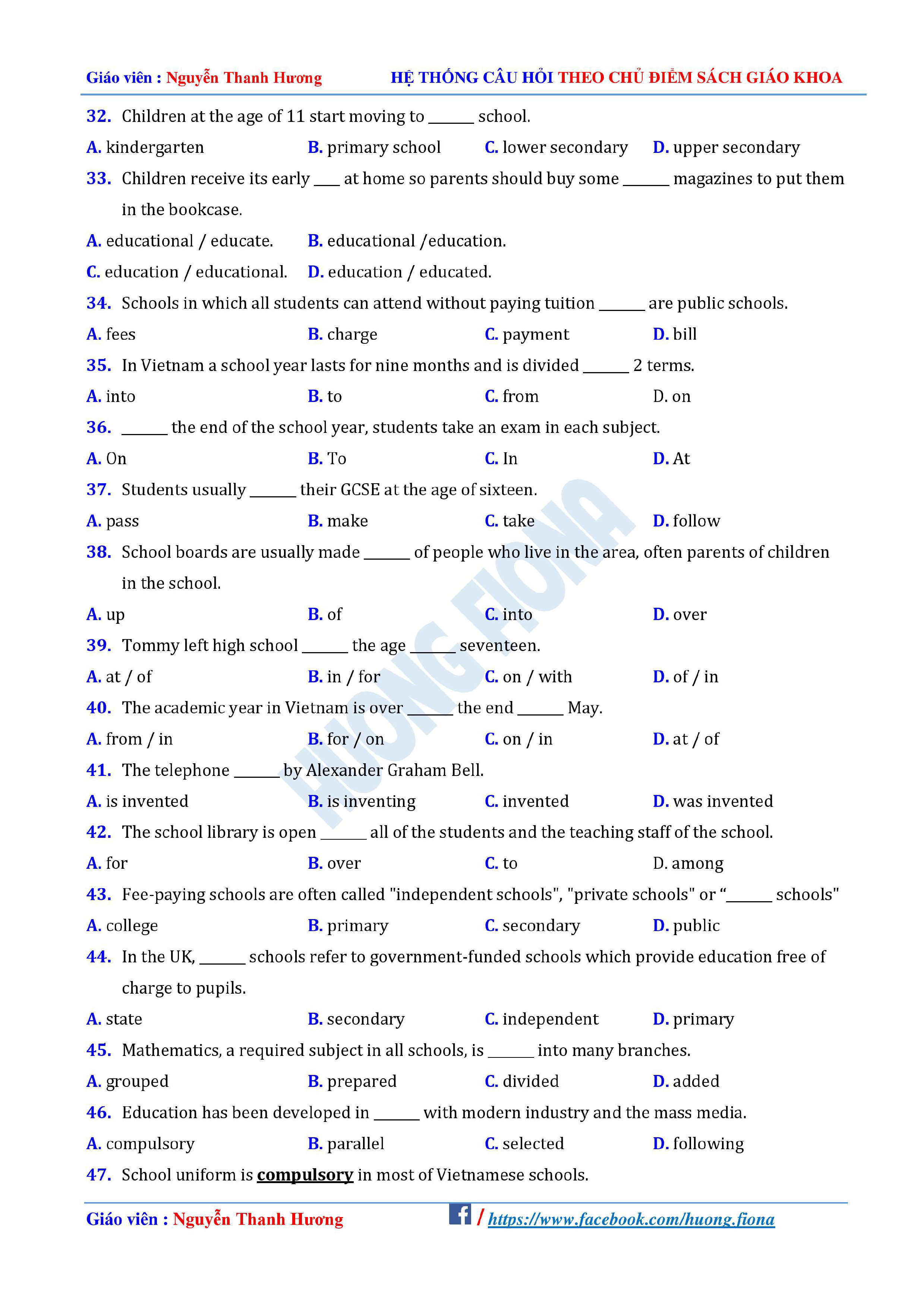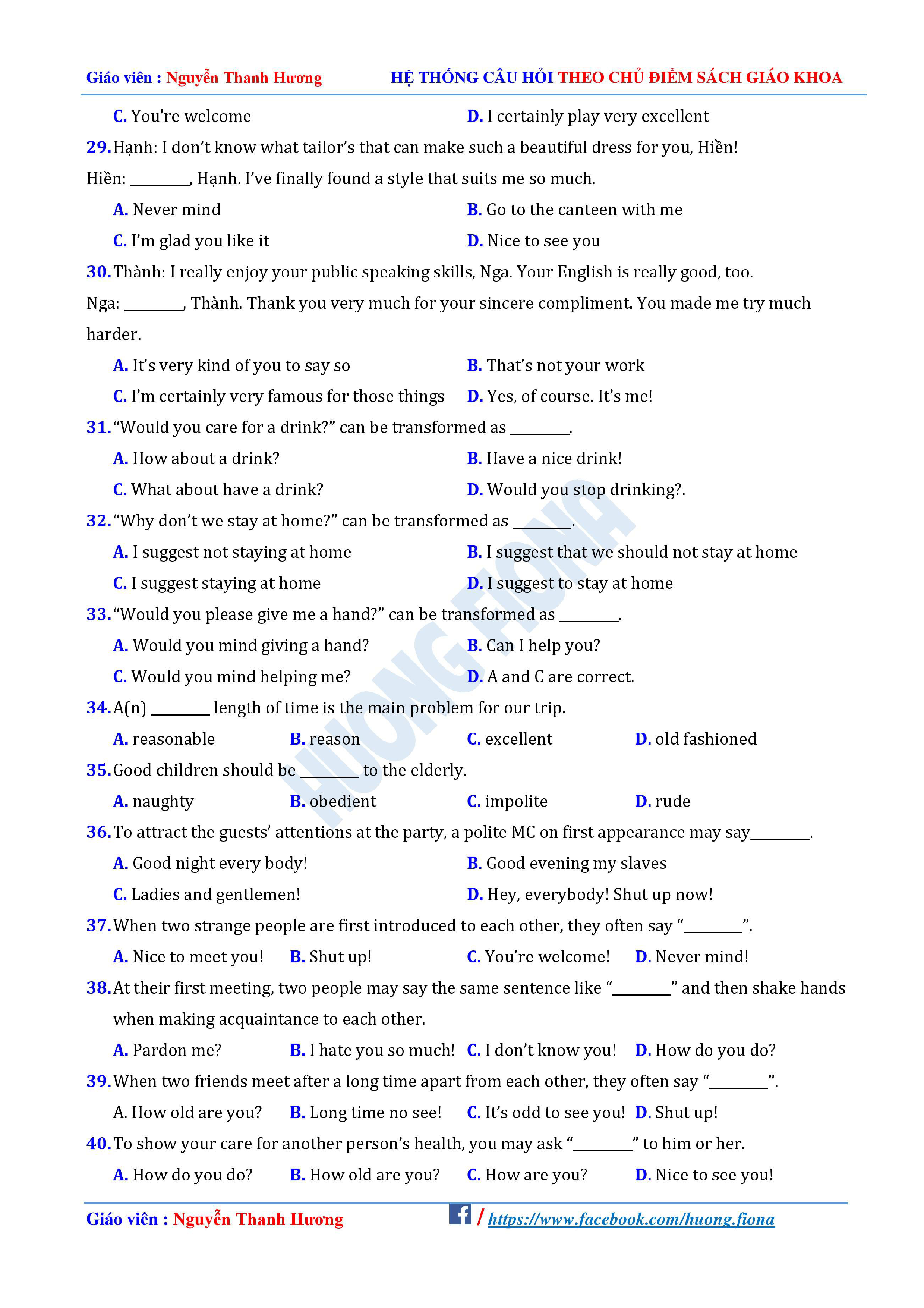 Câu hỏi trắc nghiệm Tiếng Anh 12 theo từng chủ điểm