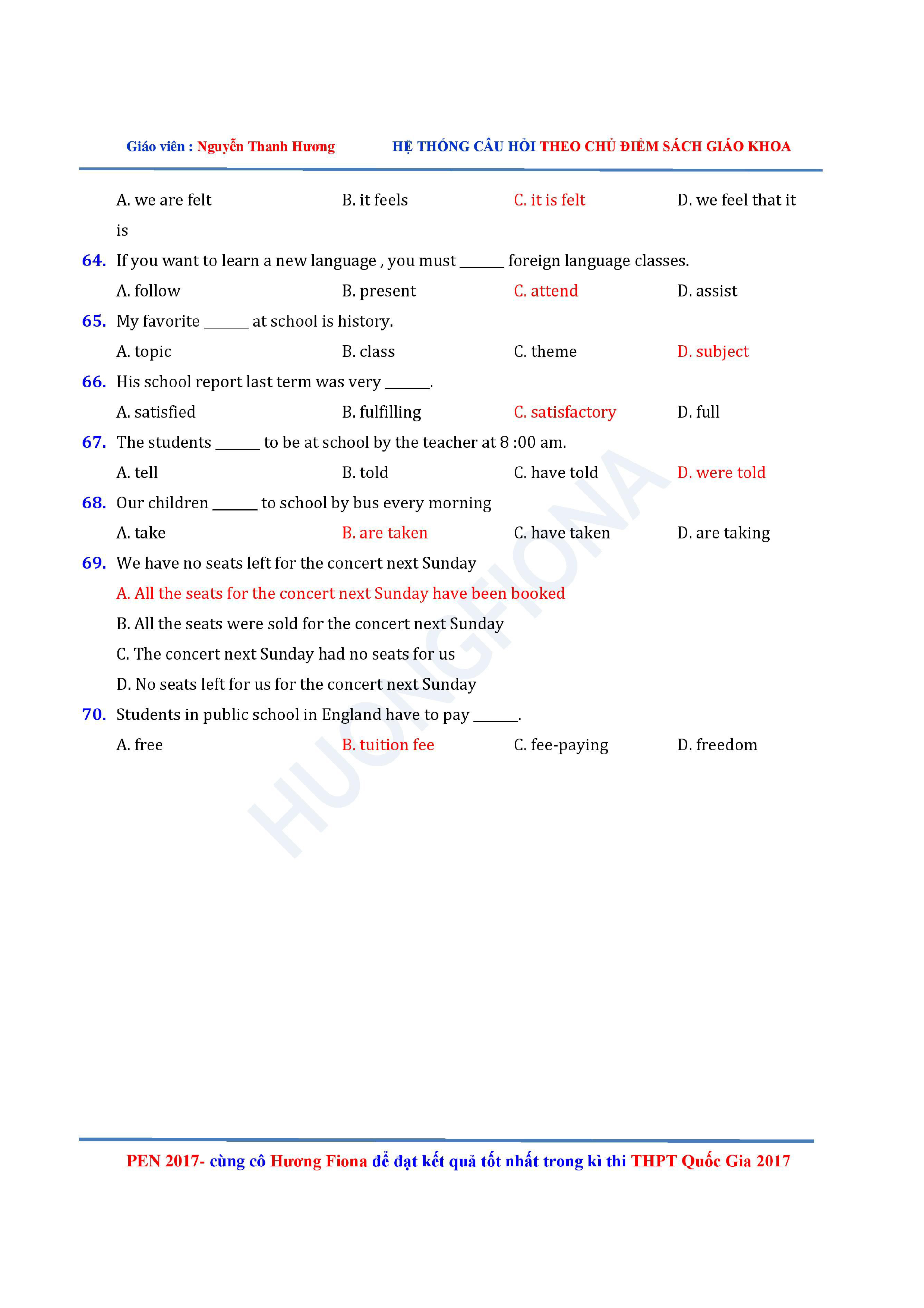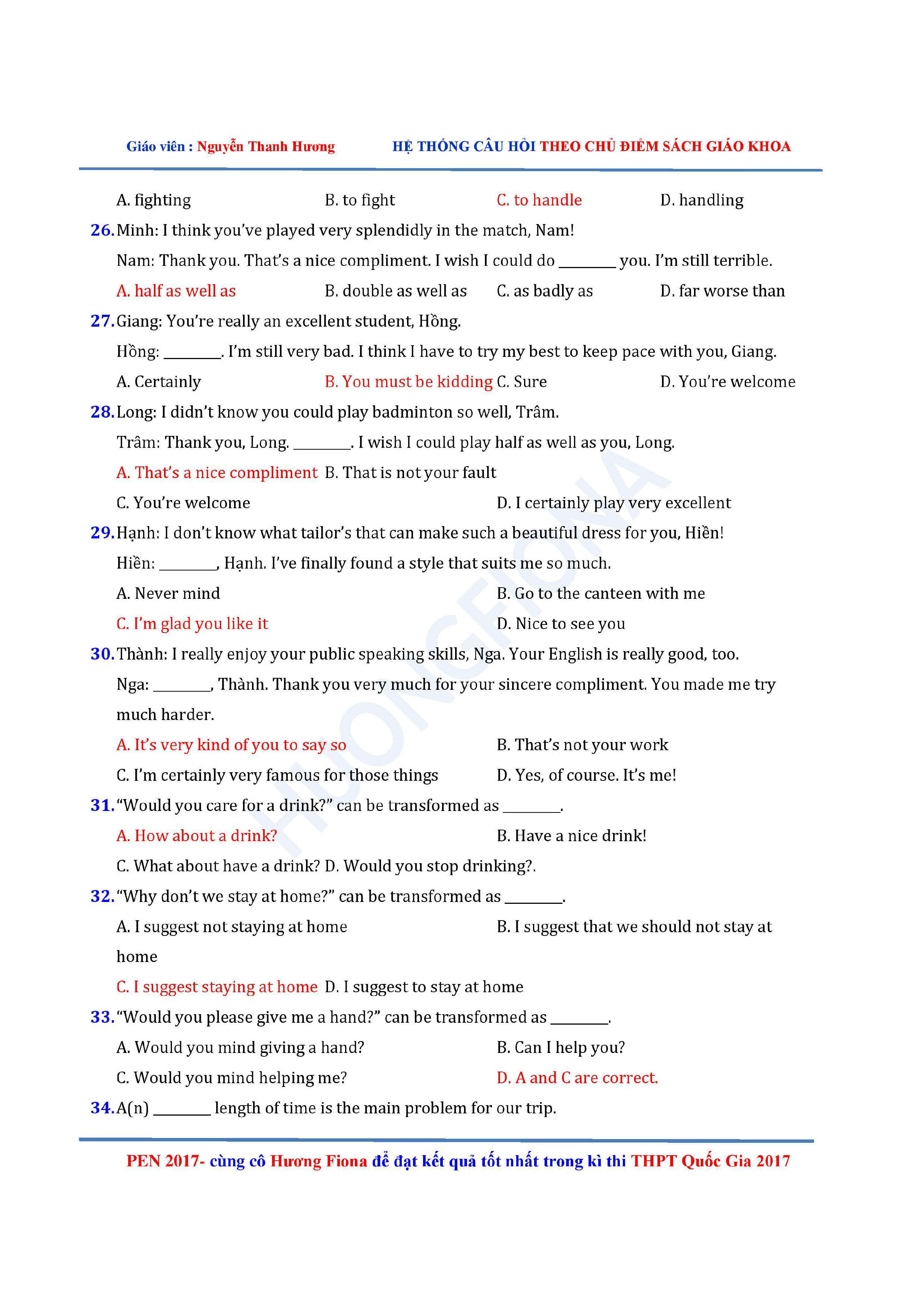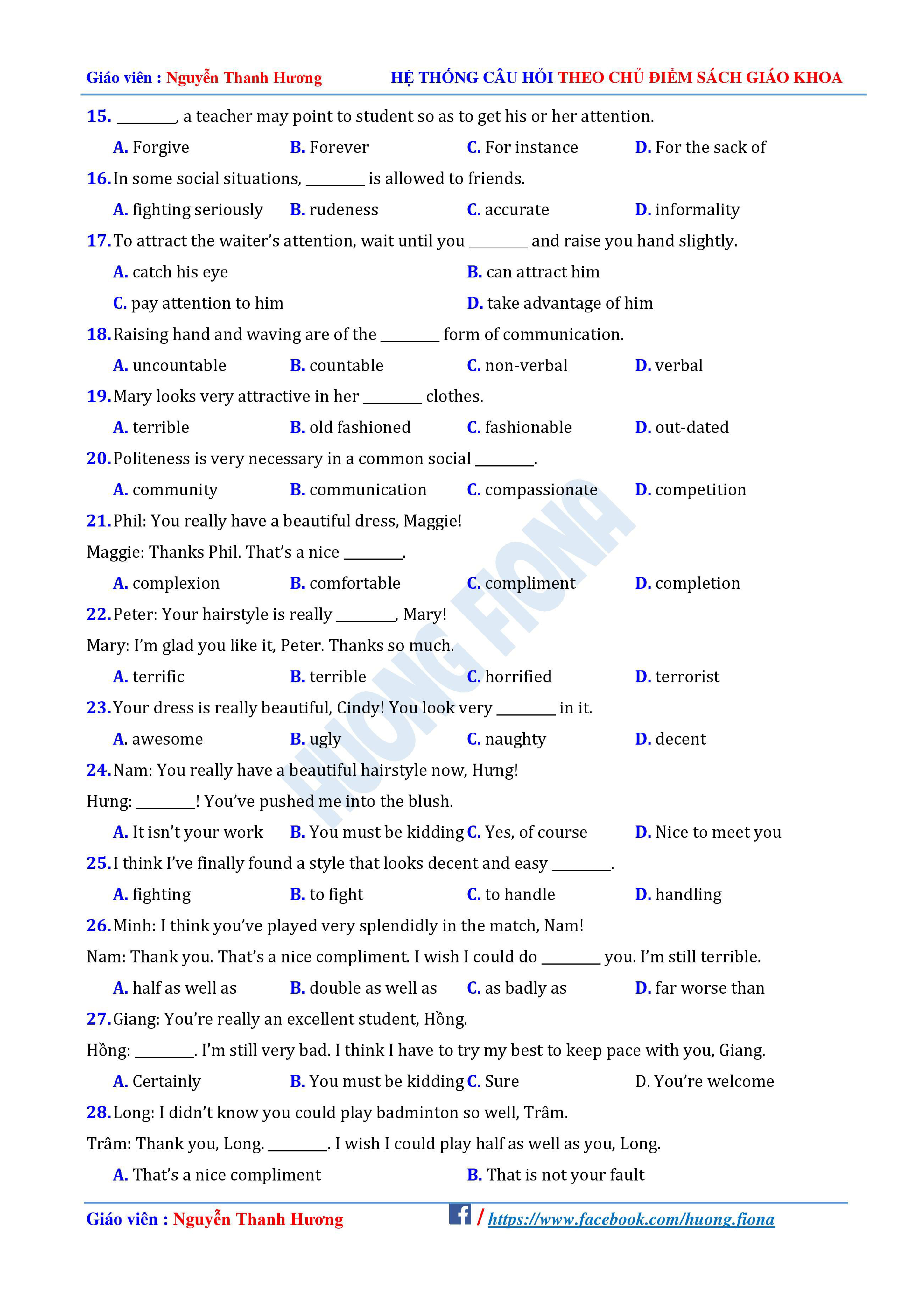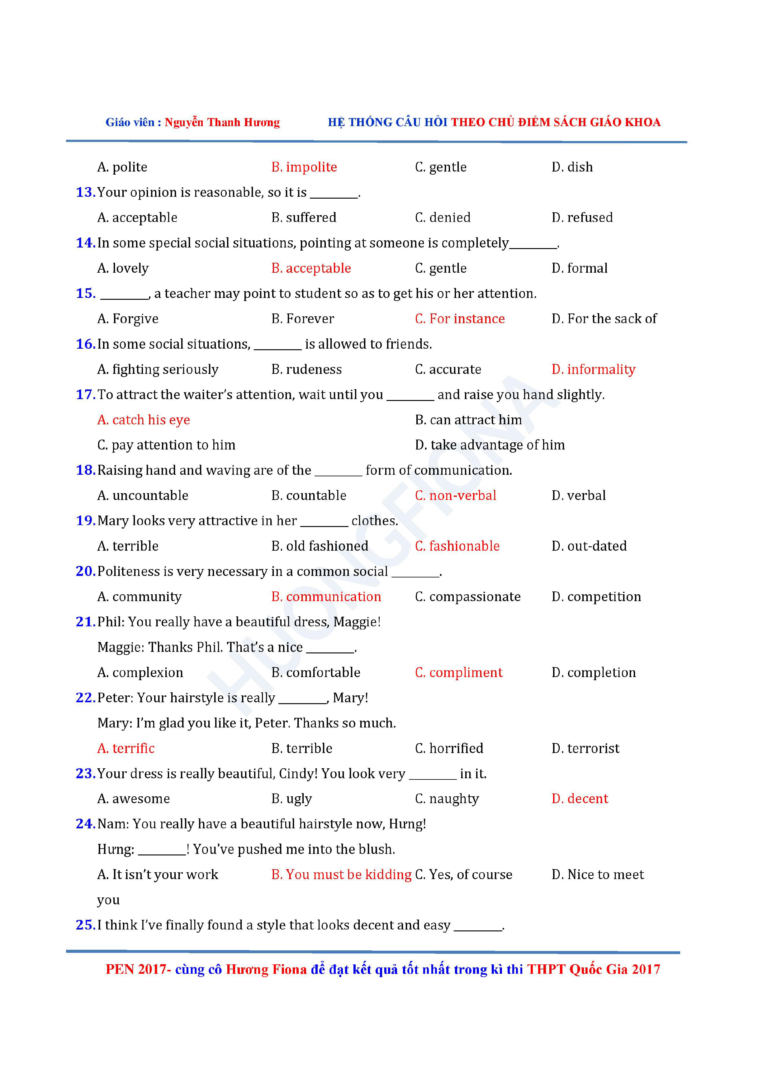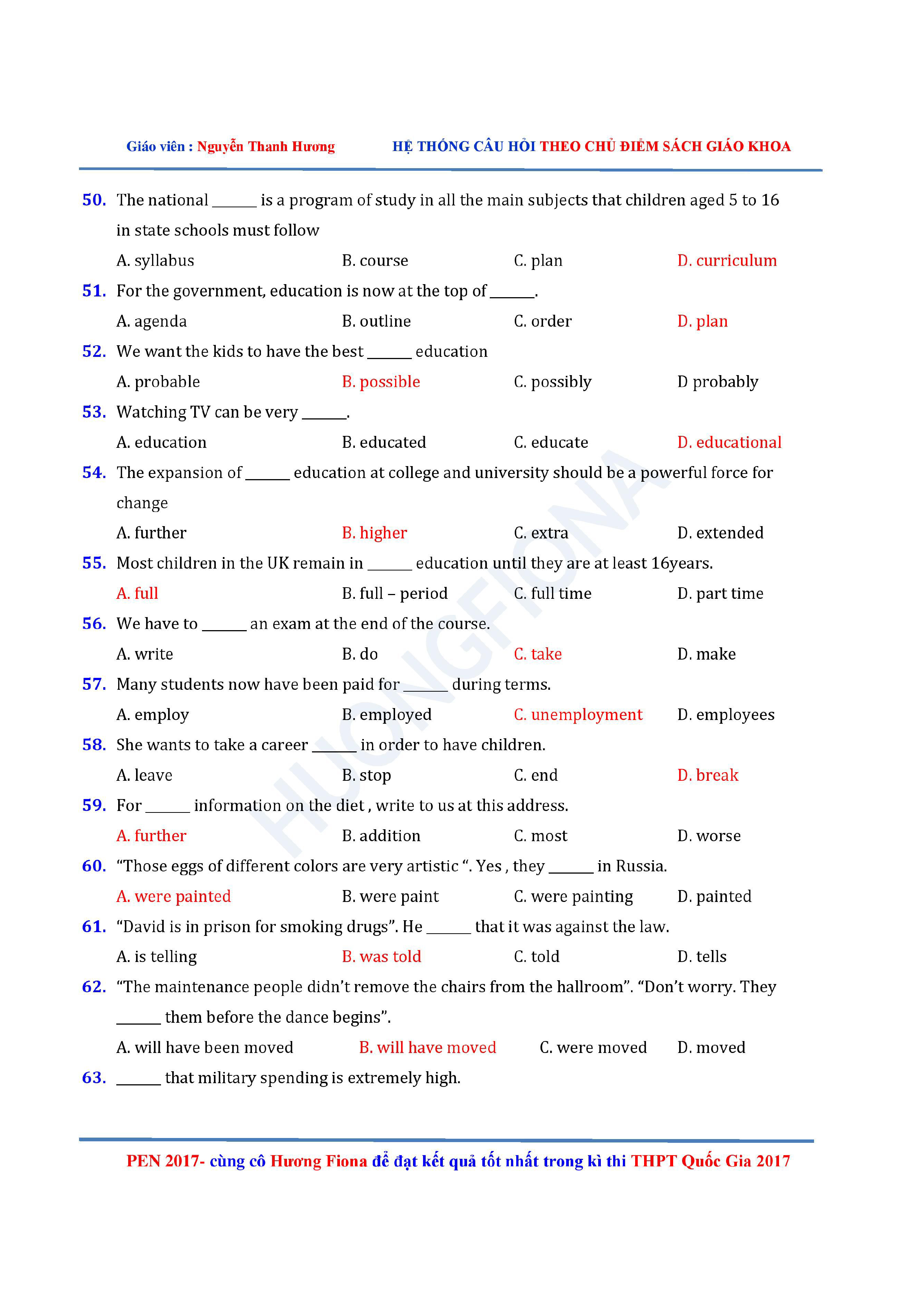 Câu hỏi trắc nghiệm Tiếng Anh 12 theo từng chủ điểm