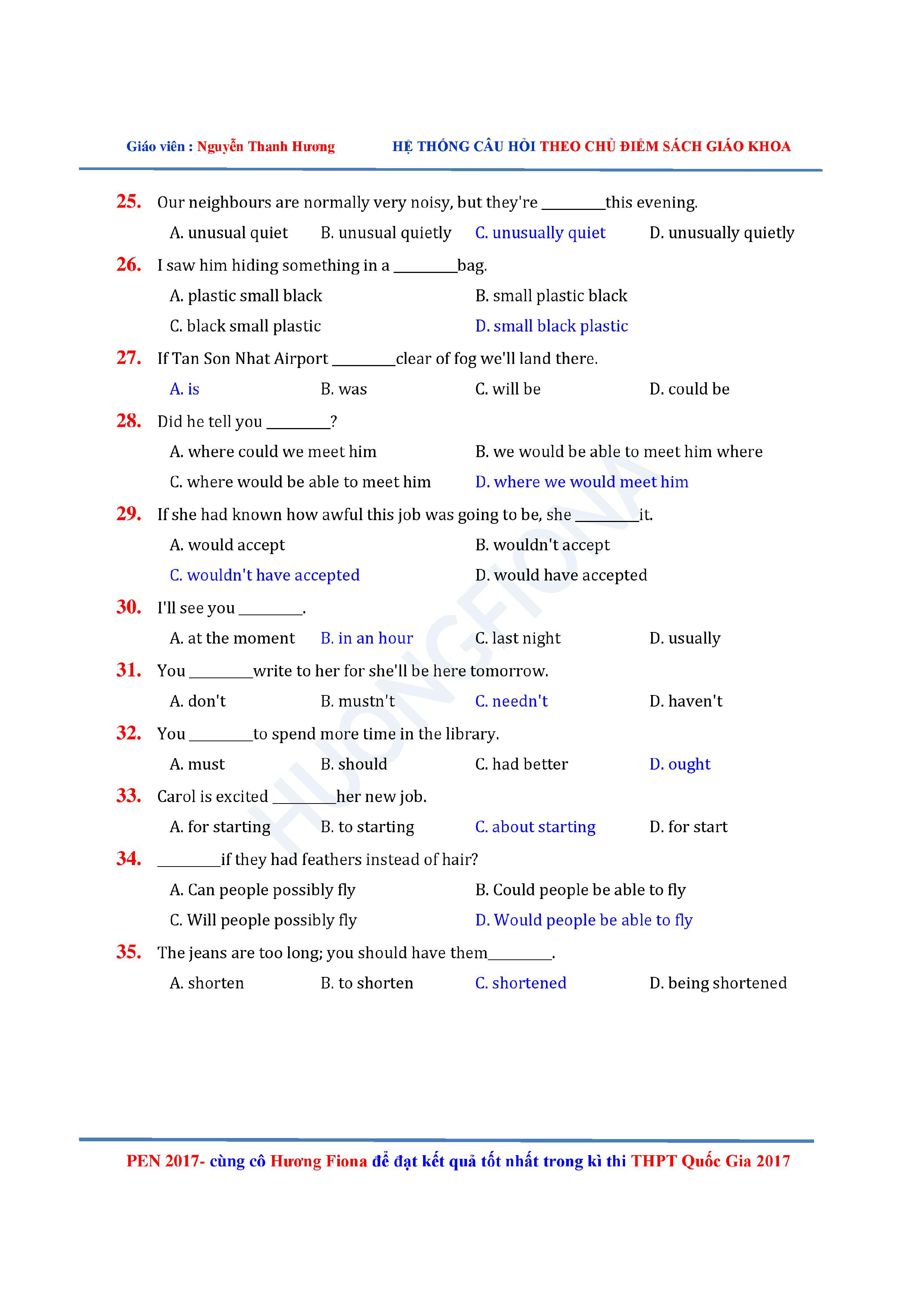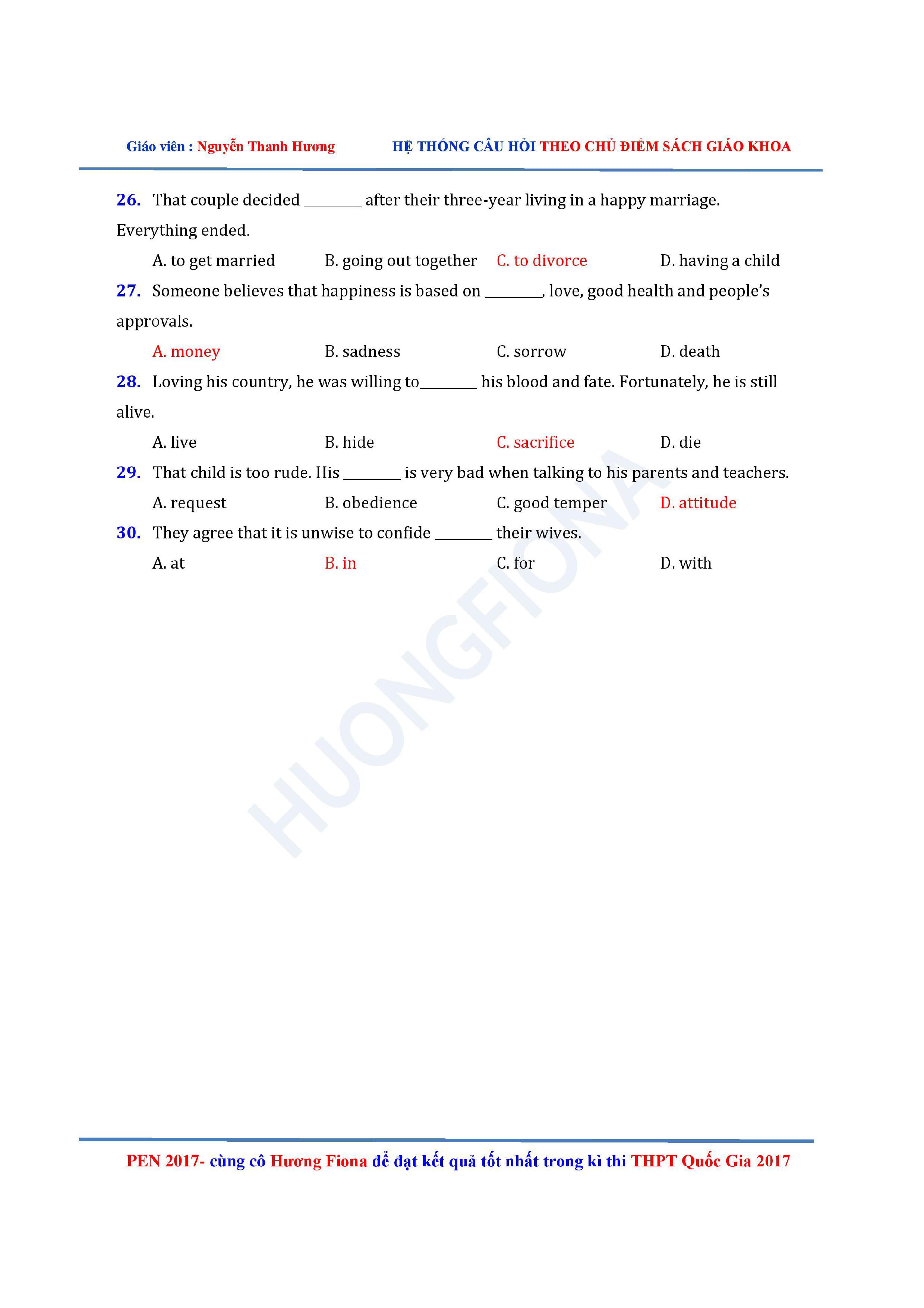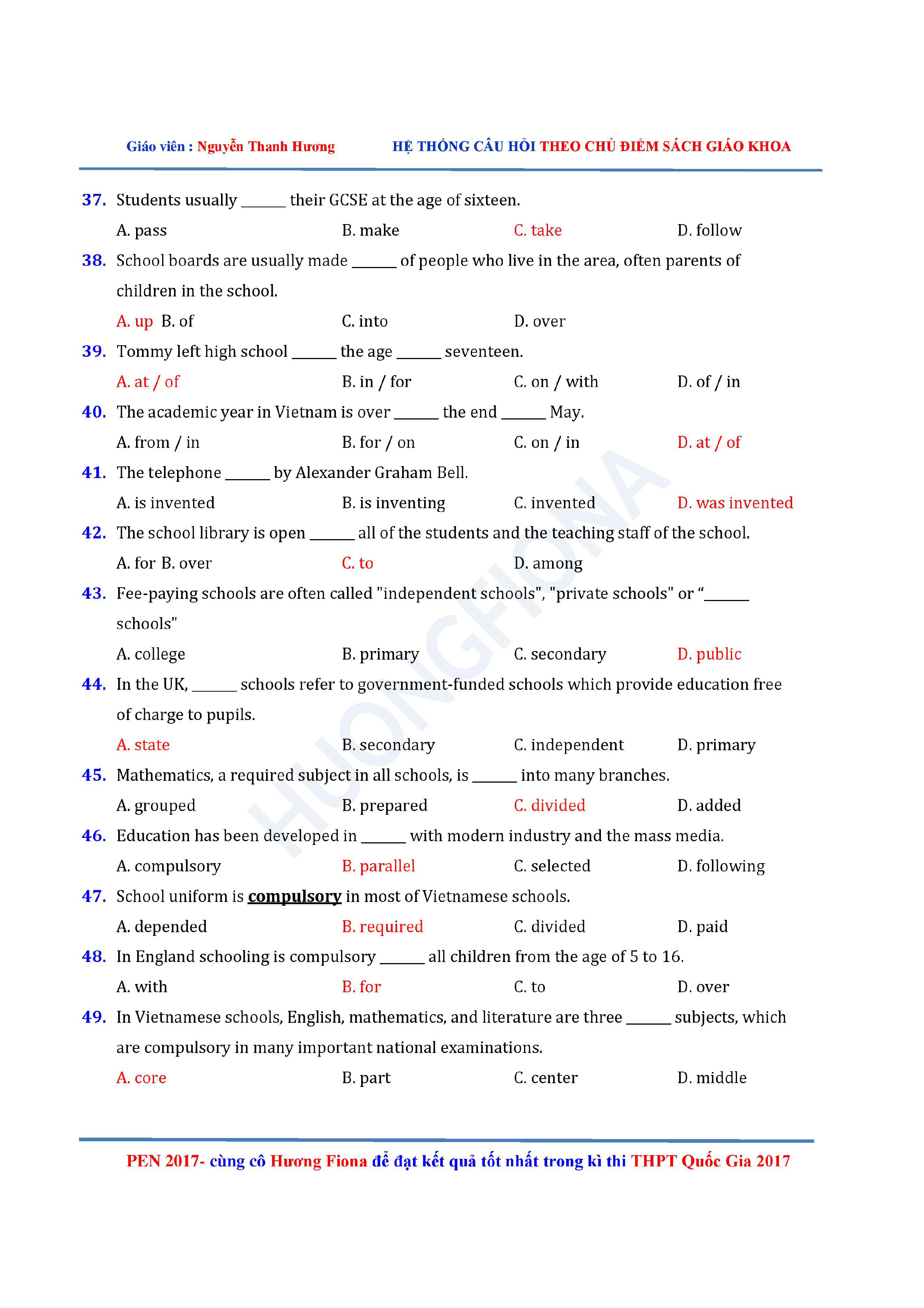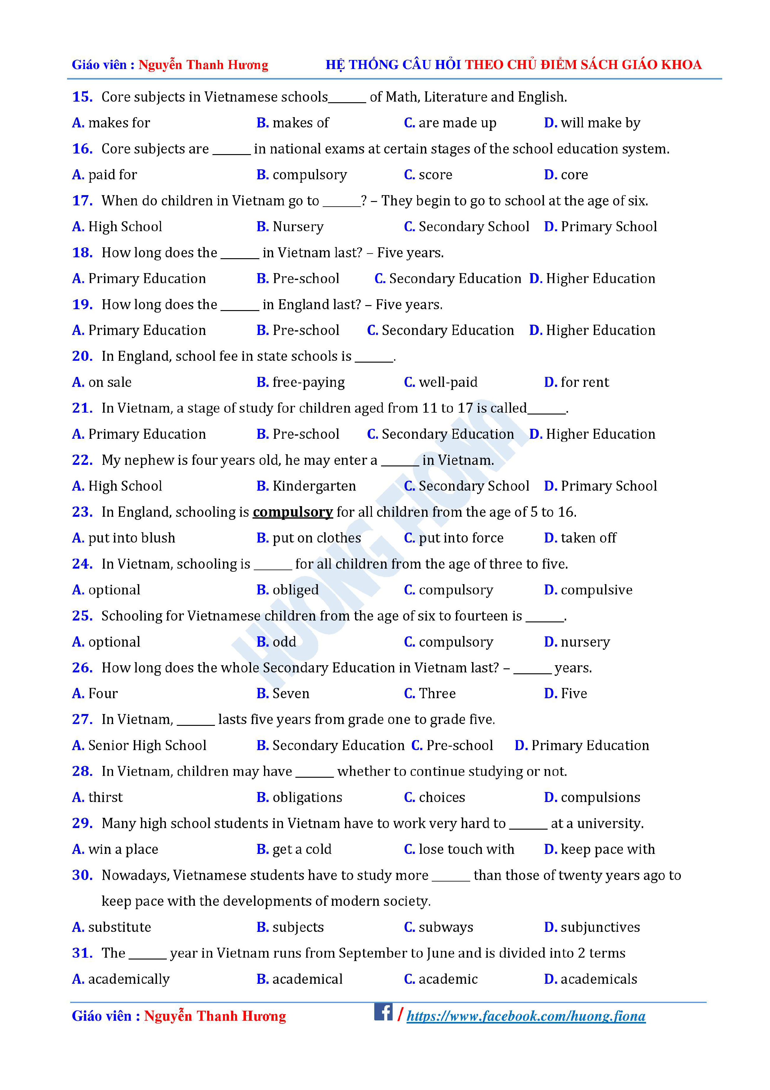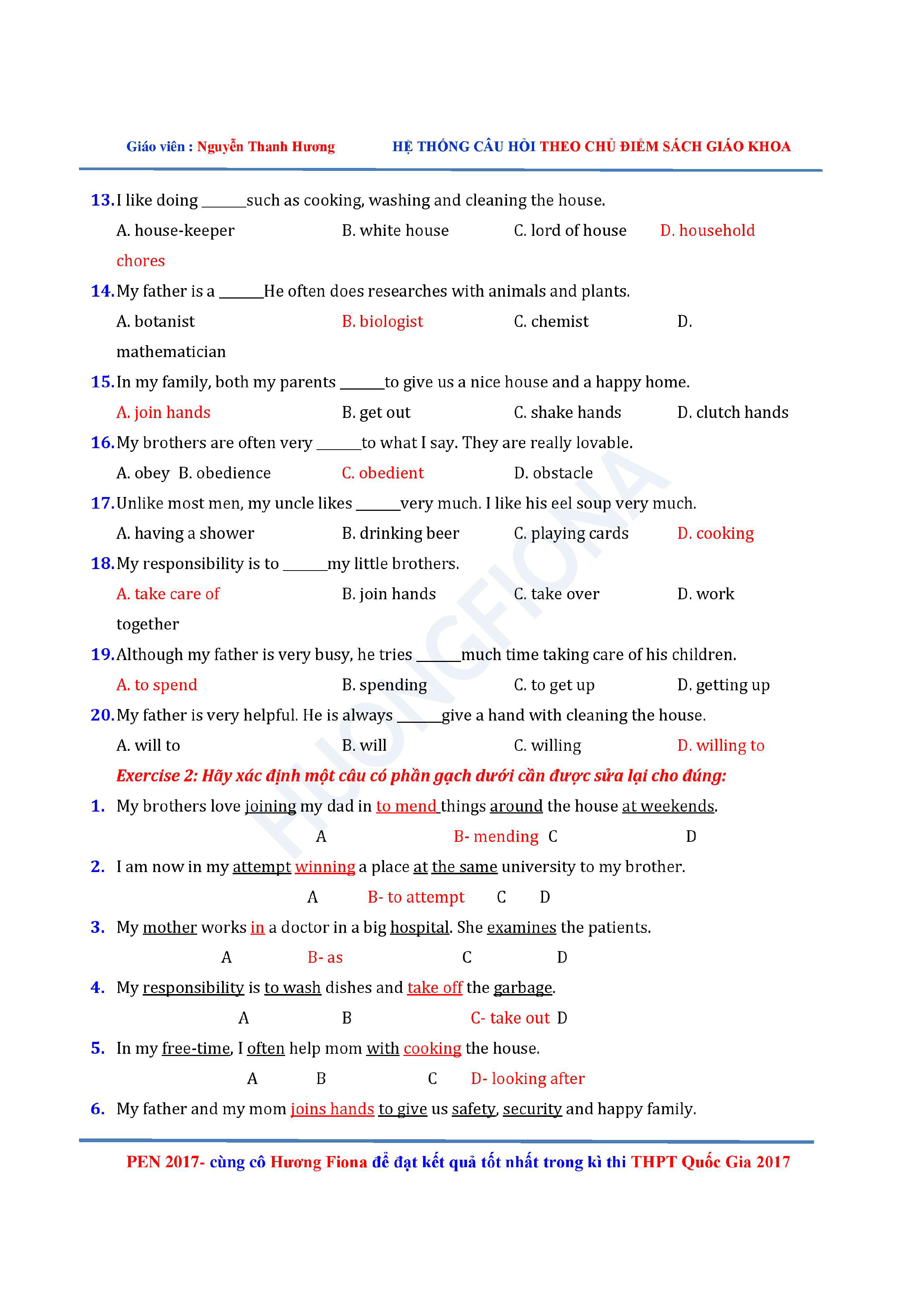 Câu hỏi trắc nghiệm Tiếng Anh 12 theo từng chủ điểm