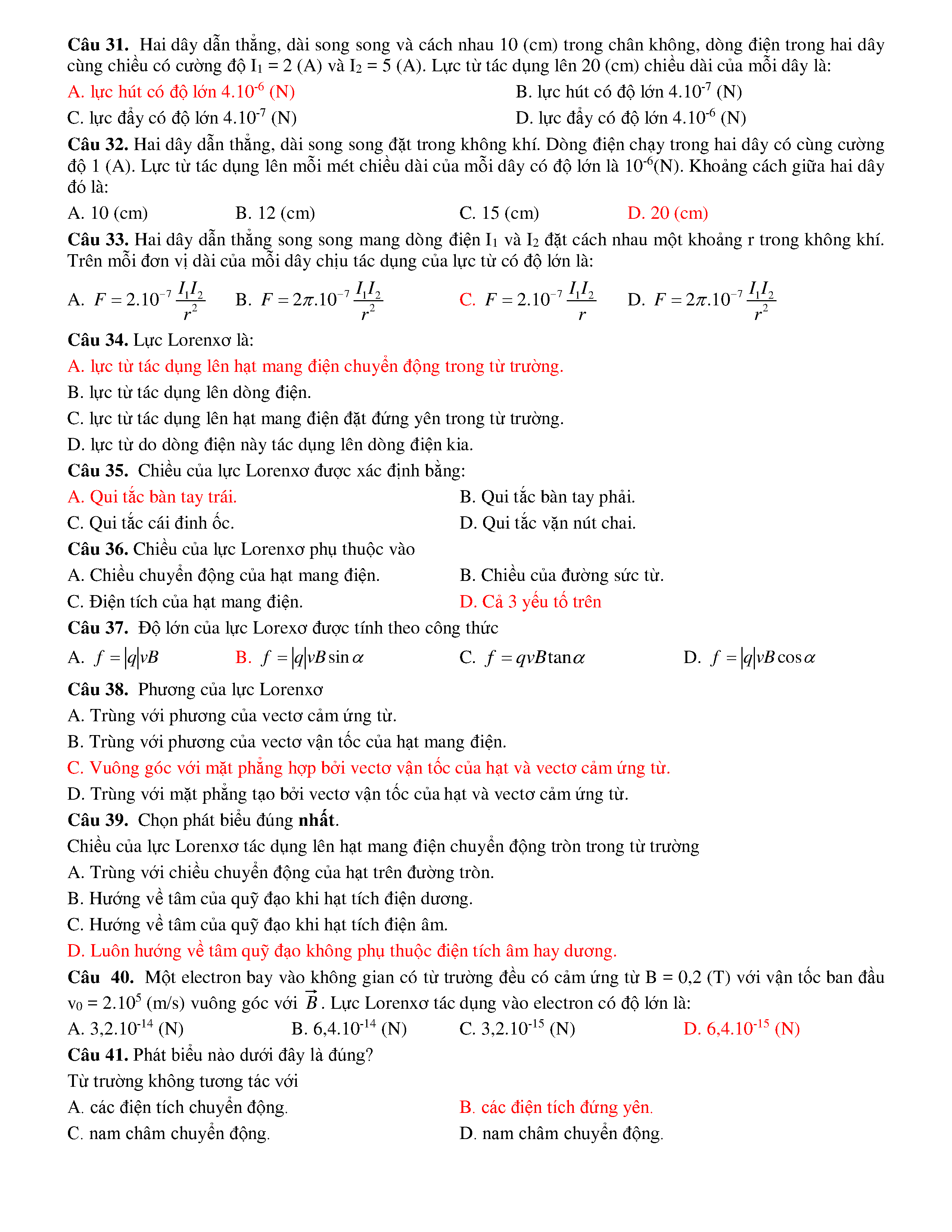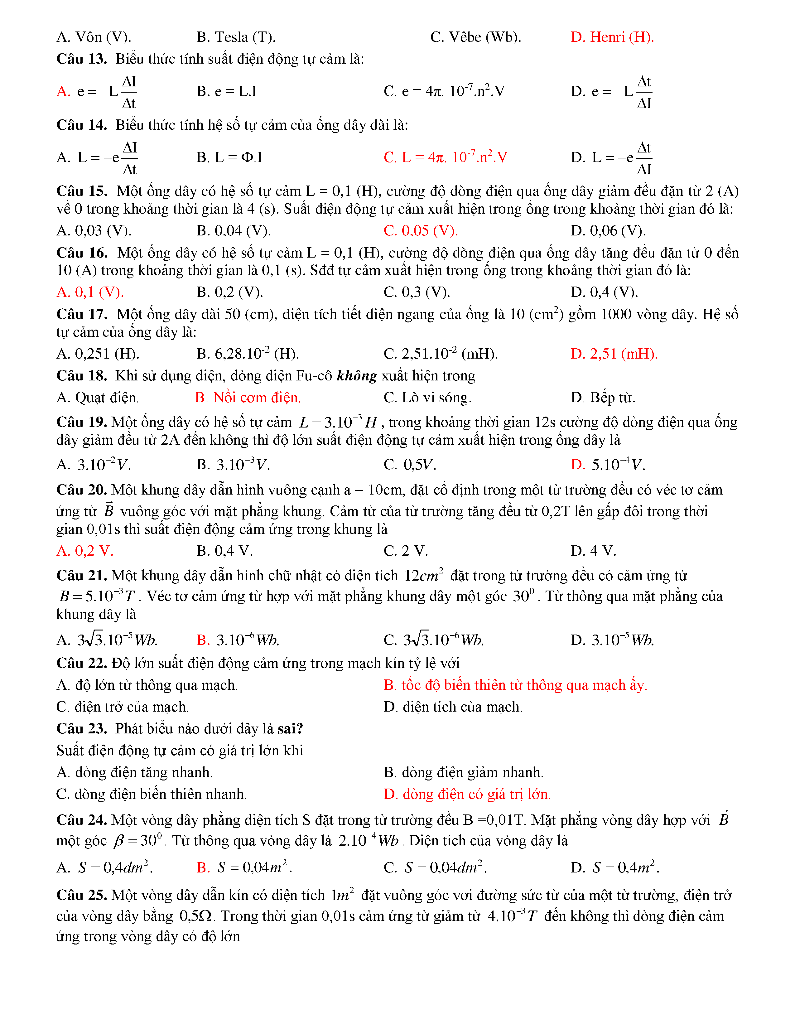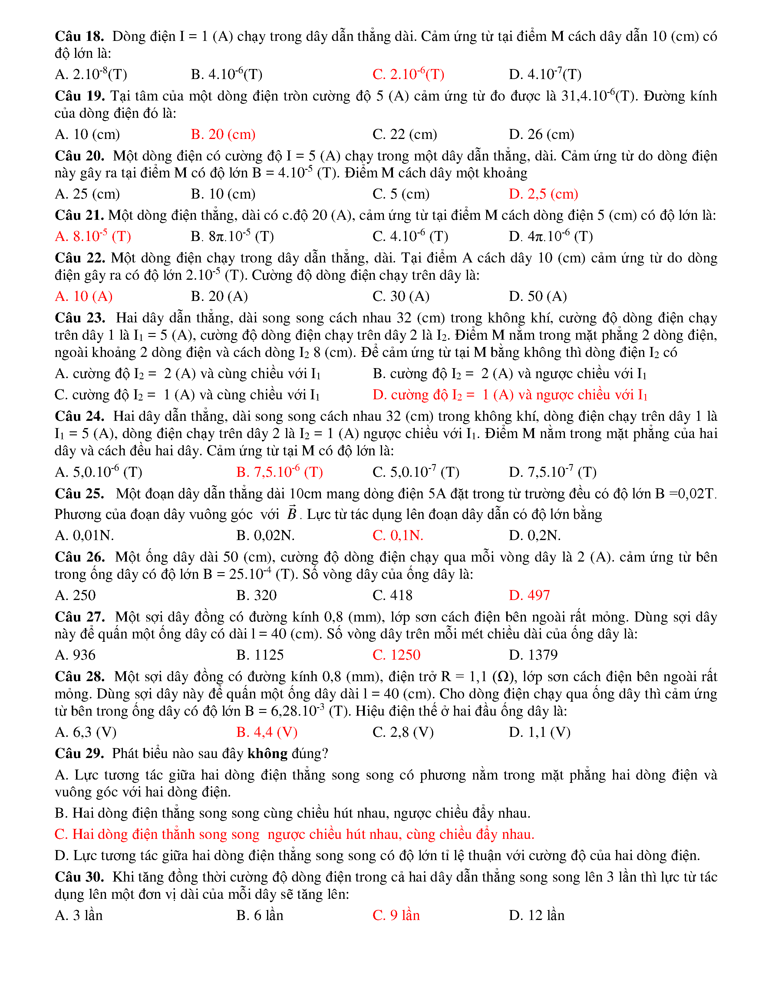B. Bài tập ôn tập vật lý 11 học kỳ 2